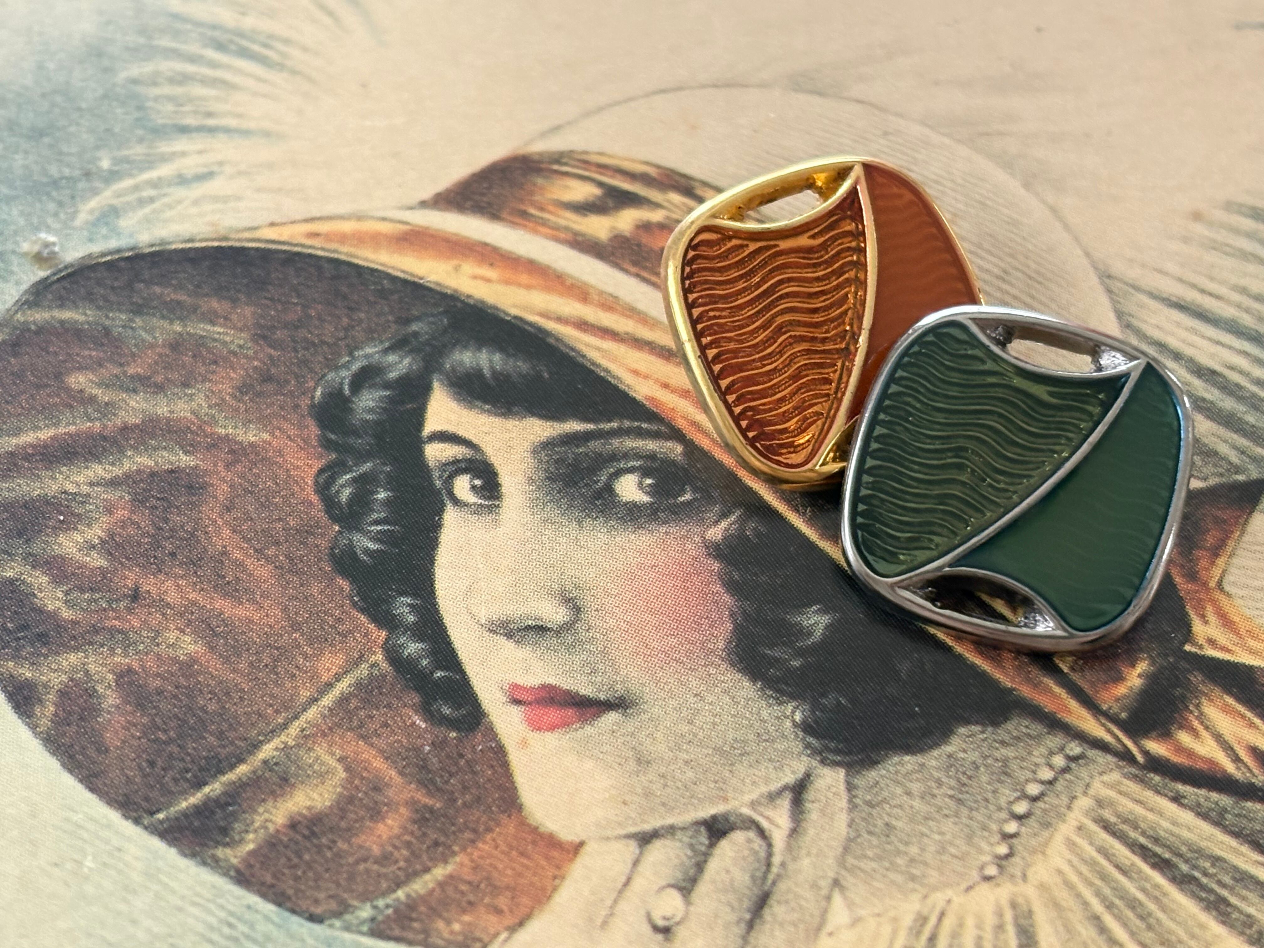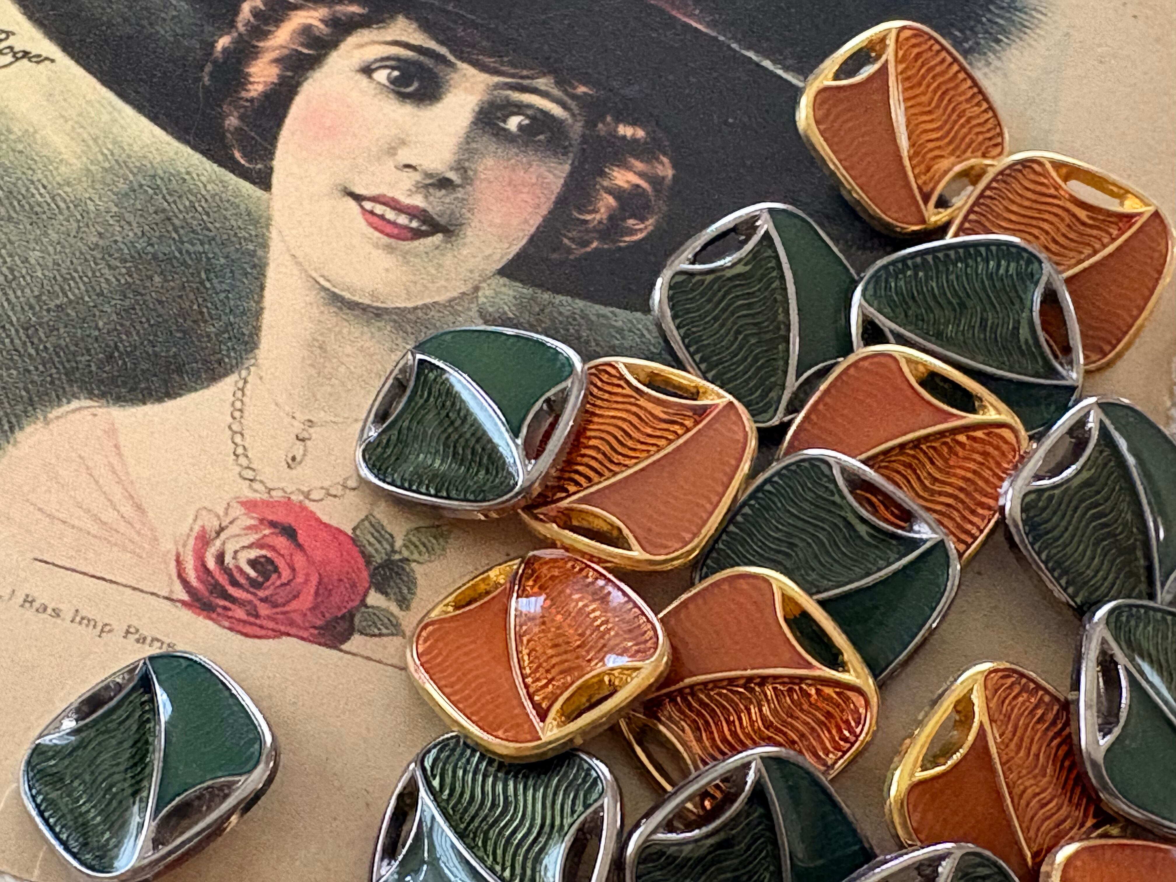 15mm Japanese Vintage ボタン スクウェア グリーン/オレンジ プラスチックボタン 昭和レトロ アクセサリーパーツ 装飾材 カルトナージュ