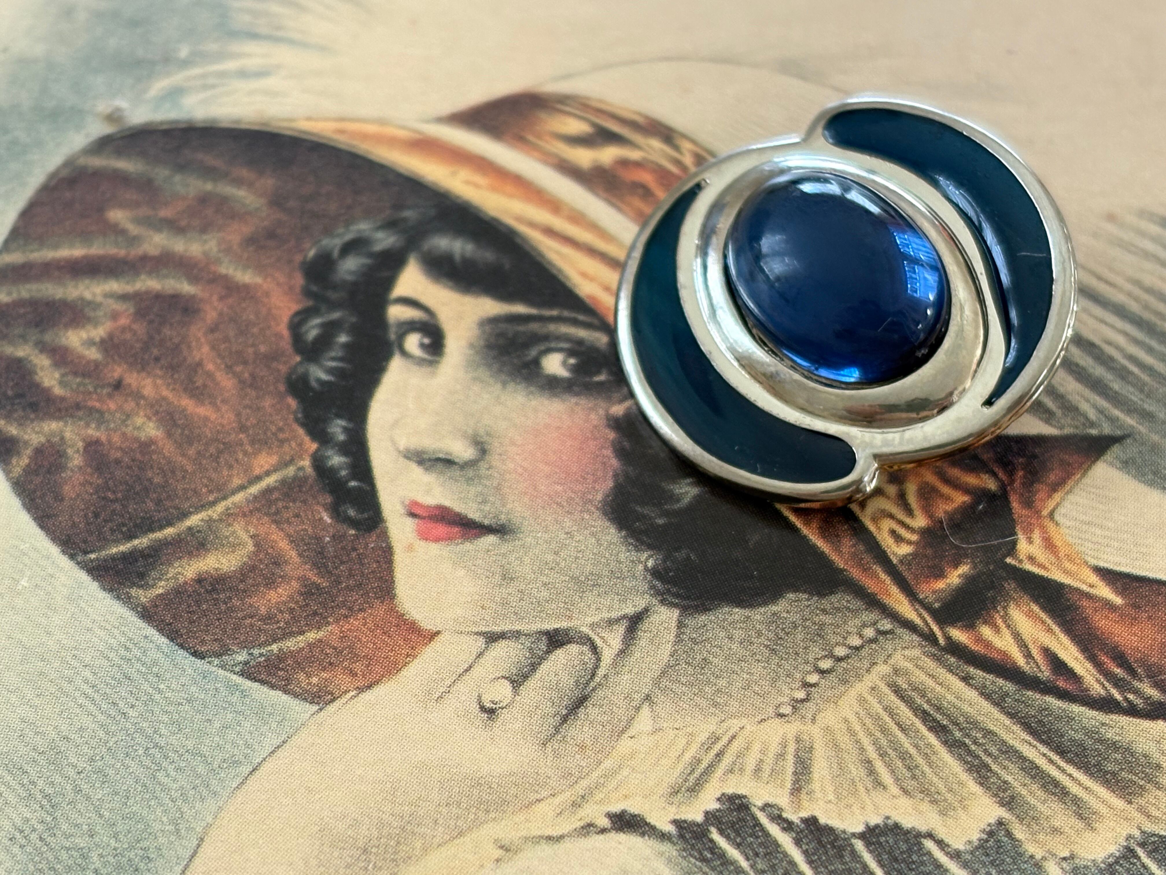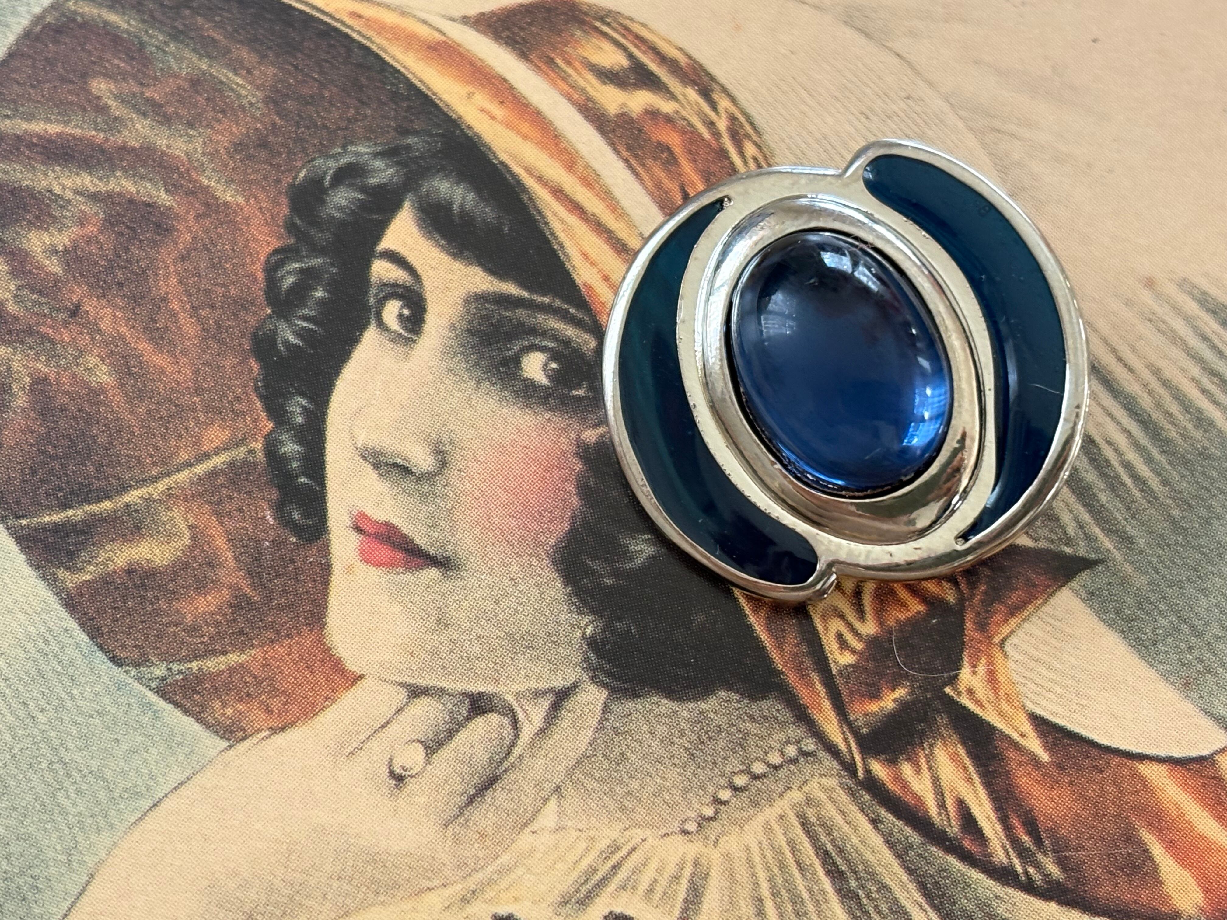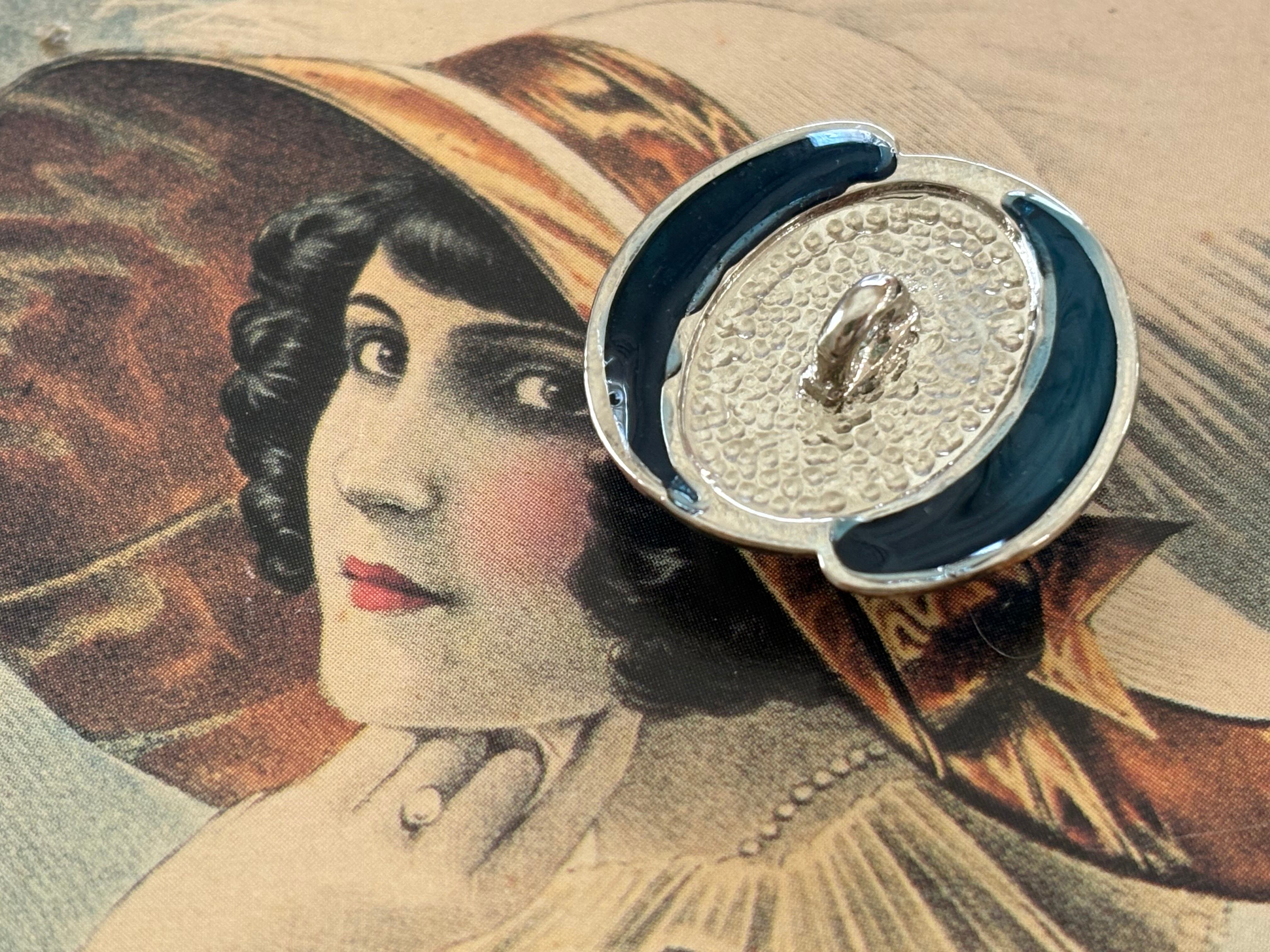 24mm Japanese ヴィンテージボタン ブルー×シルバー カボション メタルボタン アクセサリーパーツ 装飾材