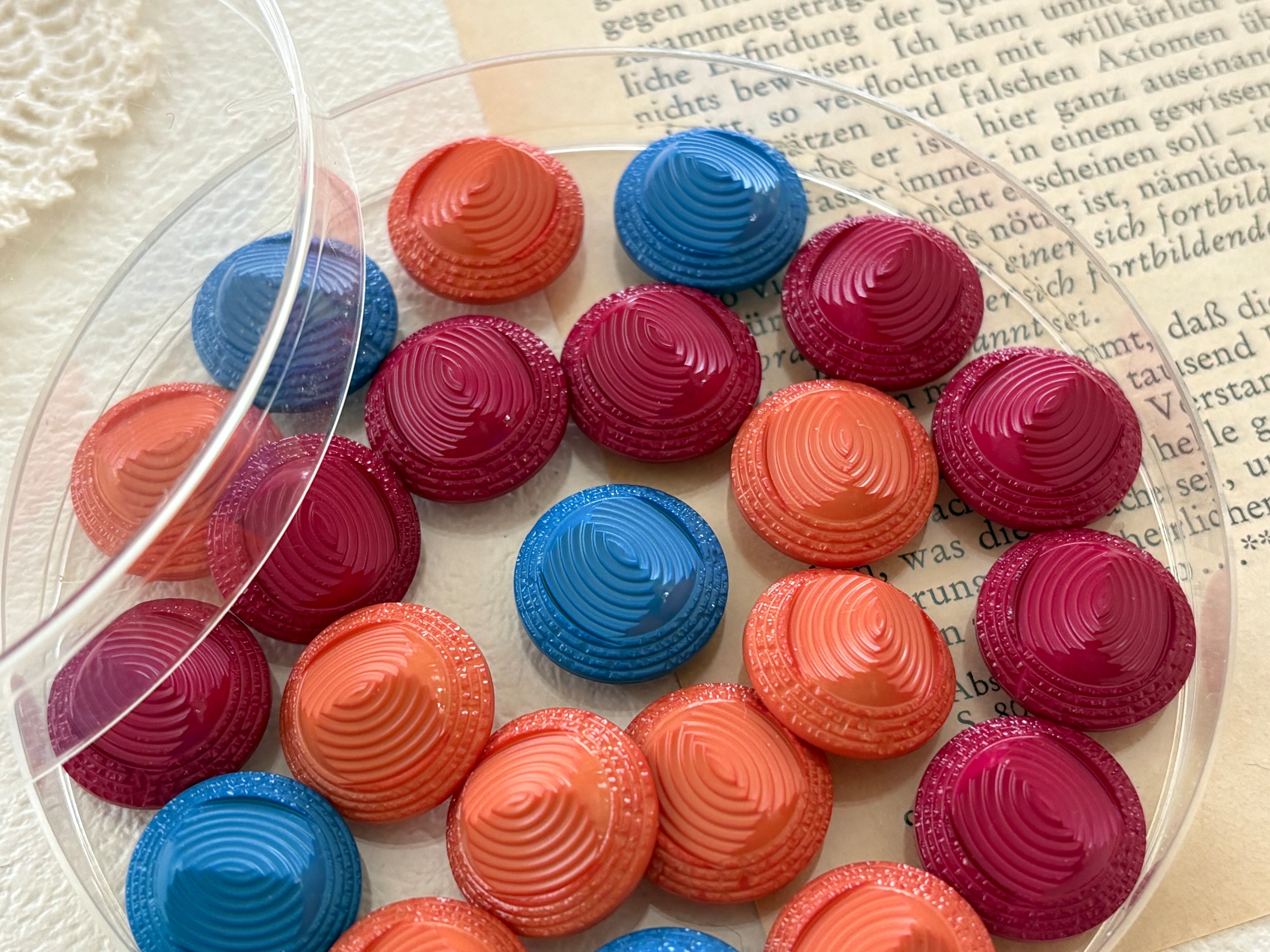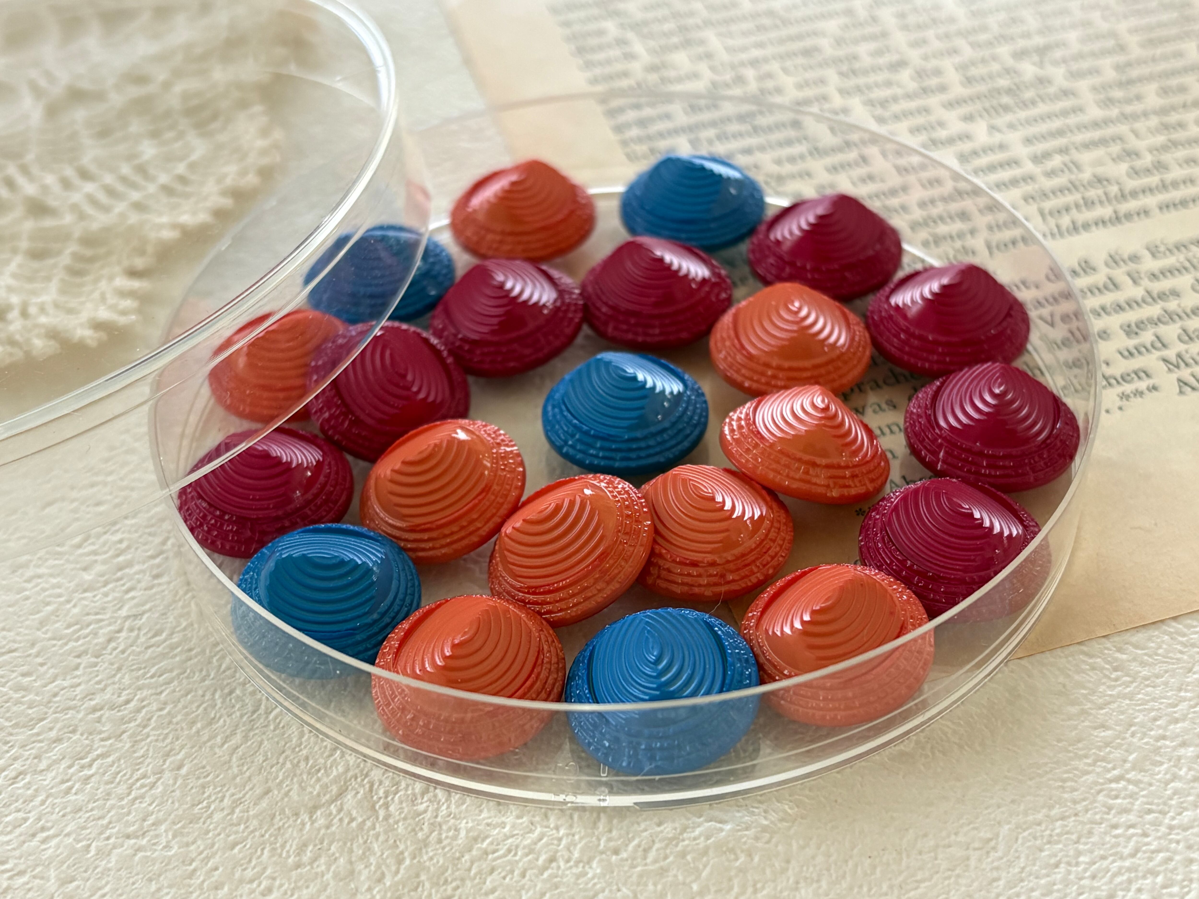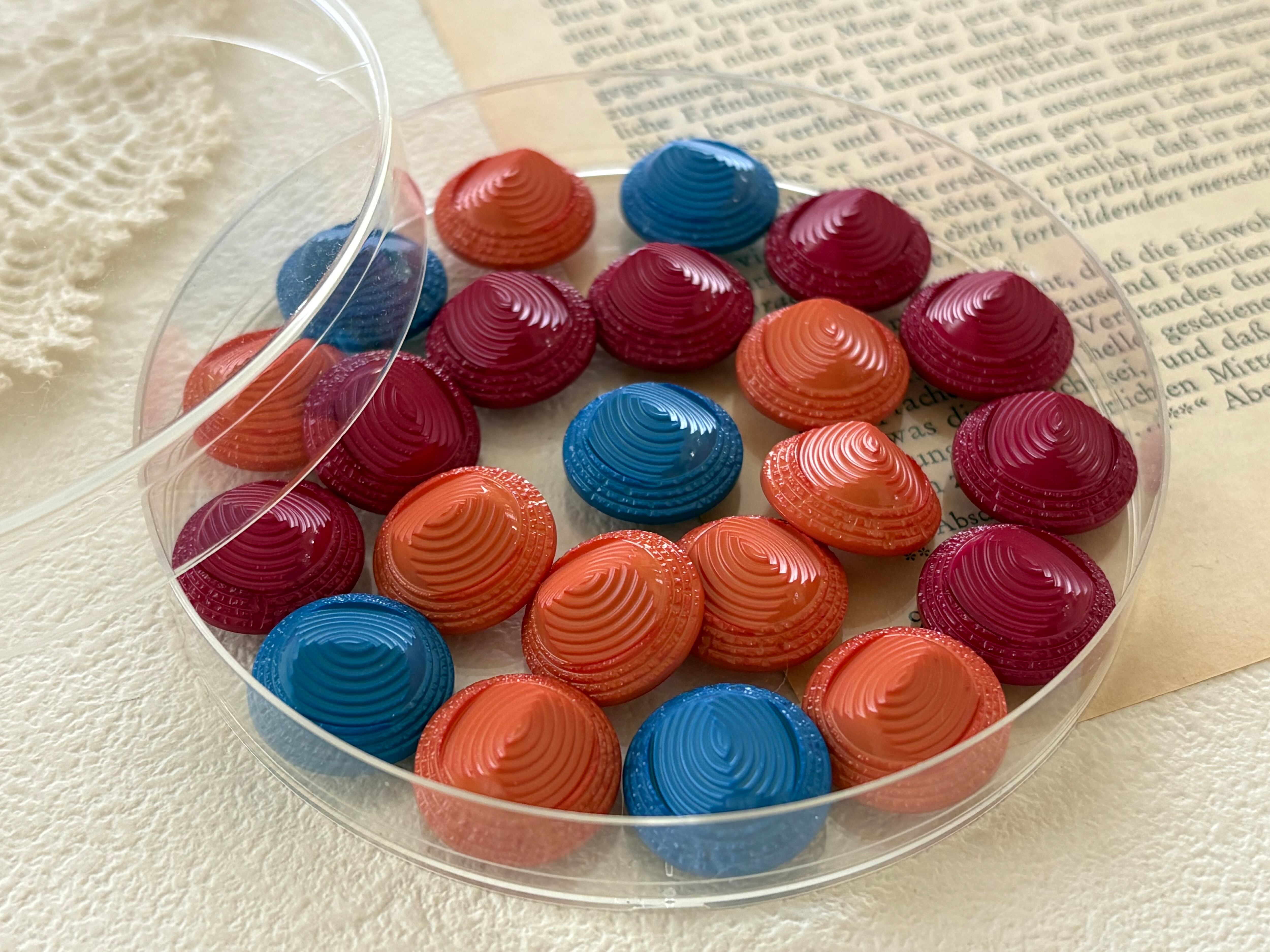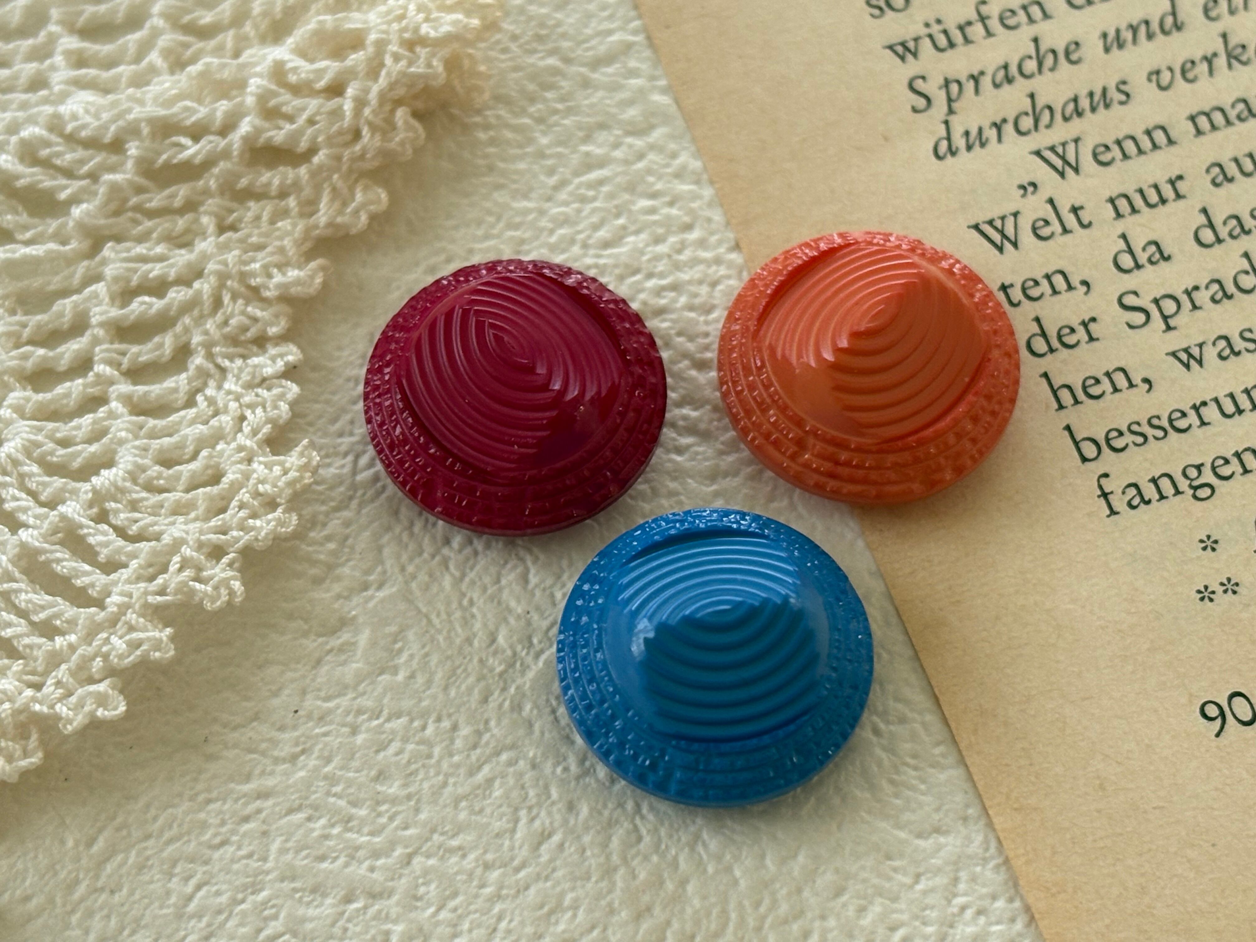 16mm Japanese Vintage ボタン ドーム型 オレンジ/ライトブルー/レッド 昭和レトロ アクセサリーパーツ 装飾材 カルトナージュ