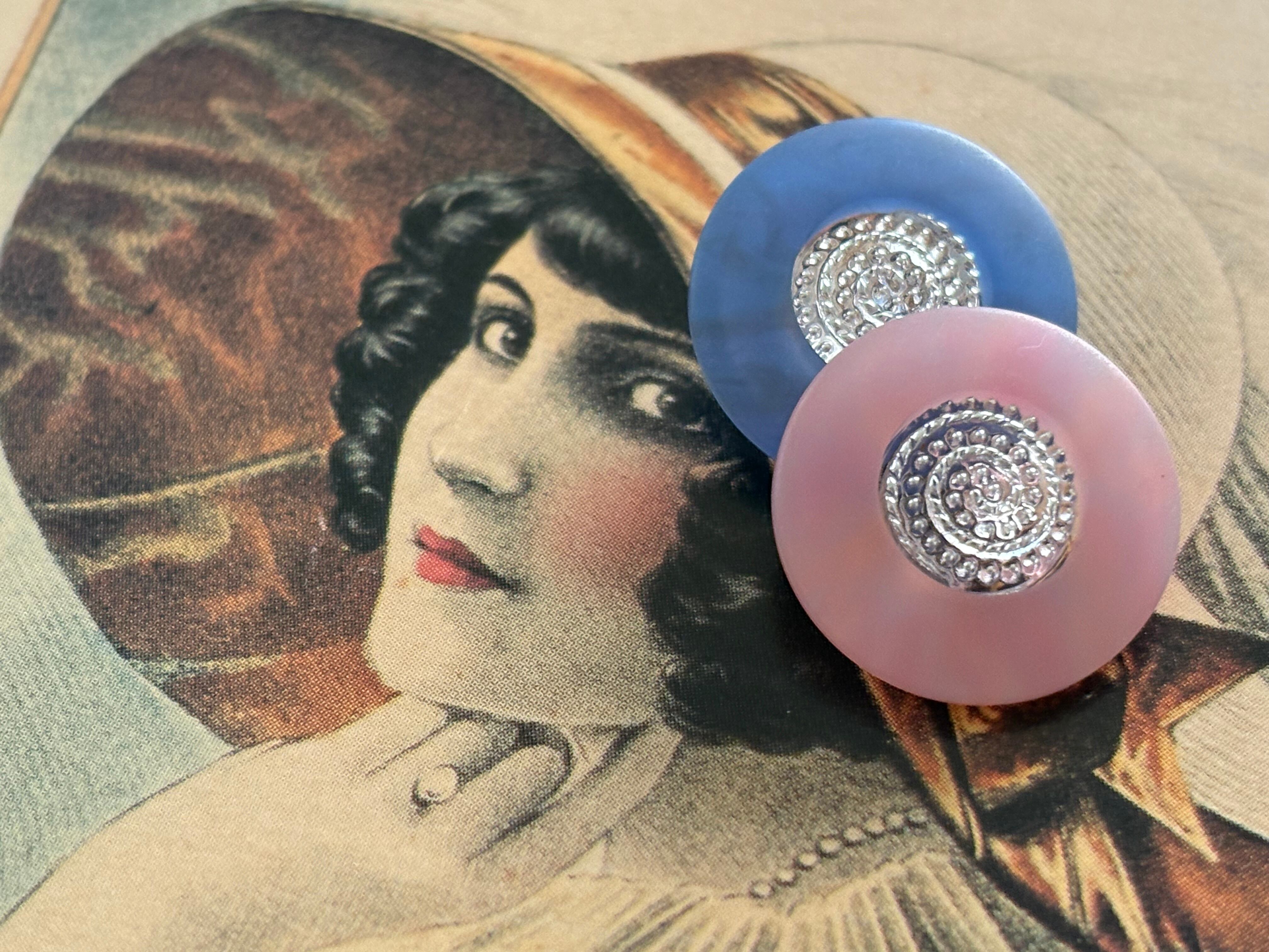 17mm Japanese ヴィンテージボタン マーブル ピンク/ブルー レトロ アクセサリーパーツ 装飾材 カルトナージュ