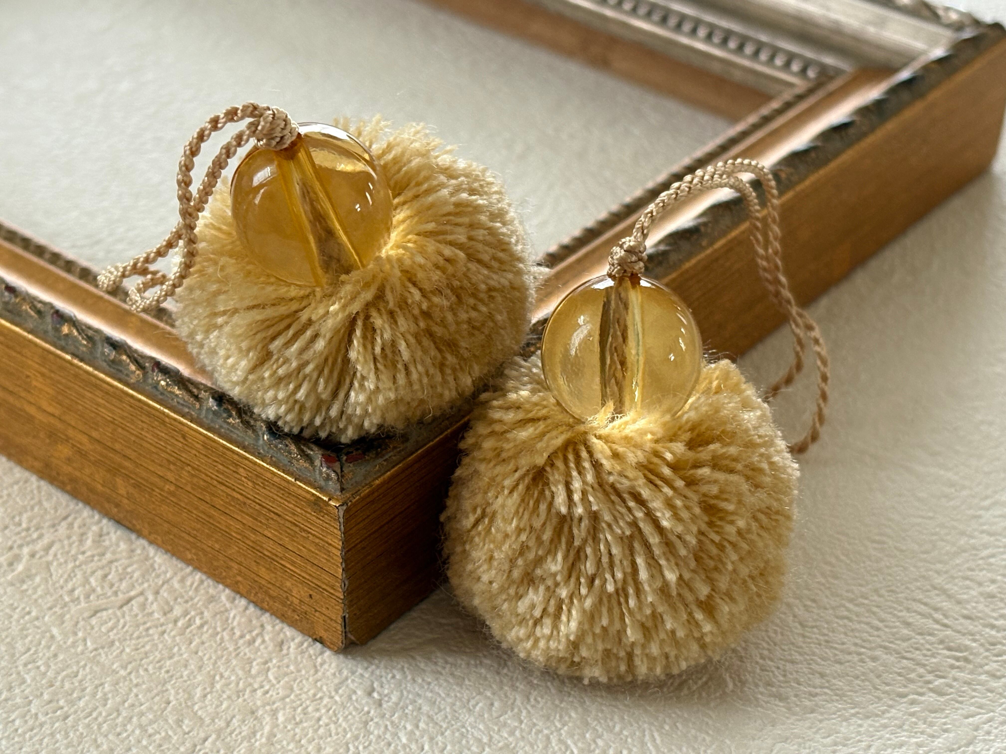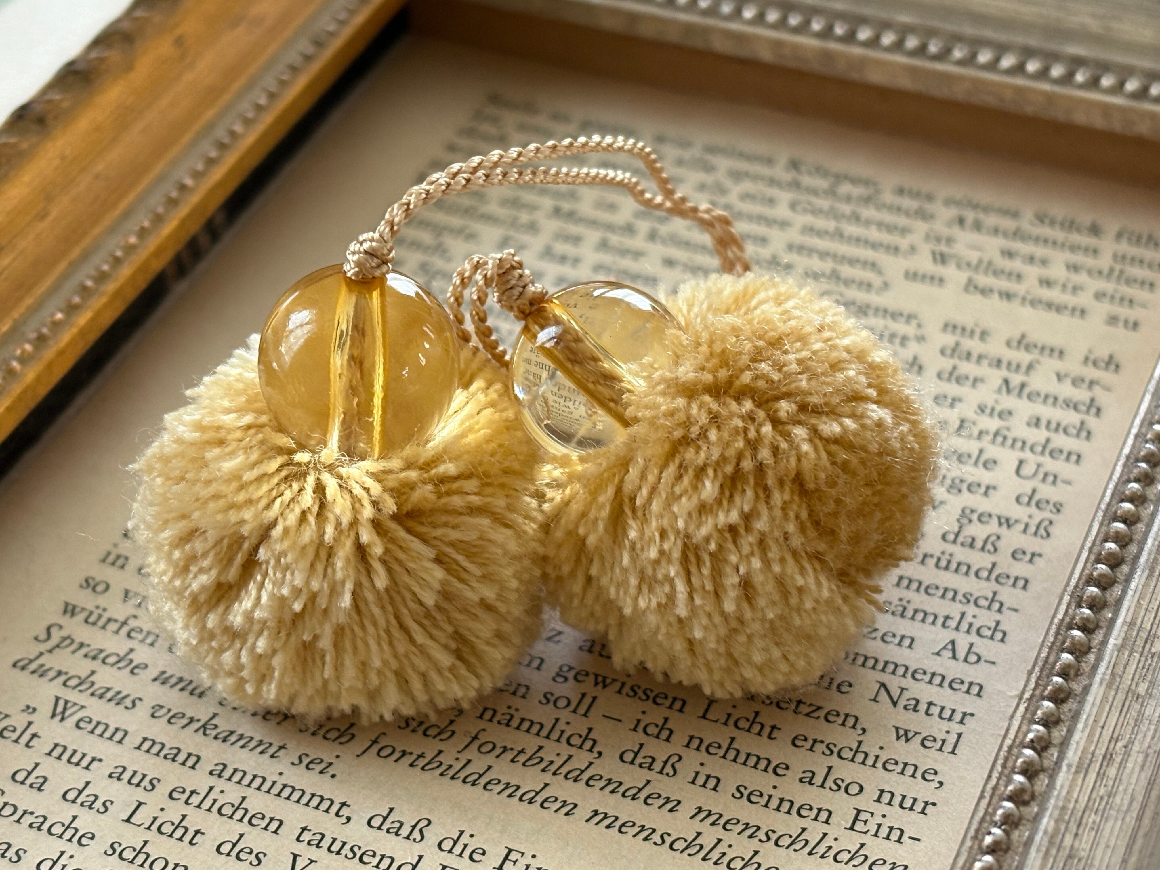 輸入デザインタッセル pompom タッセル ポンポンタッセル 30mm前後 ベージュ カルトナージュ デコレーション材 オーナメント