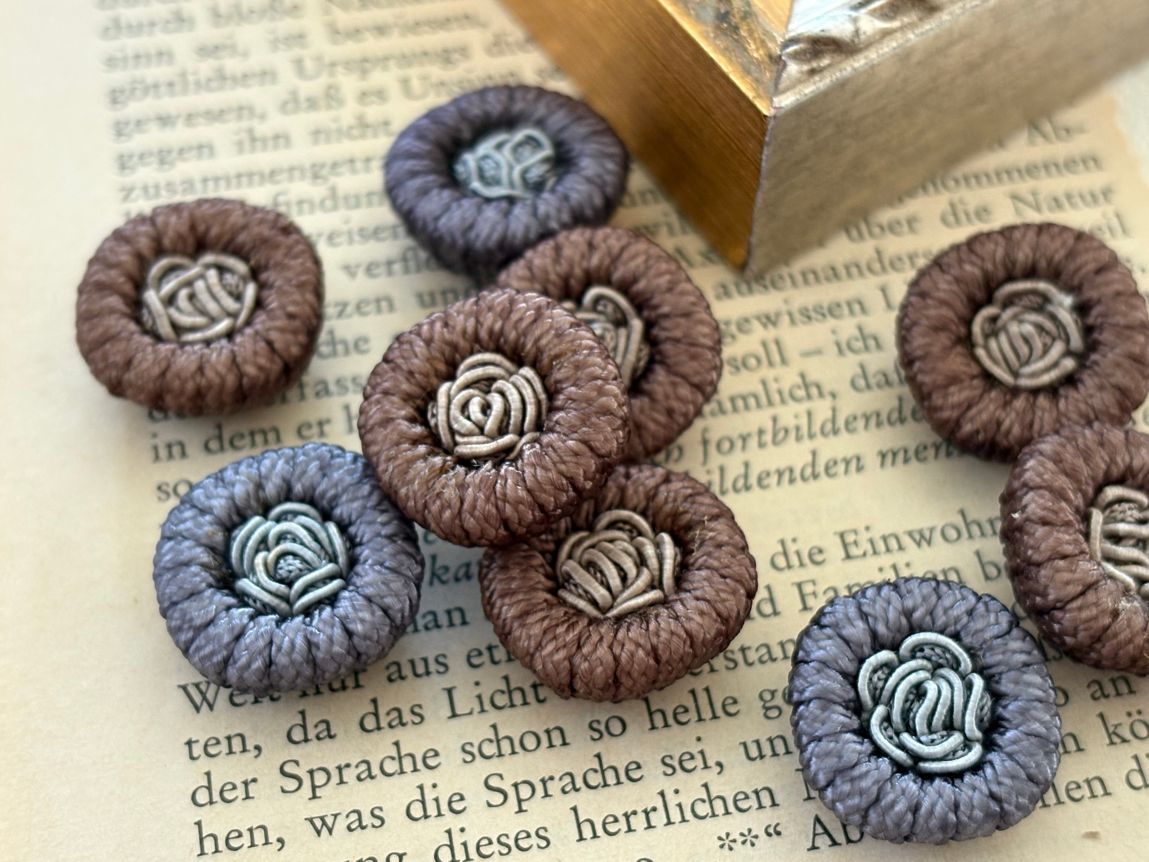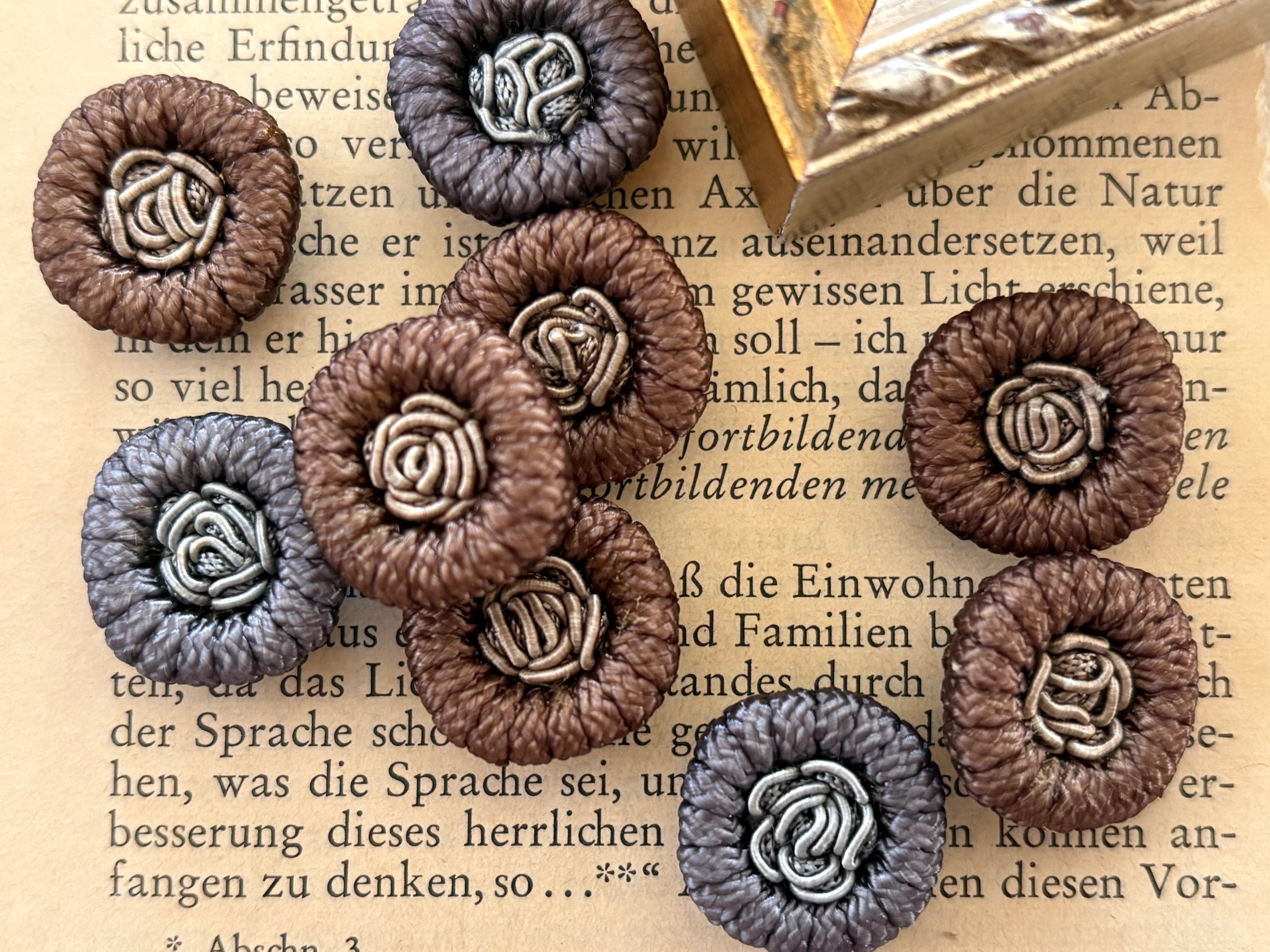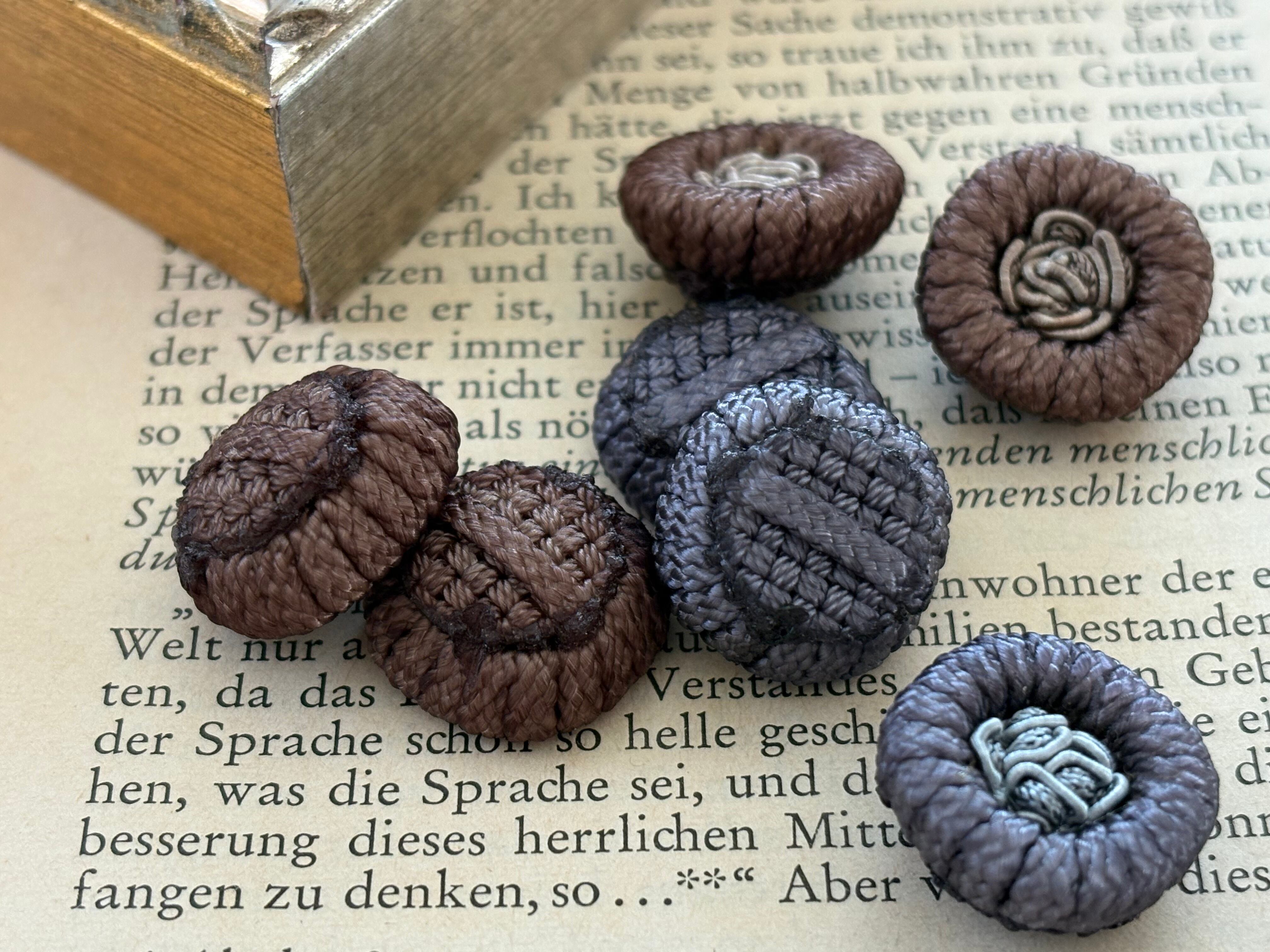 18mm Japanese ヴィンテージボタン コードボタン グレー/ブラウン デッドストック アクセサリーパーツ 装飾材 カルトナージュ
