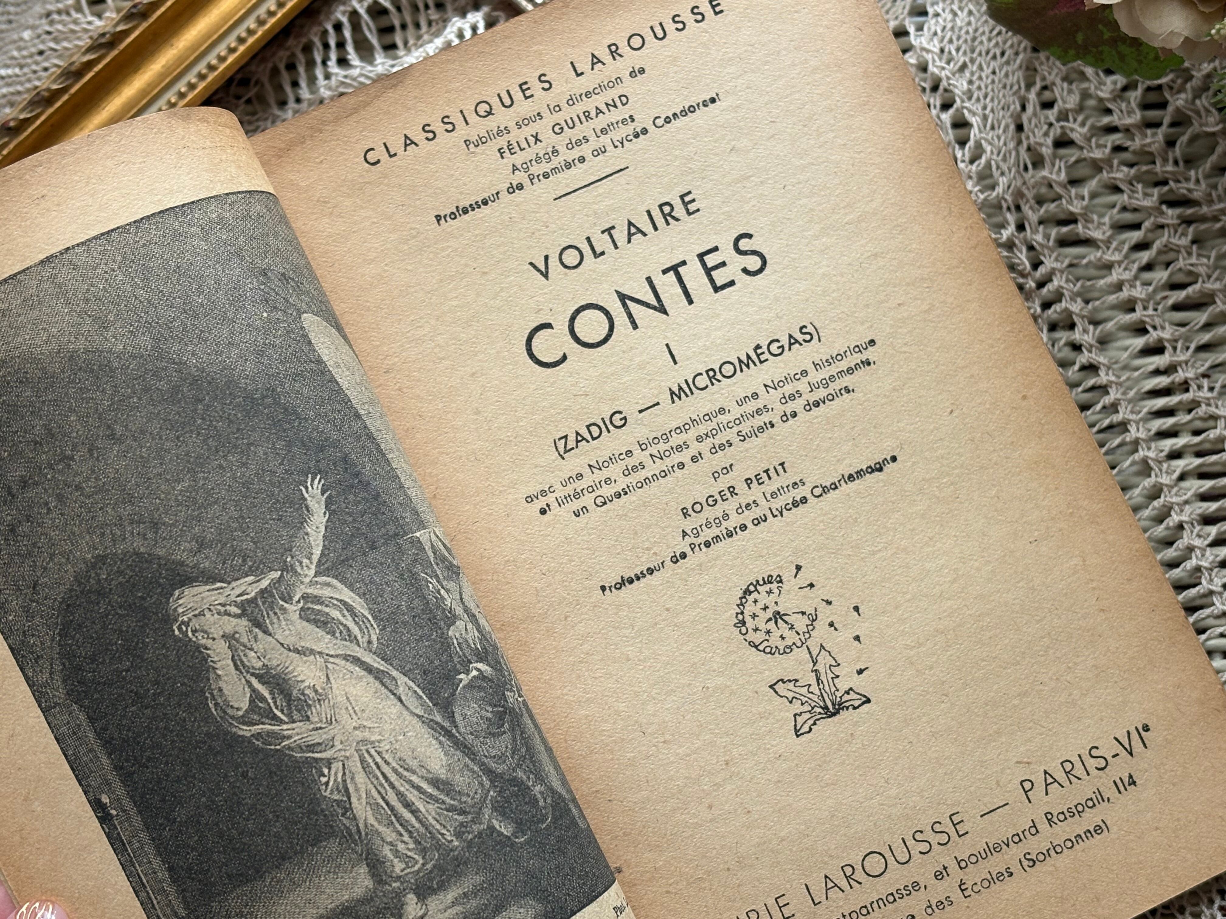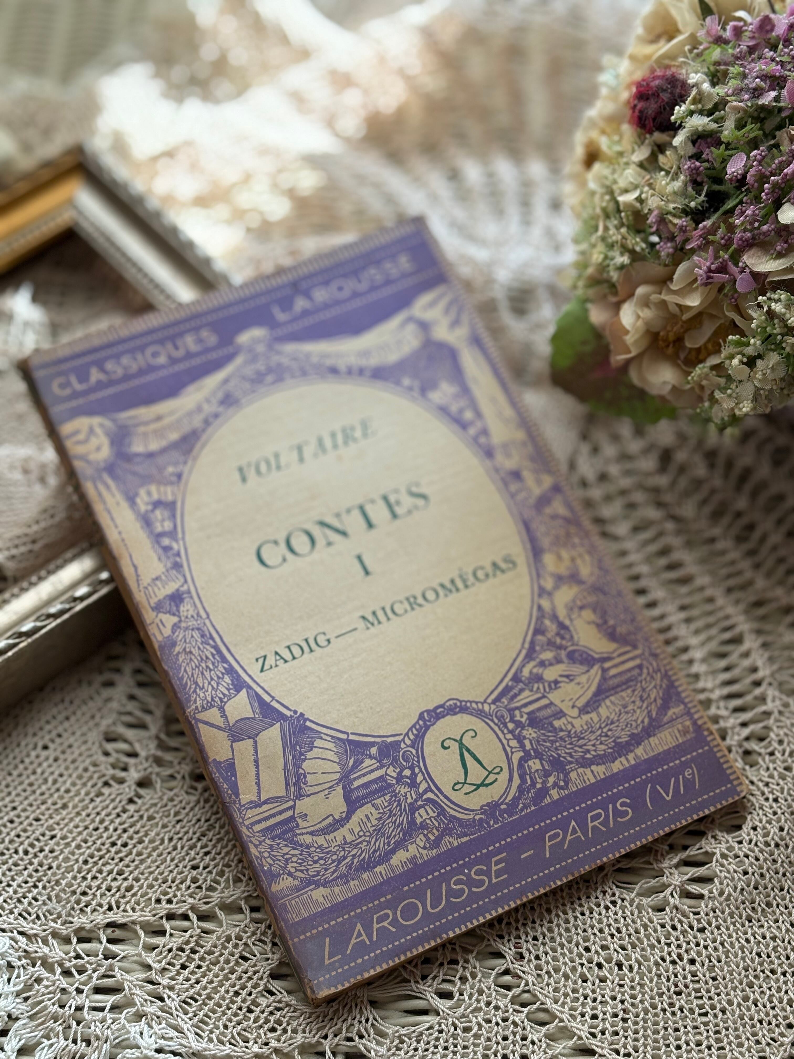 フランスアンティーク CLASSIQUES LAROUSSE VOLTAIRE CONTES Ⅰ 1930年代 パープル・紫 洋書 古書 インテリア小物