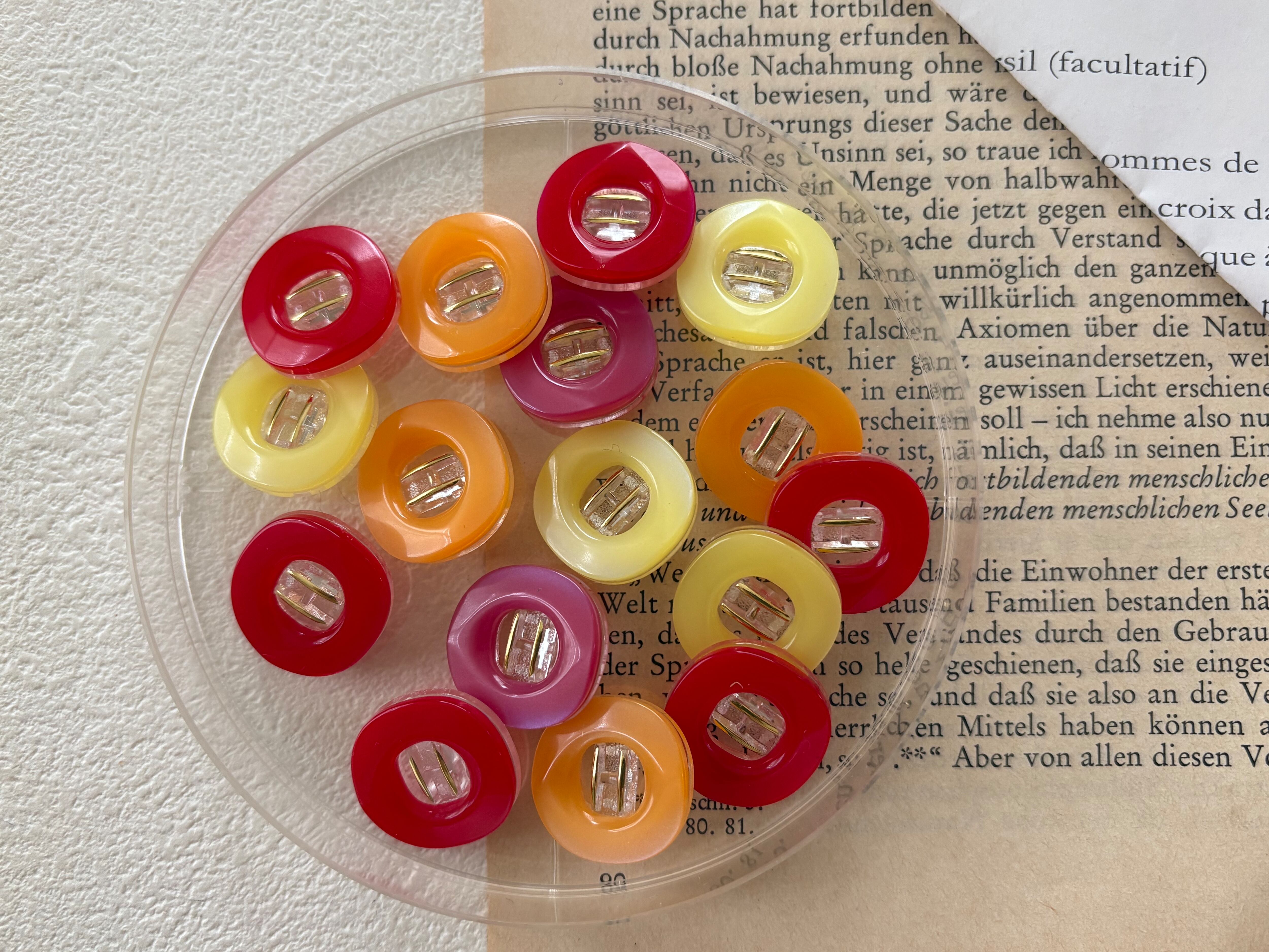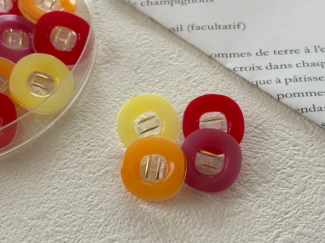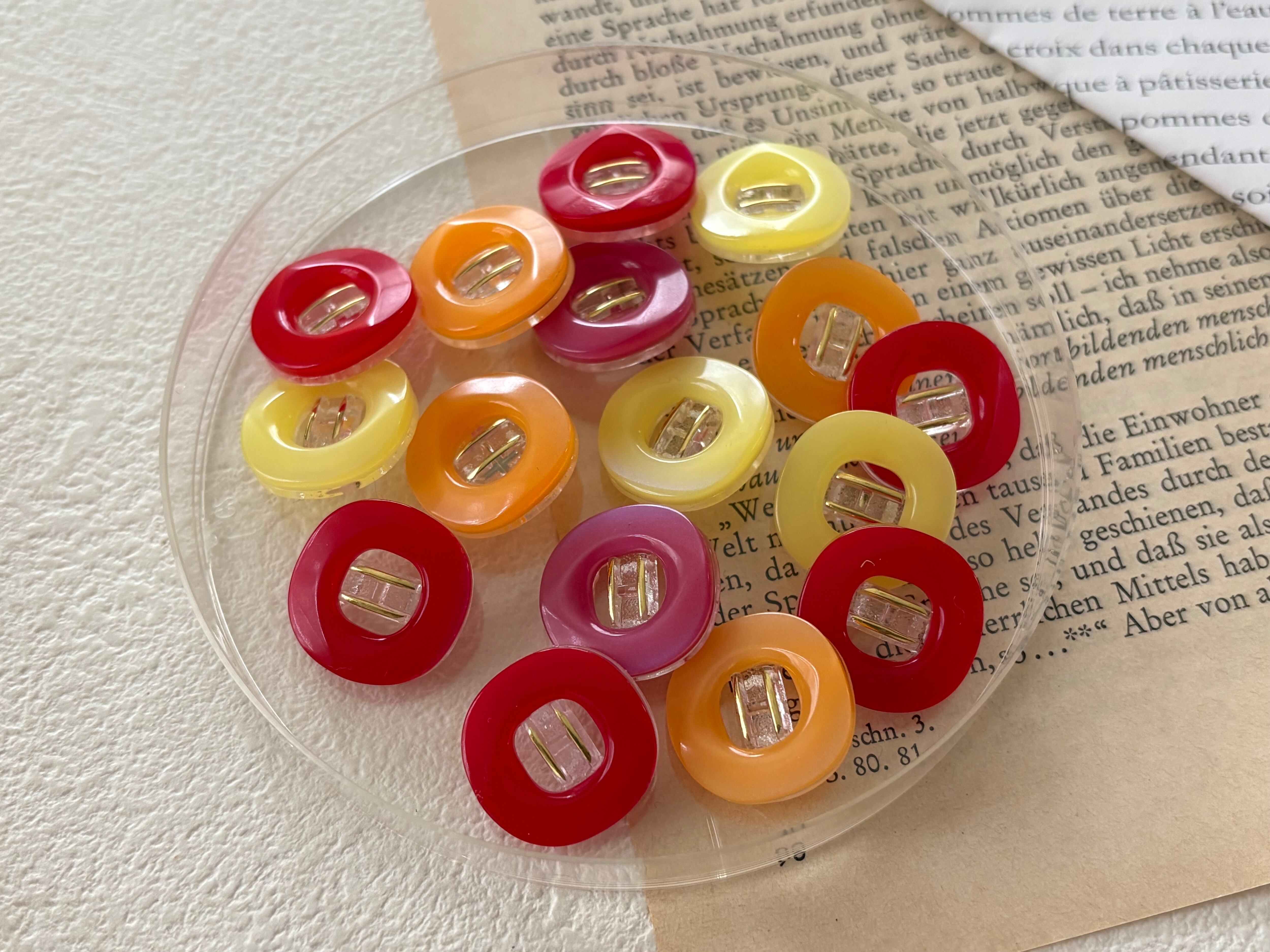 17mm Japanese Vintage ボタン 角なしスクウェア レッド/イエロー/オレンジ/ピンク レトロ アクセサリーパーツ 装飾材 カルトナージュ