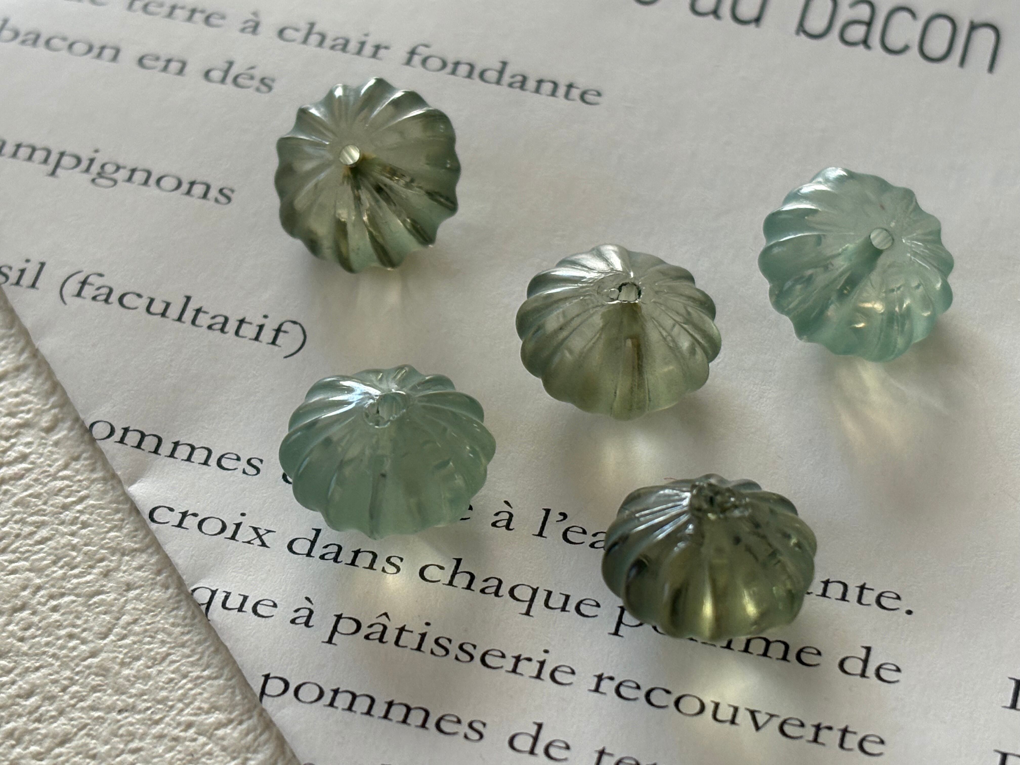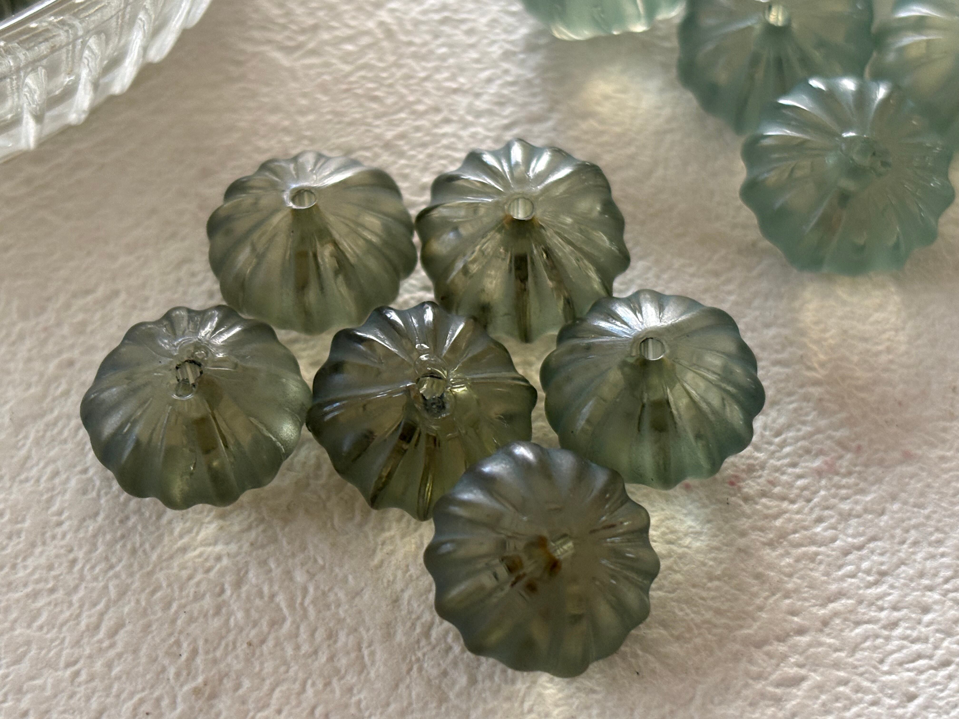 14mm Japanese ヴィンテージビーズ プラスチック製 パンプキン型 6個セット グリーン系 アクセサリーパーツ デコレーションパーツ