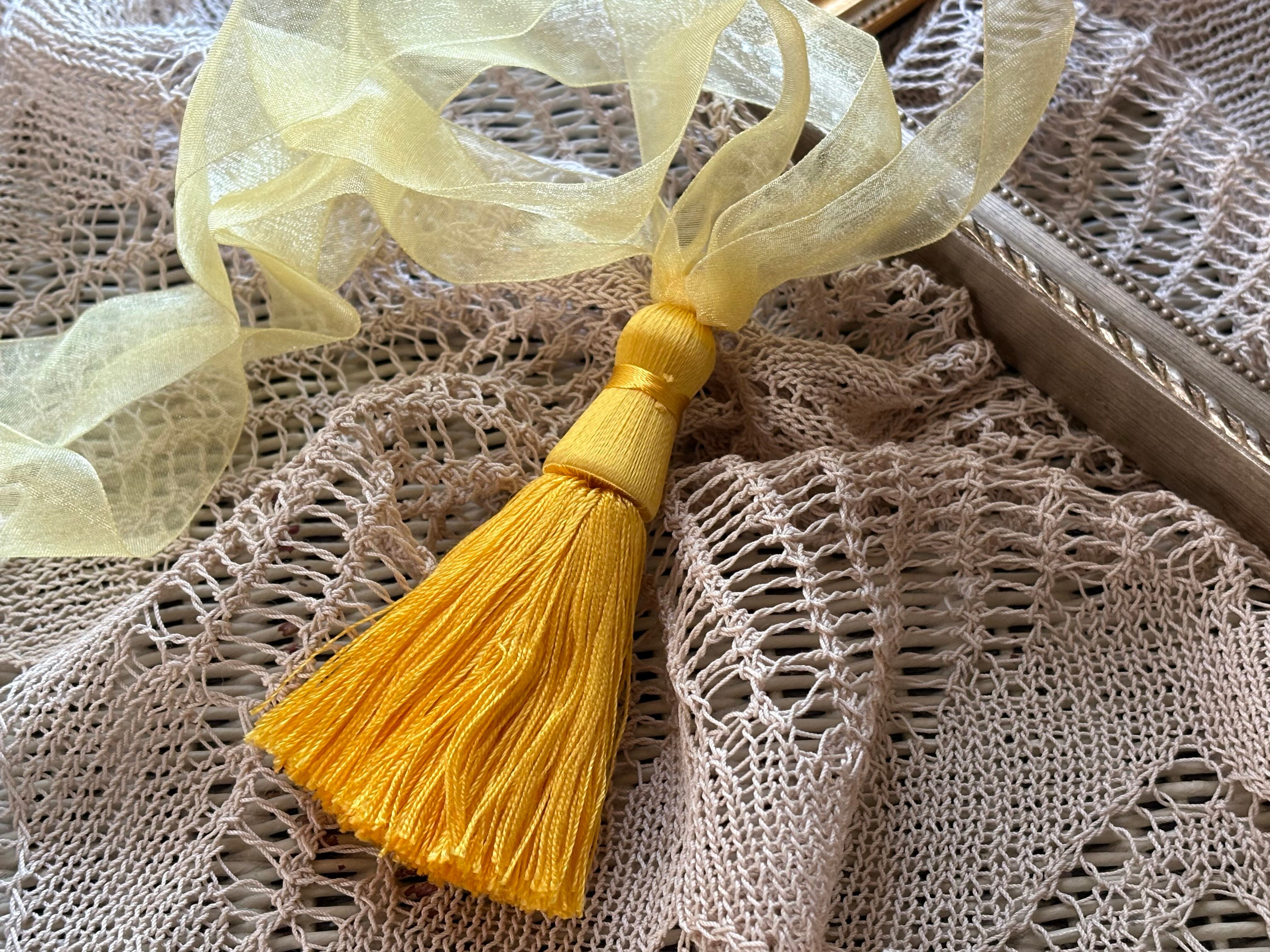 フランスVintage タッセル インテリアタッセル オーガンジー 9.5cm イエロー カルトナージュ インテリア ラッピング オーナメント