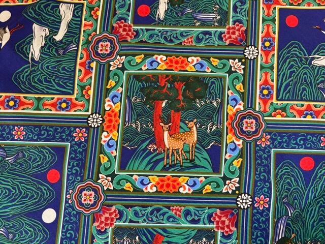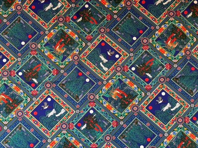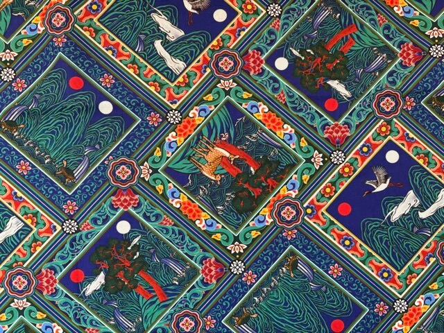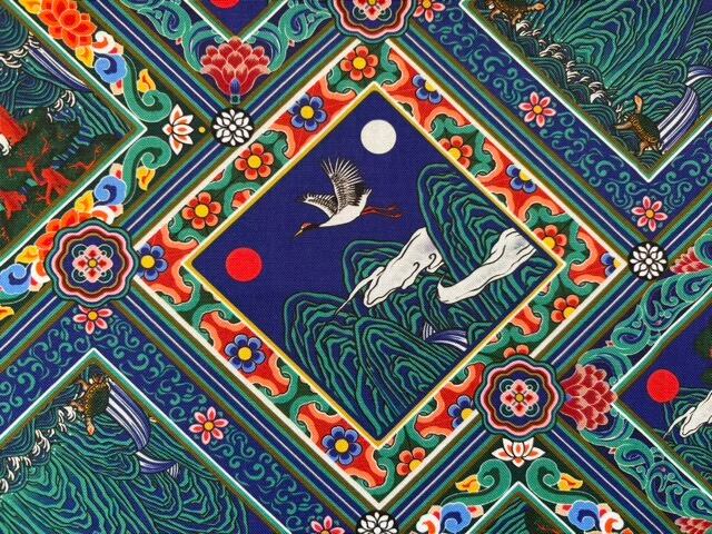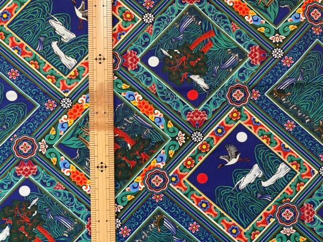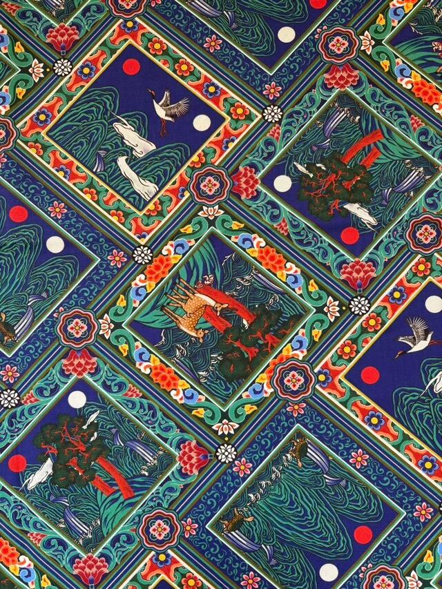 輸入コットンファブリック 韓国伝統柄 亀 鶴 鹿 KOREA 韓国製 カルトナージュ 総柄 マルチカラー