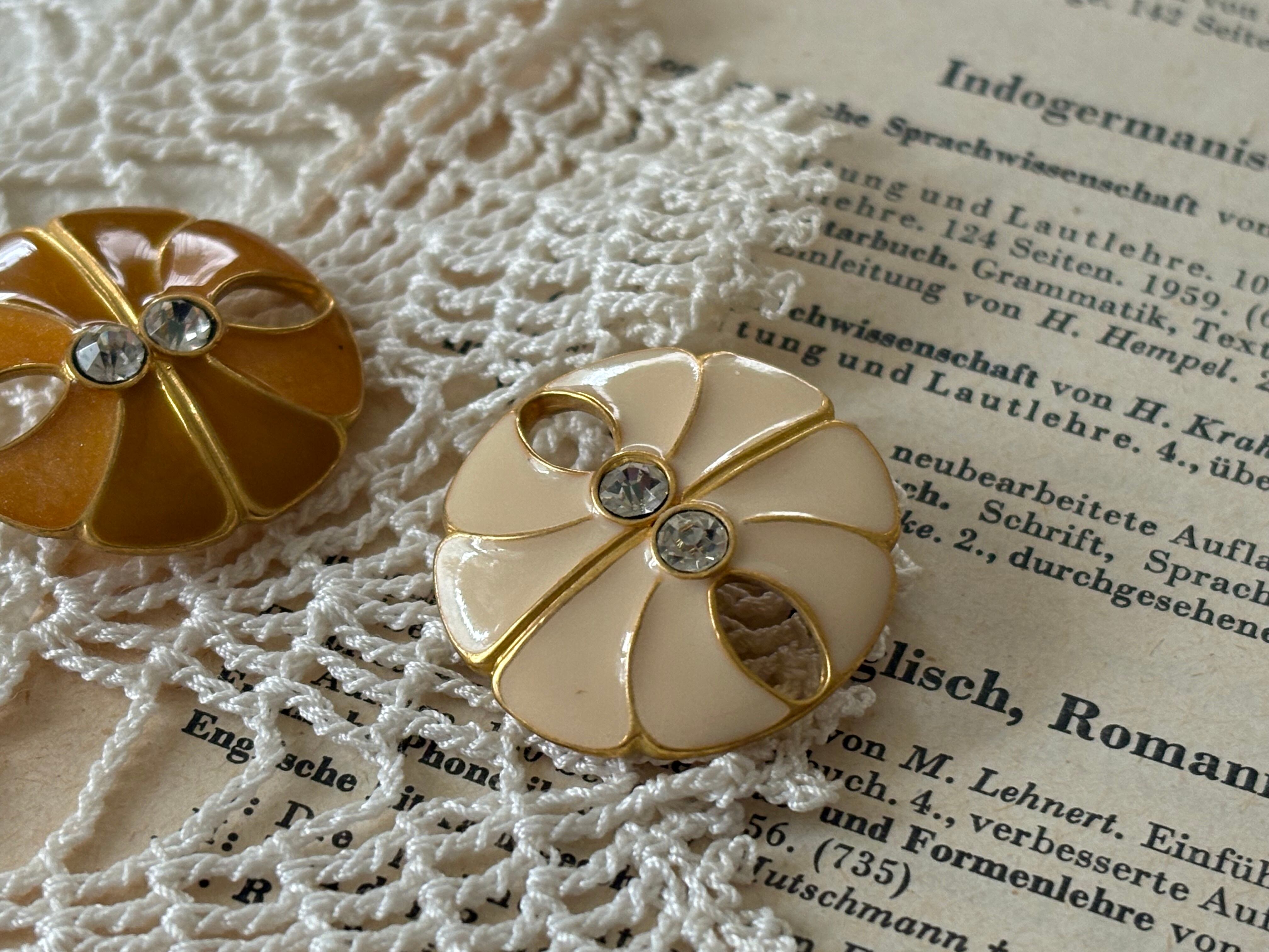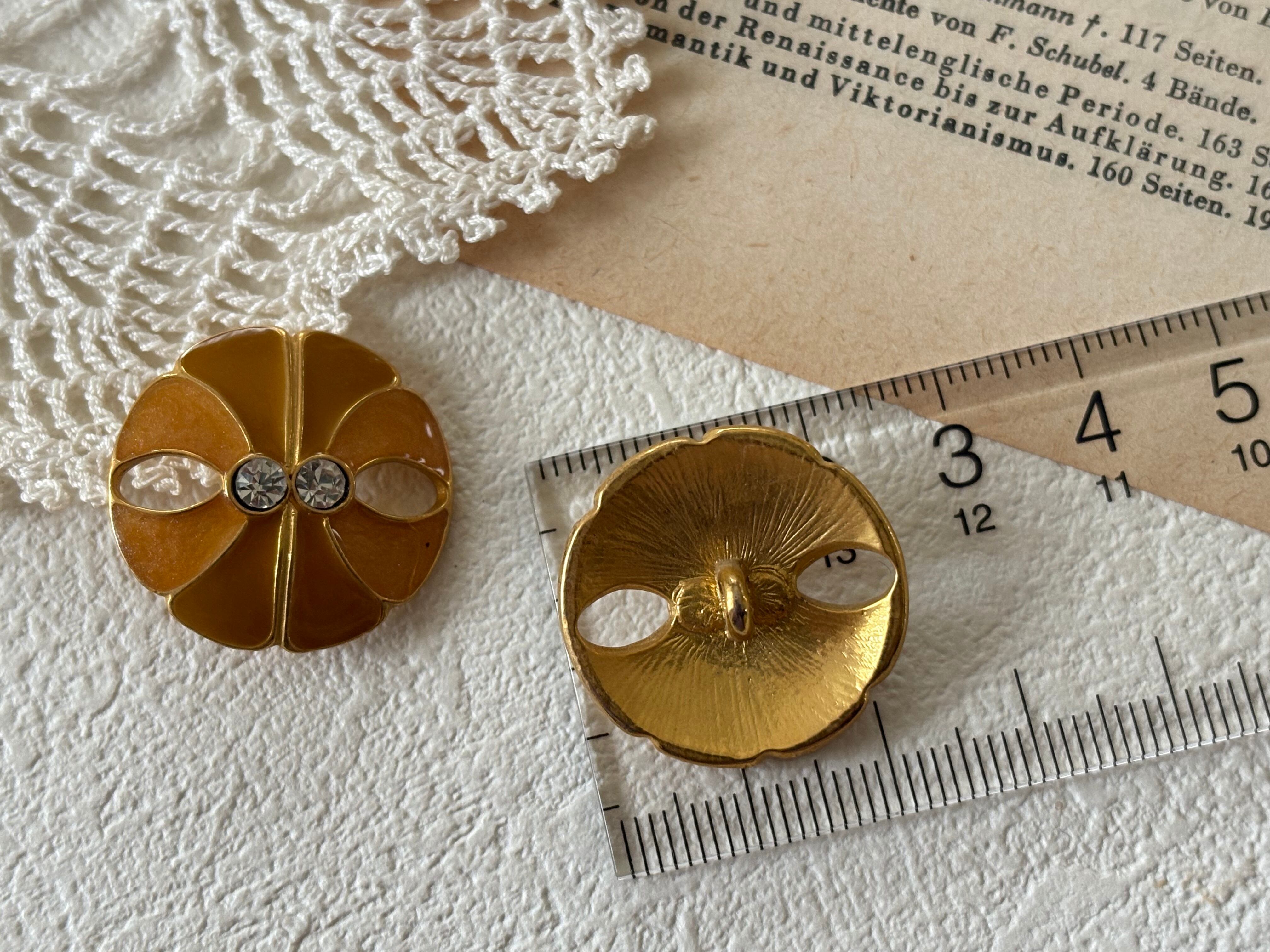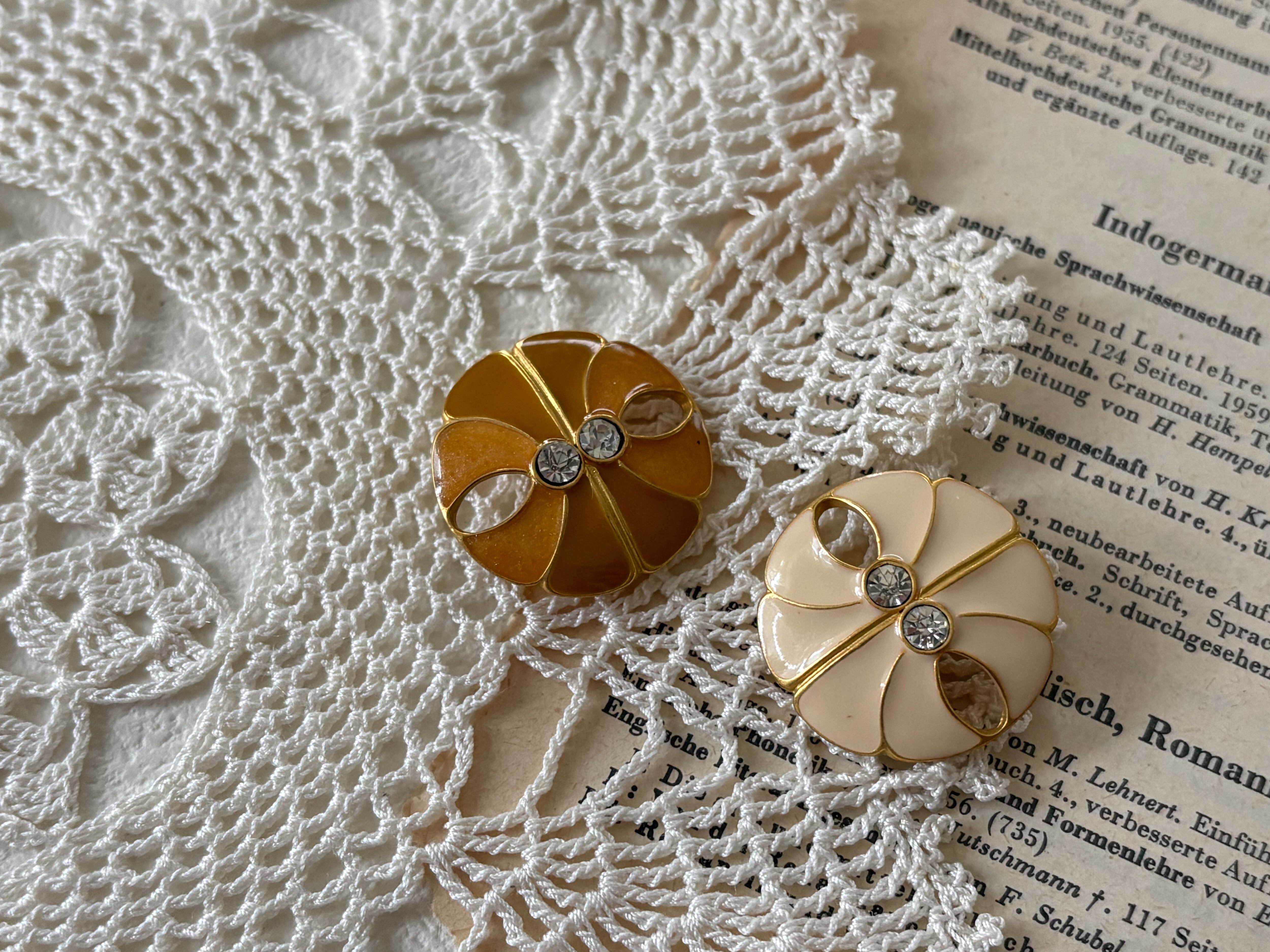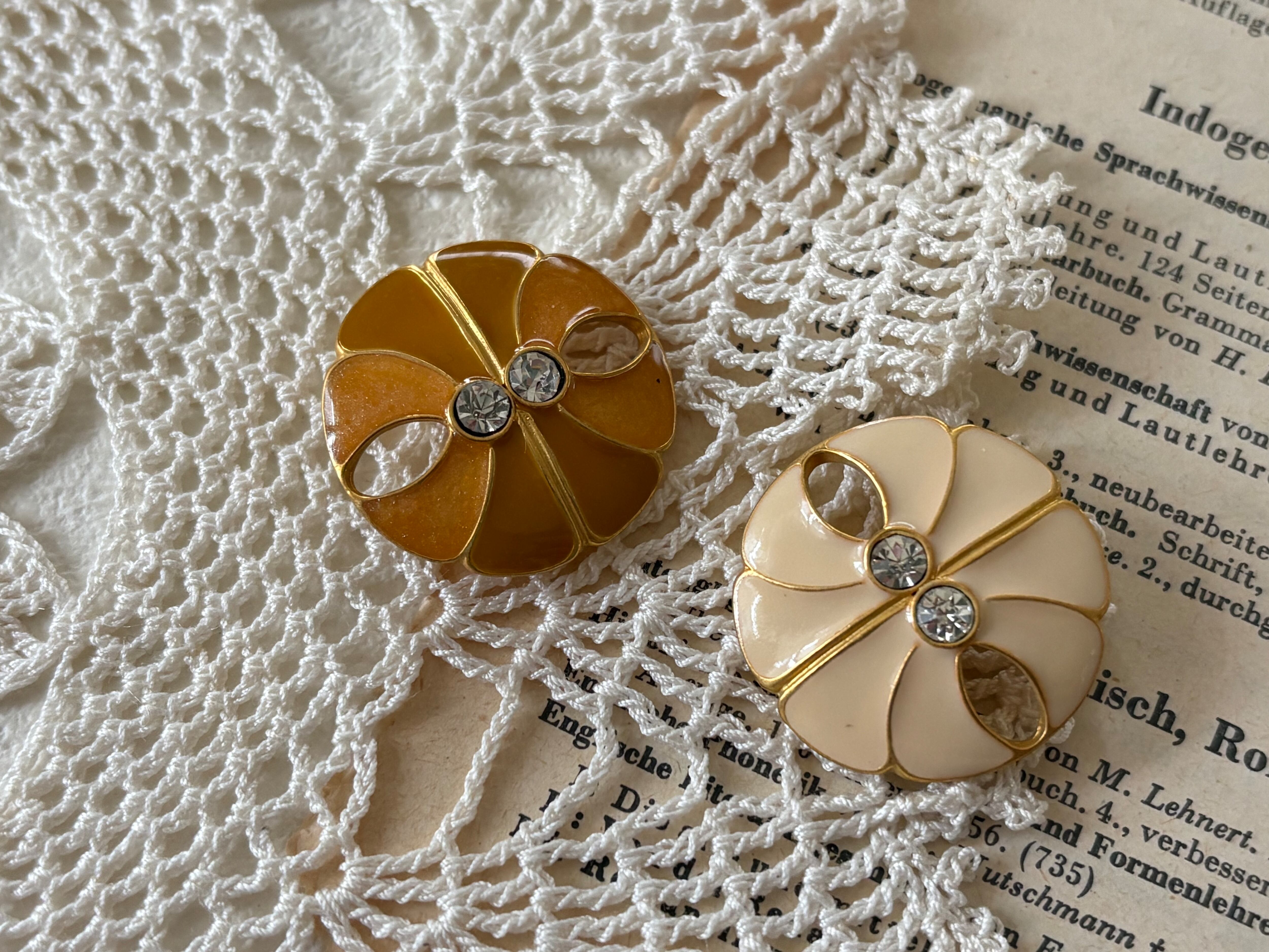 23mm Japanese ヴィンテージボタン メタルボタン アイボリー/オレンジ系 ストーン アクセサリーパーツ 装飾材