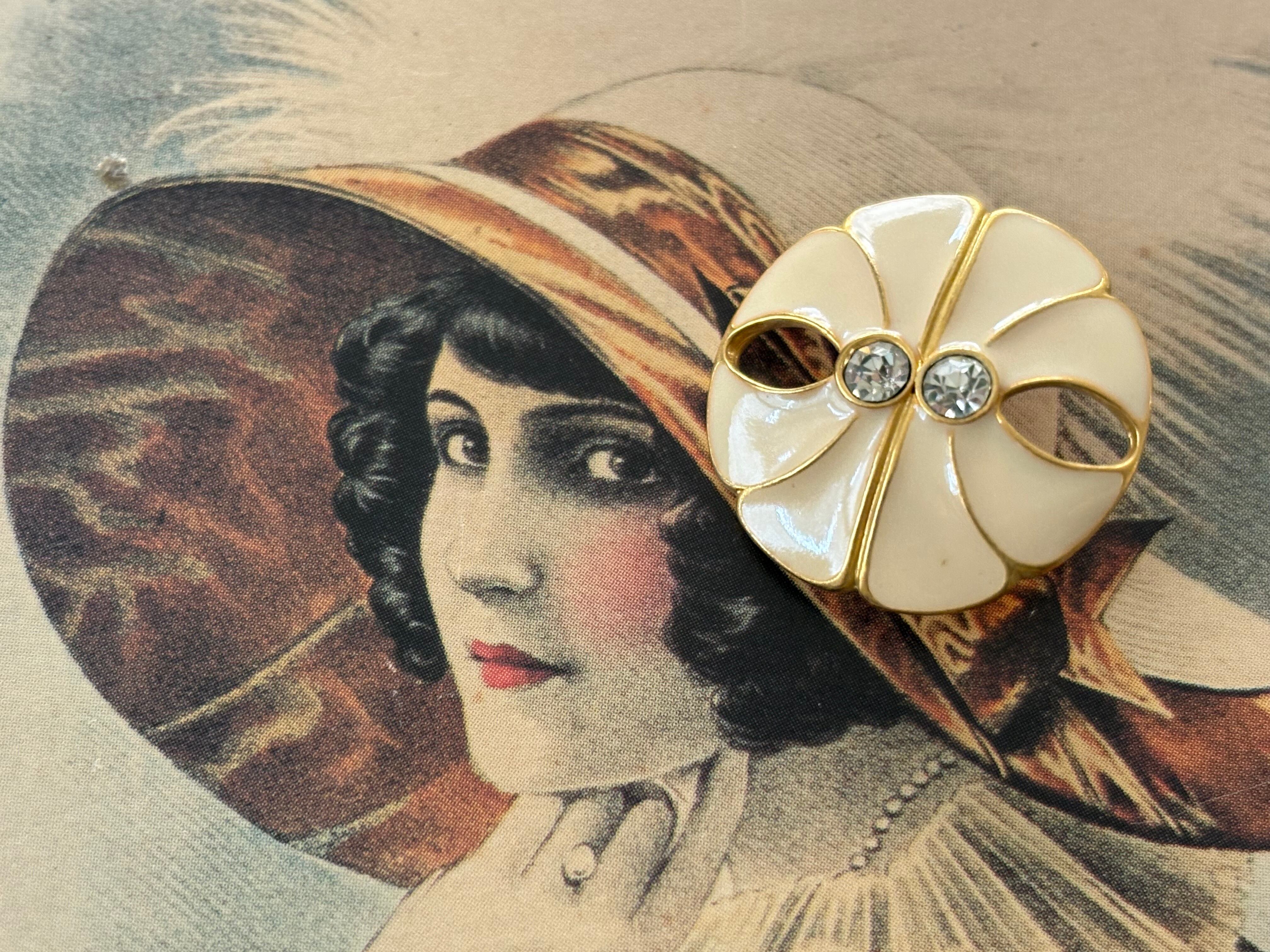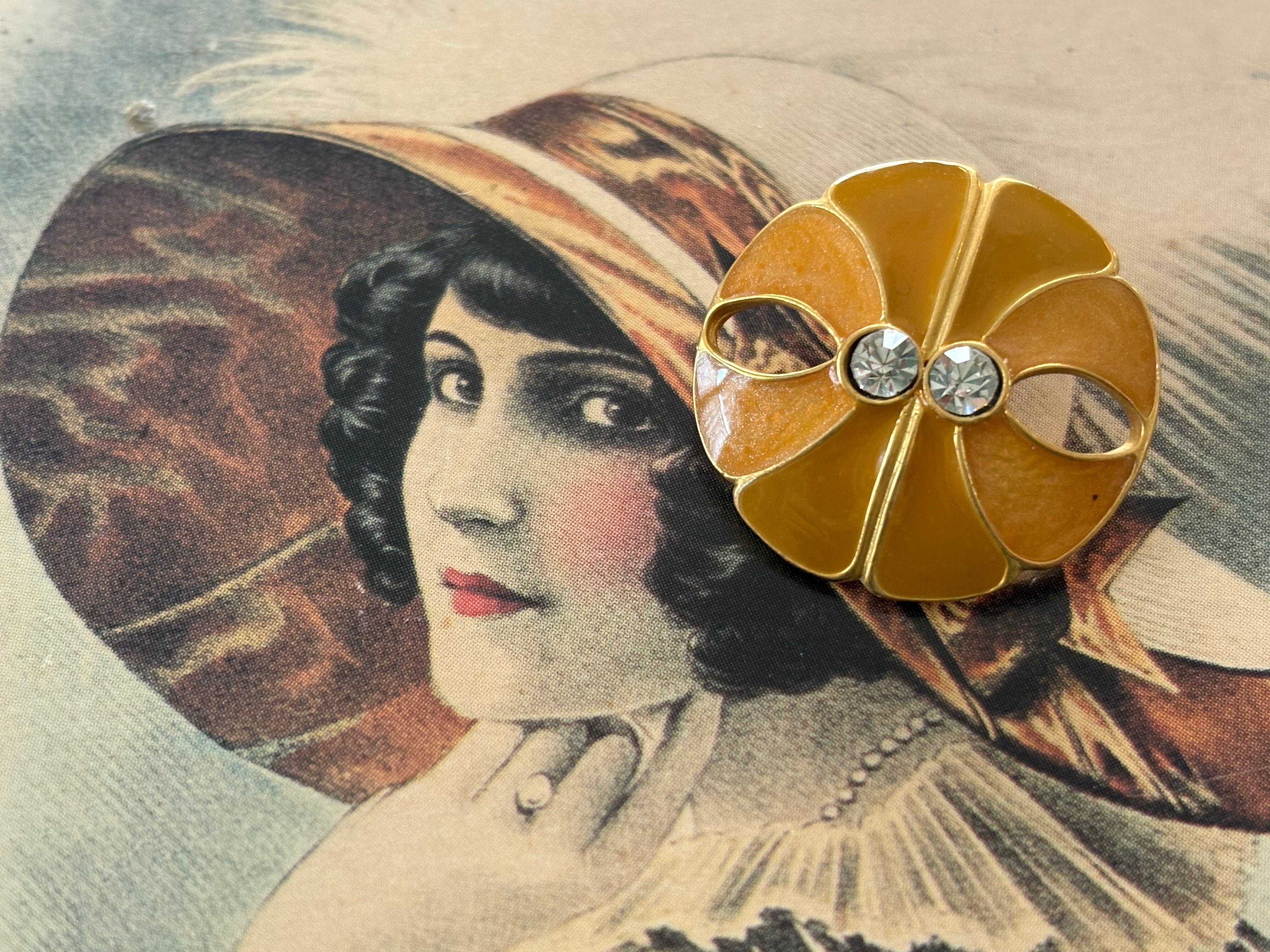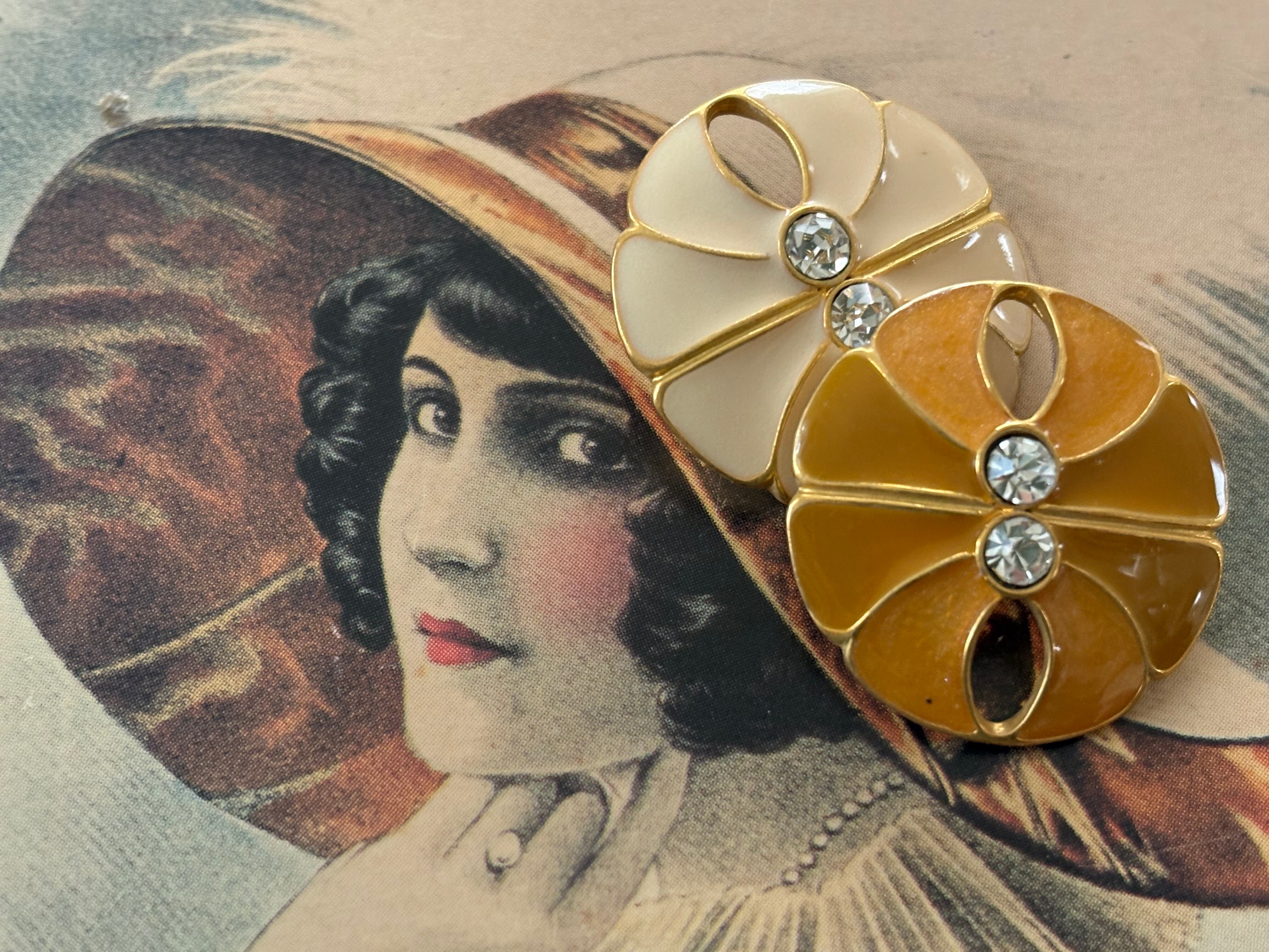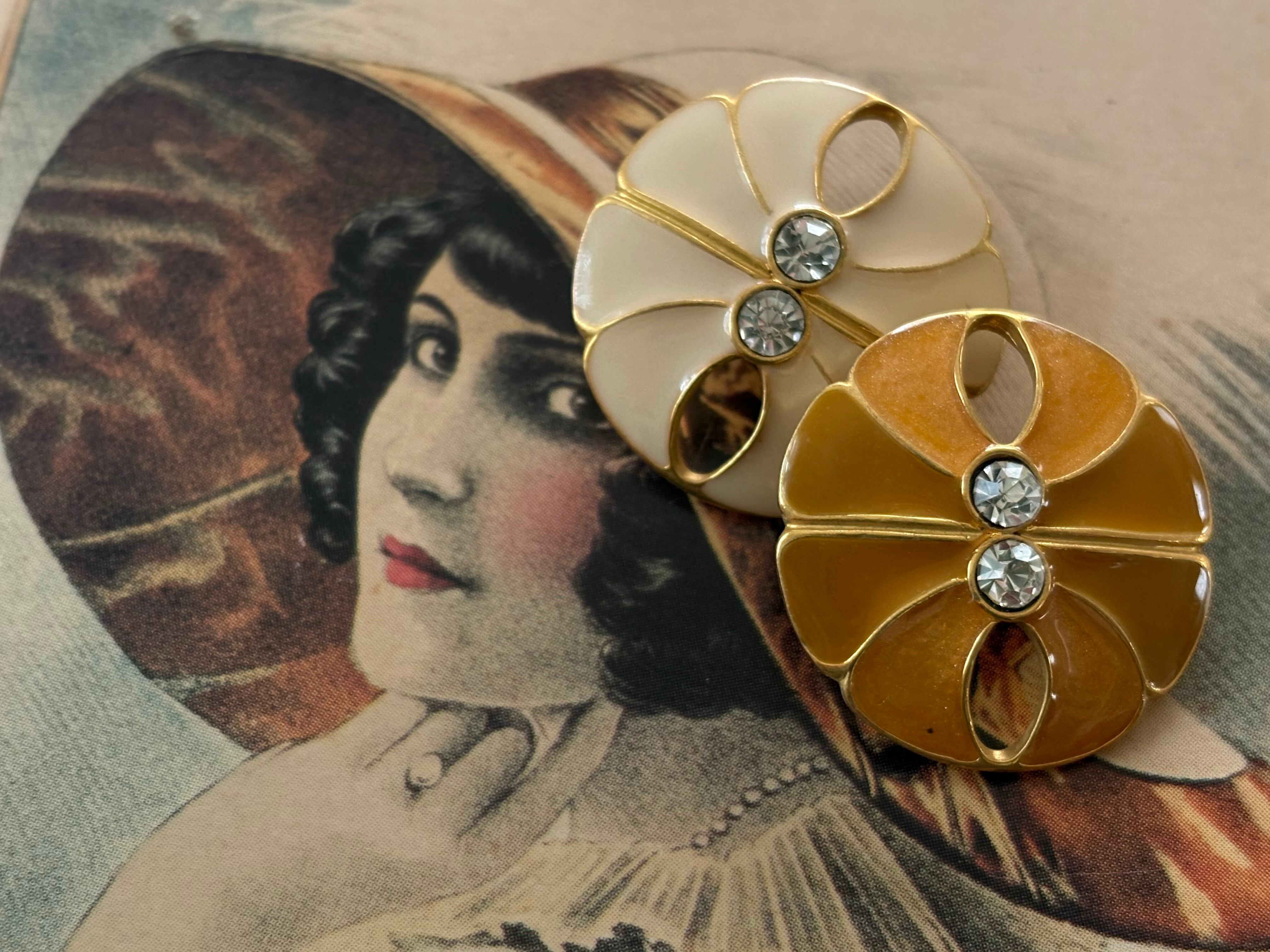 23mm Japanese ヴィンテージボタン メタルボタン アイボリー/オレンジ系 ストーン アクセサリーパーツ 装飾材