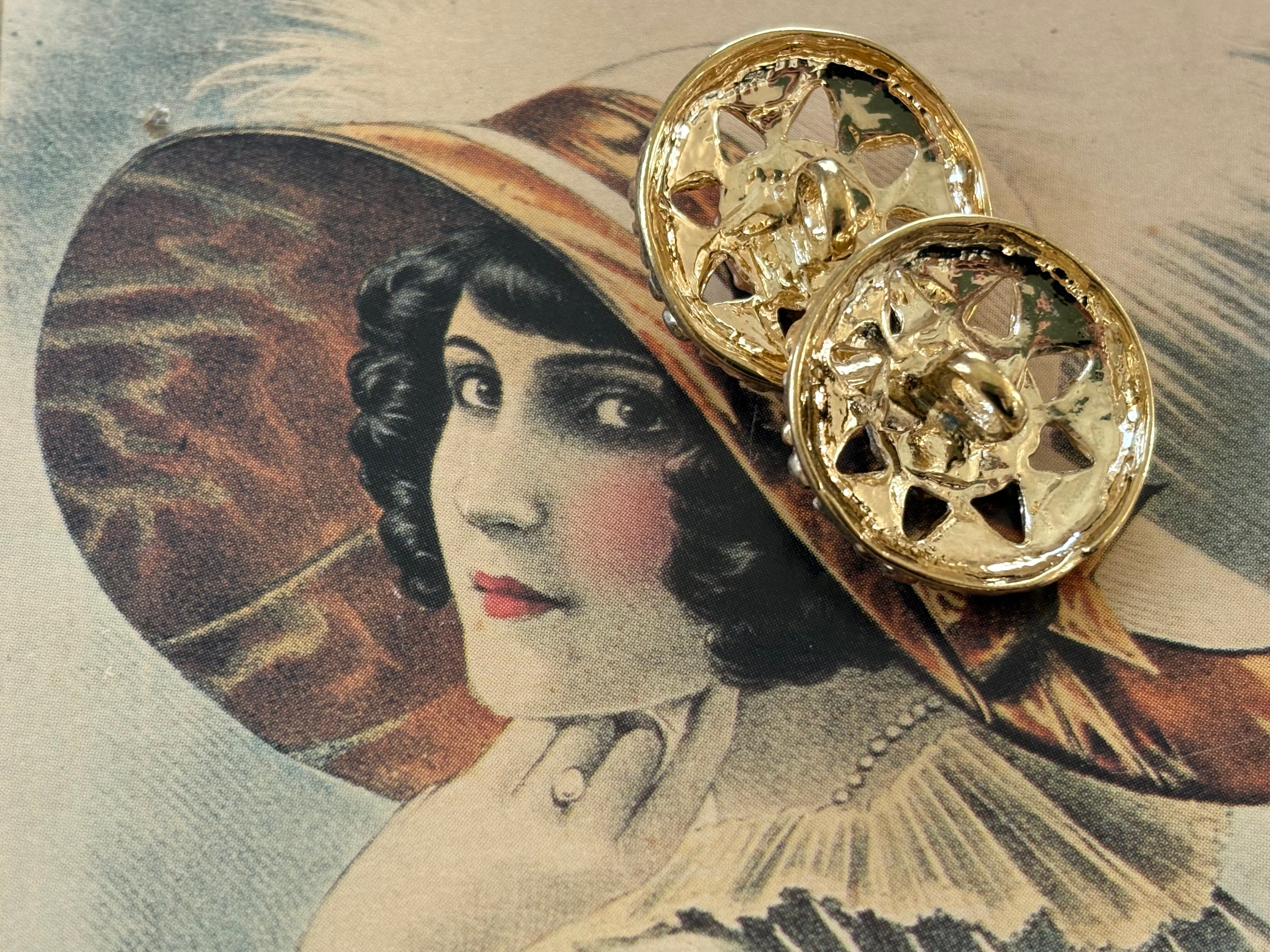 20mm 輸入デザインボタン 透かし マットゴールド 艶消し アクセサリーパーツ デコレーション材
