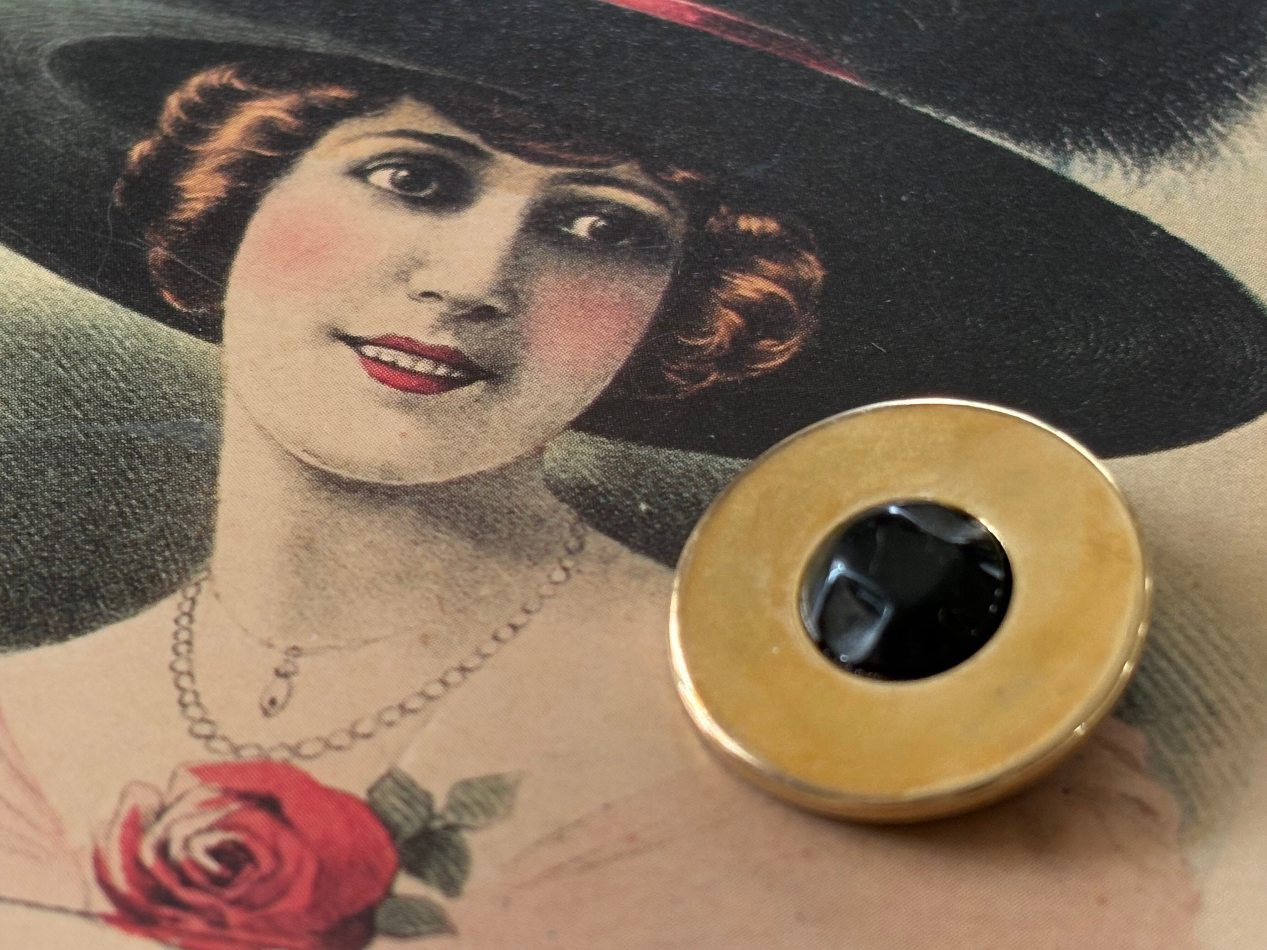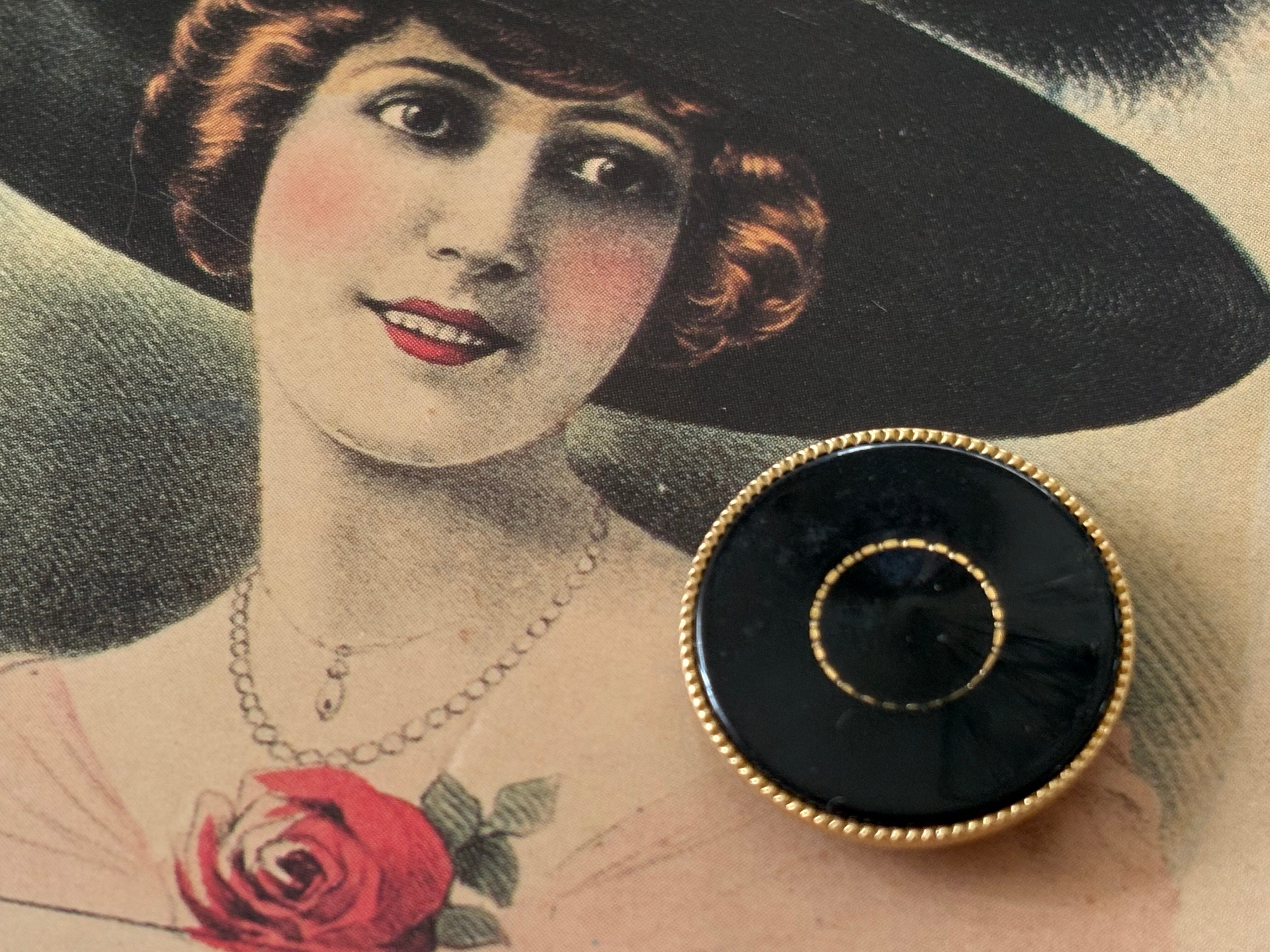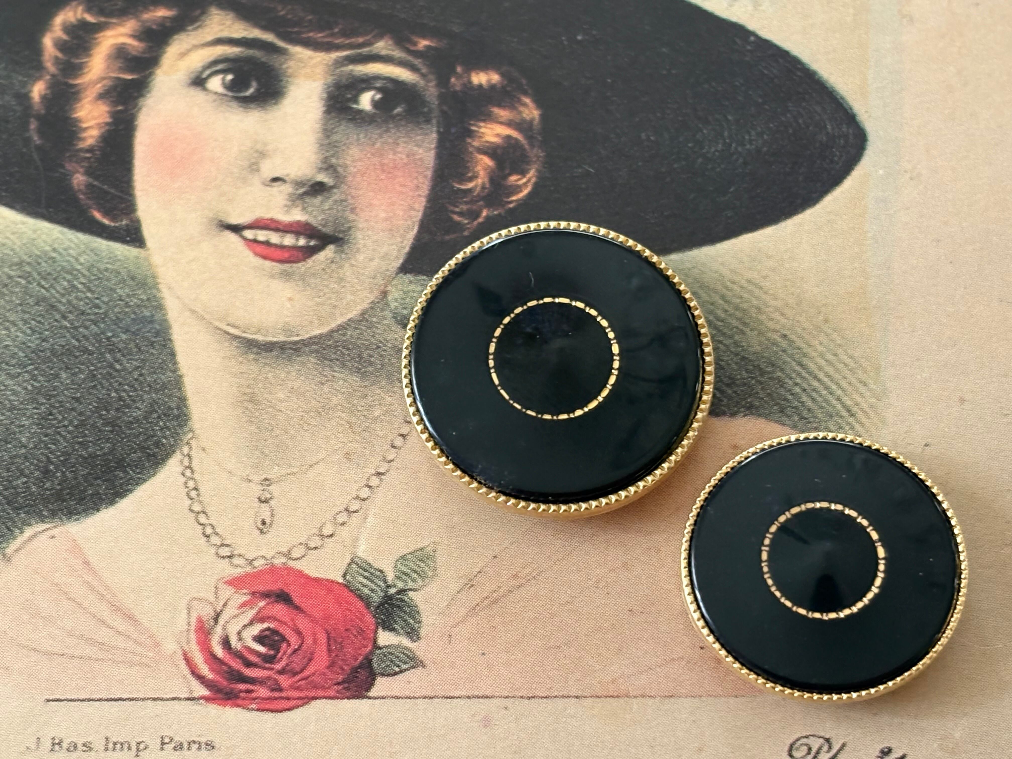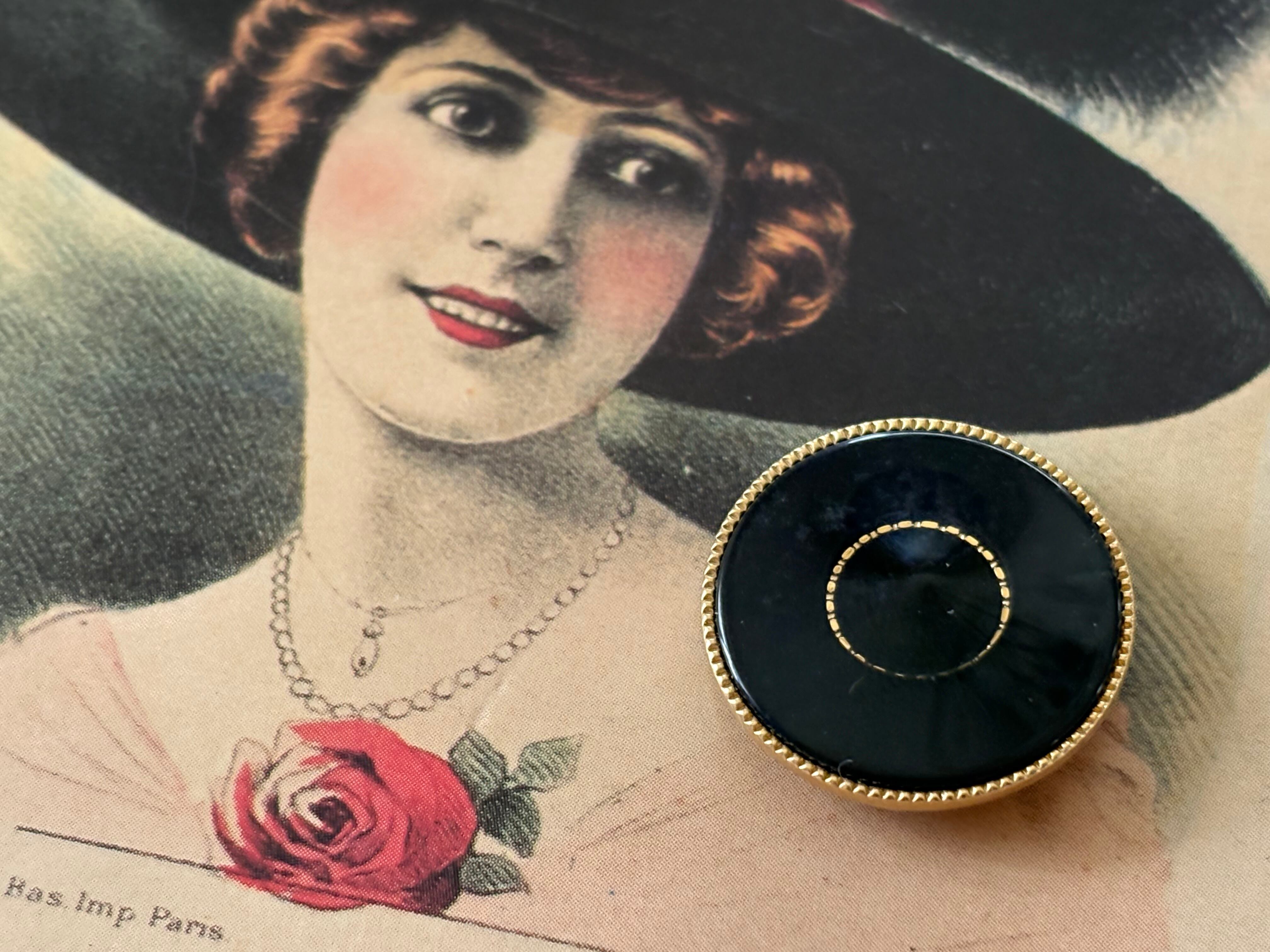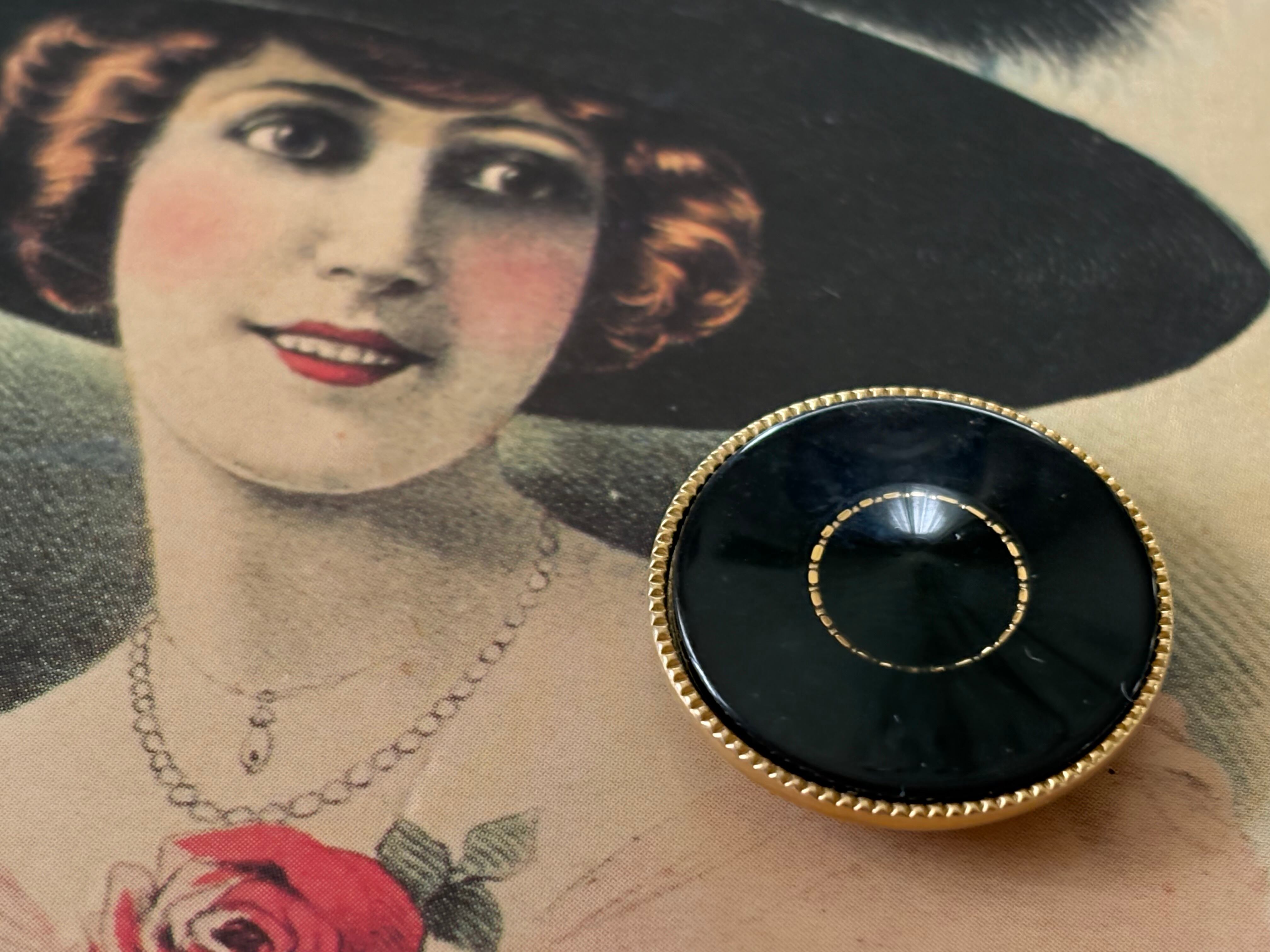 22mm Japaneseヴィンテージボタン レトロ ブラック×ゴールド メタル×樹脂 アクセサリーパーツ デコレーション材 レトロボタン