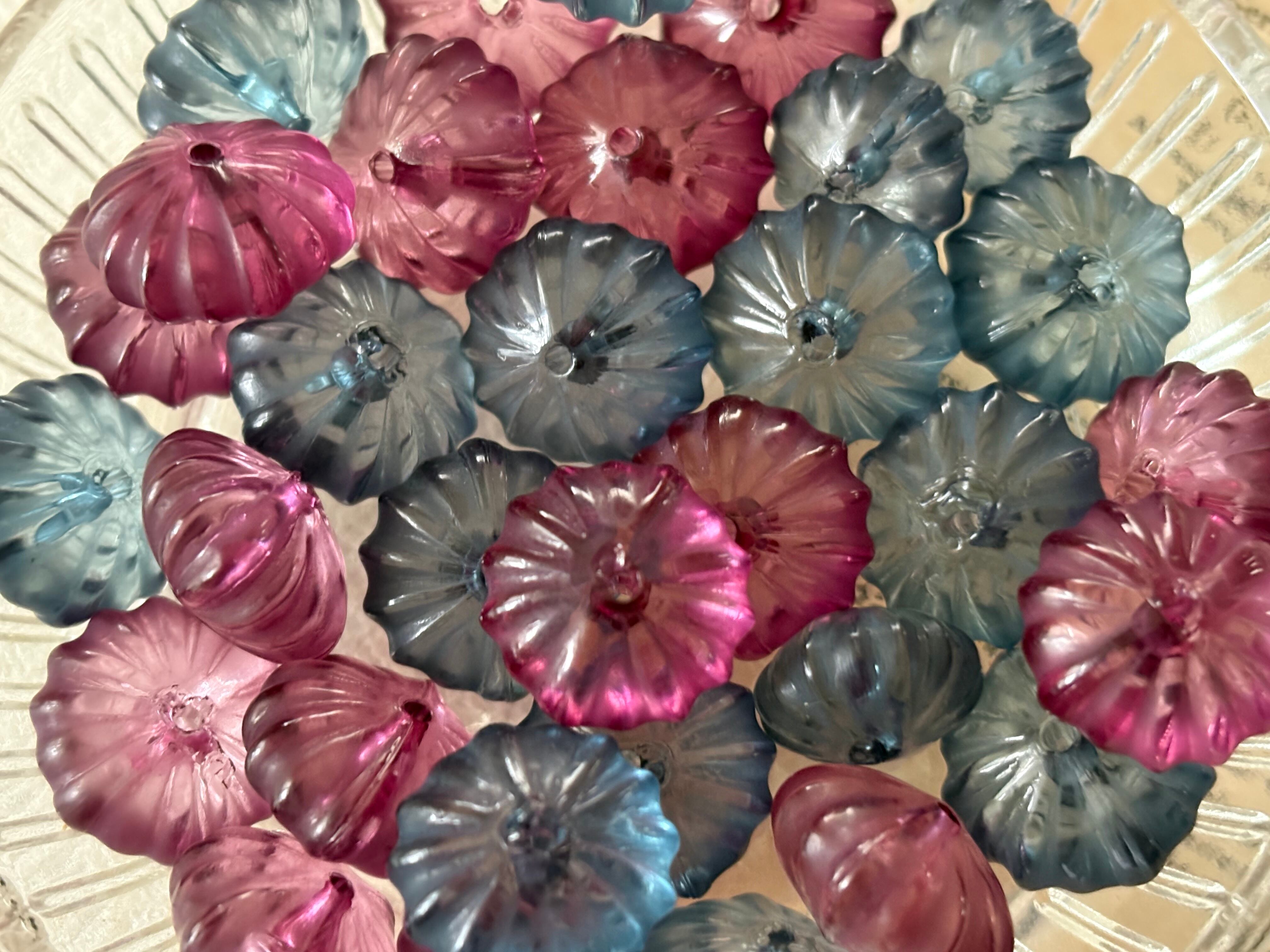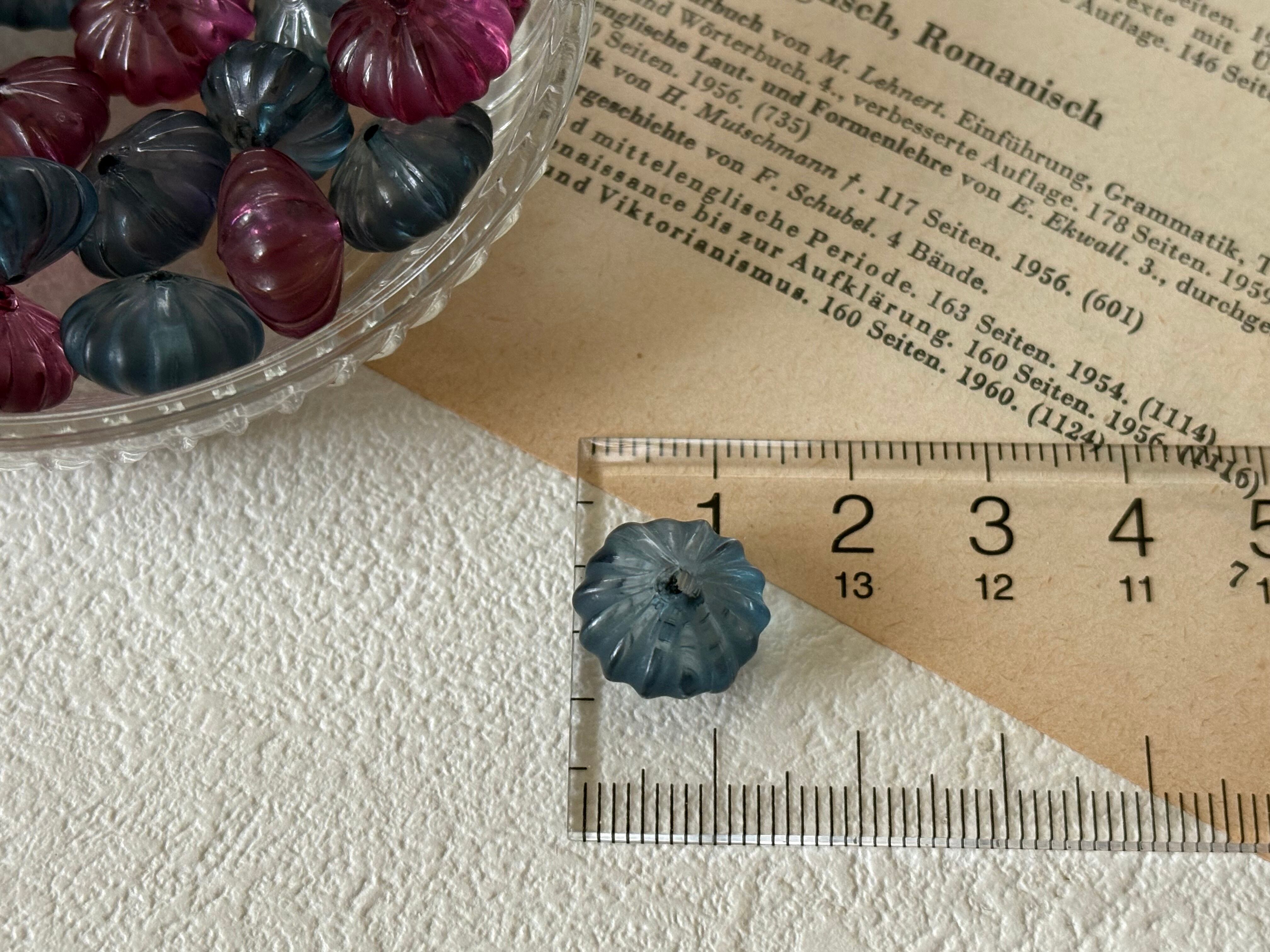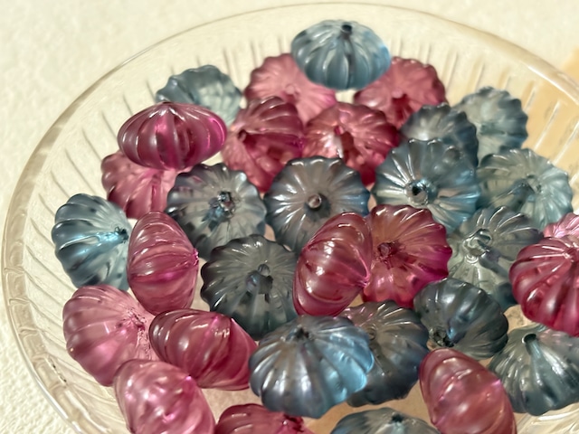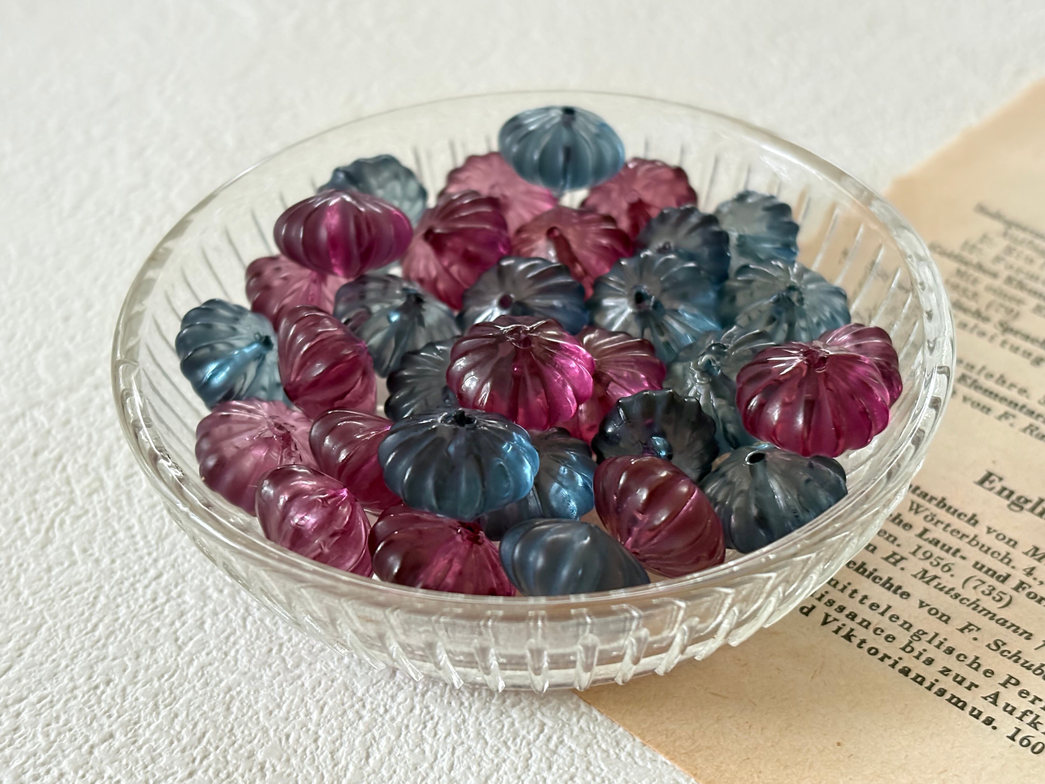 14mm Japanese ヴィンテージビーズ プラスチック製 パンプキン型 6個セット ブルー系/赤紫 アクセサリーパーツ デコレーションパーツ