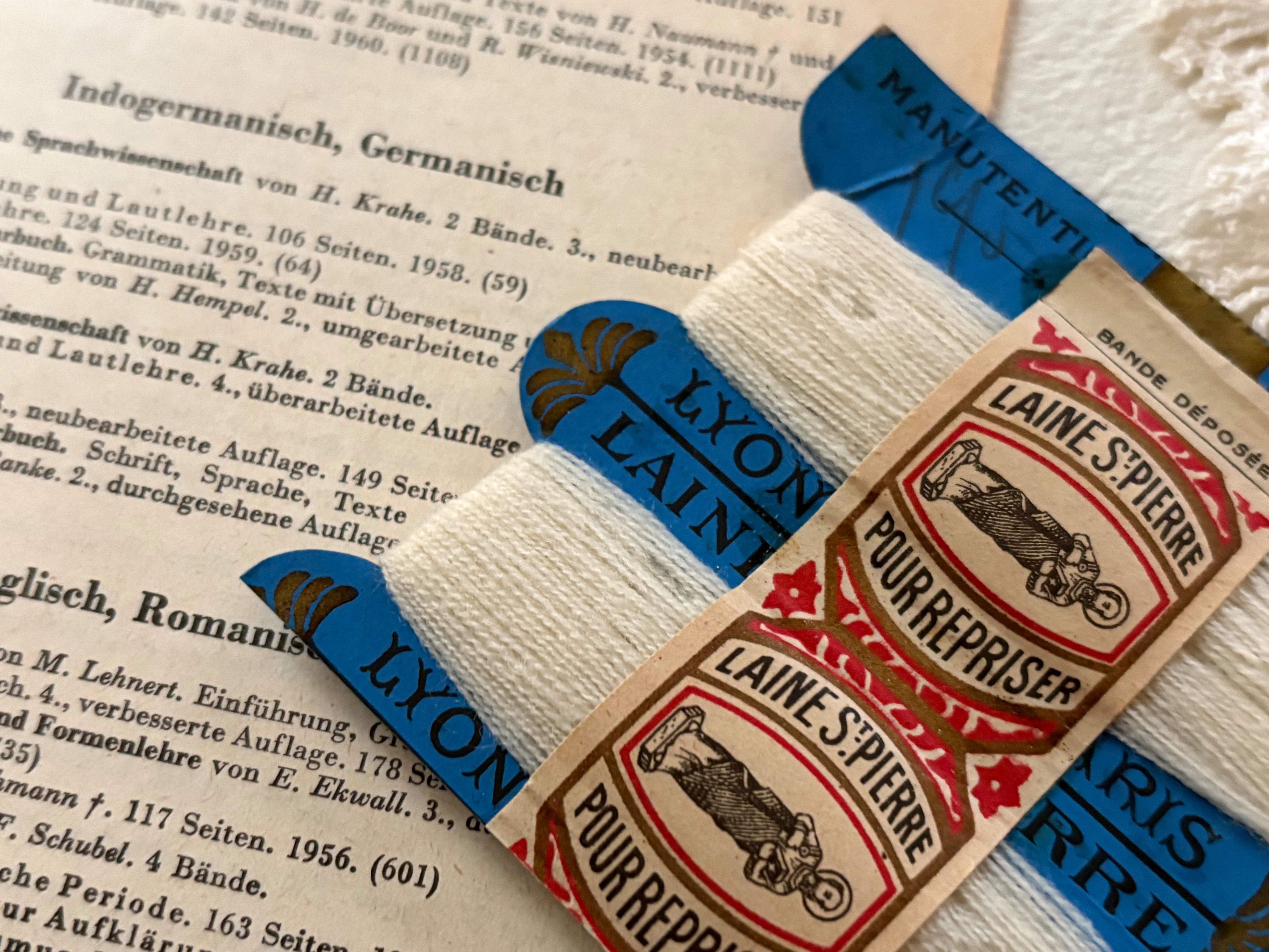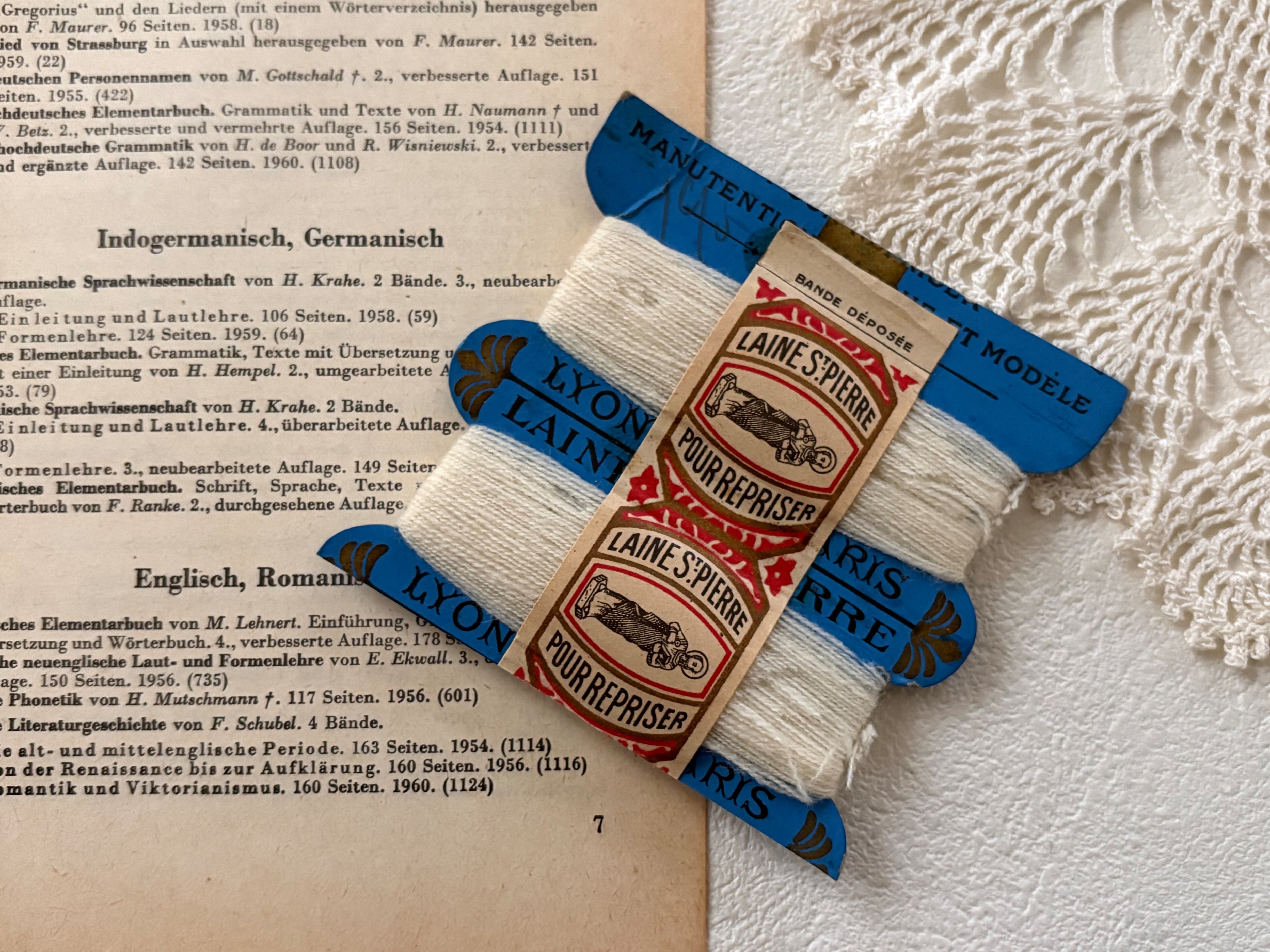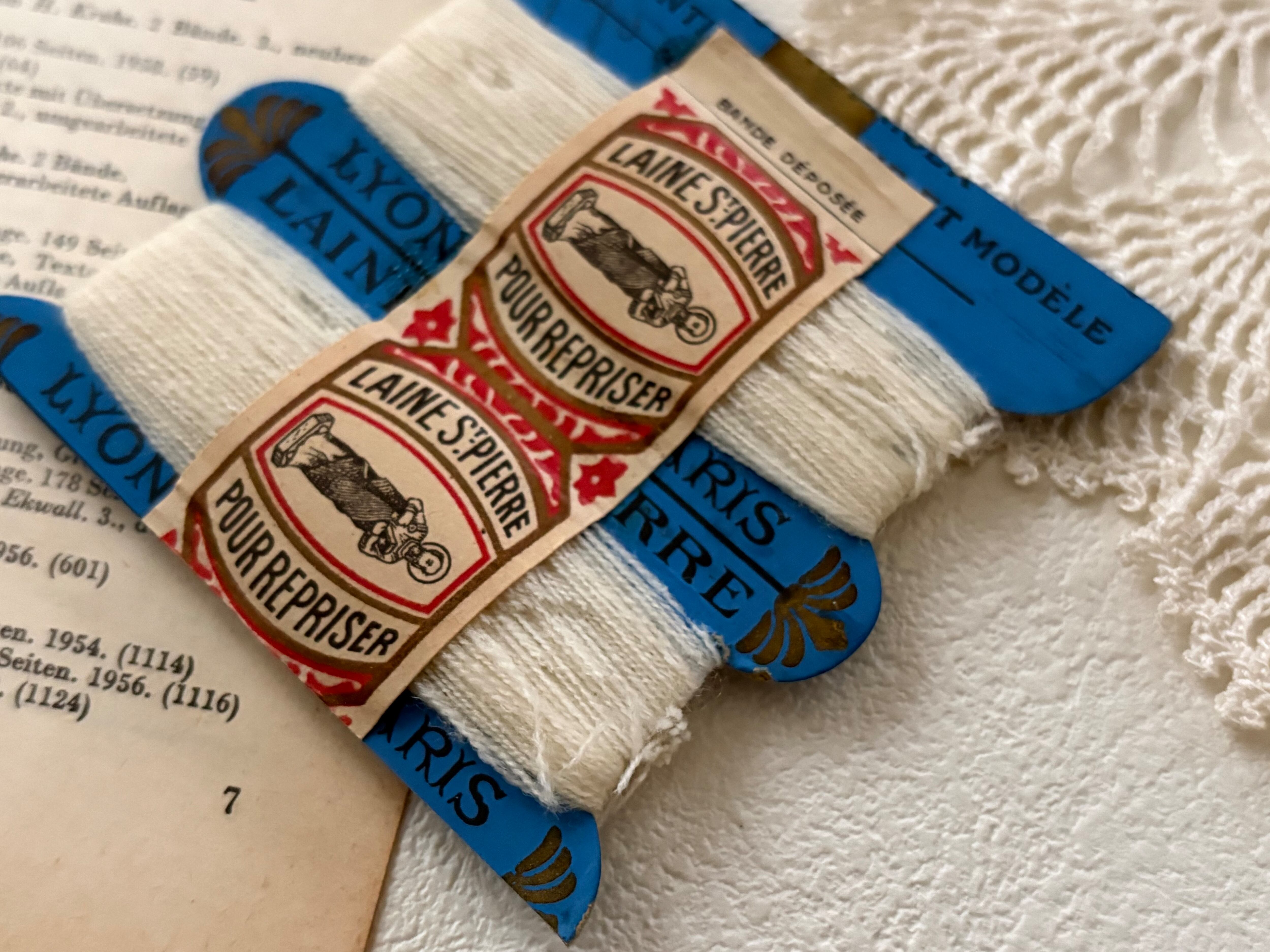 フランスアンティーク 糸巻き LAINE St-PIERRE 台紙 ブルー/糸 ホワイト インテリア小物 撮影小物 コレクション