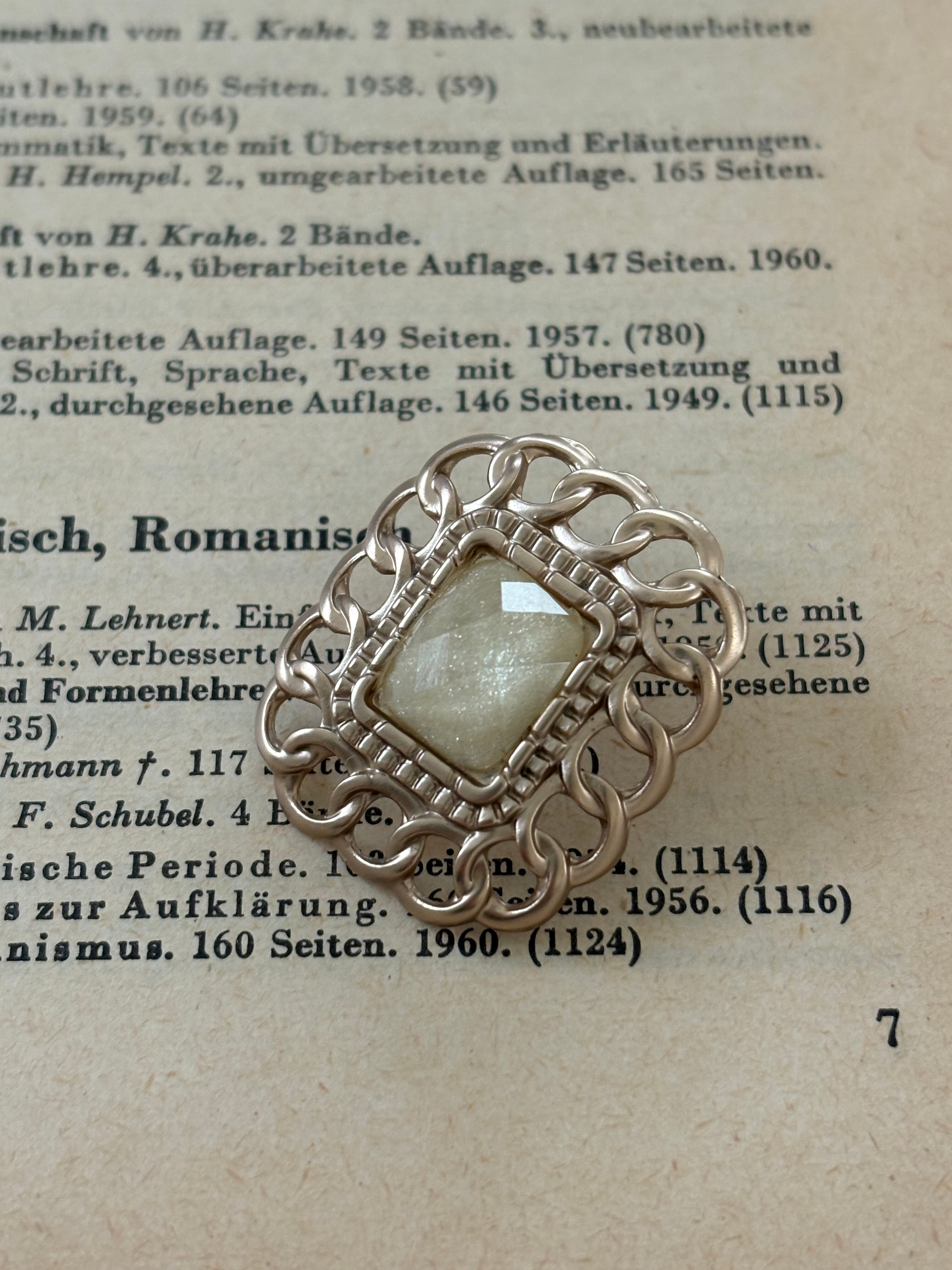 メタル製のマットゴールドの台座にカボション。