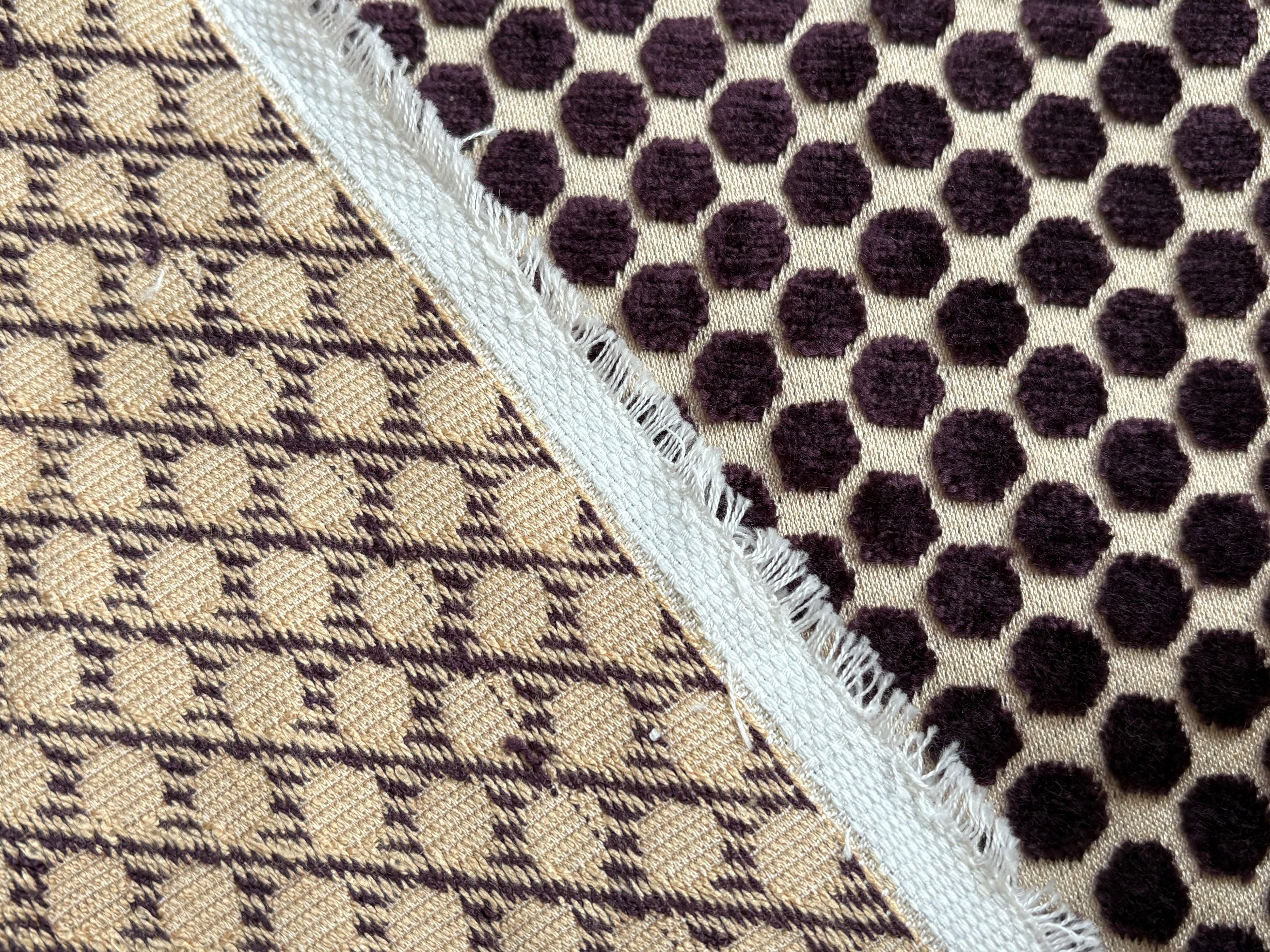 フランス インテリアファブリック ジャカード カットファブリック パープル ドット柄 32cm×134cm カルトナージュ ポーチ他