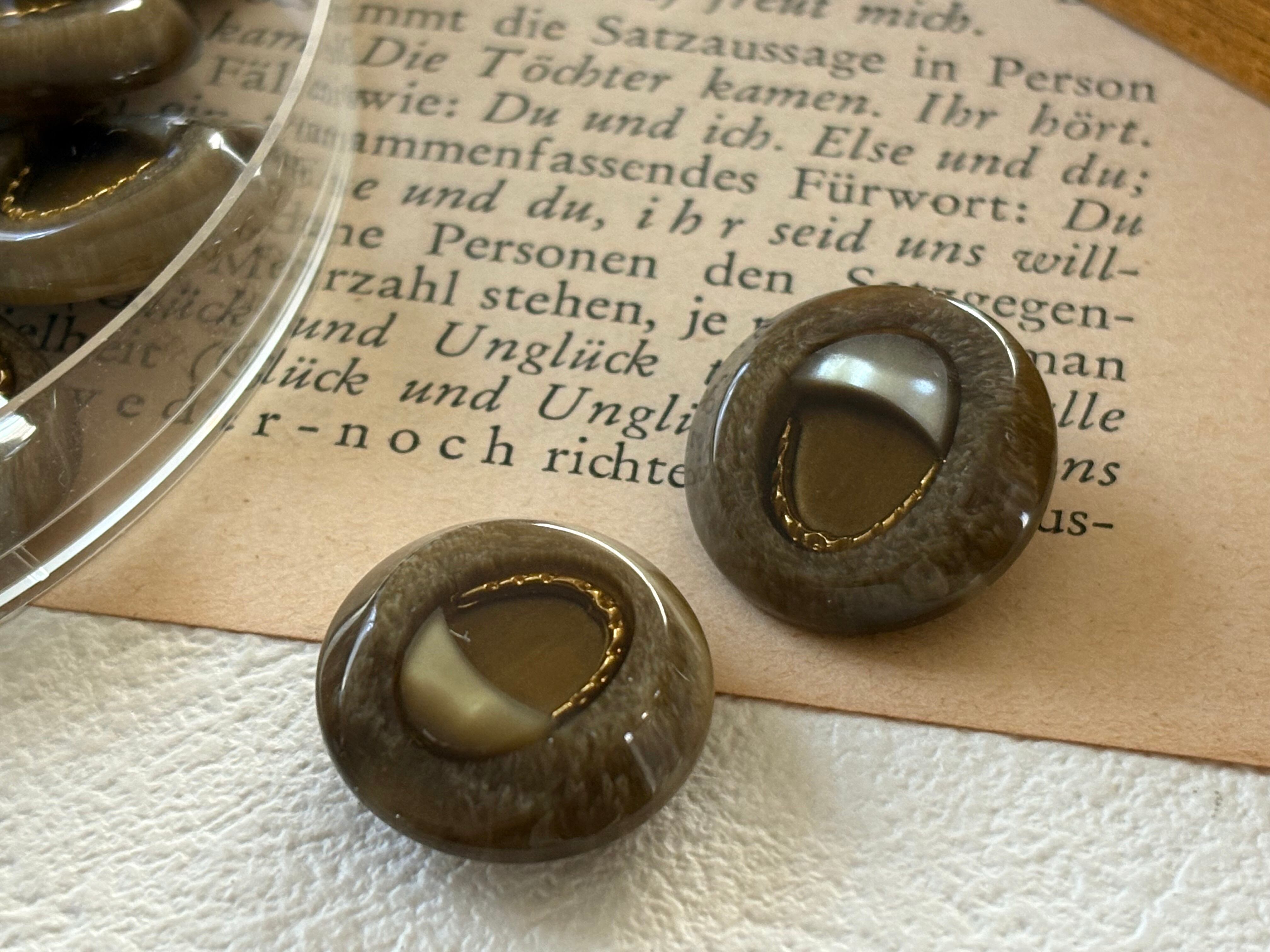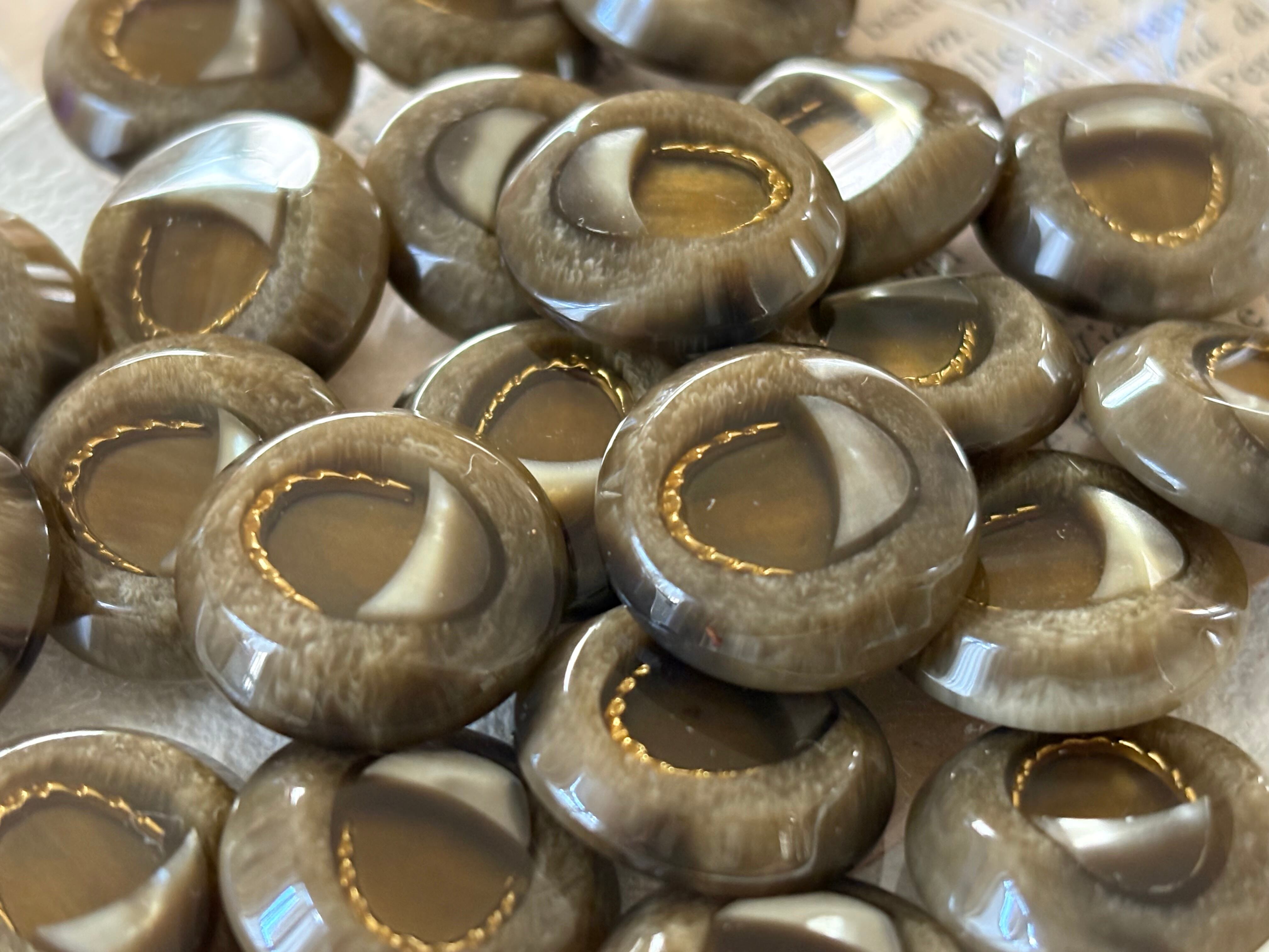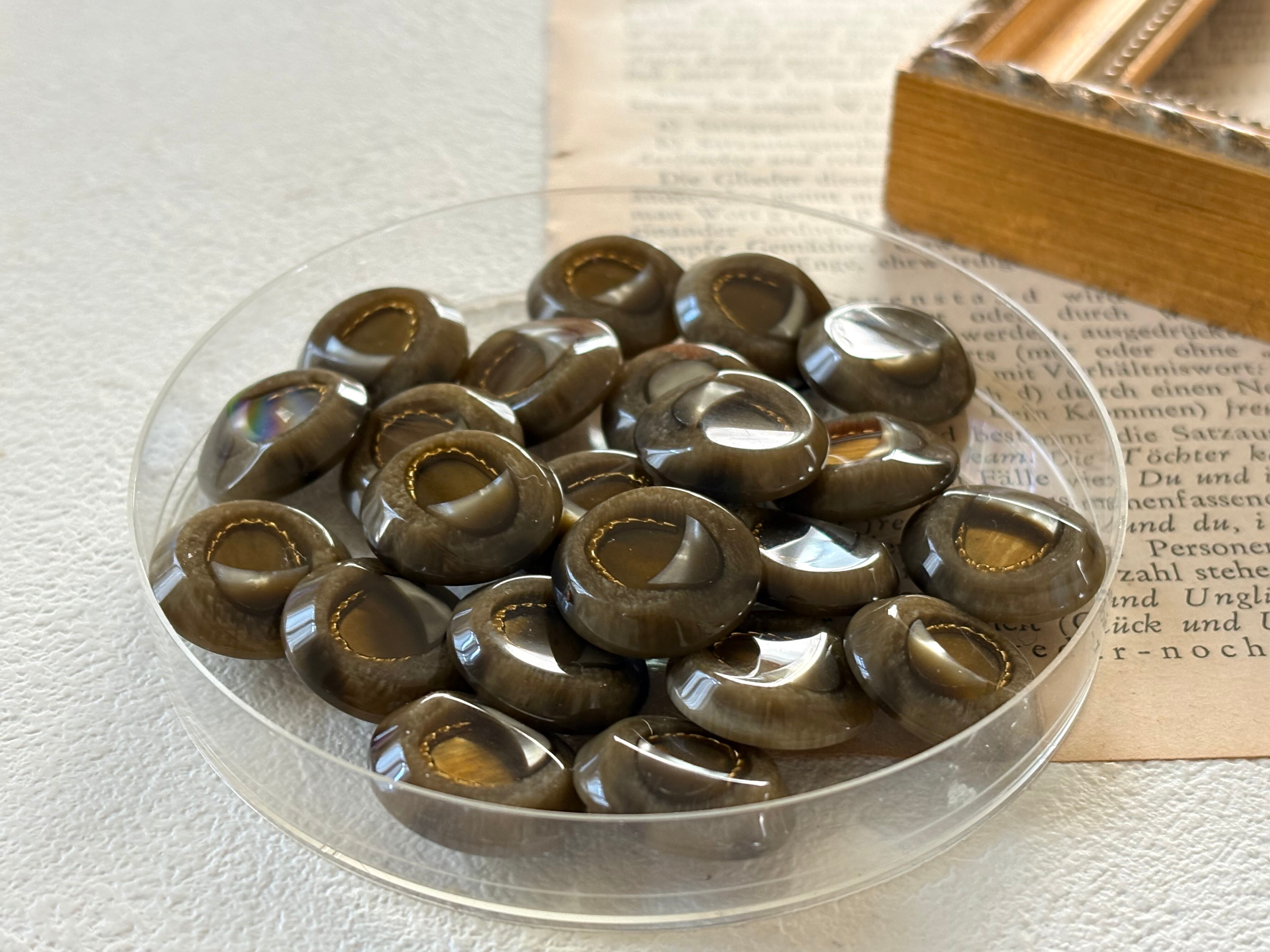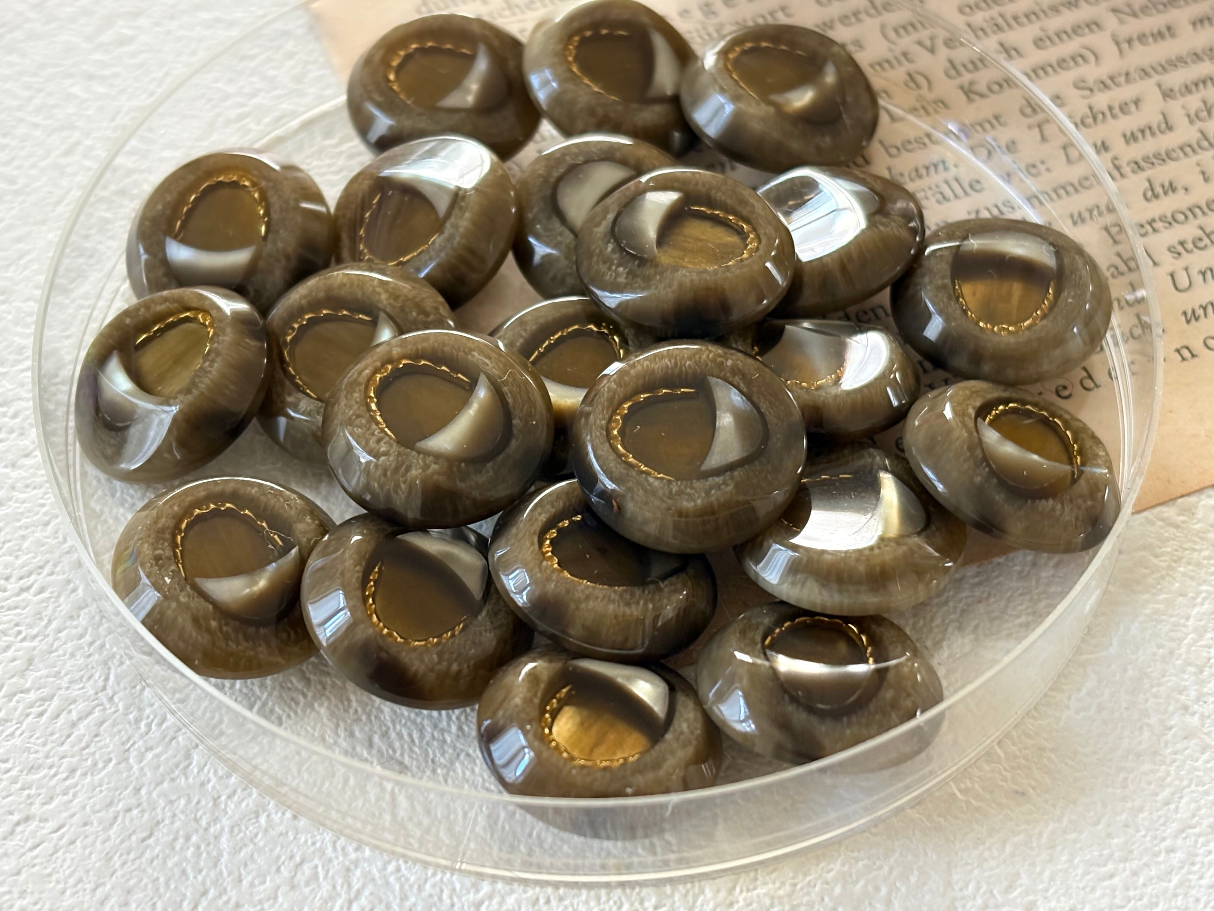 20mm Japanese ヴィンテージボタン ブラウンベージュ×ゴールド マーブル調 レトロ アクセサリーパーツ 装飾材 カルトナージュ