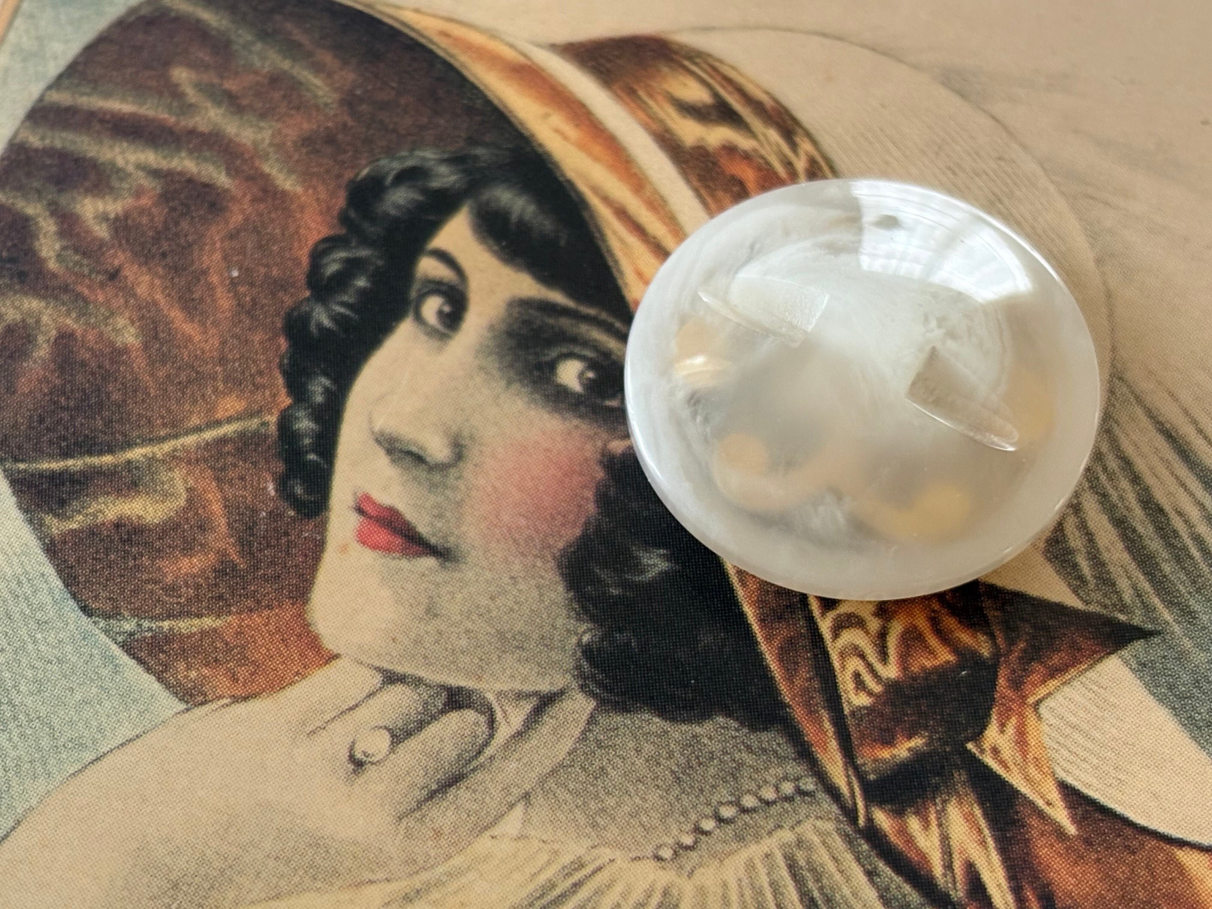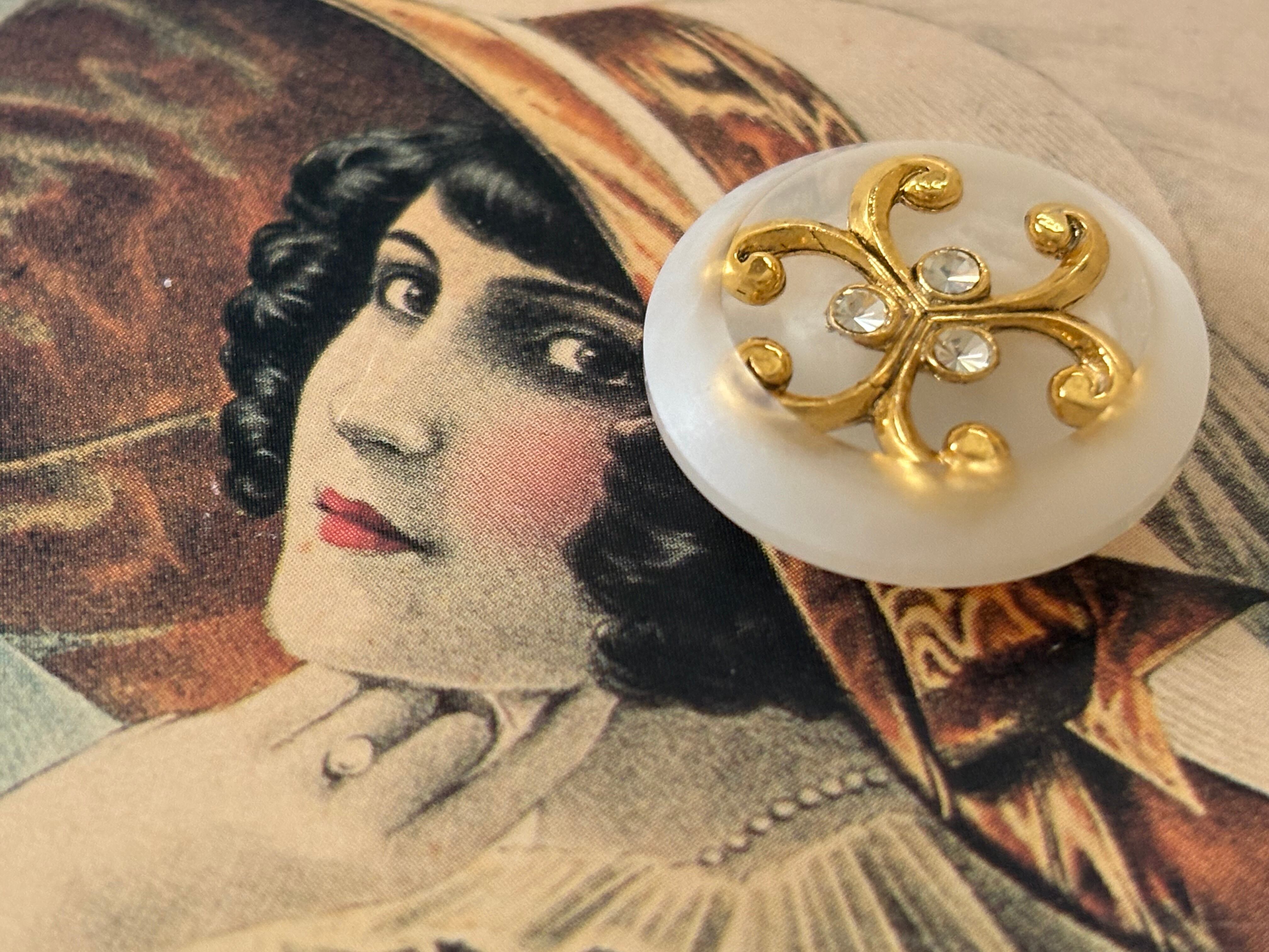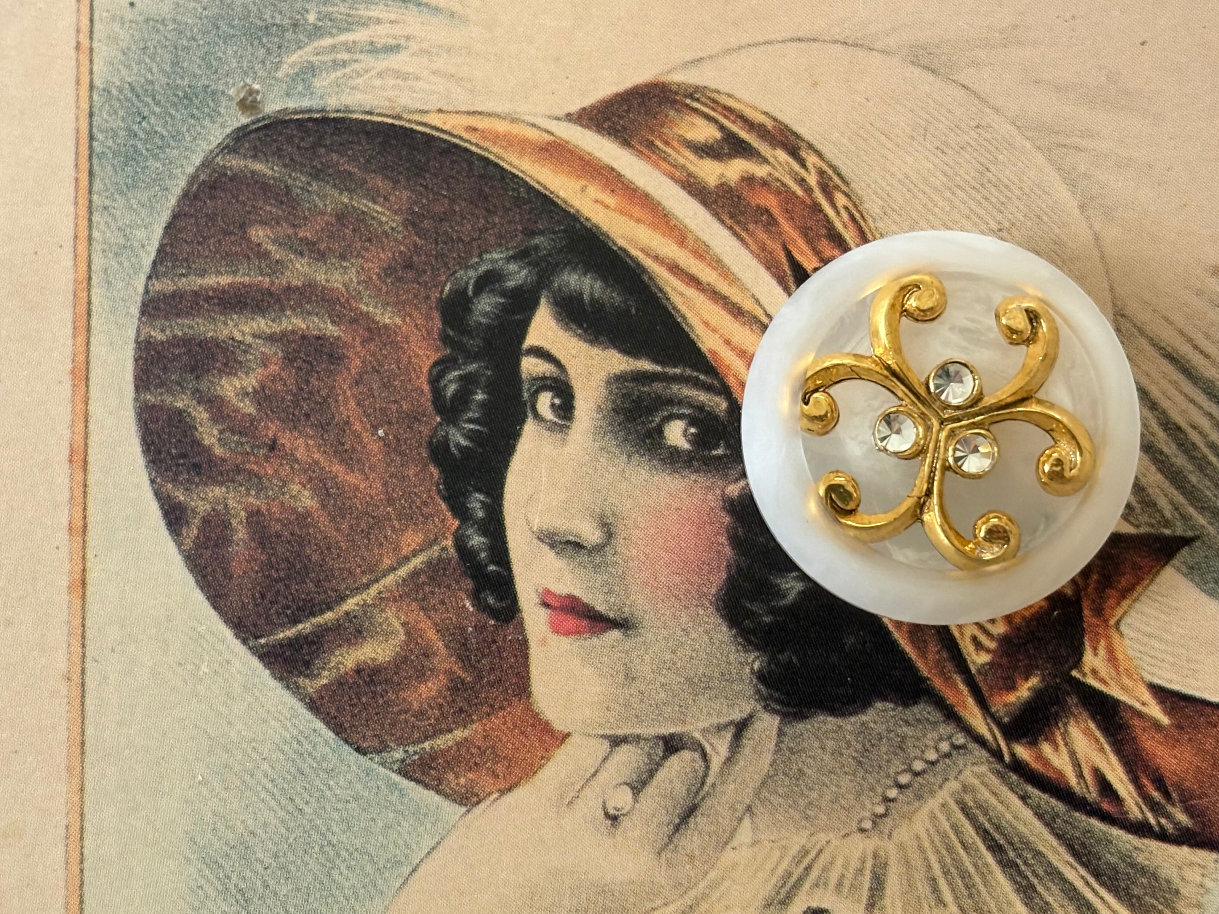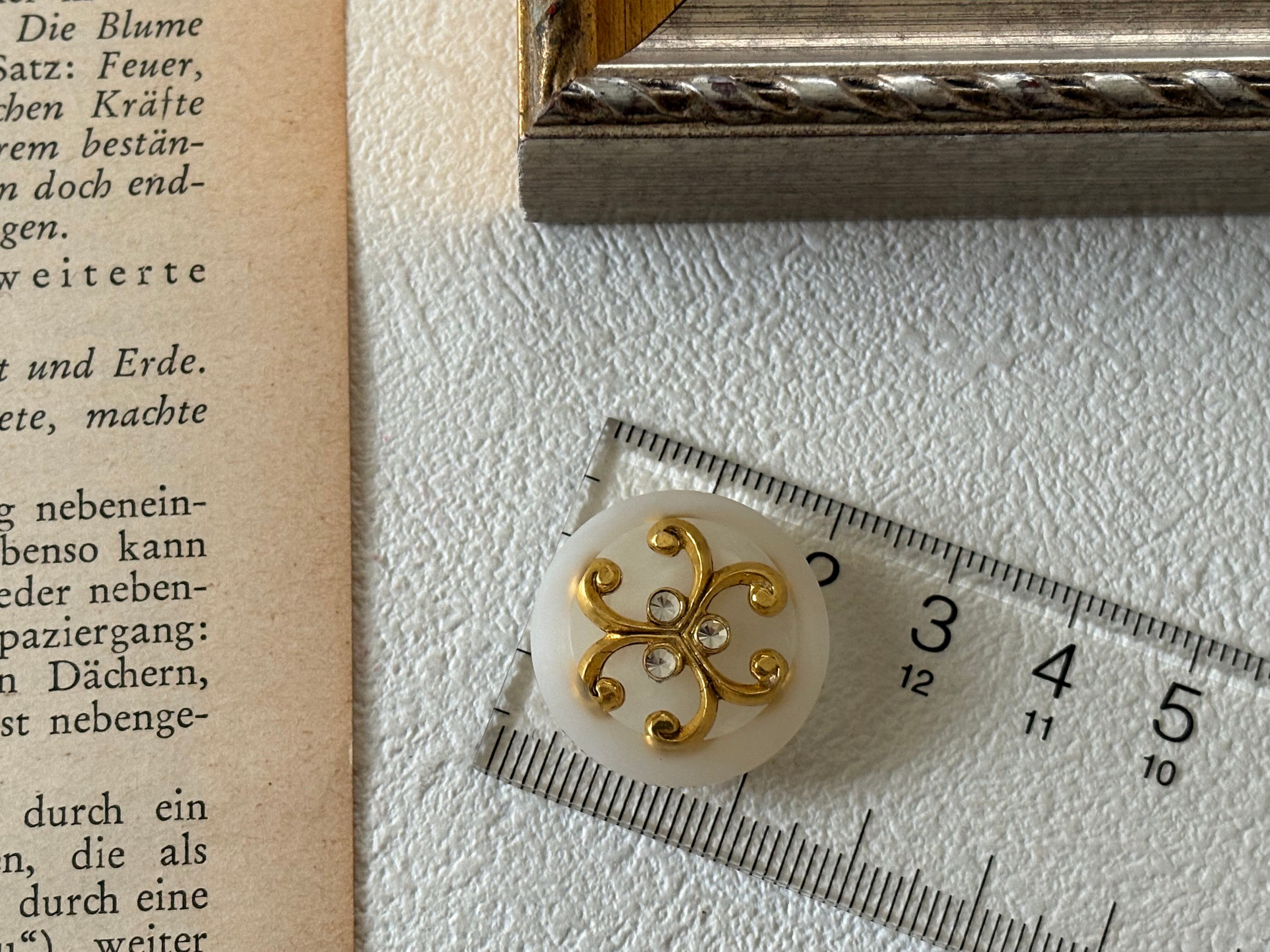 23mm Japanese ヴィンテージボタン 樹脂ボタン アイボリー×クリア×ゴールド×ストーン 高級ボタン アクセサリーパーツ コレクション