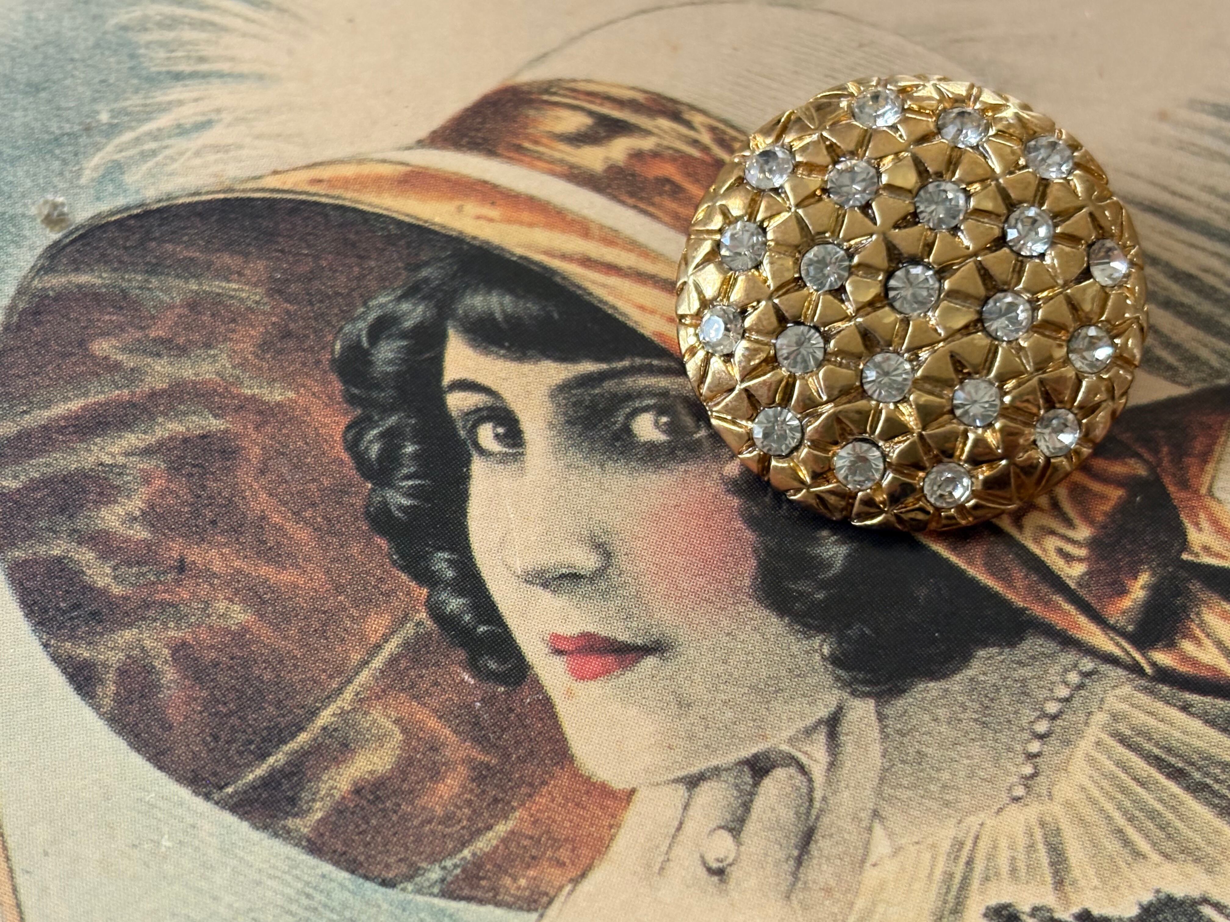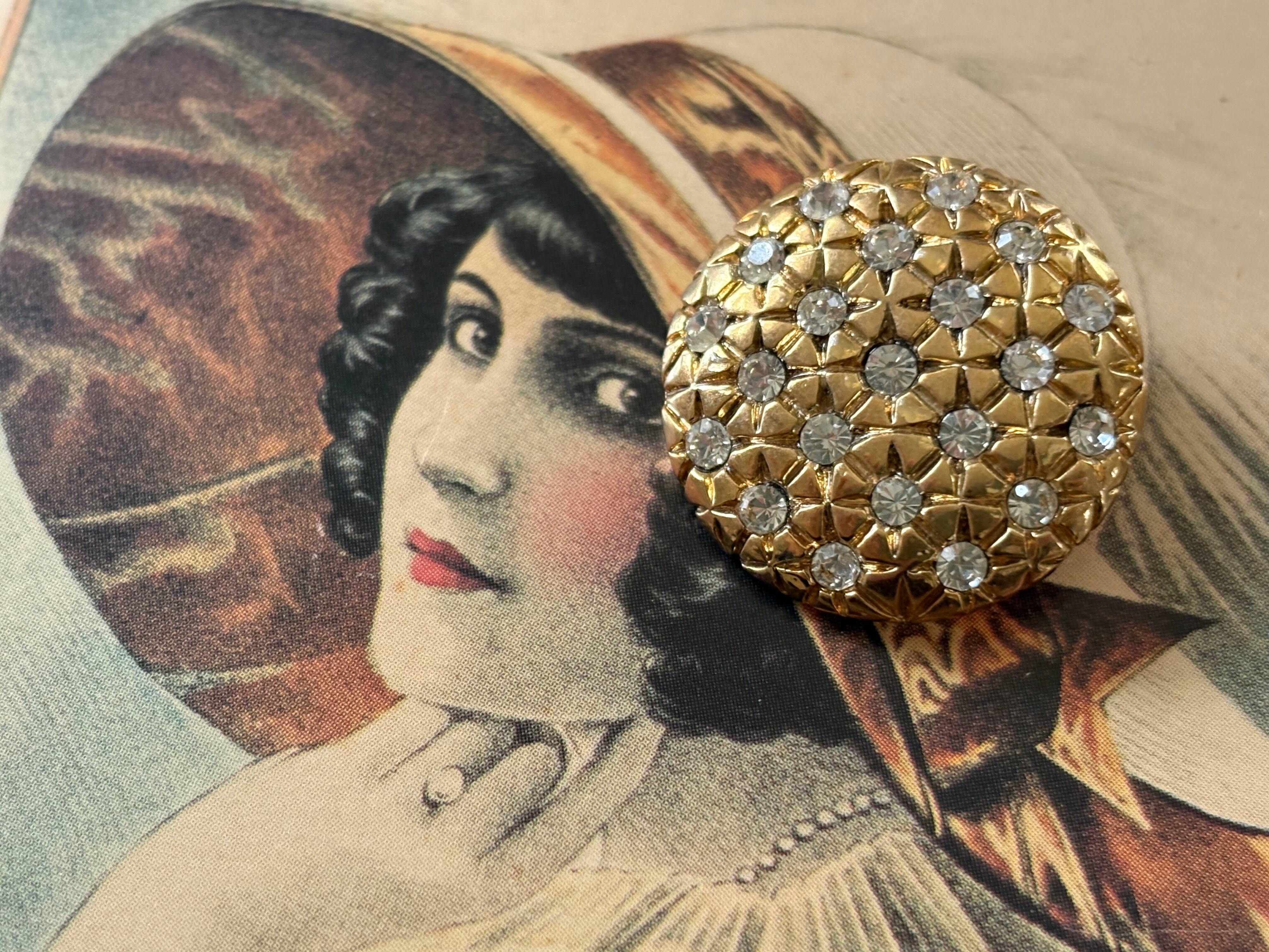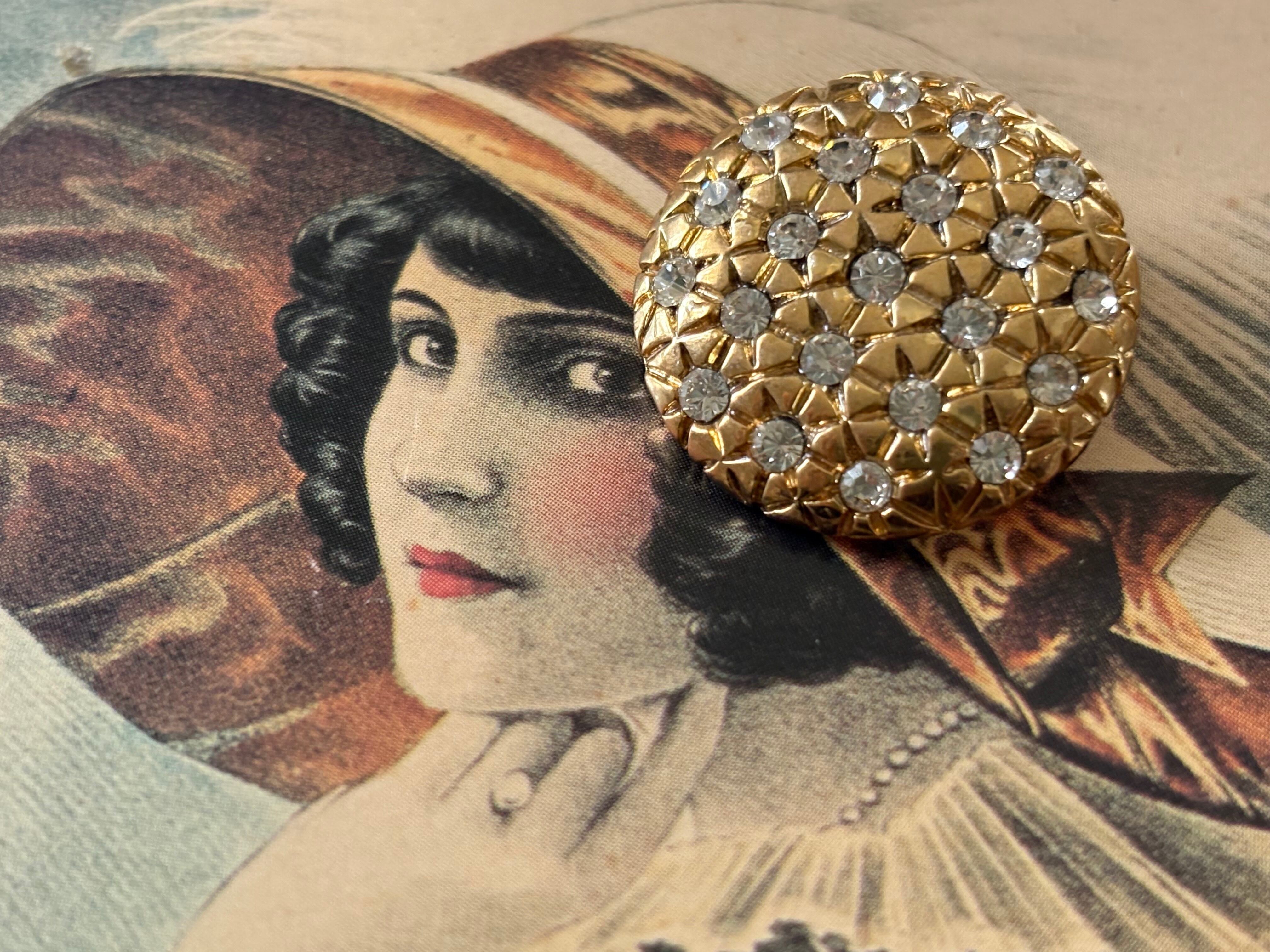 22mm 輸入デザインボタン フラワー メタル×ストーン ゴールド アクセサリーパーツ デコレーション材