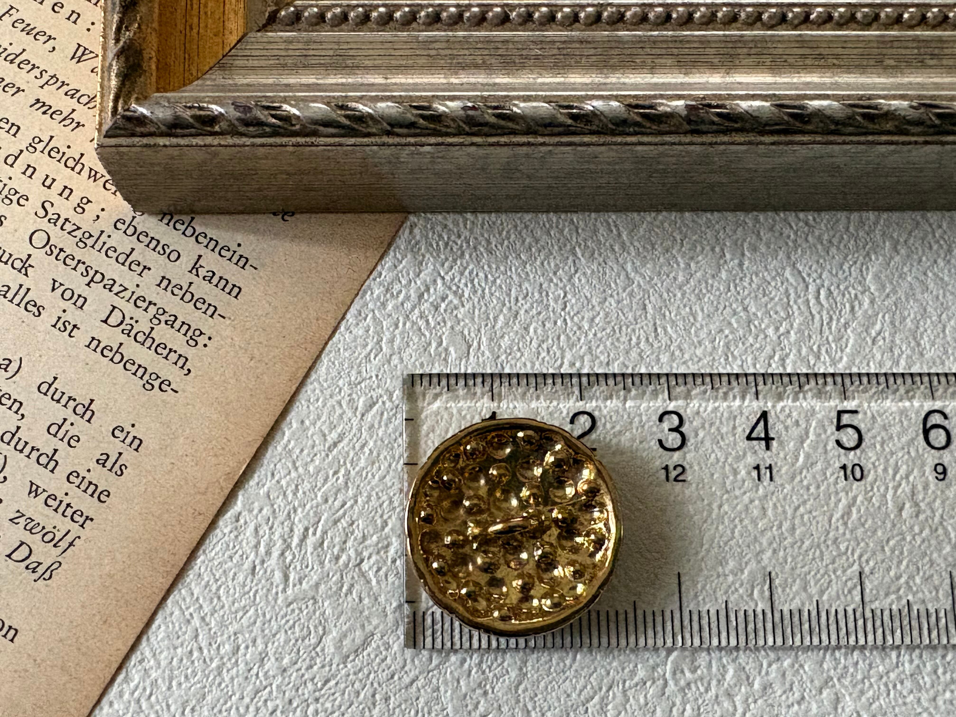 表面に小さな小花が集まったようなメタルボタンです。