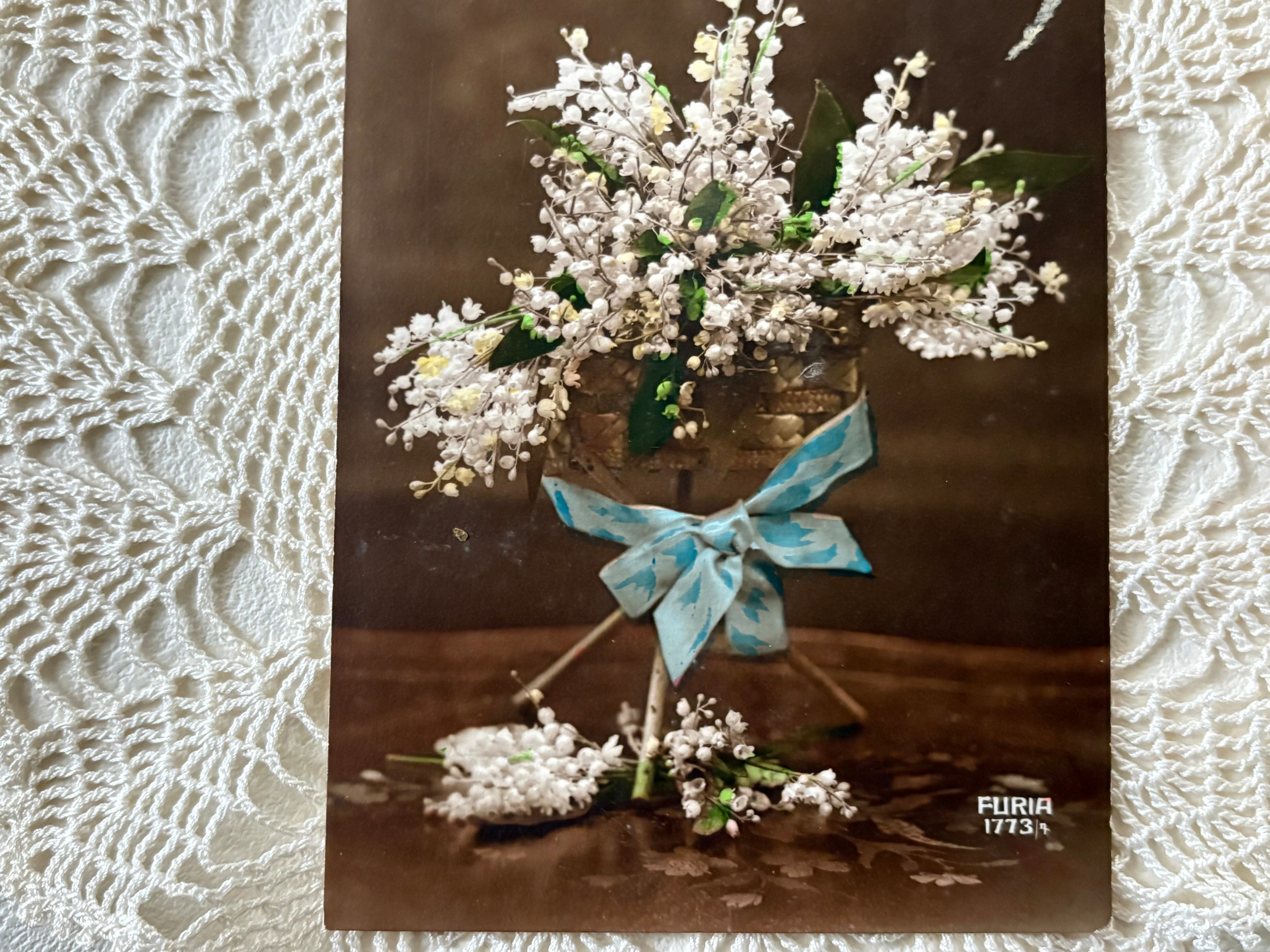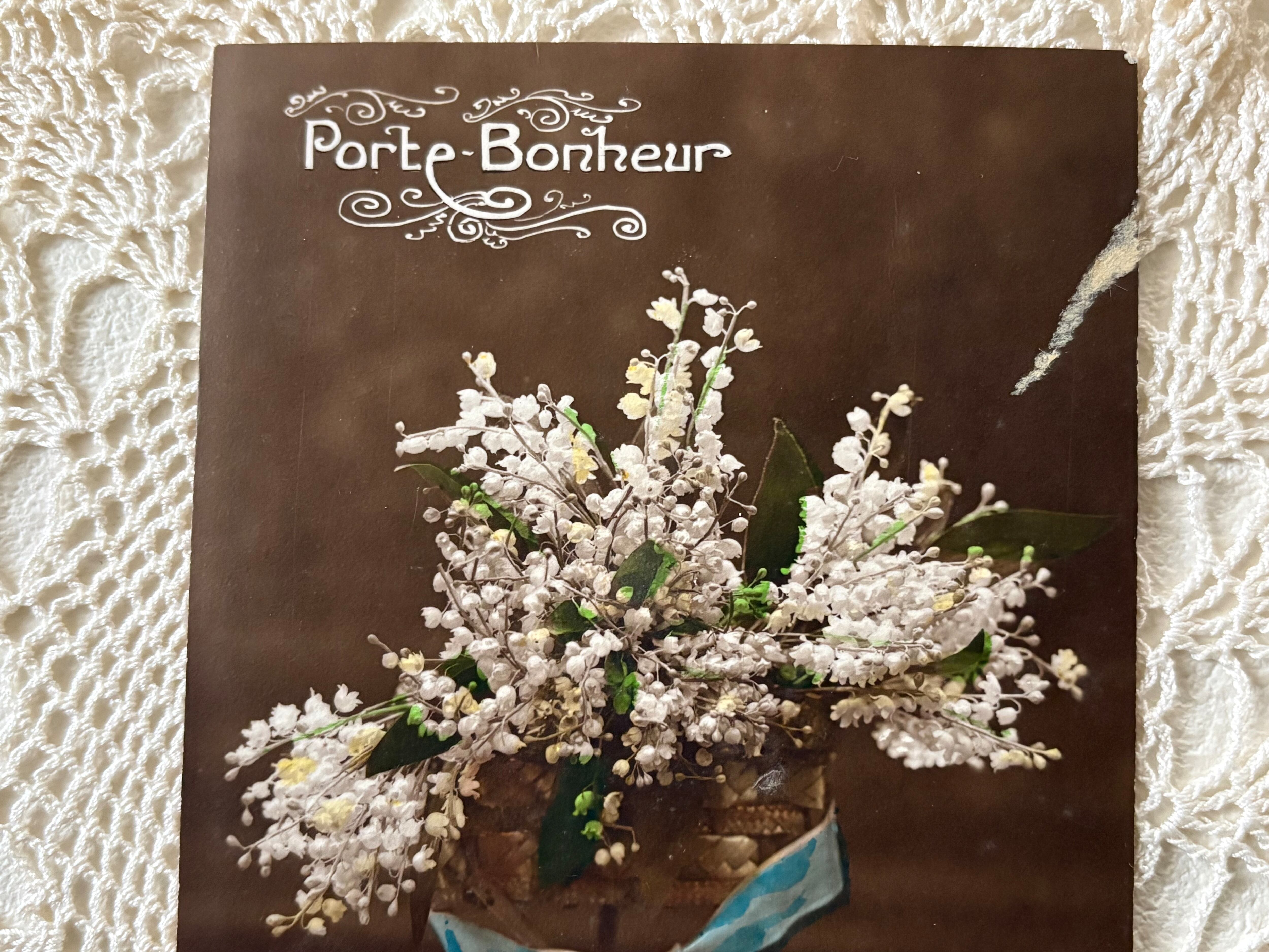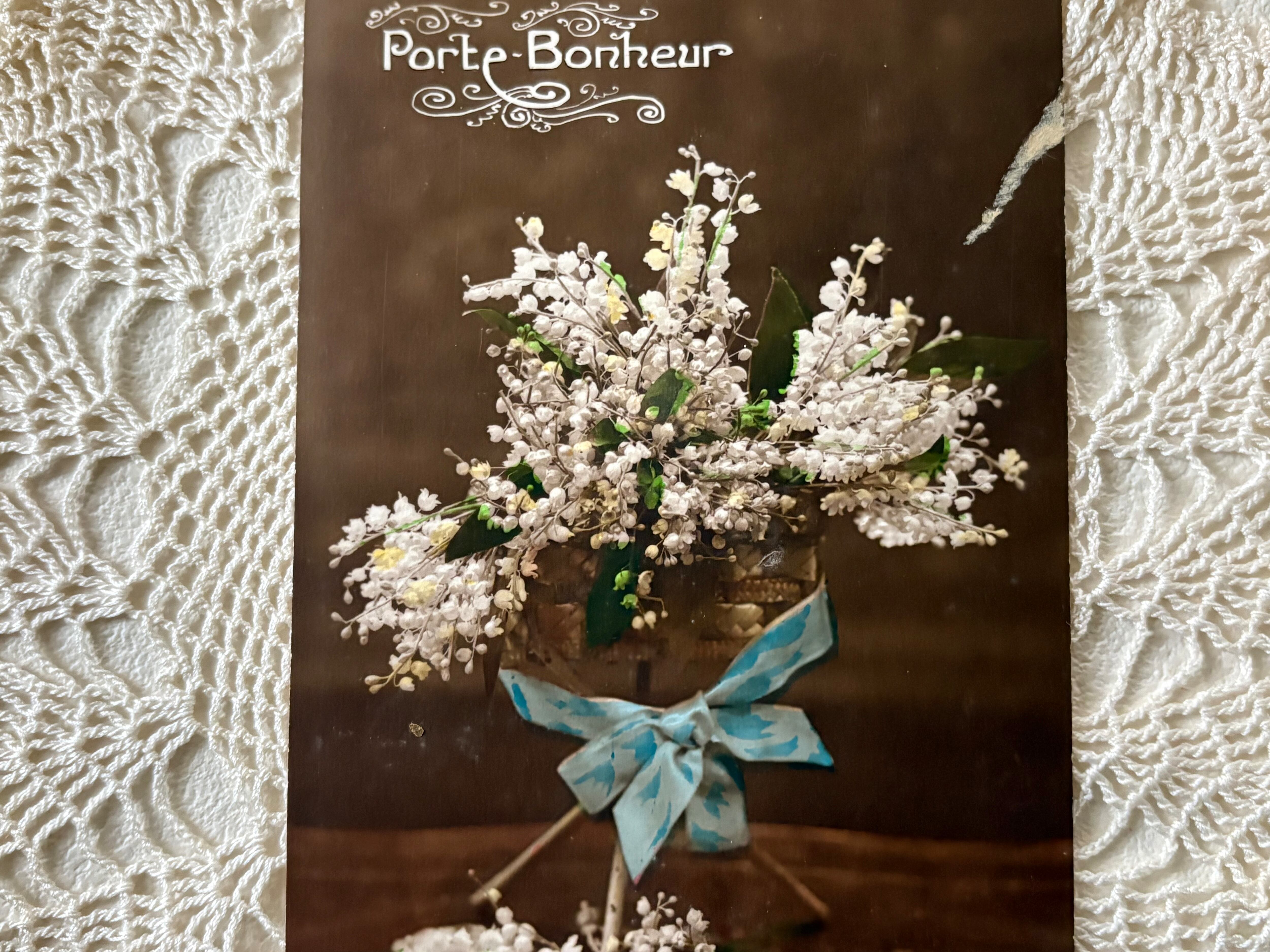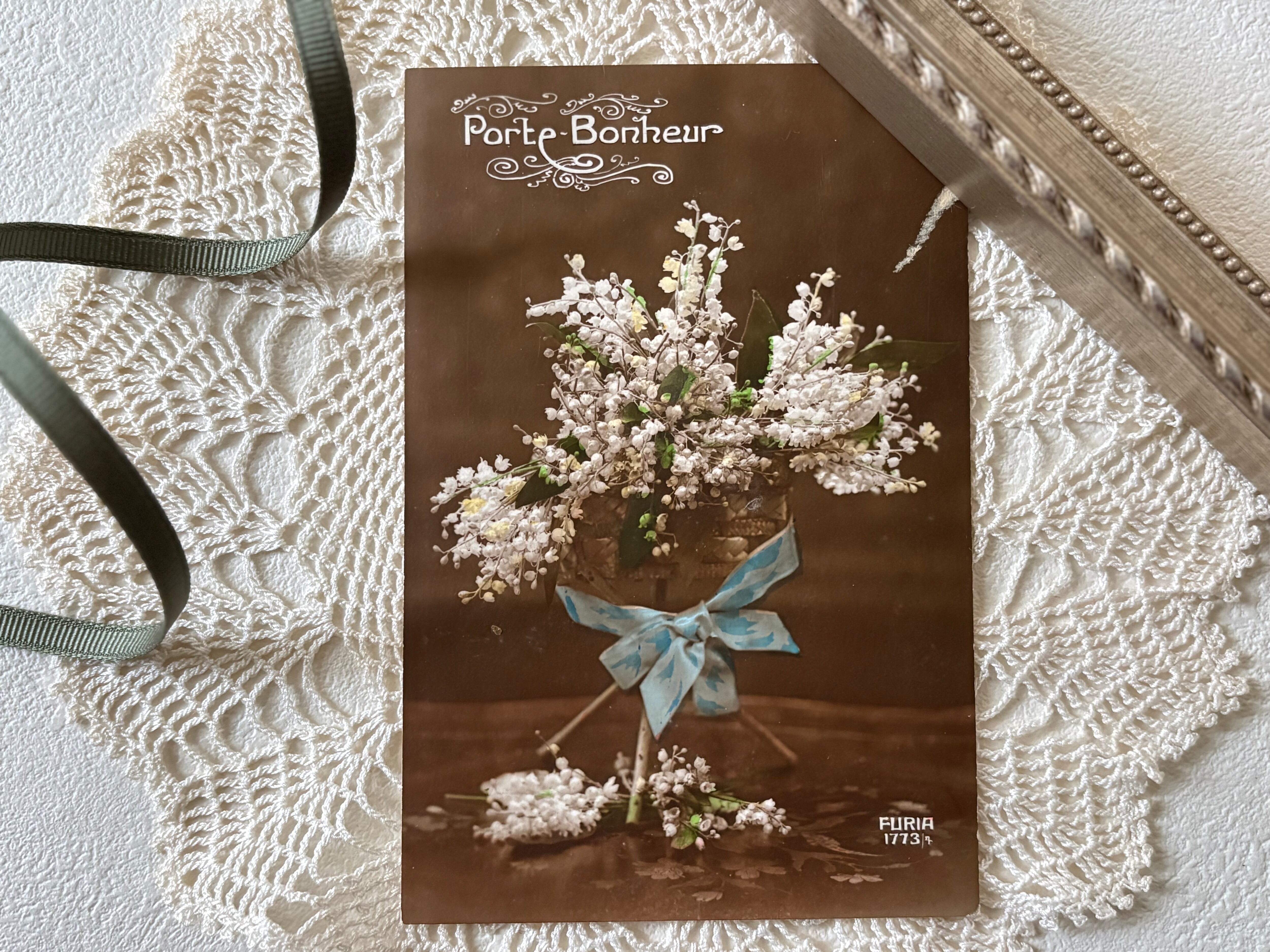 フランス アンティークカード porte-bonheur(ポルト-ボヌール) Muget すずらんのブーケ 額装 インテリア