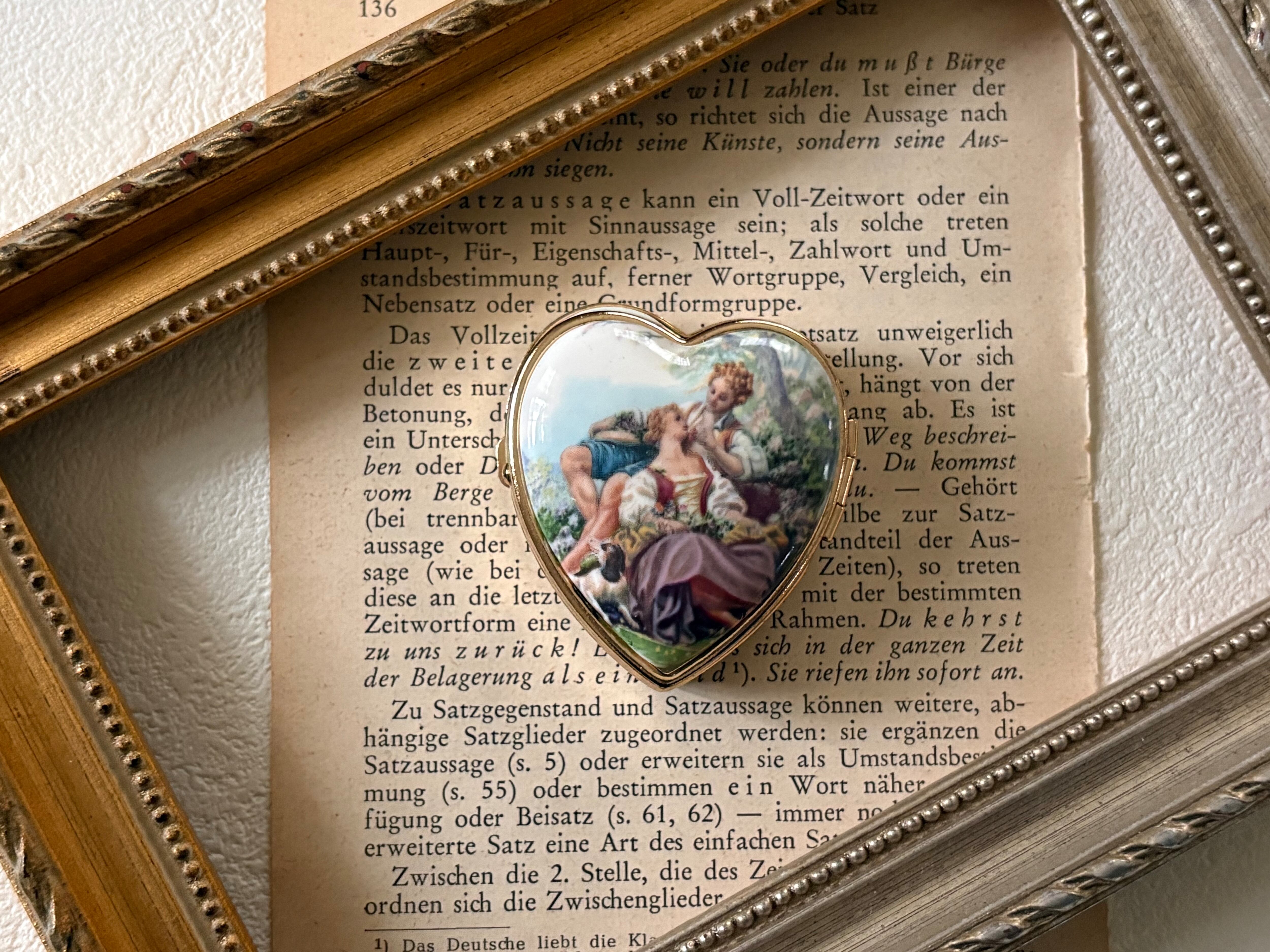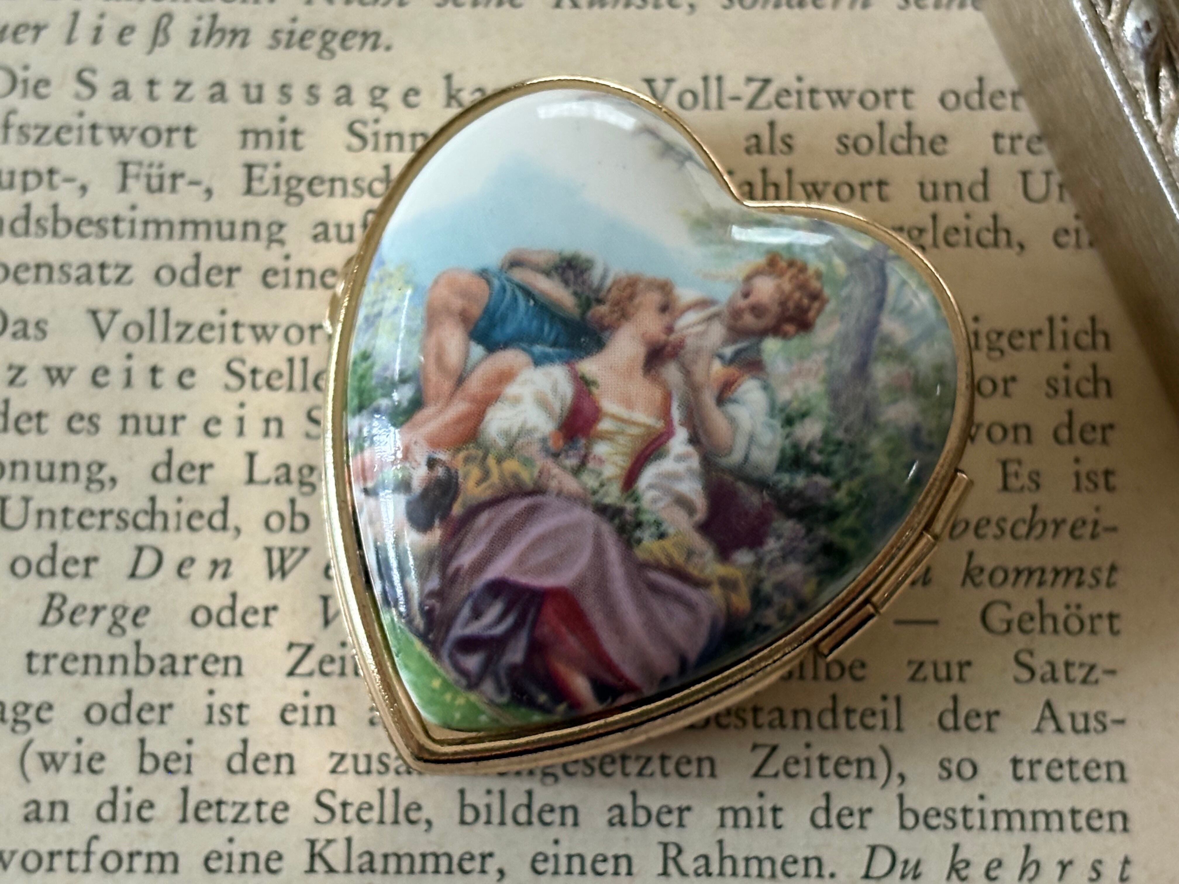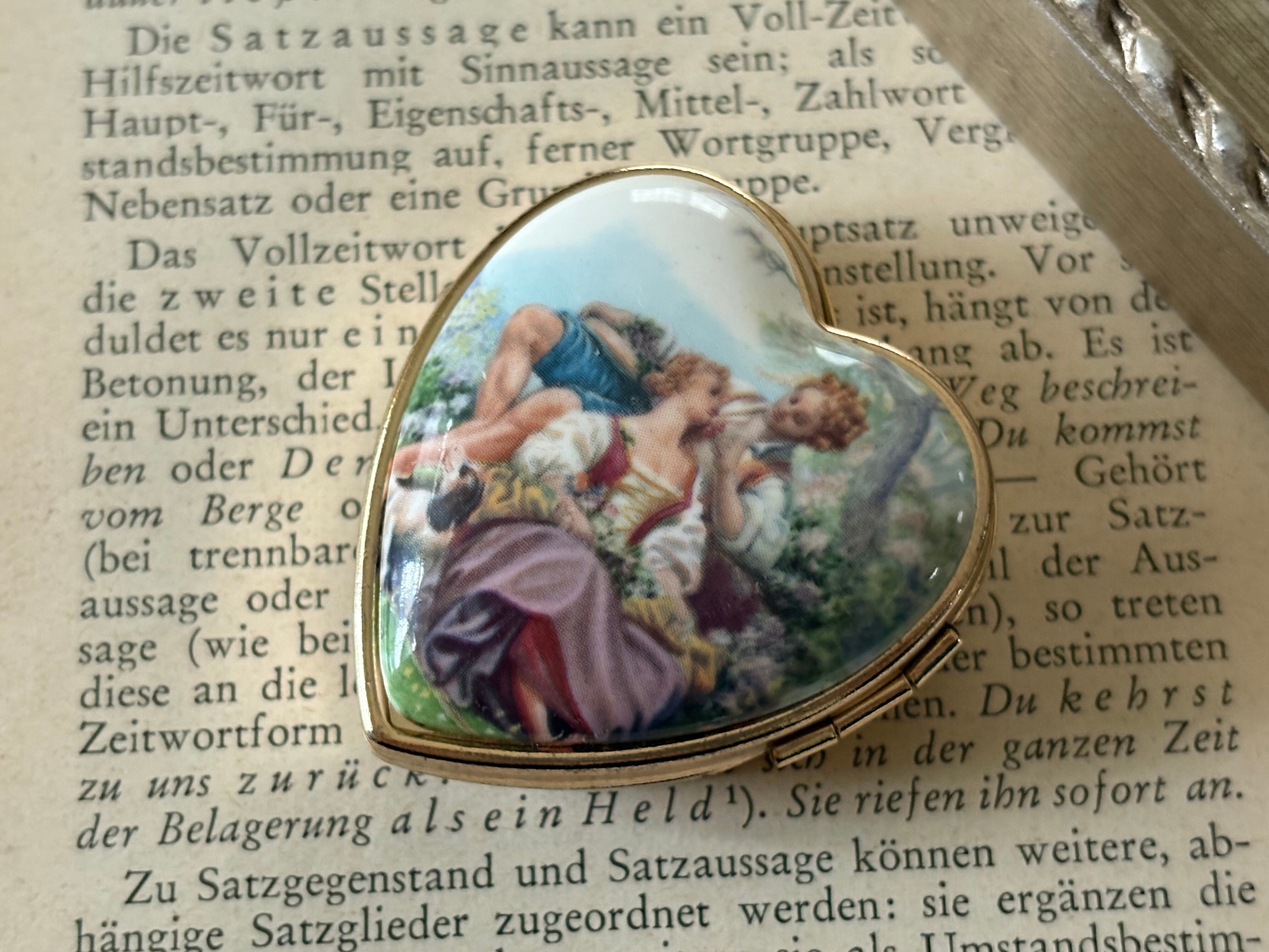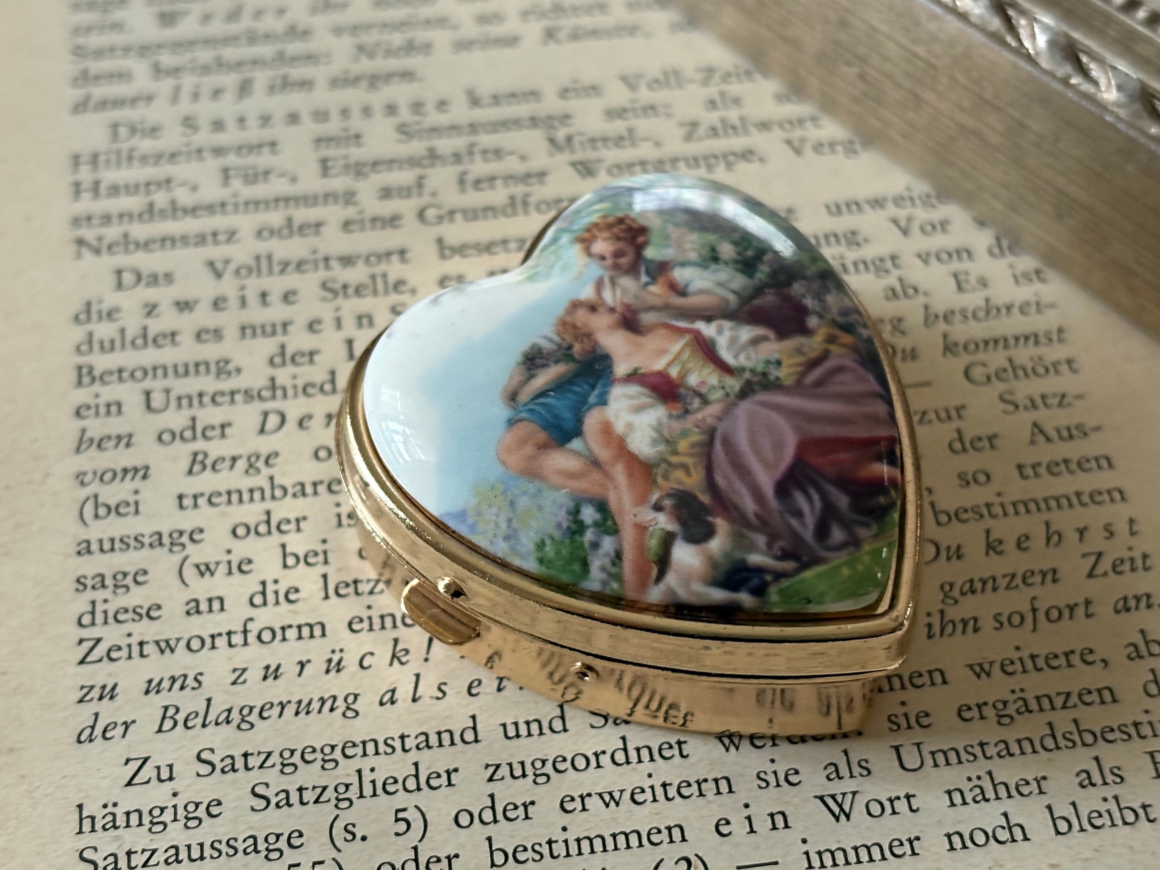 Japanese Vintage デッドストック 西洋画柄のトリンケット ピルケース ハート型 小物入れ ディスプレイ インテリア