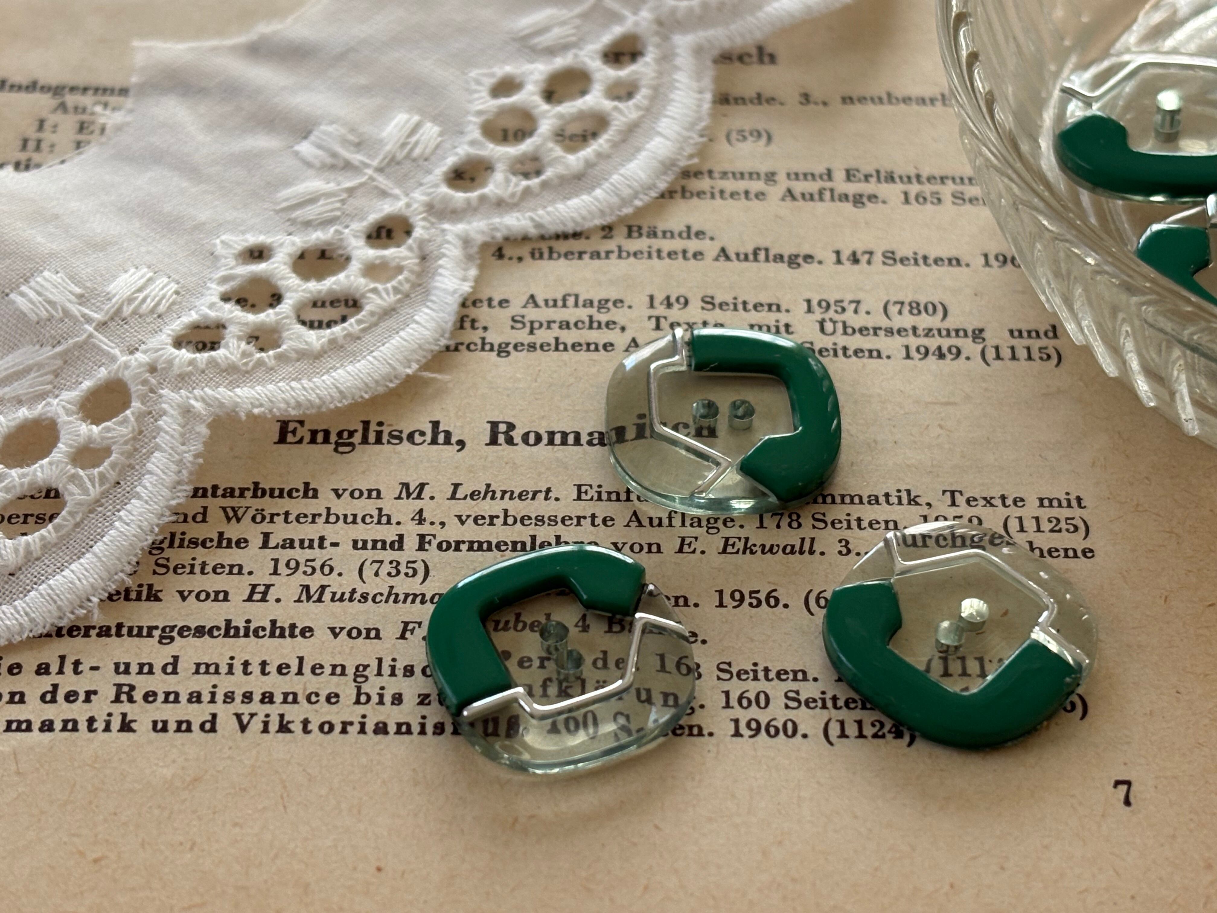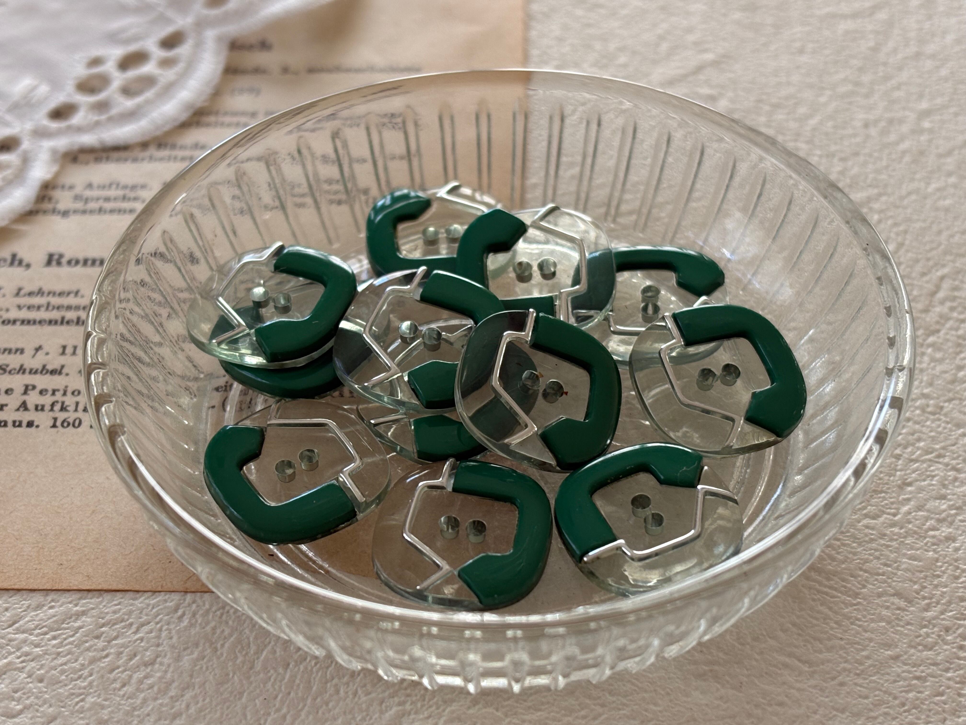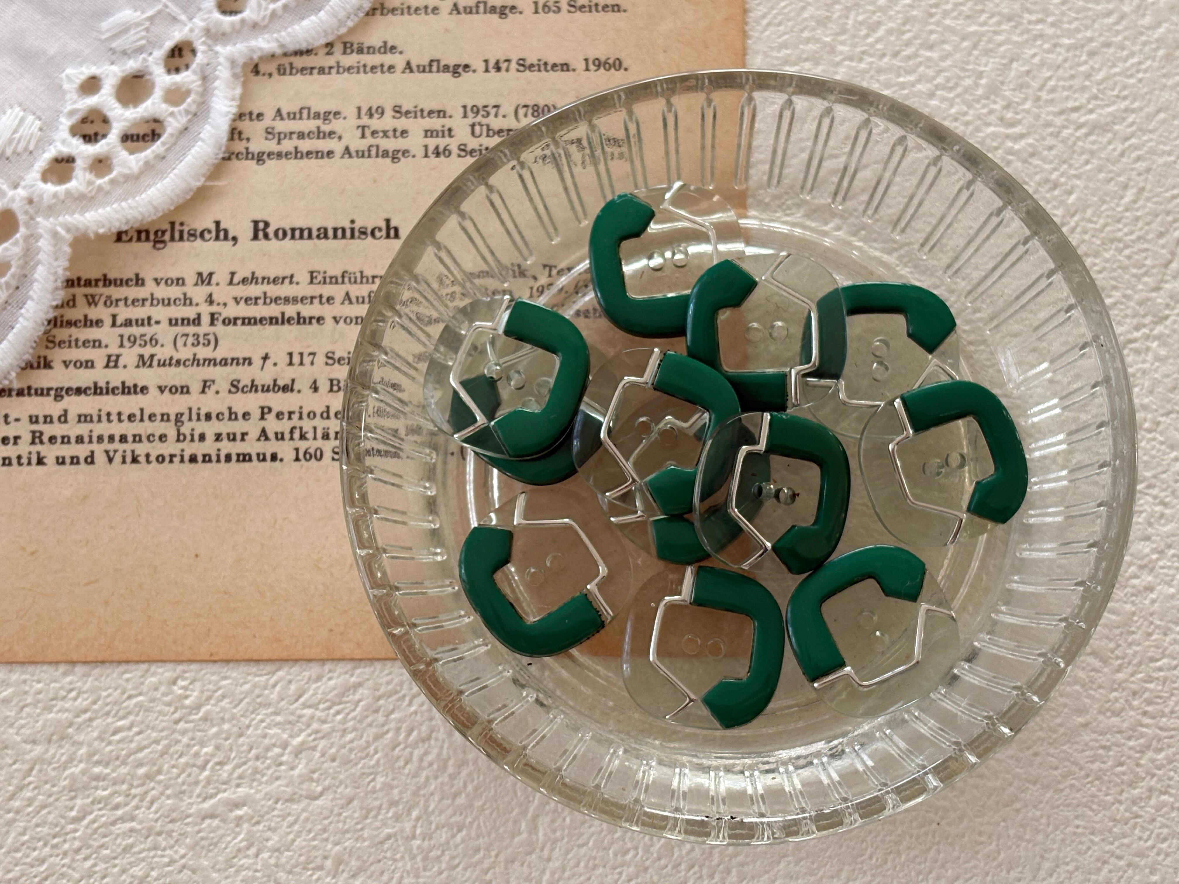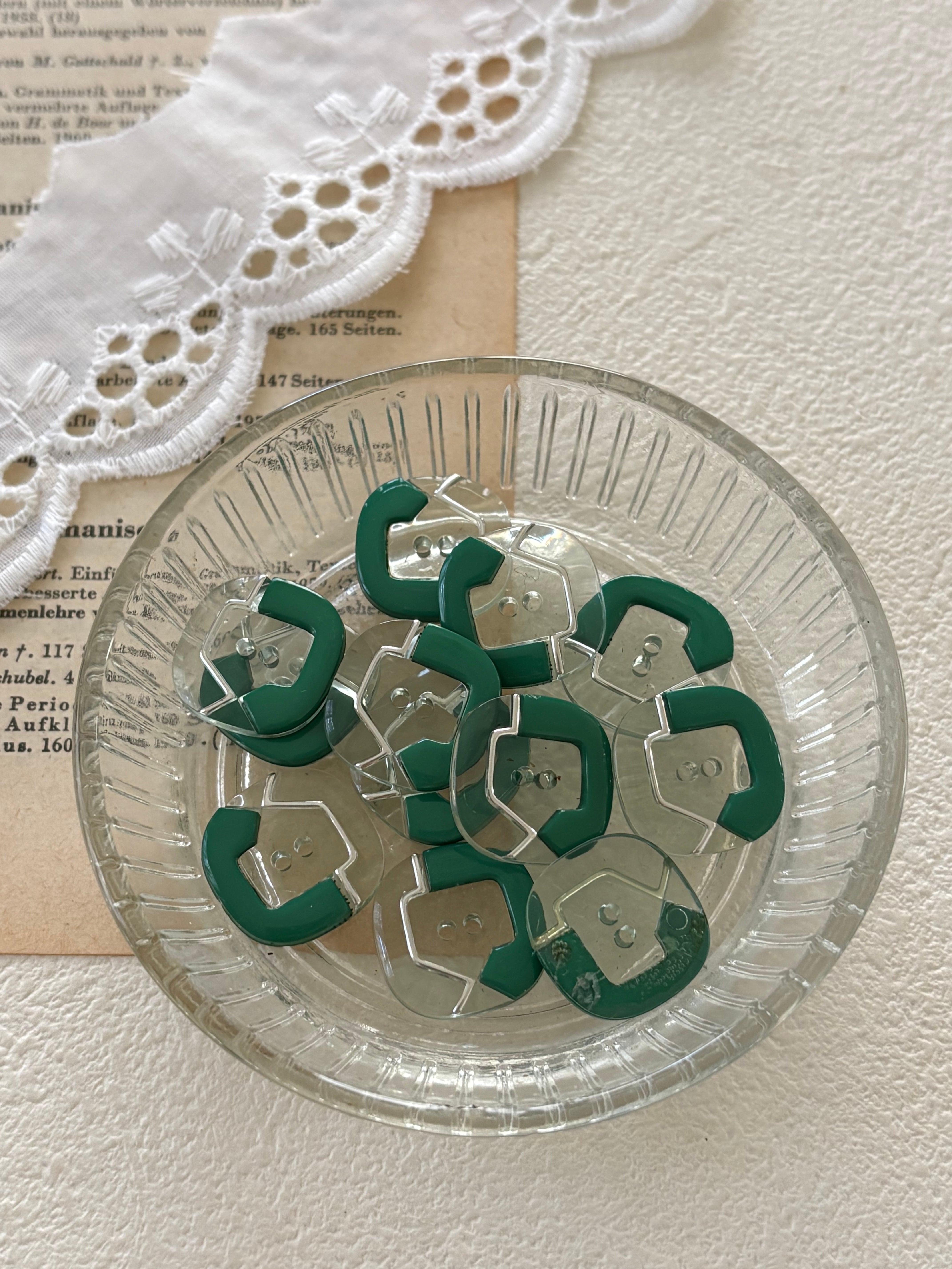 16mm Japanese ヴィンテージボタン 角なしスクウェア グリーン 昭和レトロ アクセサリーパーツ 装飾材 カルトナージュ