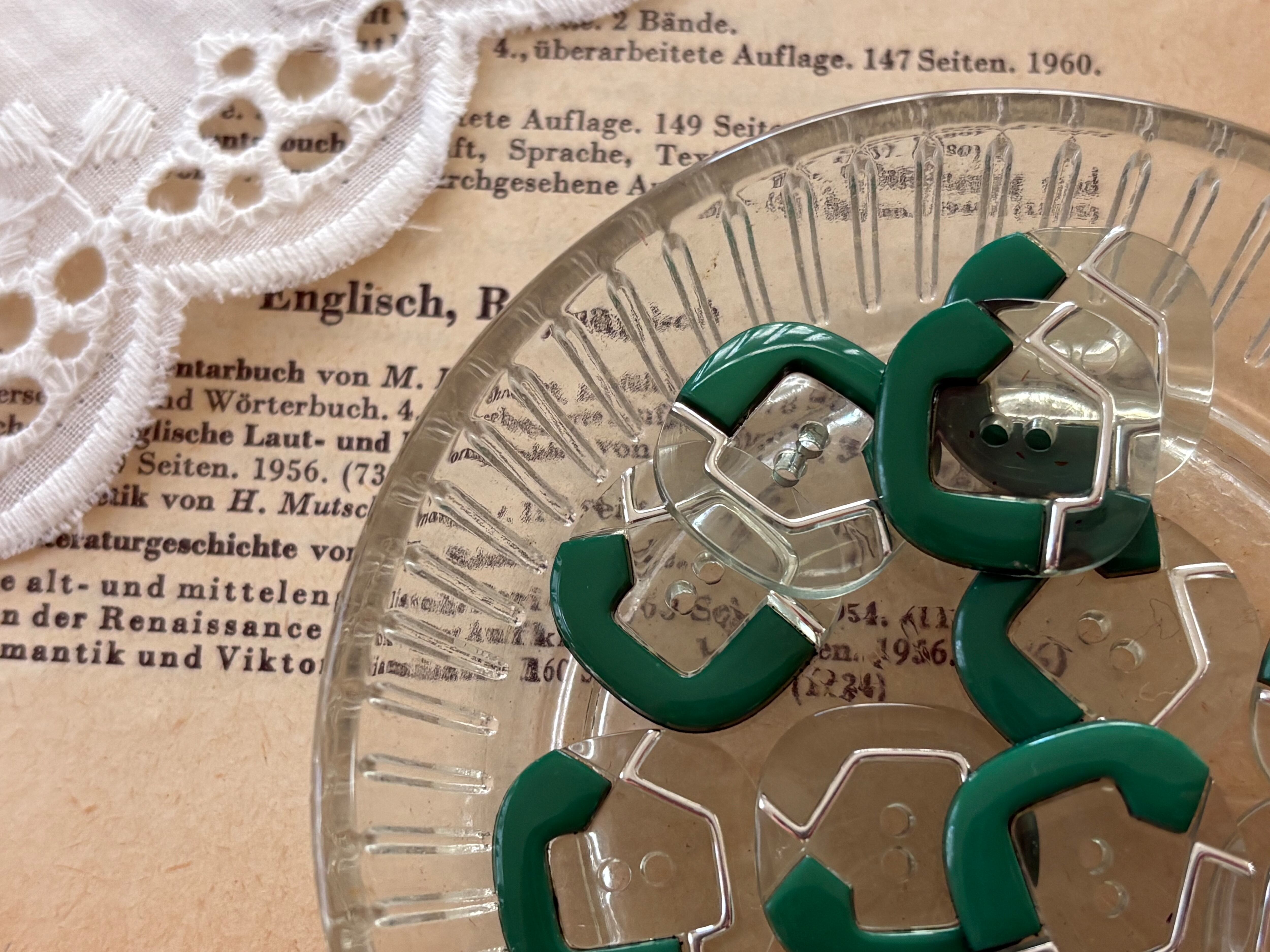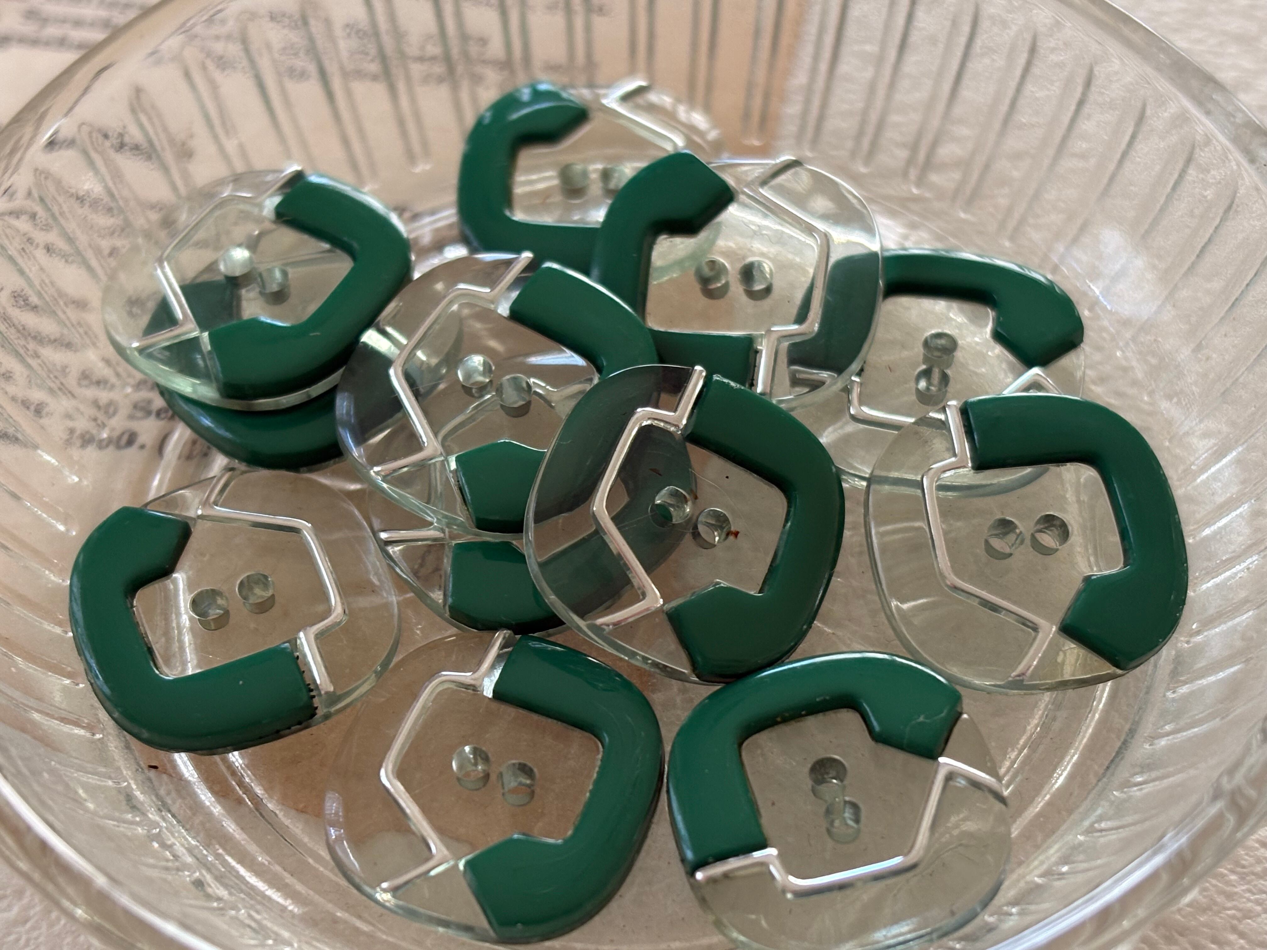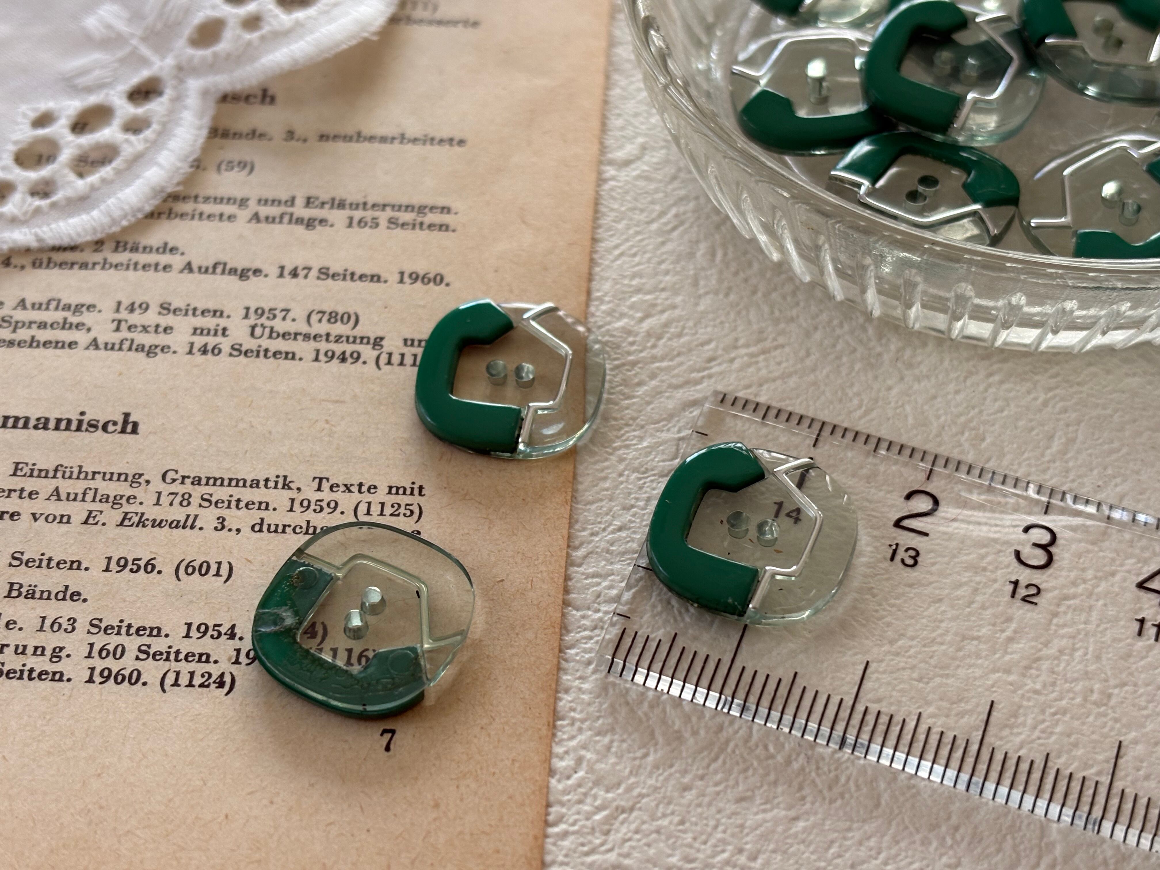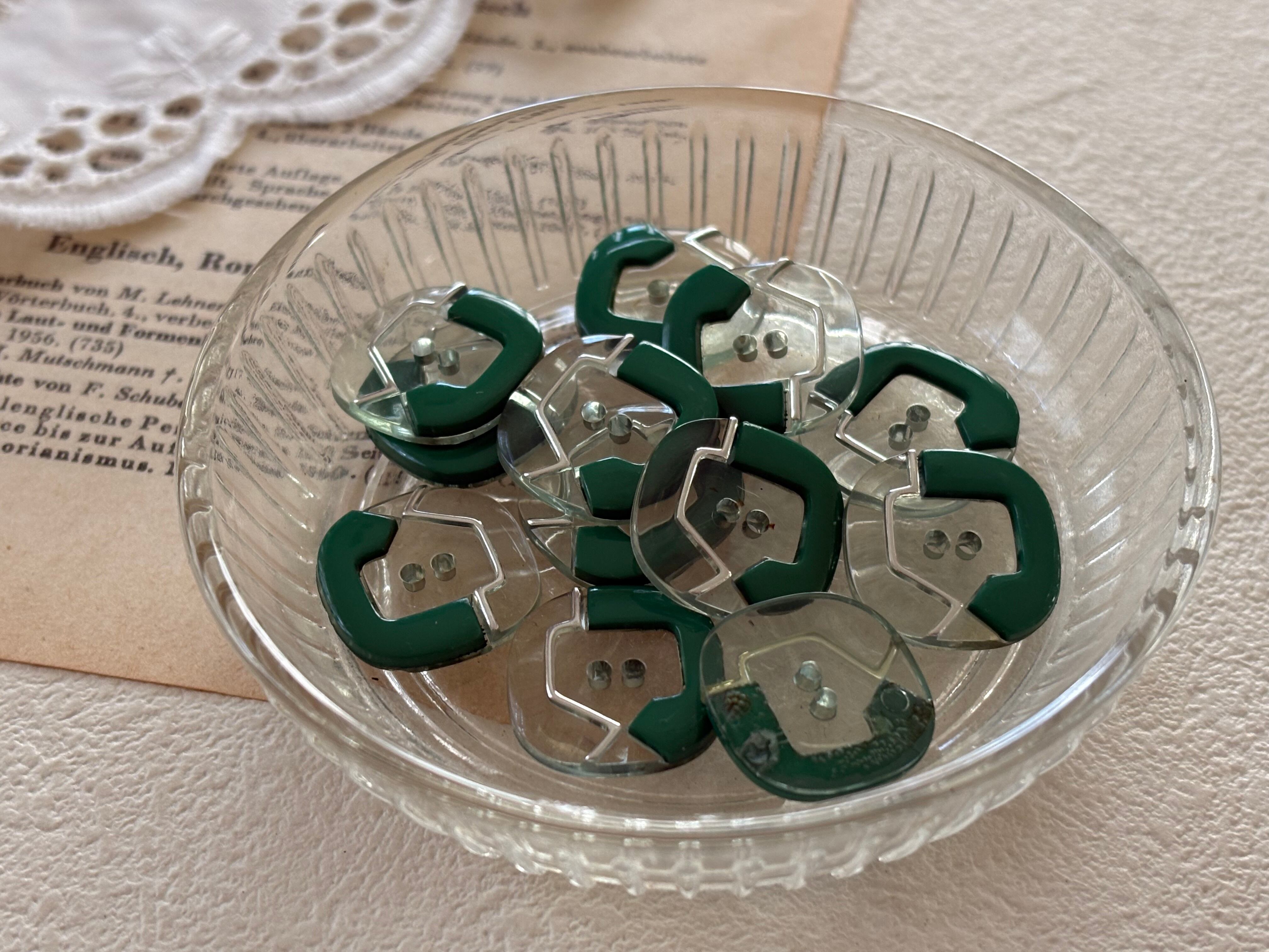 16mm Japanese ヴィンテージボタン 角なしスクウェア グリーン 昭和レトロ アクセサリーパーツ 装飾材 カルトナージュ