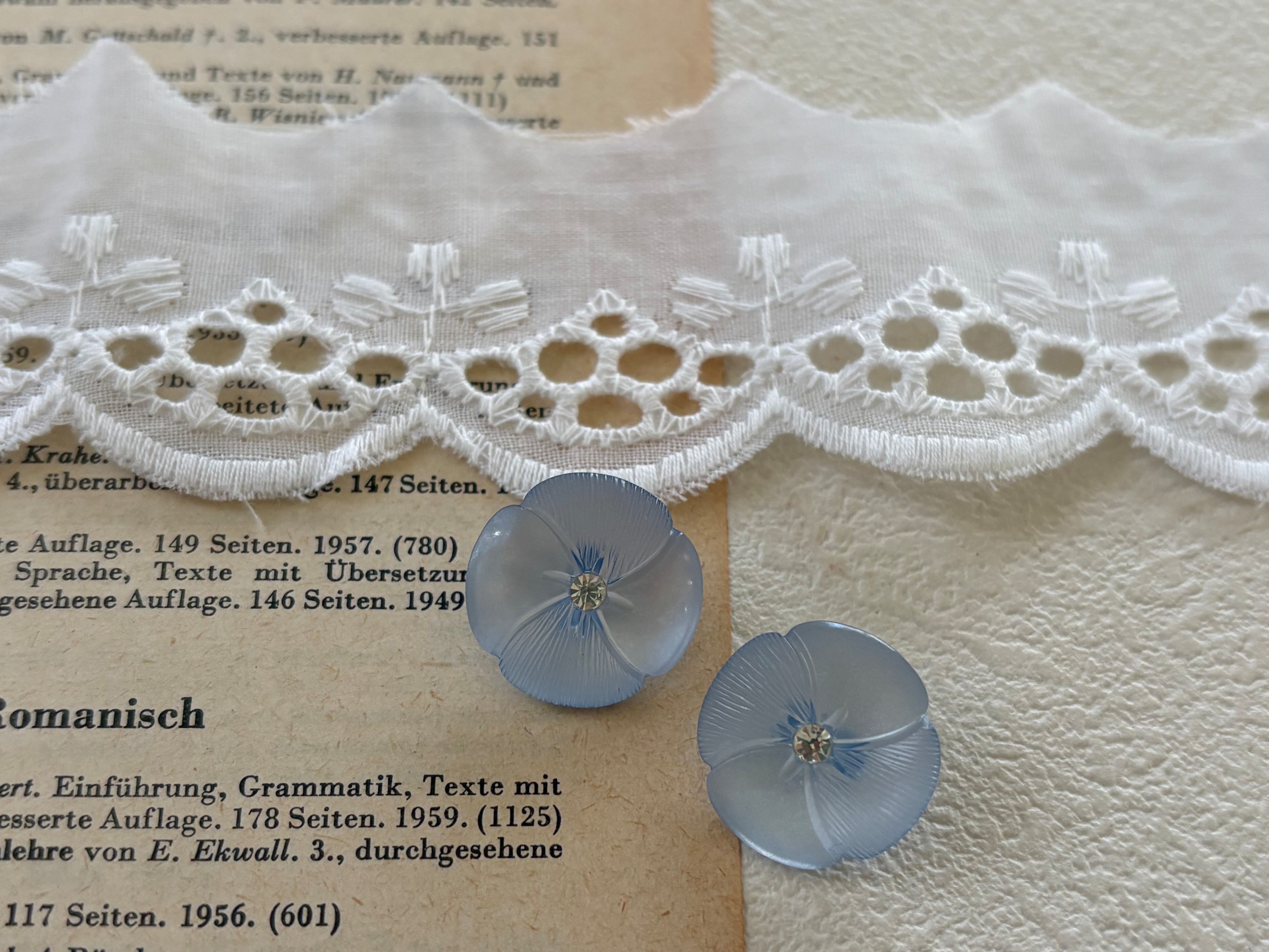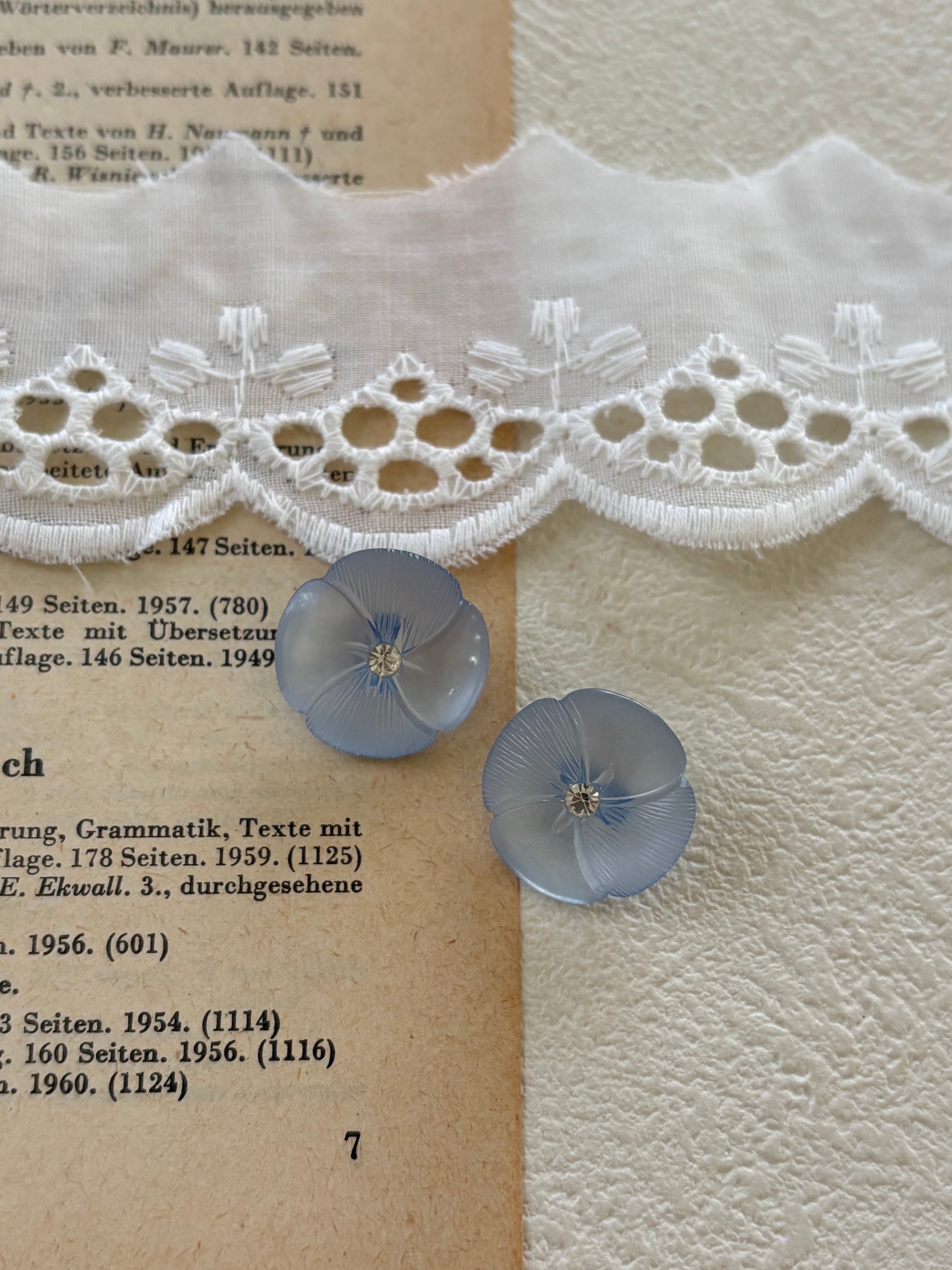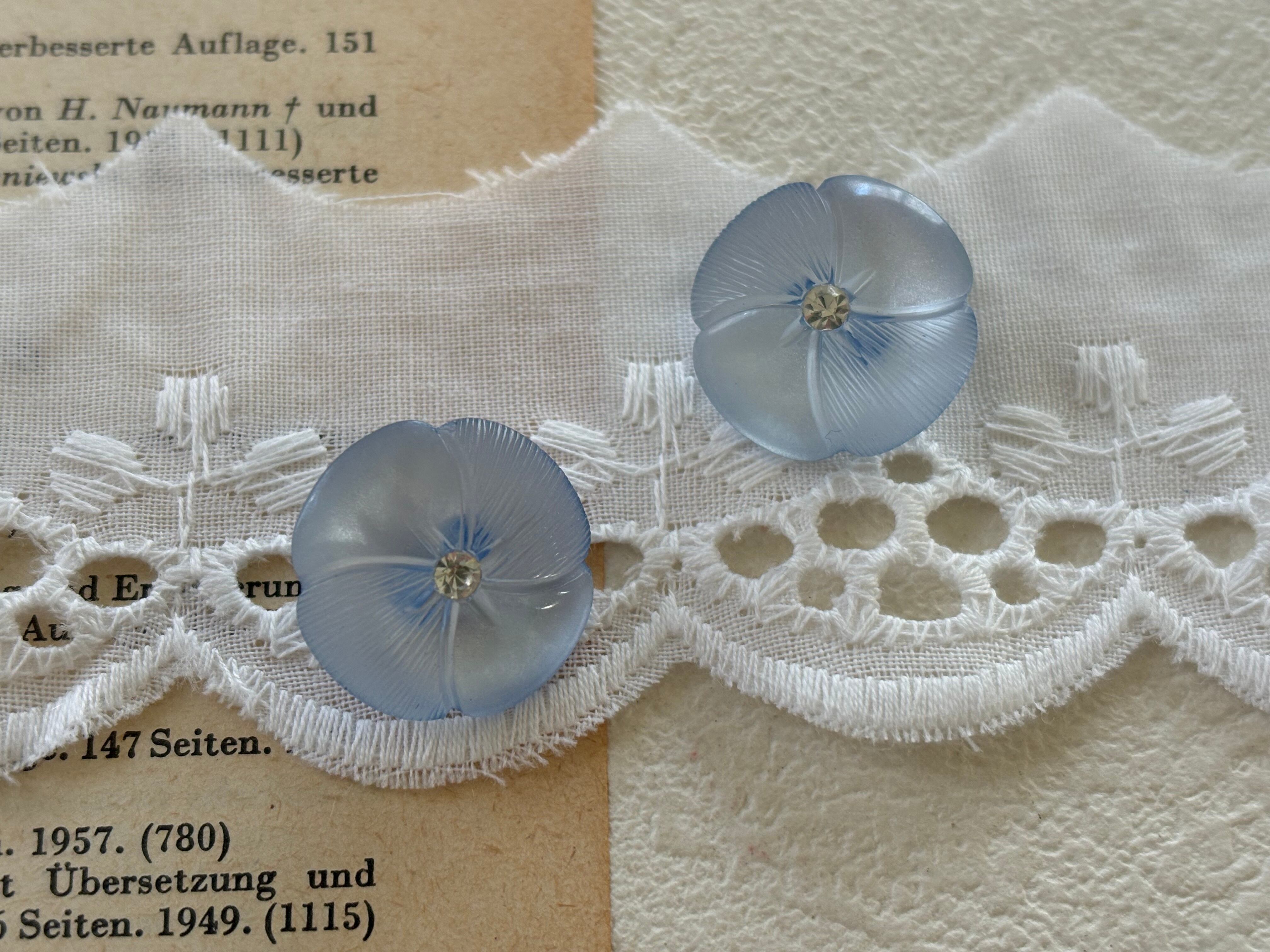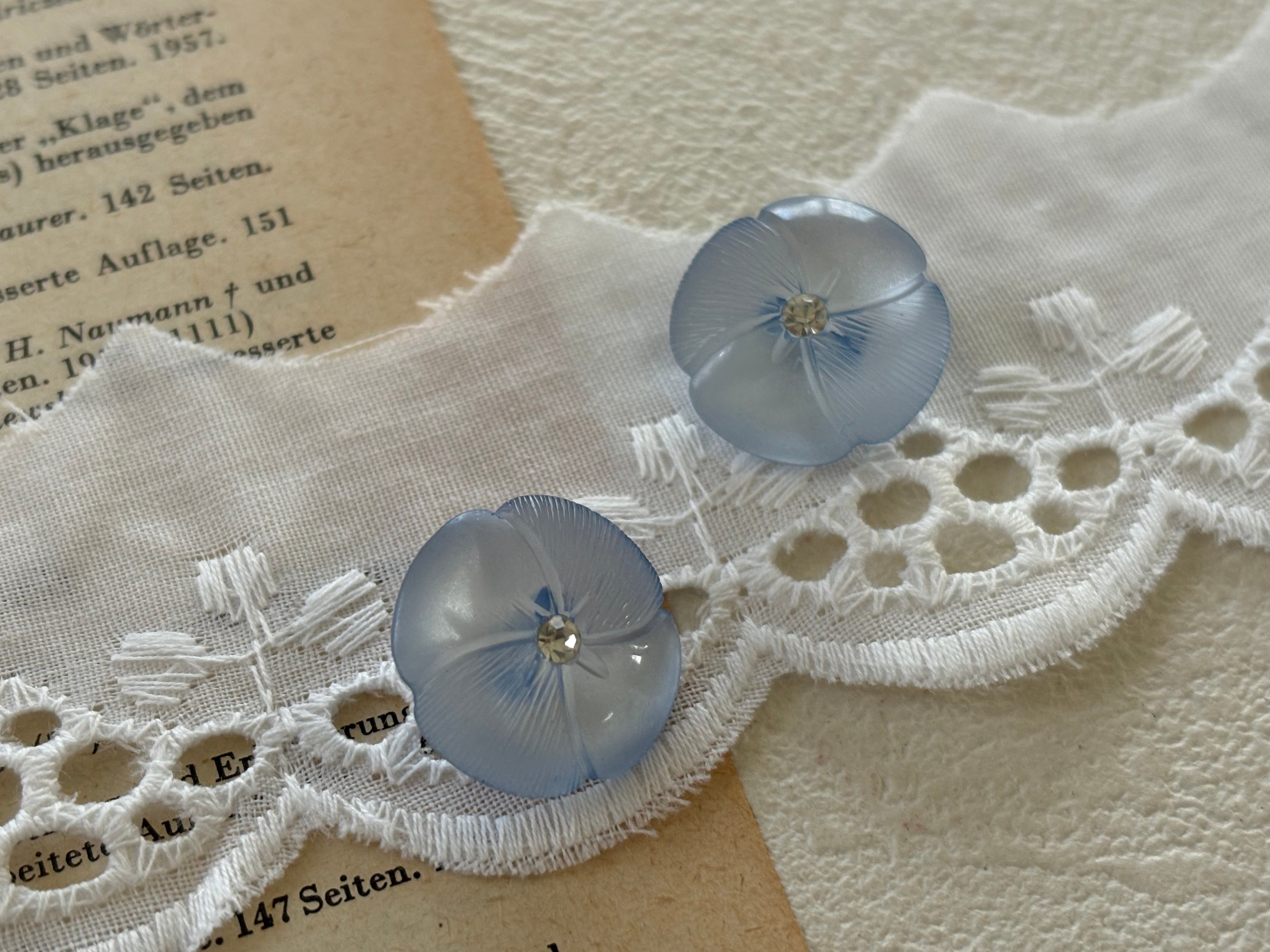 17mm Japanese ヴィンテージ ボタン フラワー フロスト ストーン ライトブルー アクセサリーパーツ 装飾材 カルトナージュ