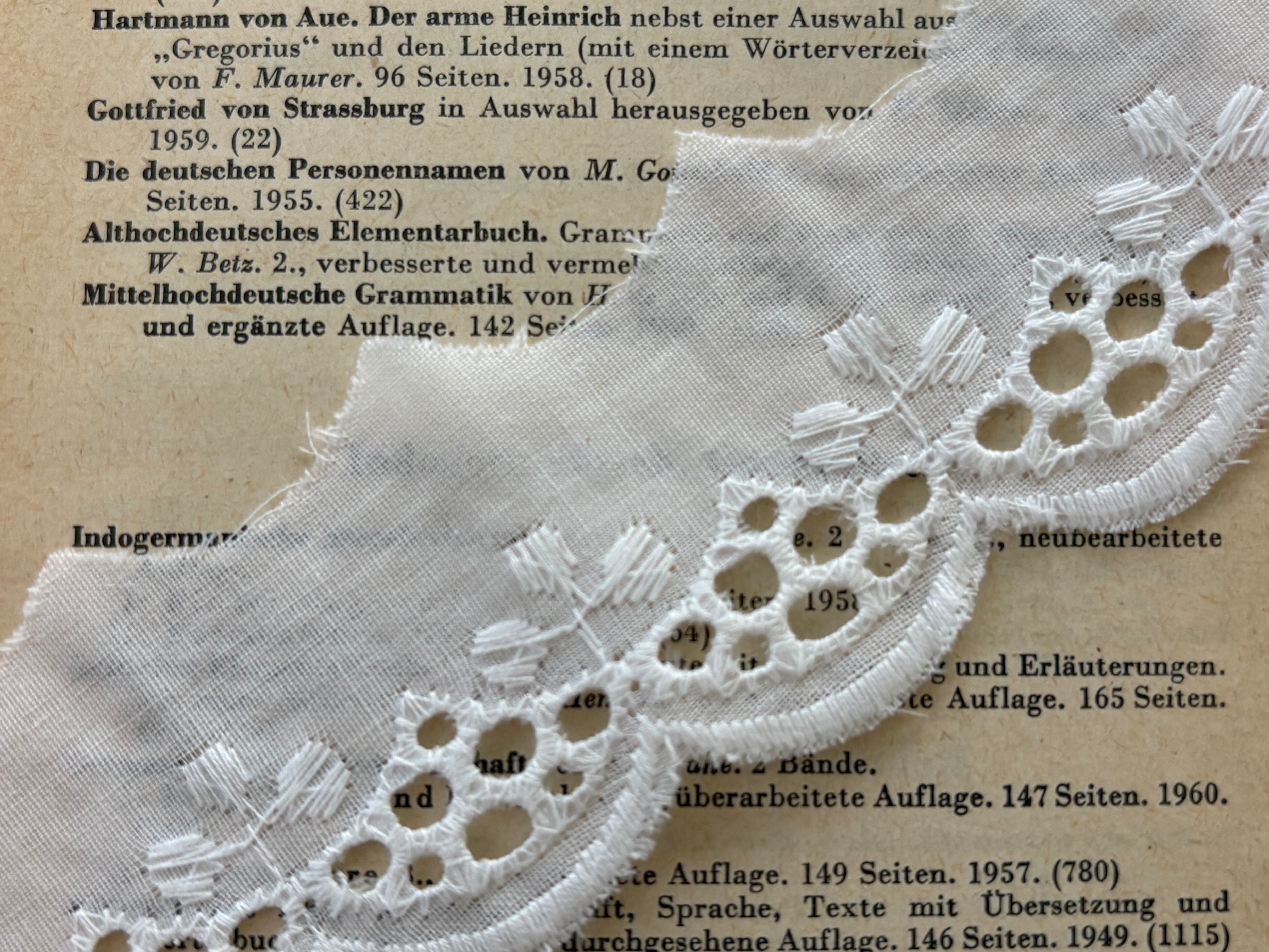 カットワークのデザイン、スカラップが可憐で可愛いレースです。