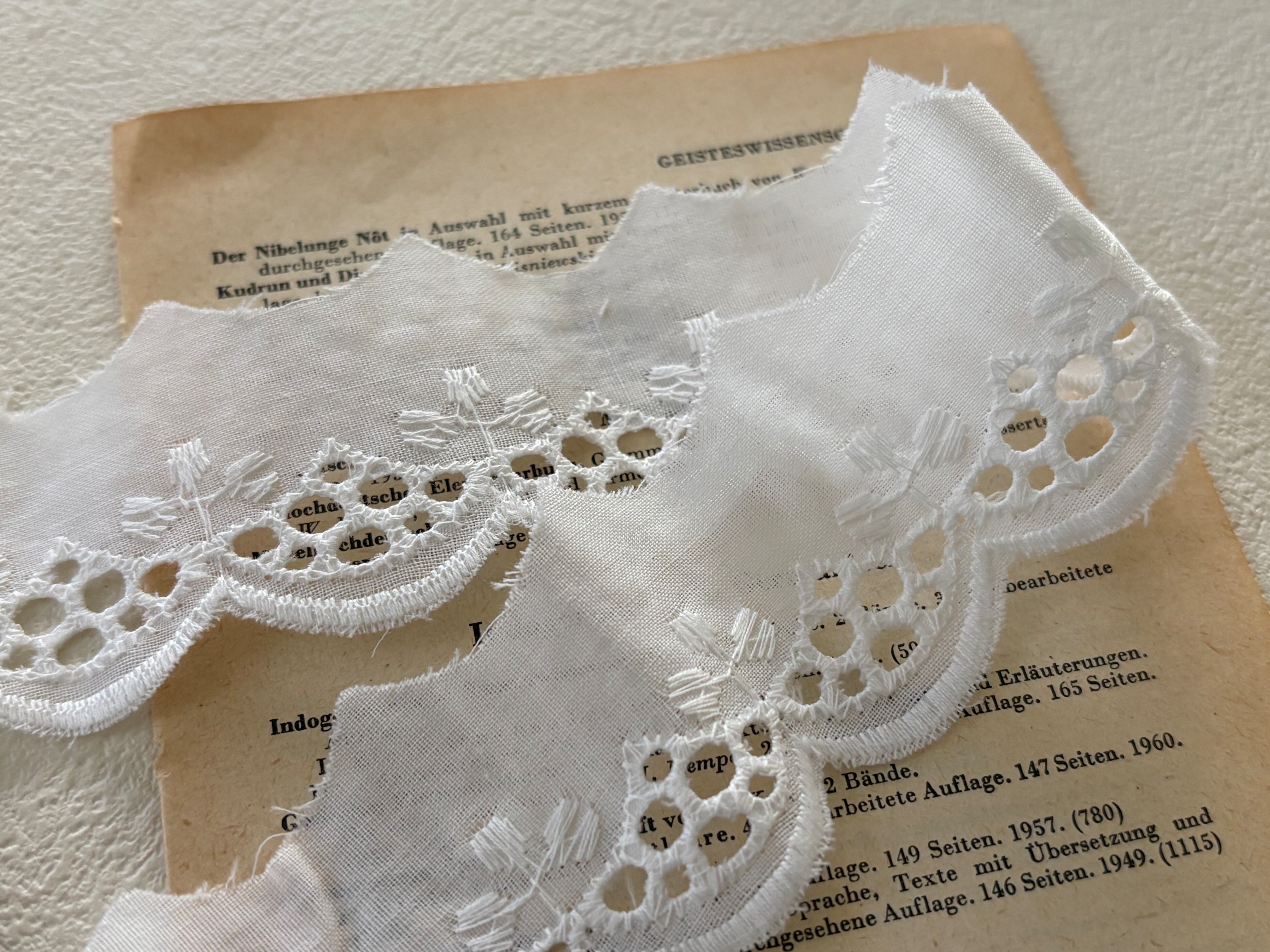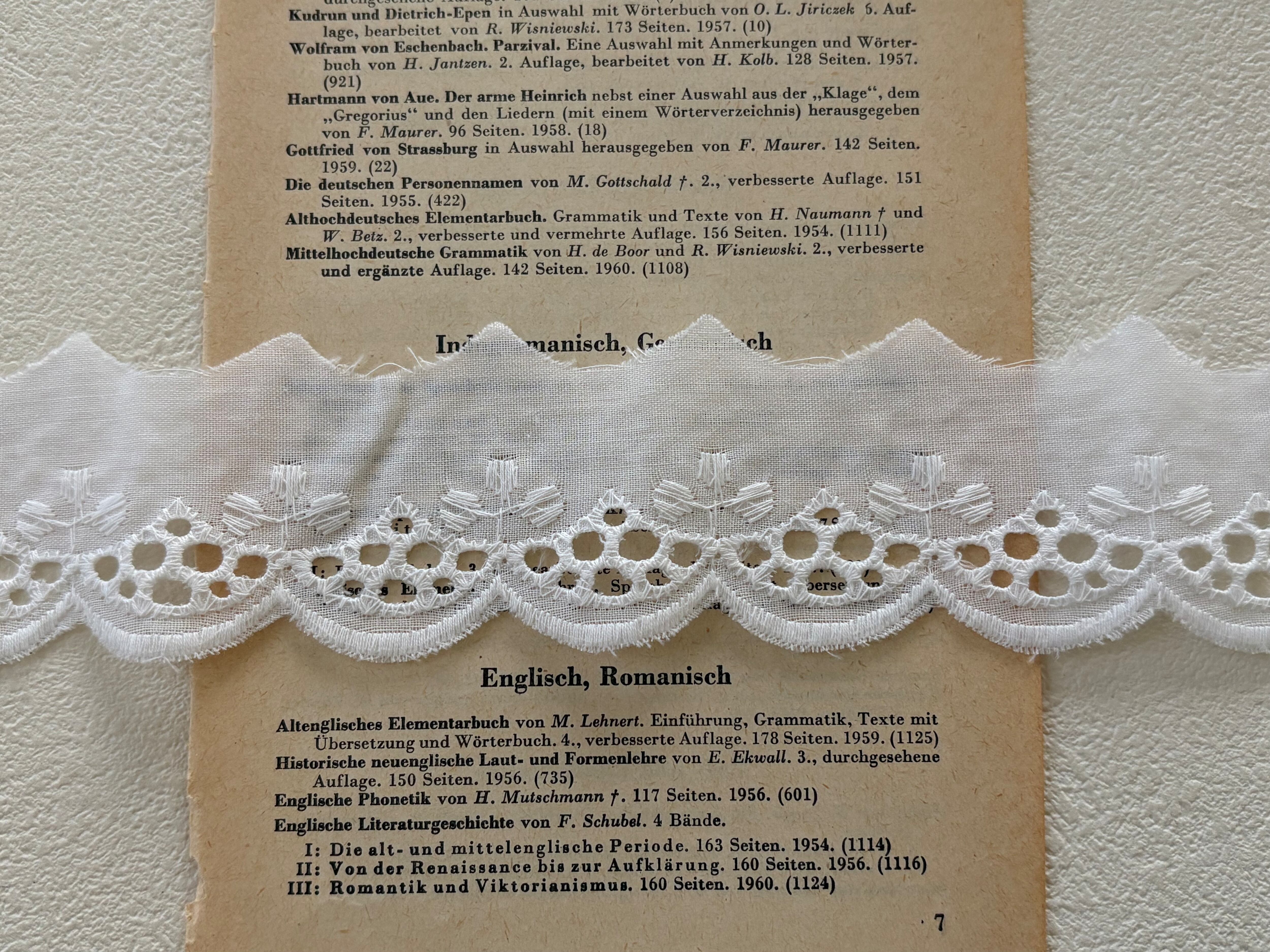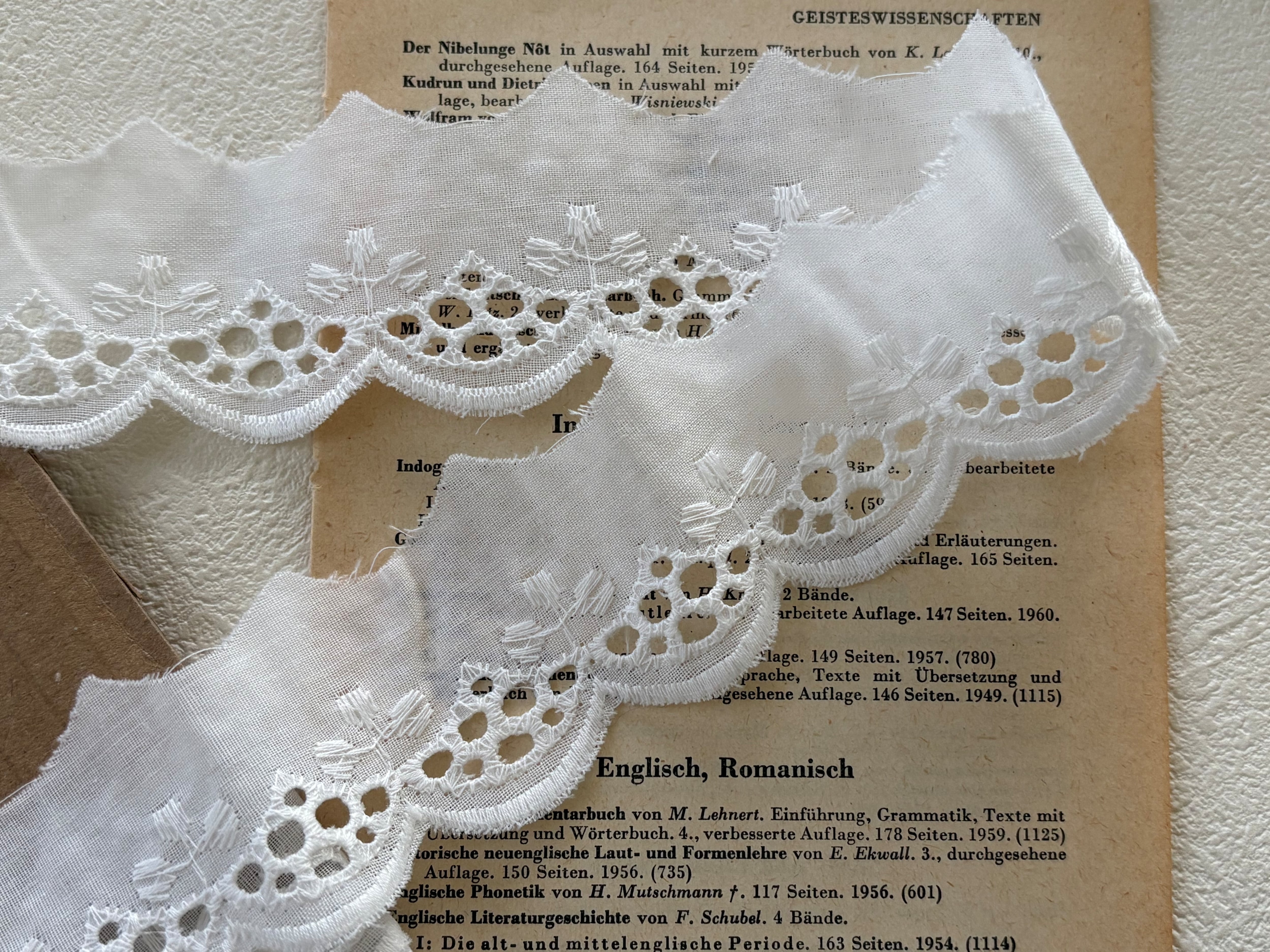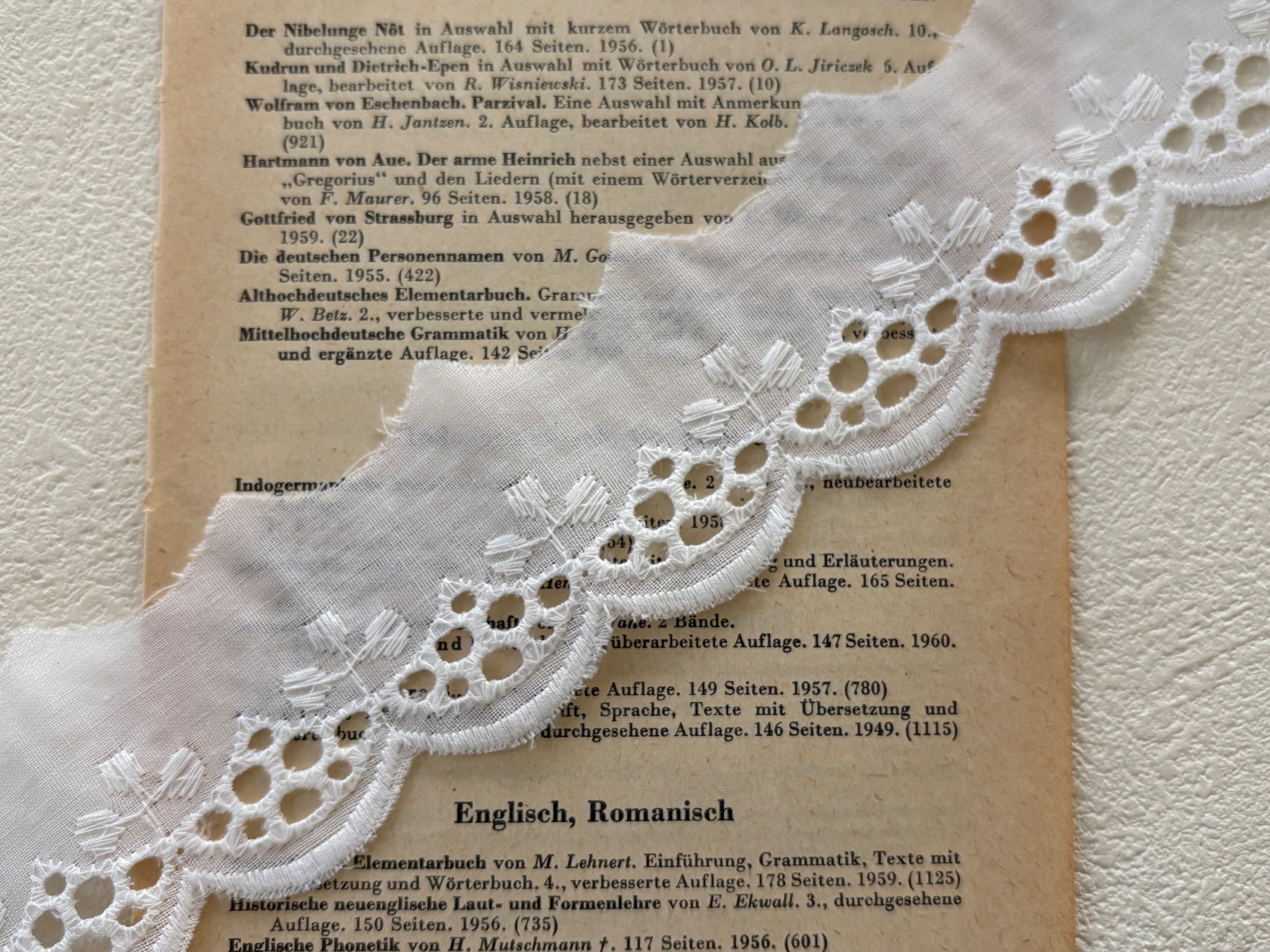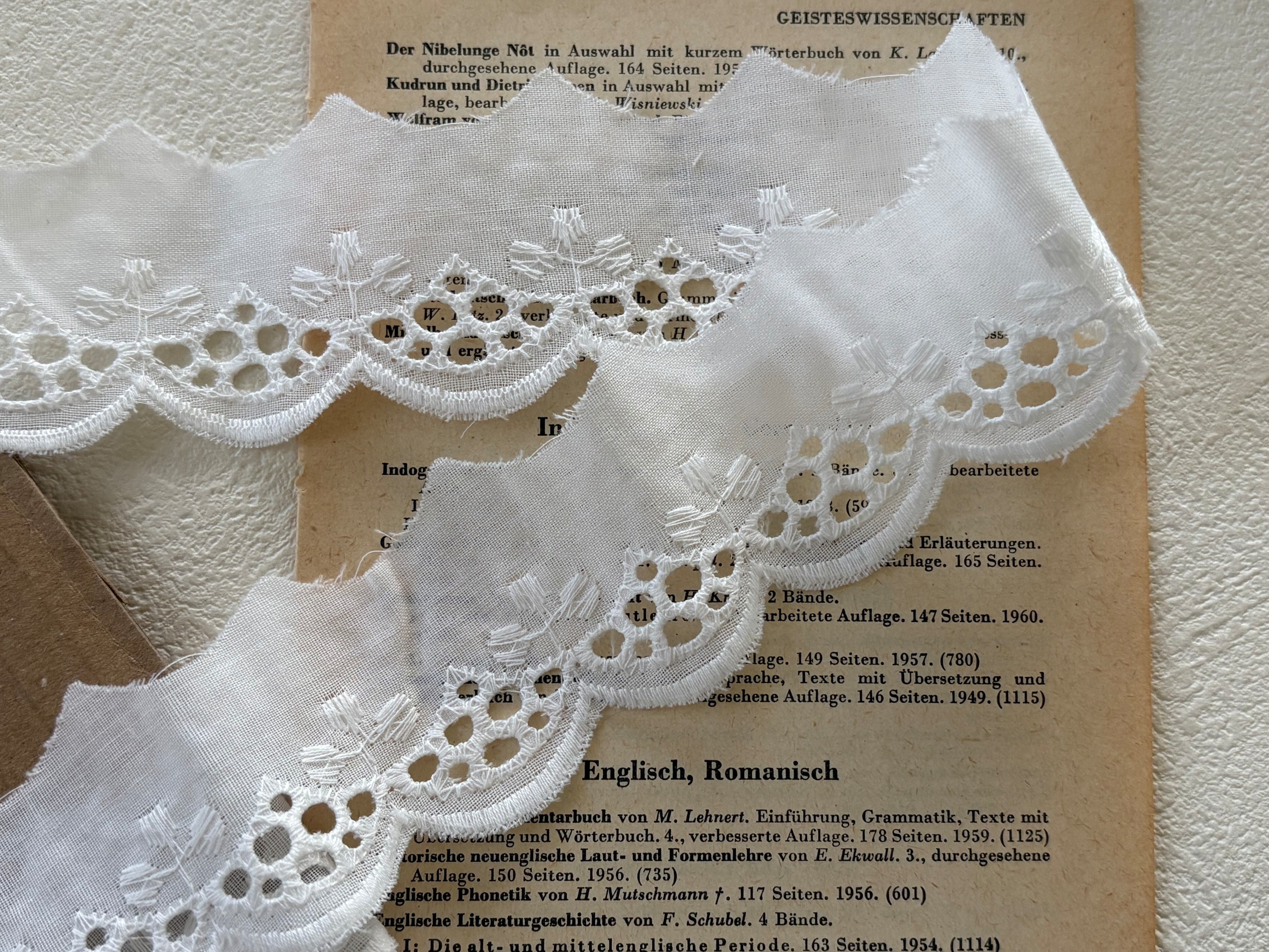 フランスVintage カットワークレース 幅約35mm クローバー スカラップ コットンレース カットレース 67cm デコレーション カルトナージュ コラージュ