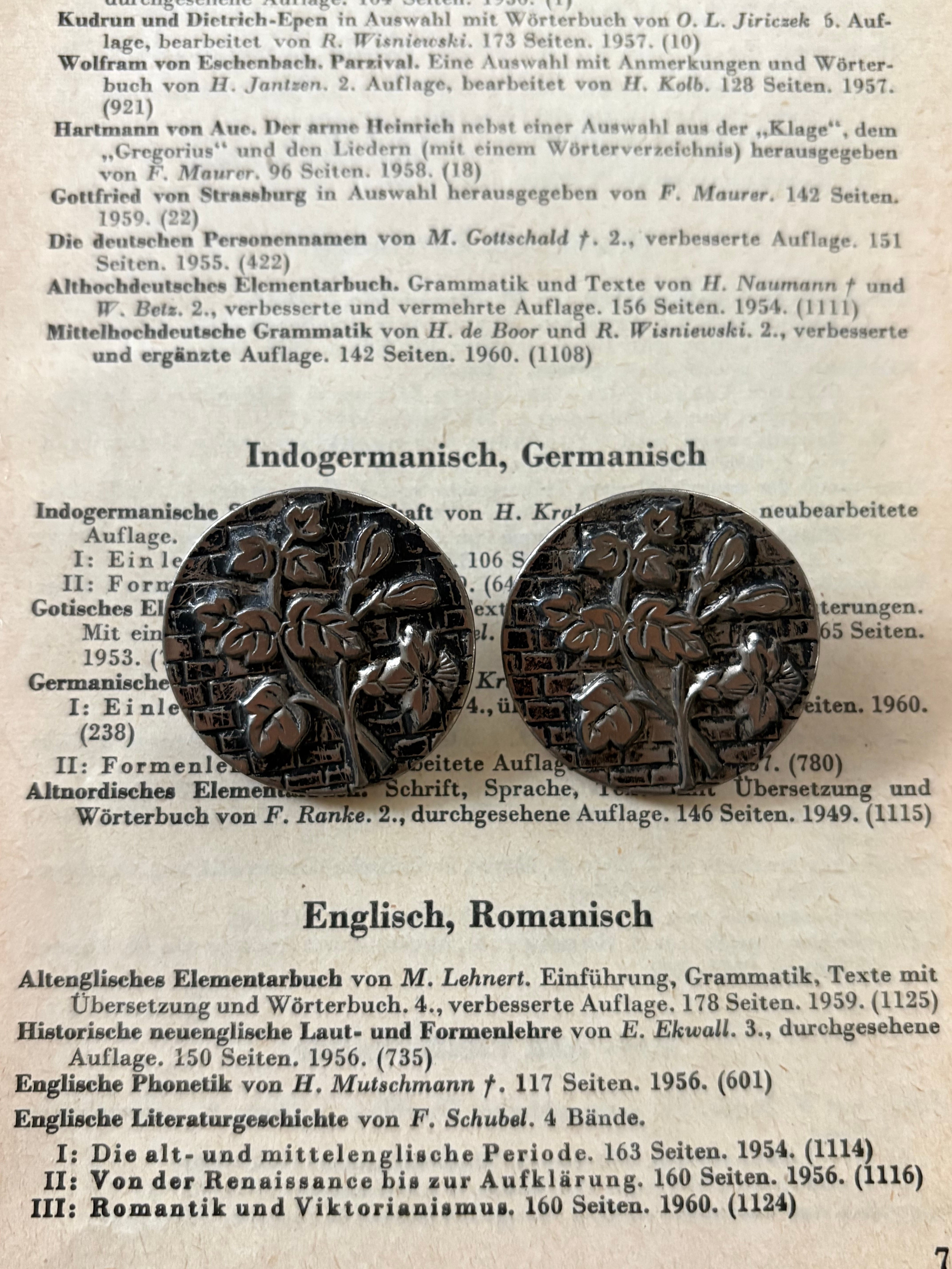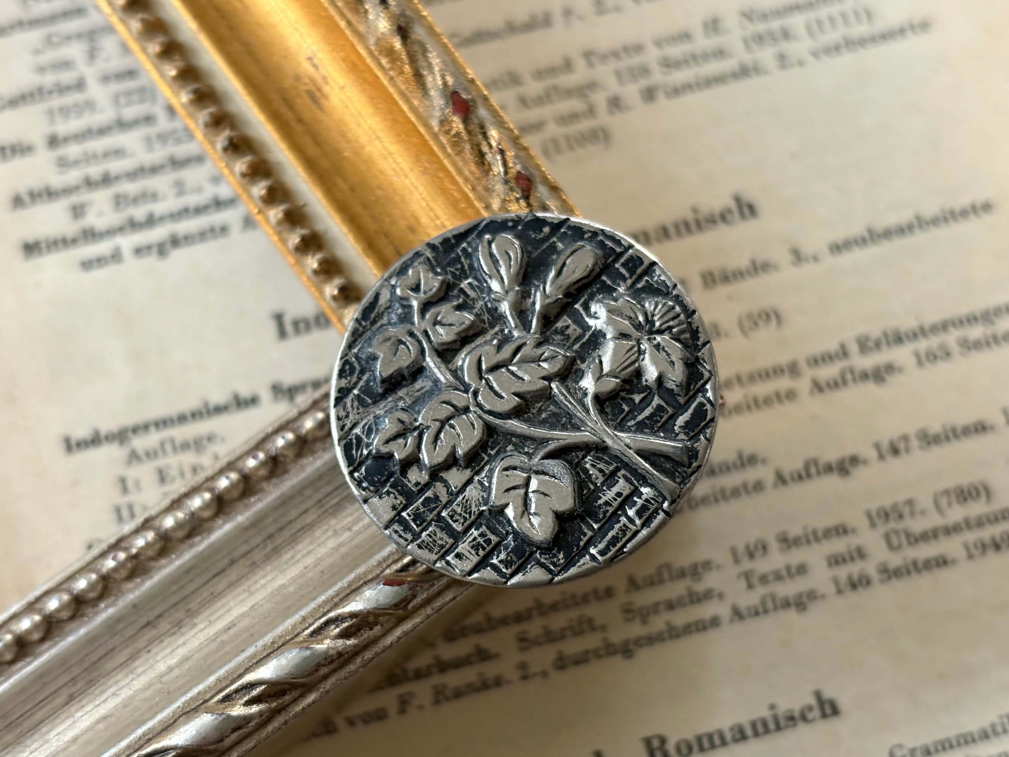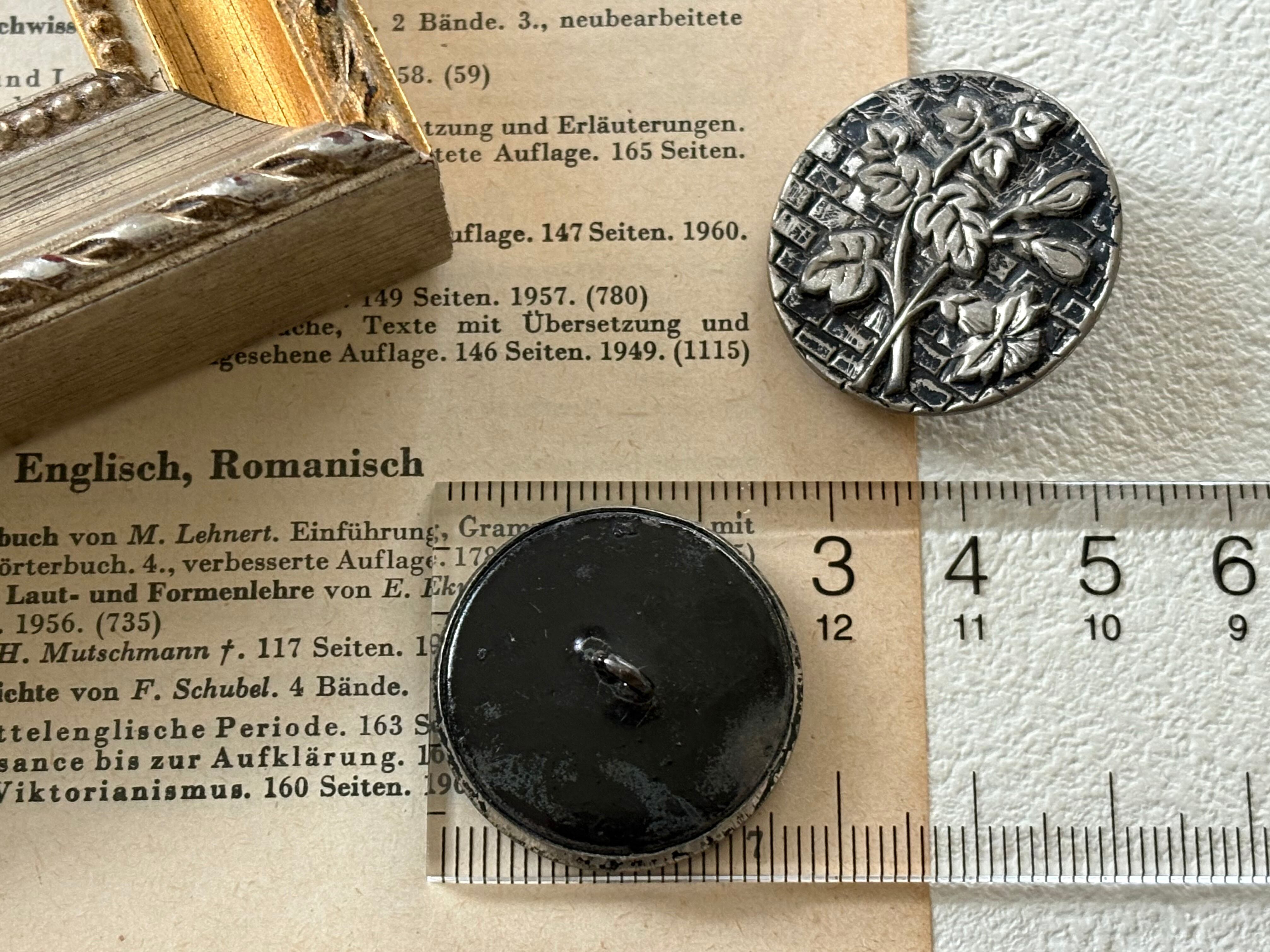 27mm フランスアンティークボタン メタル フラワーとリーフのレリーフ アクセサリーパーツ コレクション デコレーション材