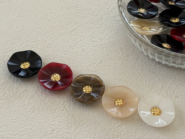 艶やかな、上品なマーブル調に輝くエレガントなお花型のボタンです。