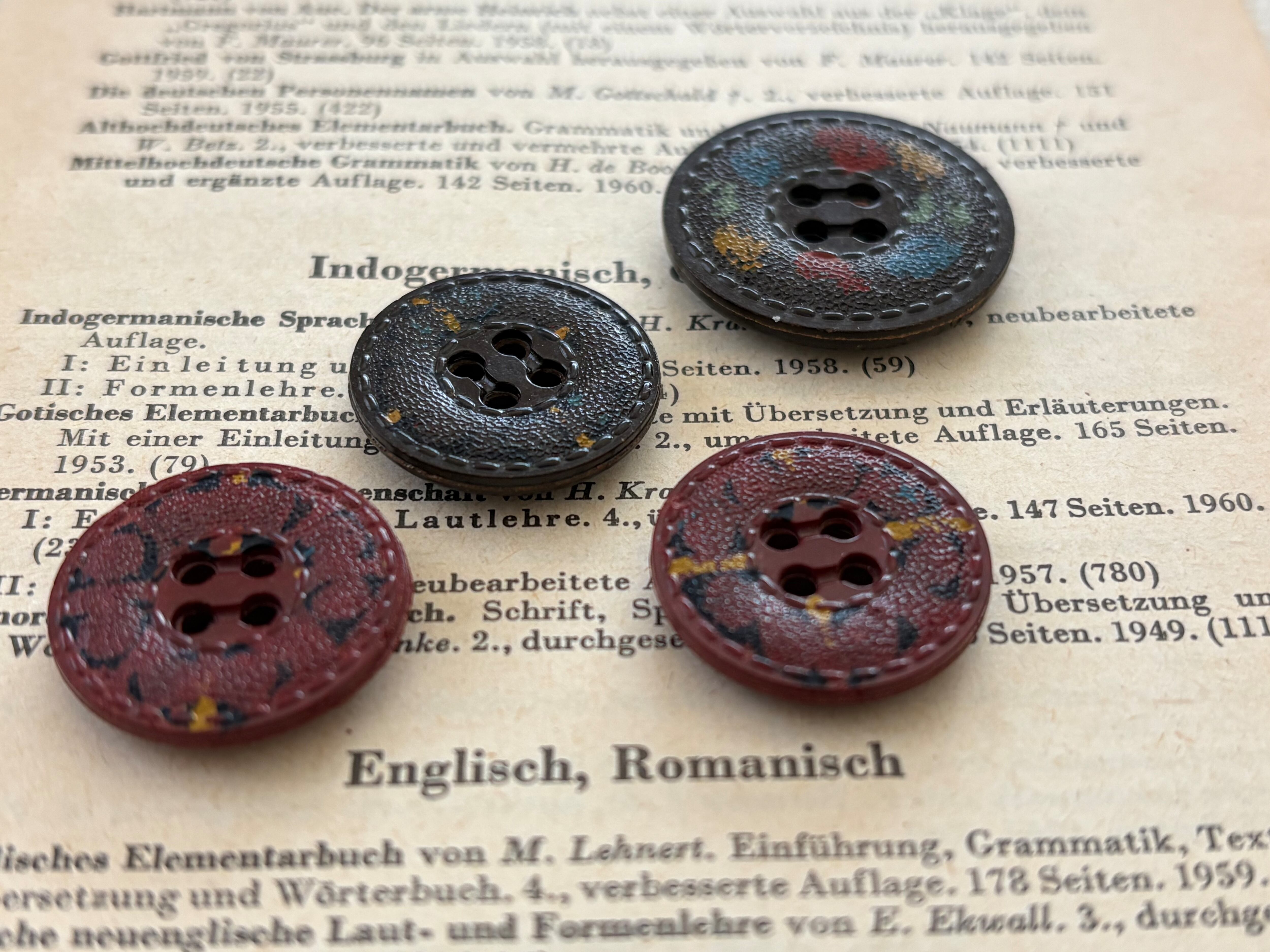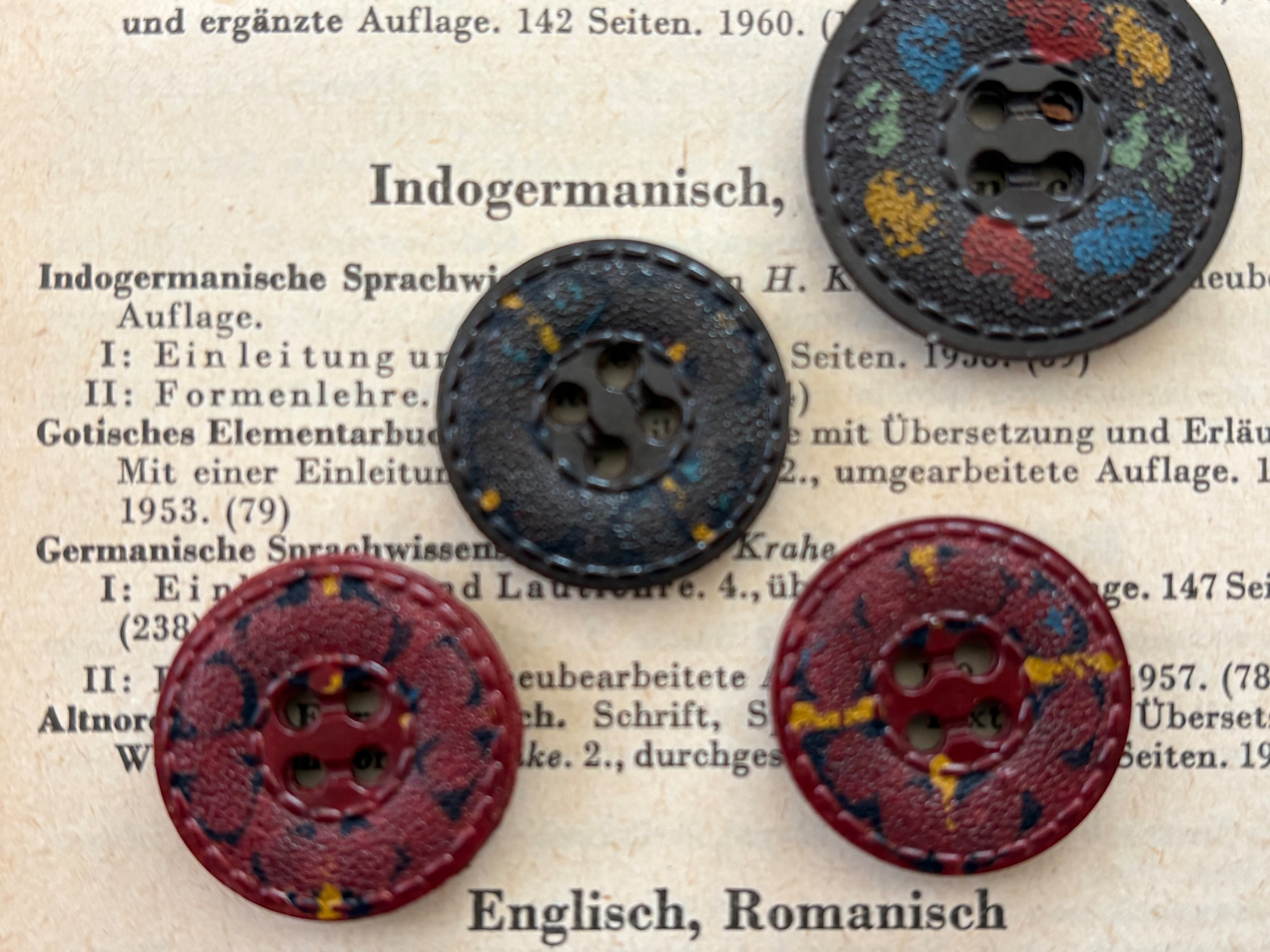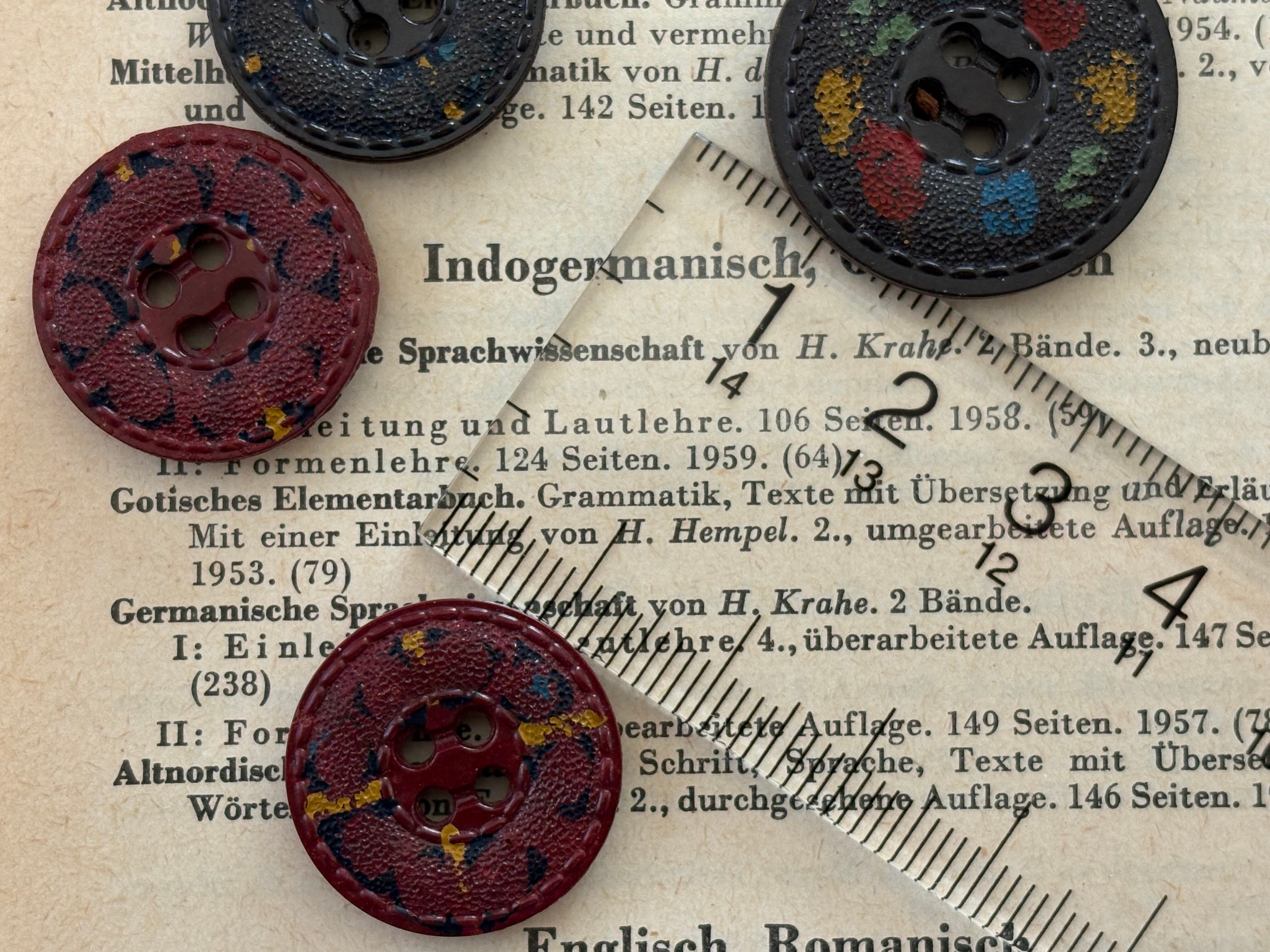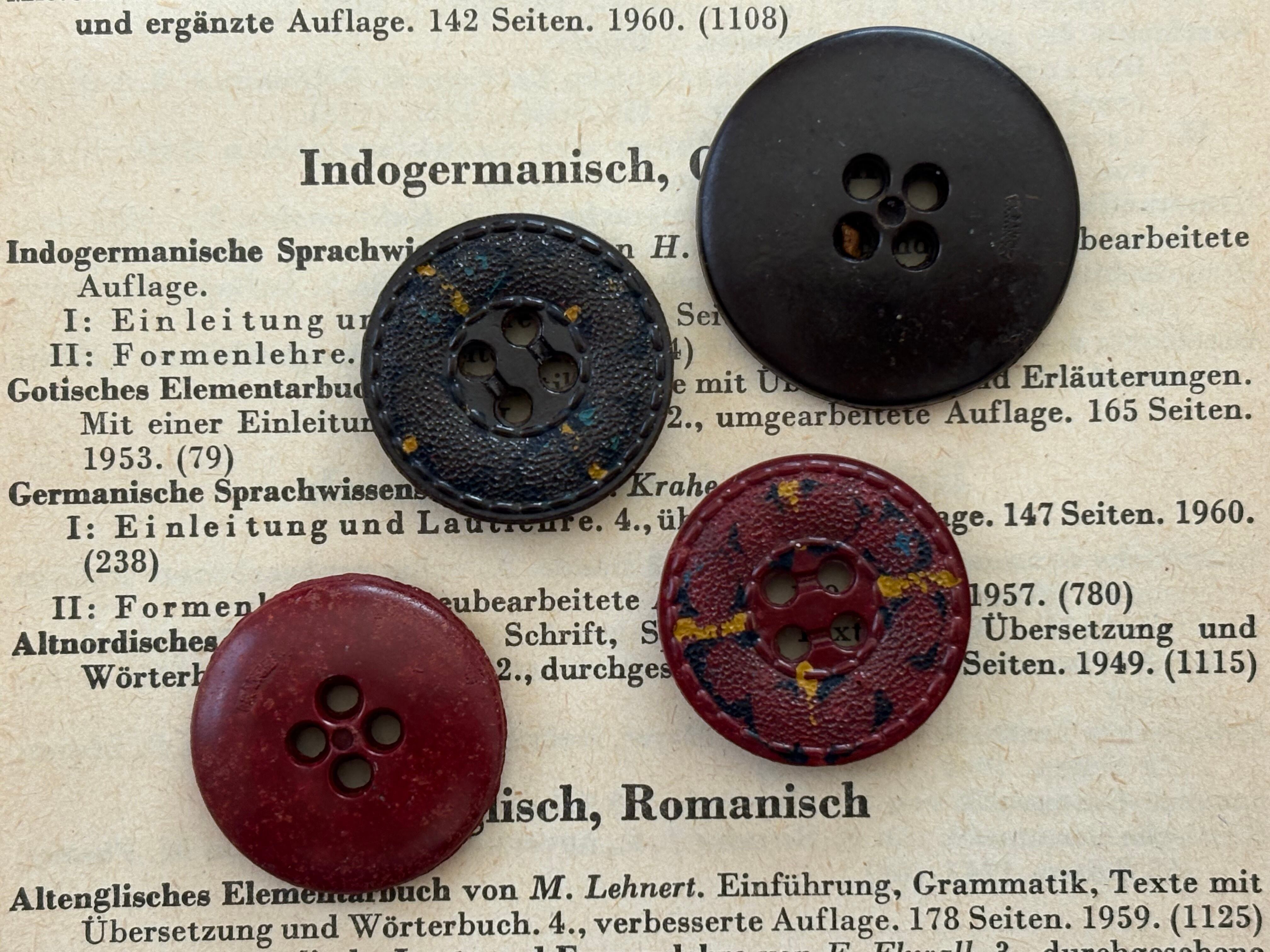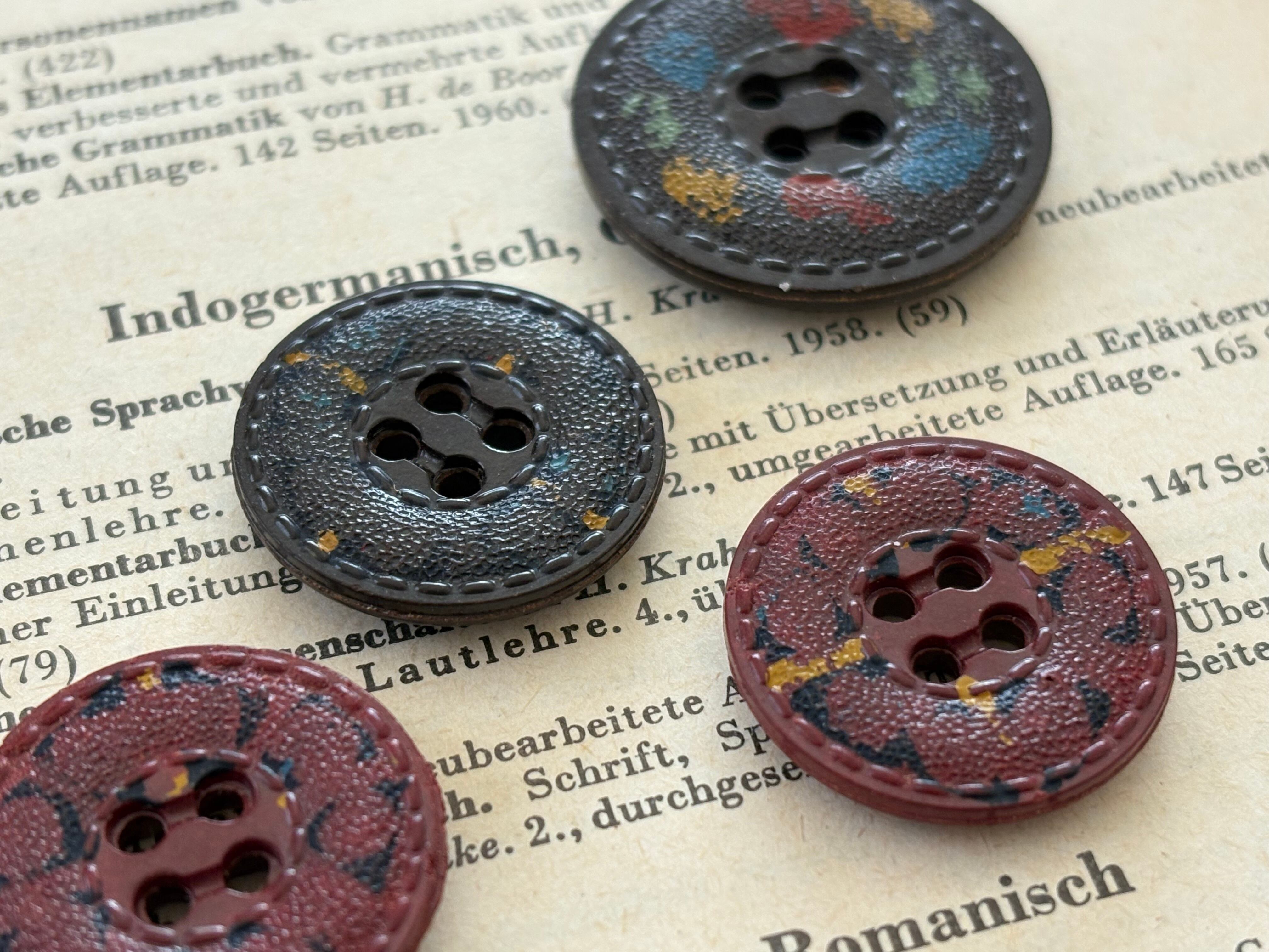 フランス Vintage ヴィンテージボタン 4個セット レザー調 20mm/25mm プラスチックボタン アクセサリーパーツ デコレーション材 カルトナージュ