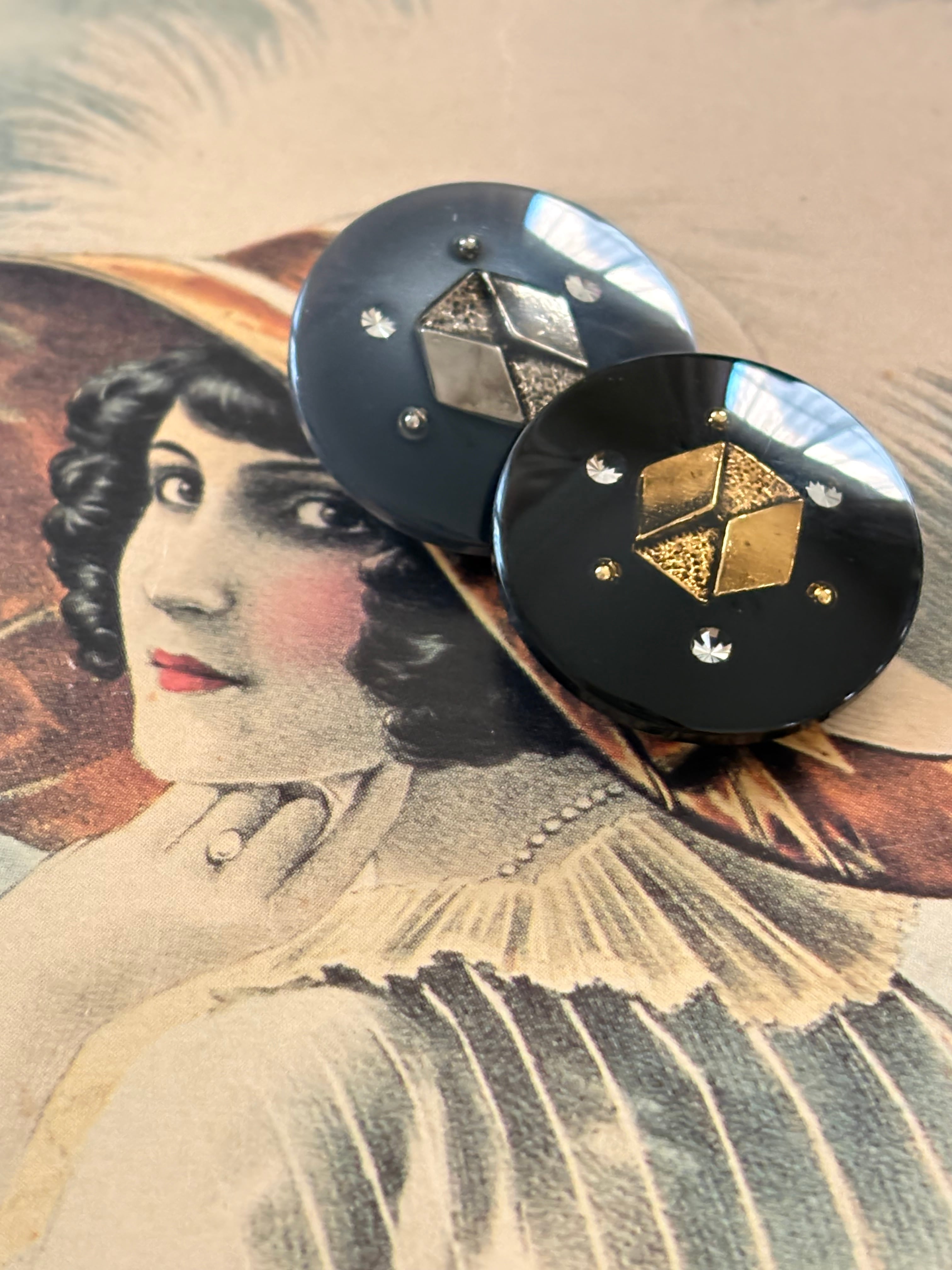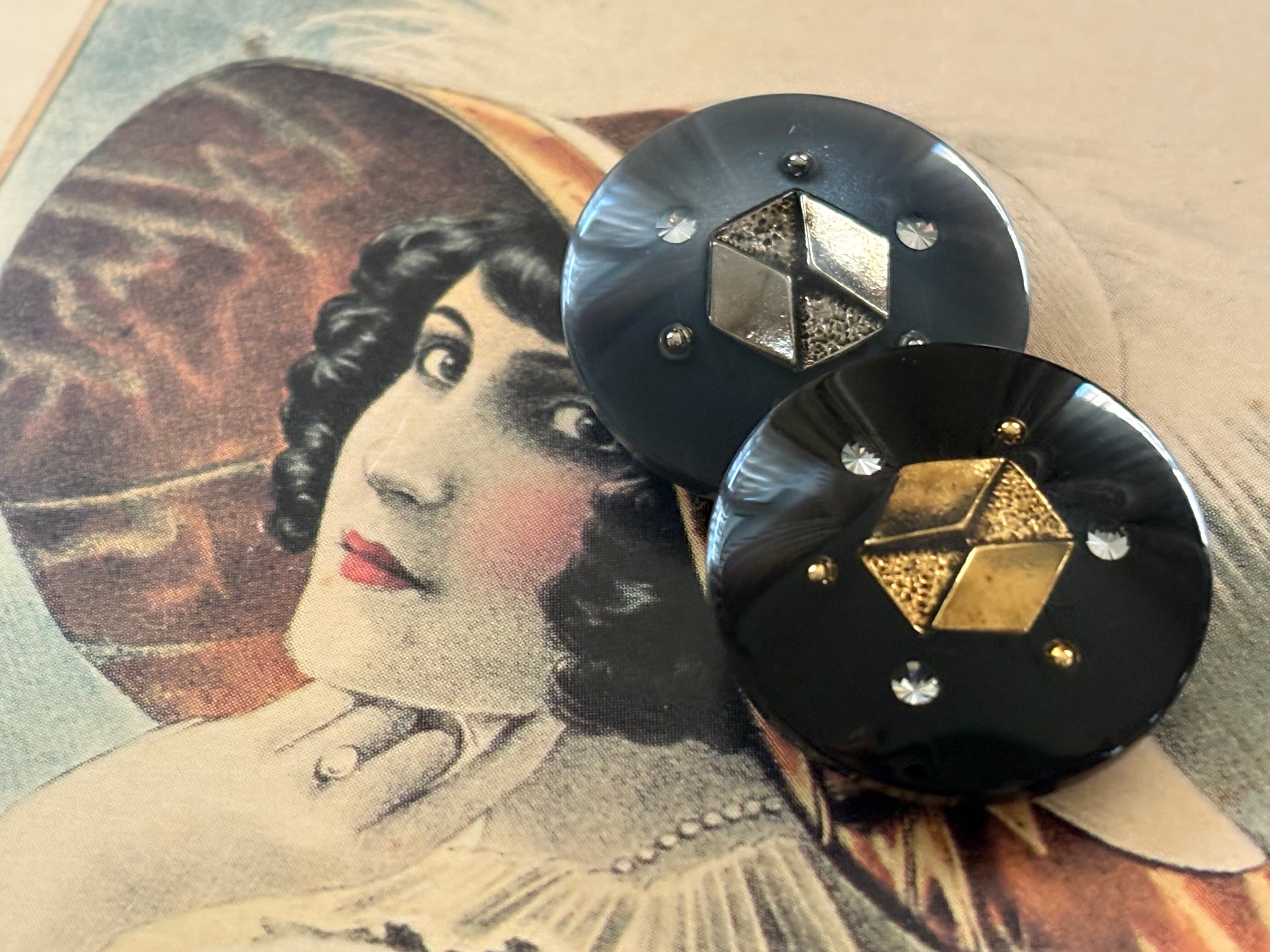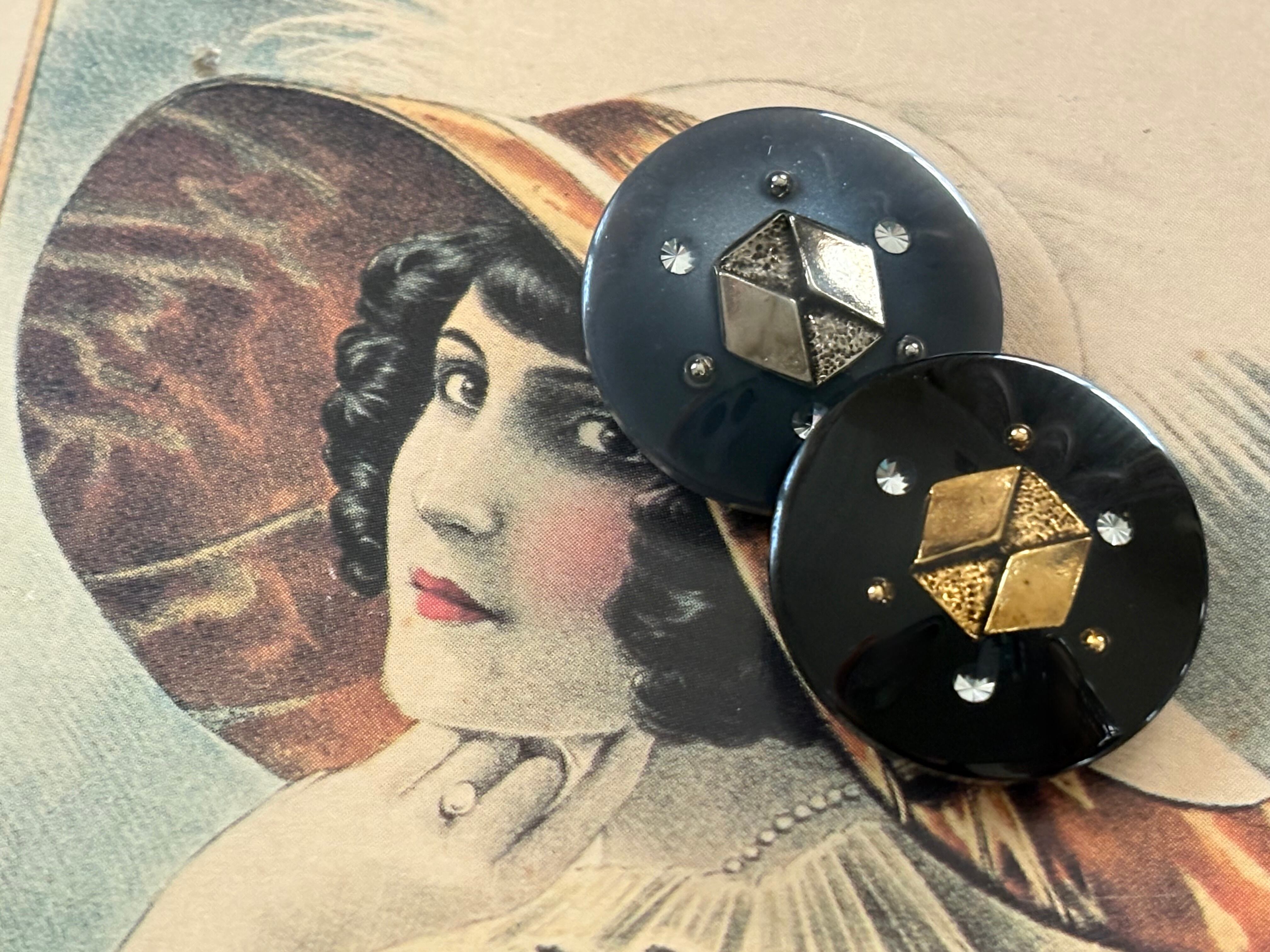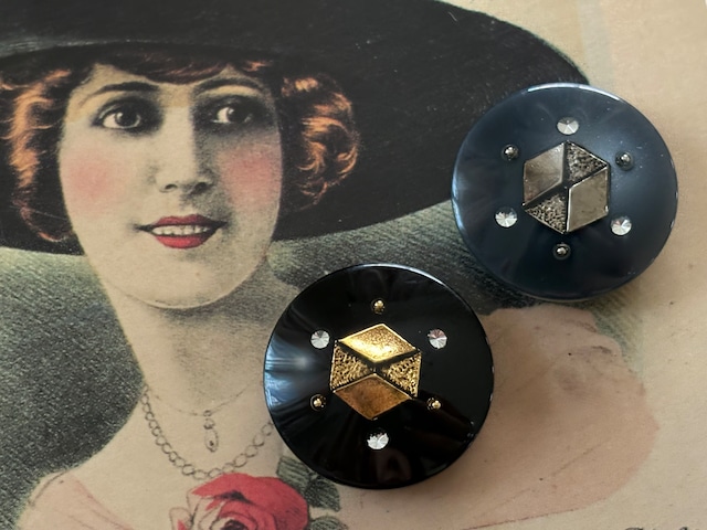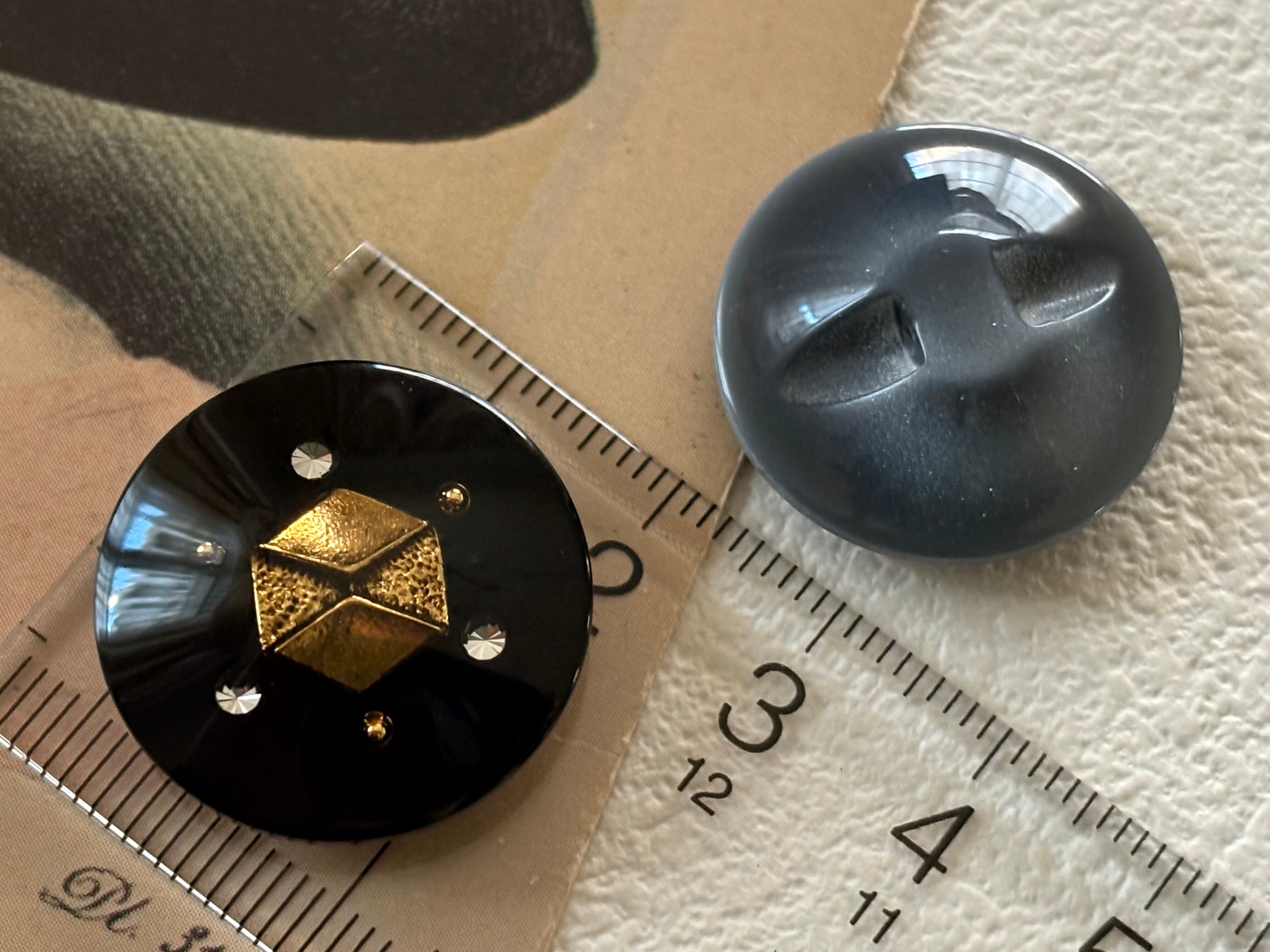 23mm Japanese ヴィンテージボタン ブラック/グレー×ゴールド/シルバー ストーン 樹脂ボタン 高級 アクセサリーパーツ 装飾材