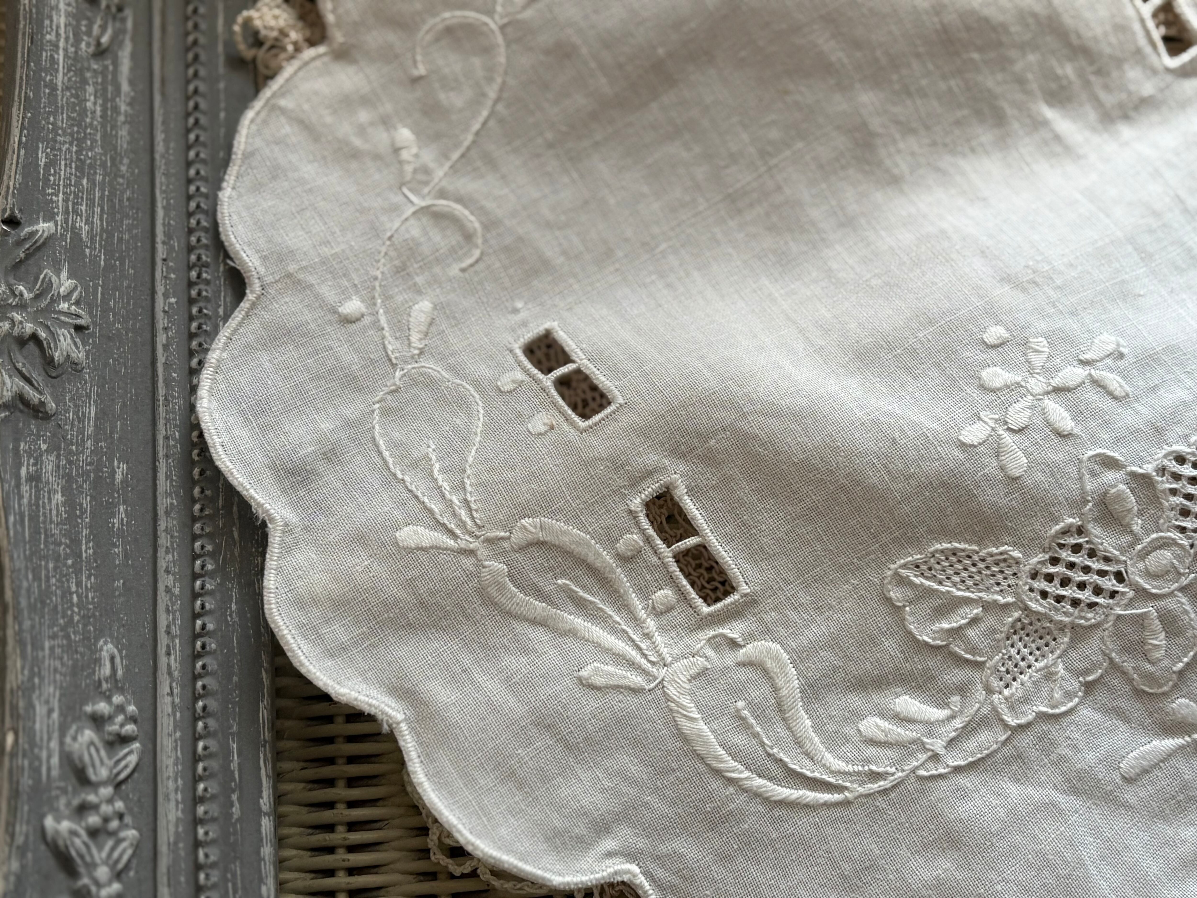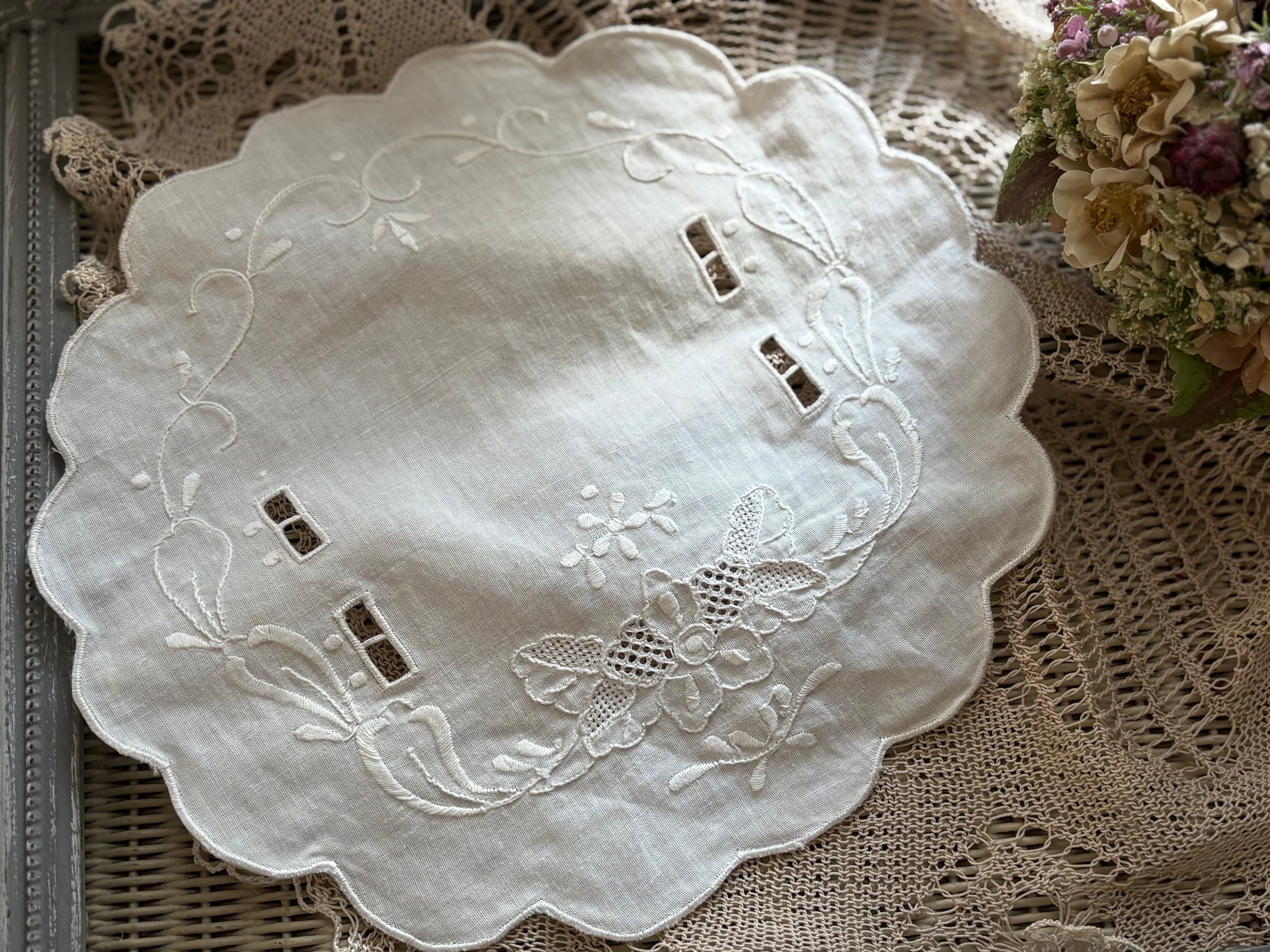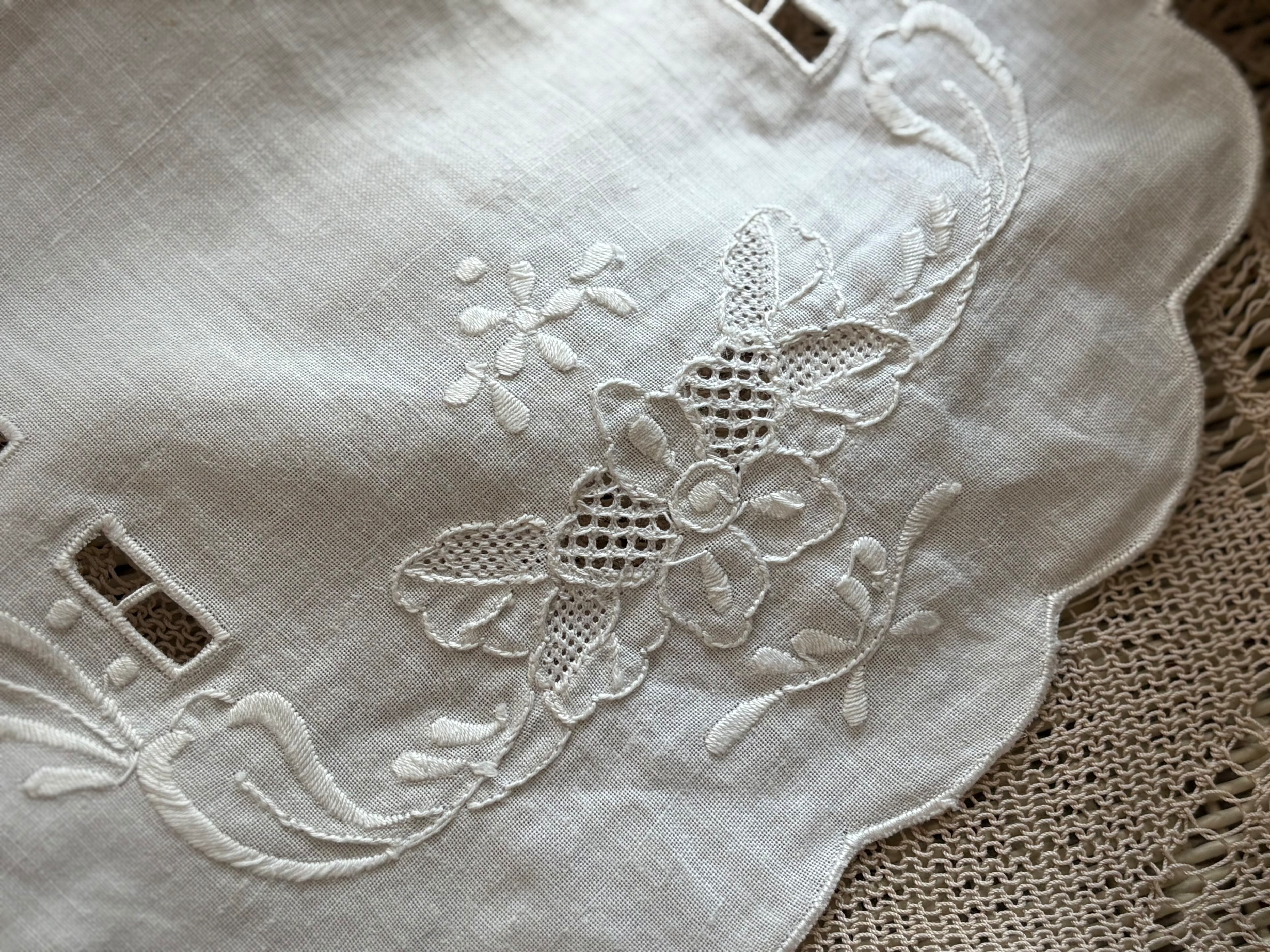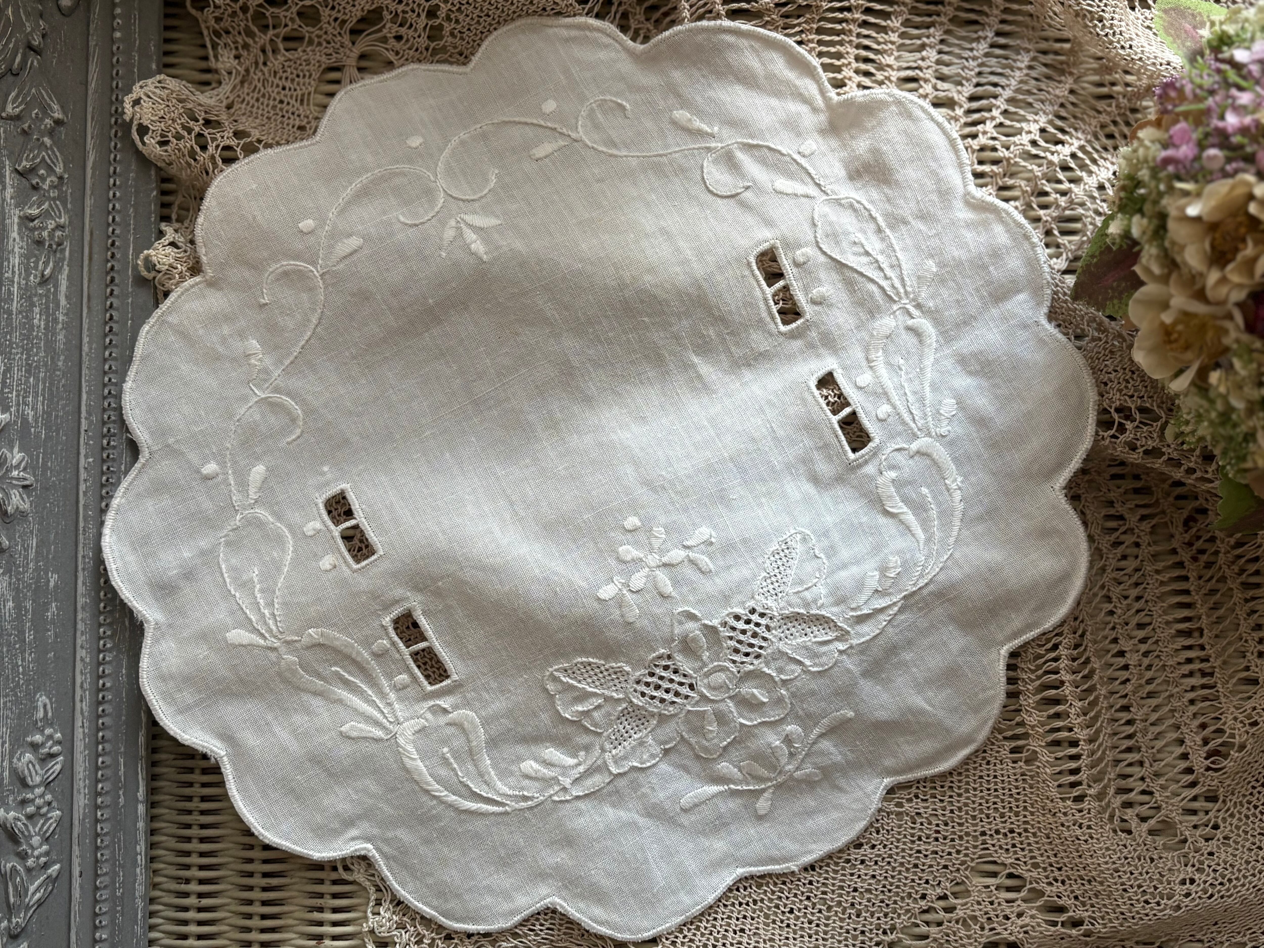 カットワーク、美しい刺繍が素敵なドイリーです。