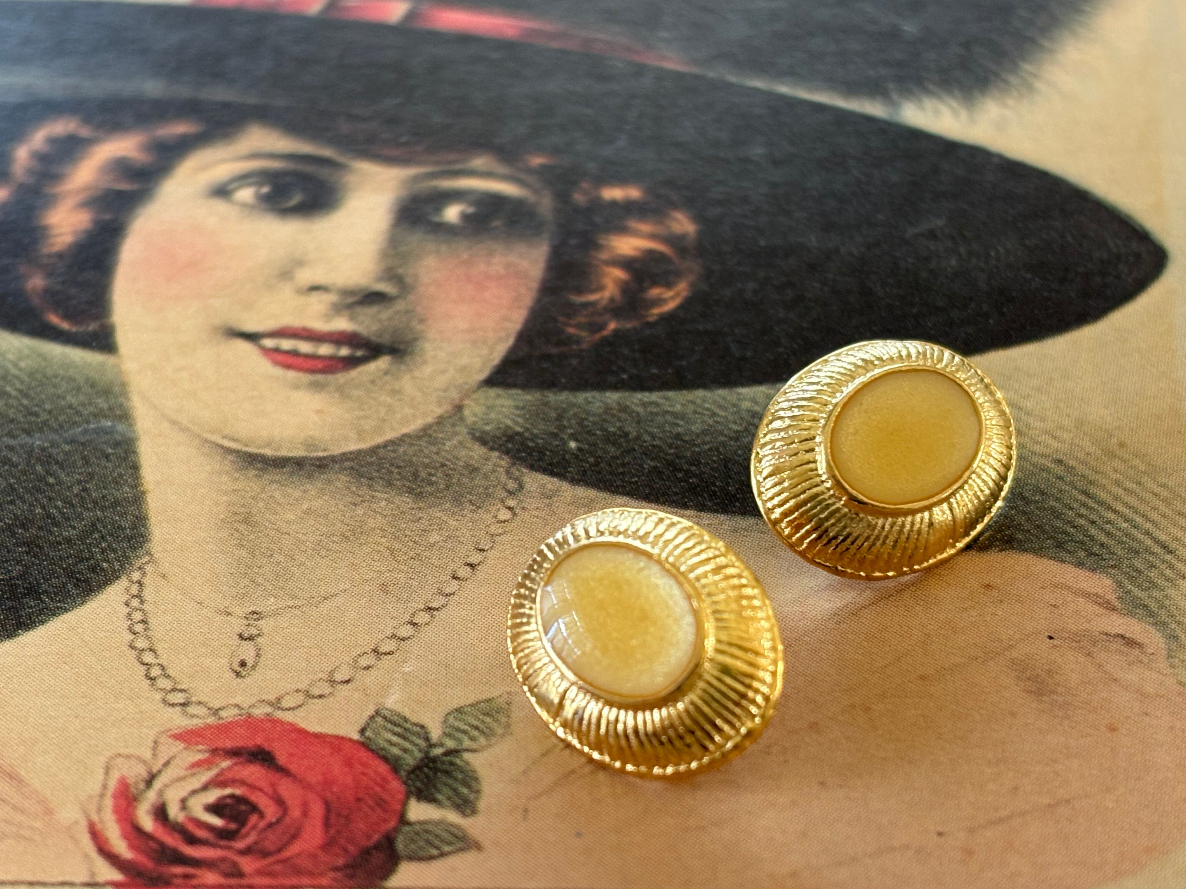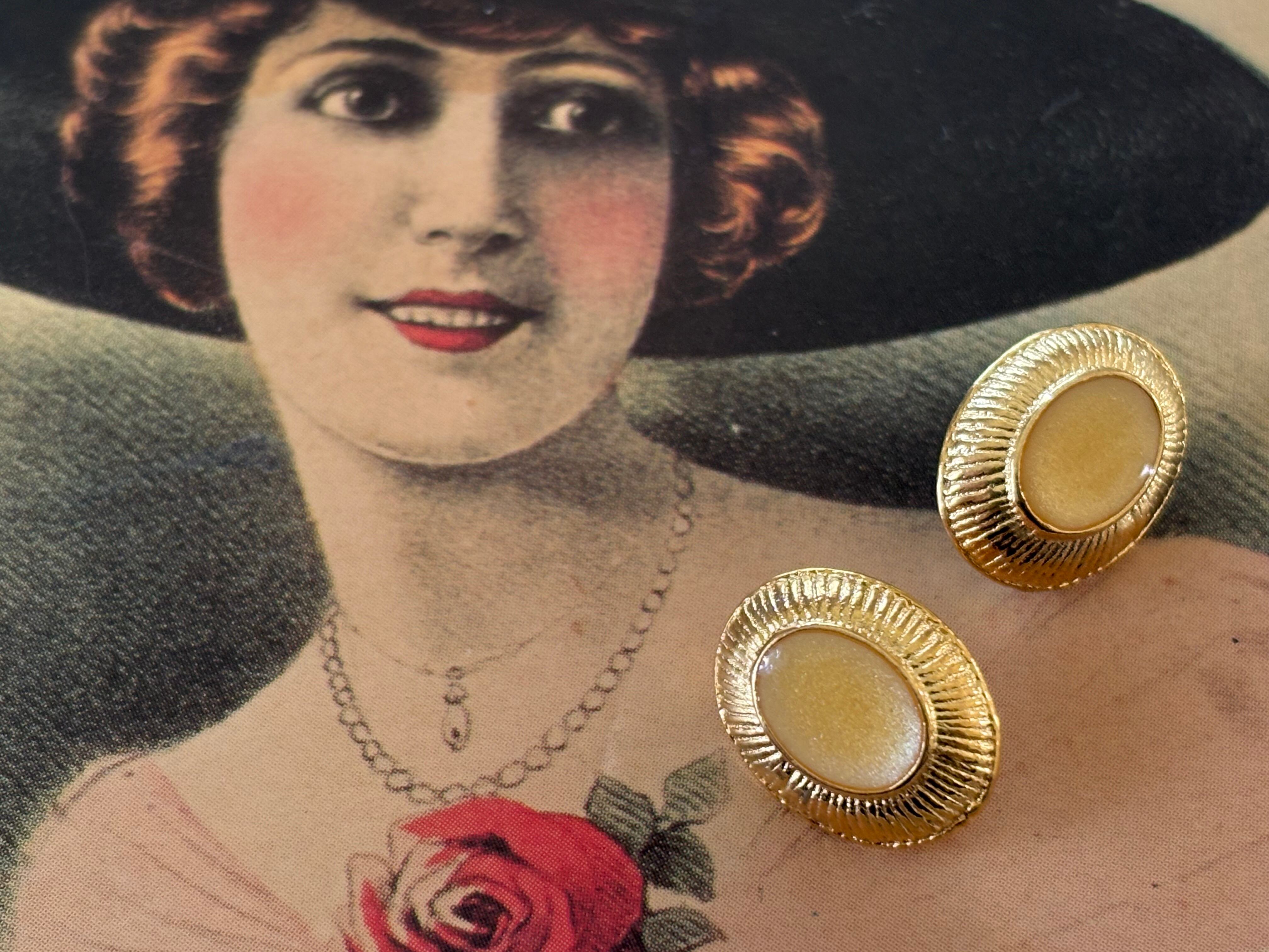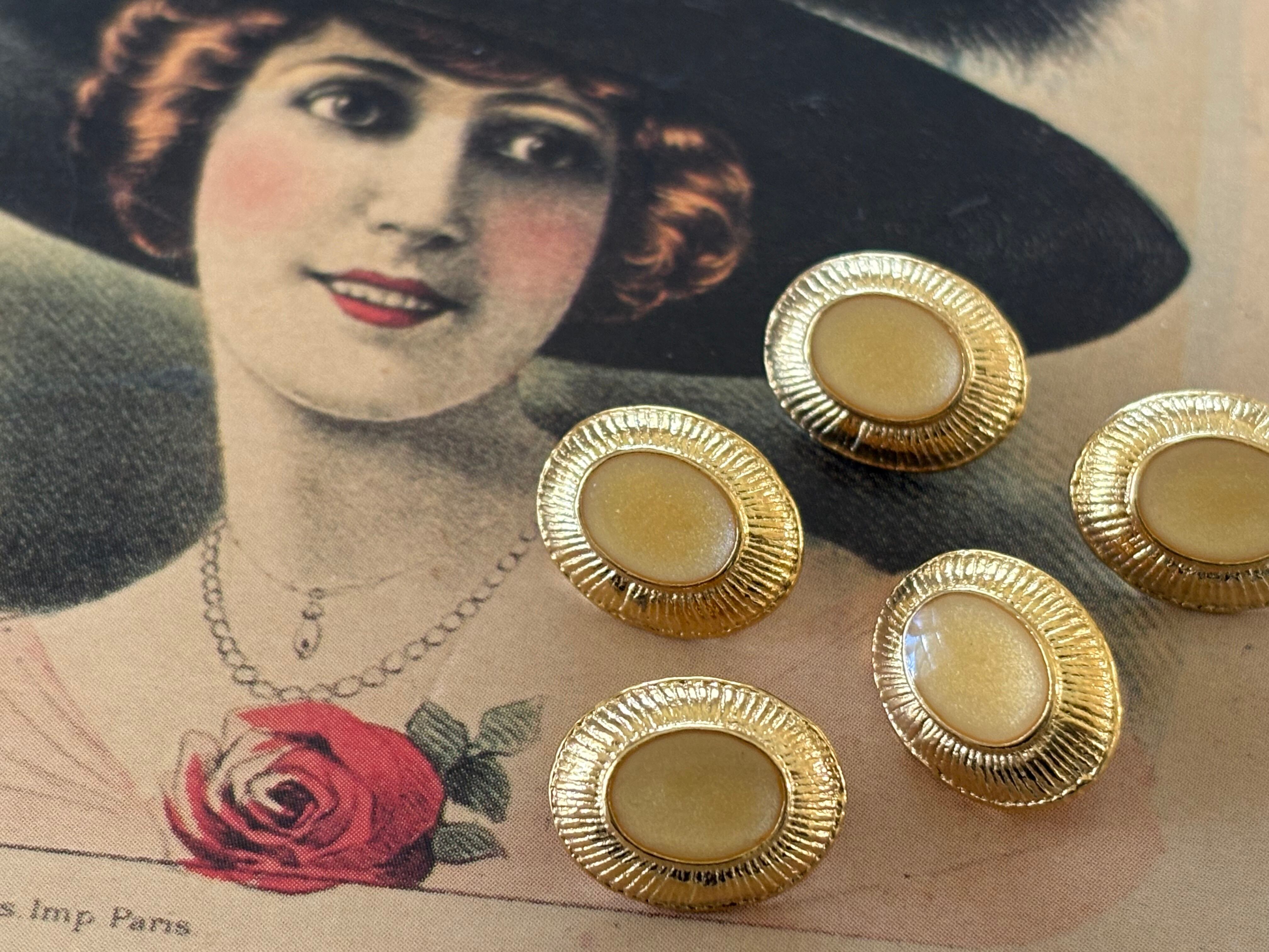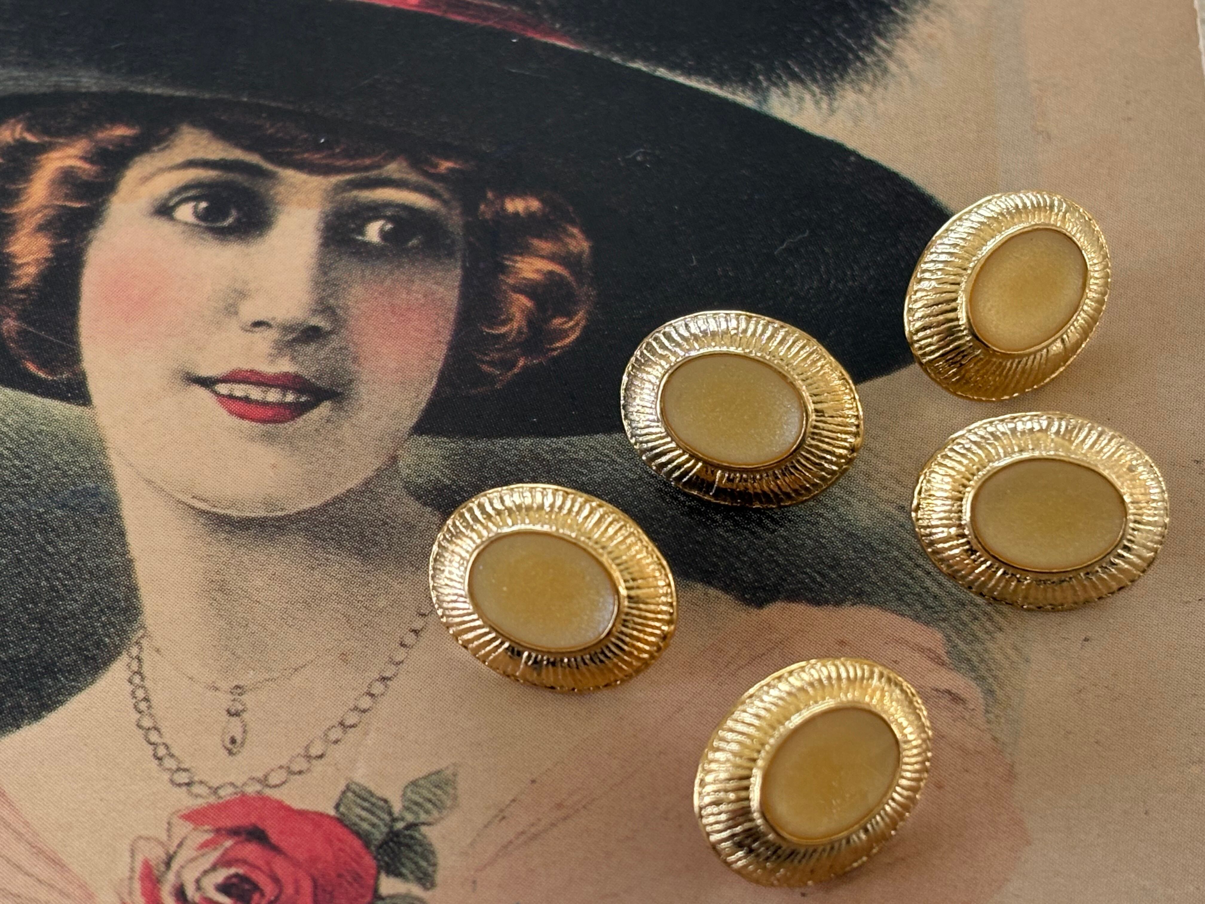 15mm×11mm Japanese ヴィンテージボタン オーバル型 クリーム×ゴールド メタルボタン カボション ブラック/ボルドー アクセサリーパーツ