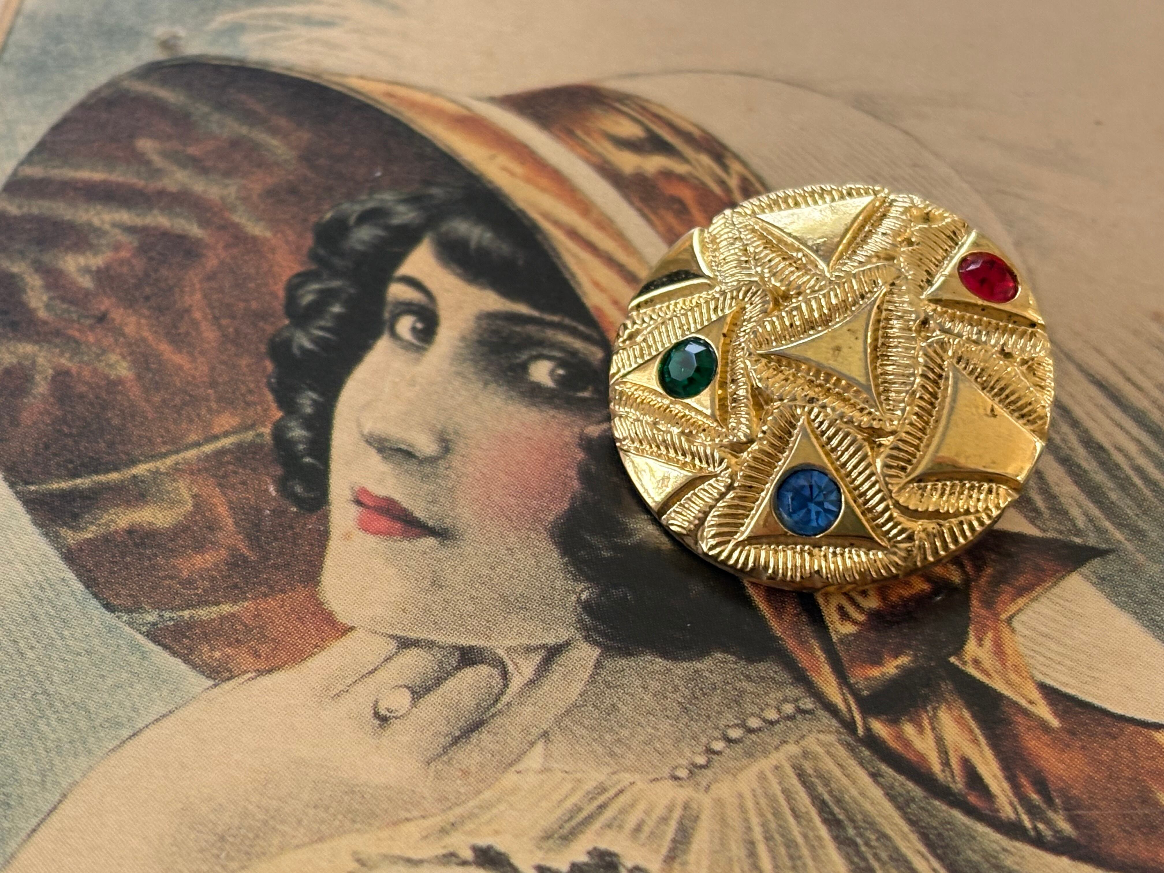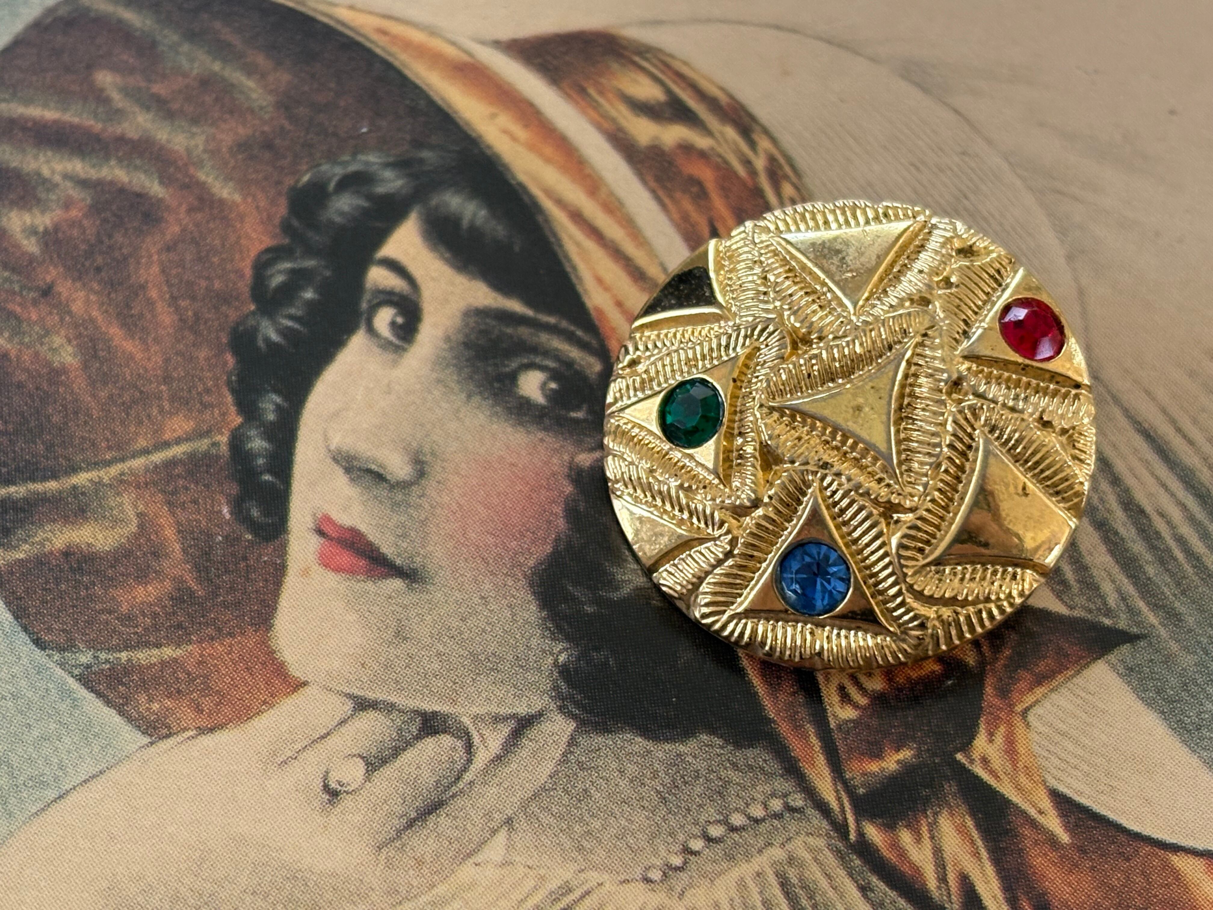 22mmJapanese ヴィンテージボタン ゴールド ストーン 昭和レトロ アクセサリーパーツ 装飾材 カルトナージュ