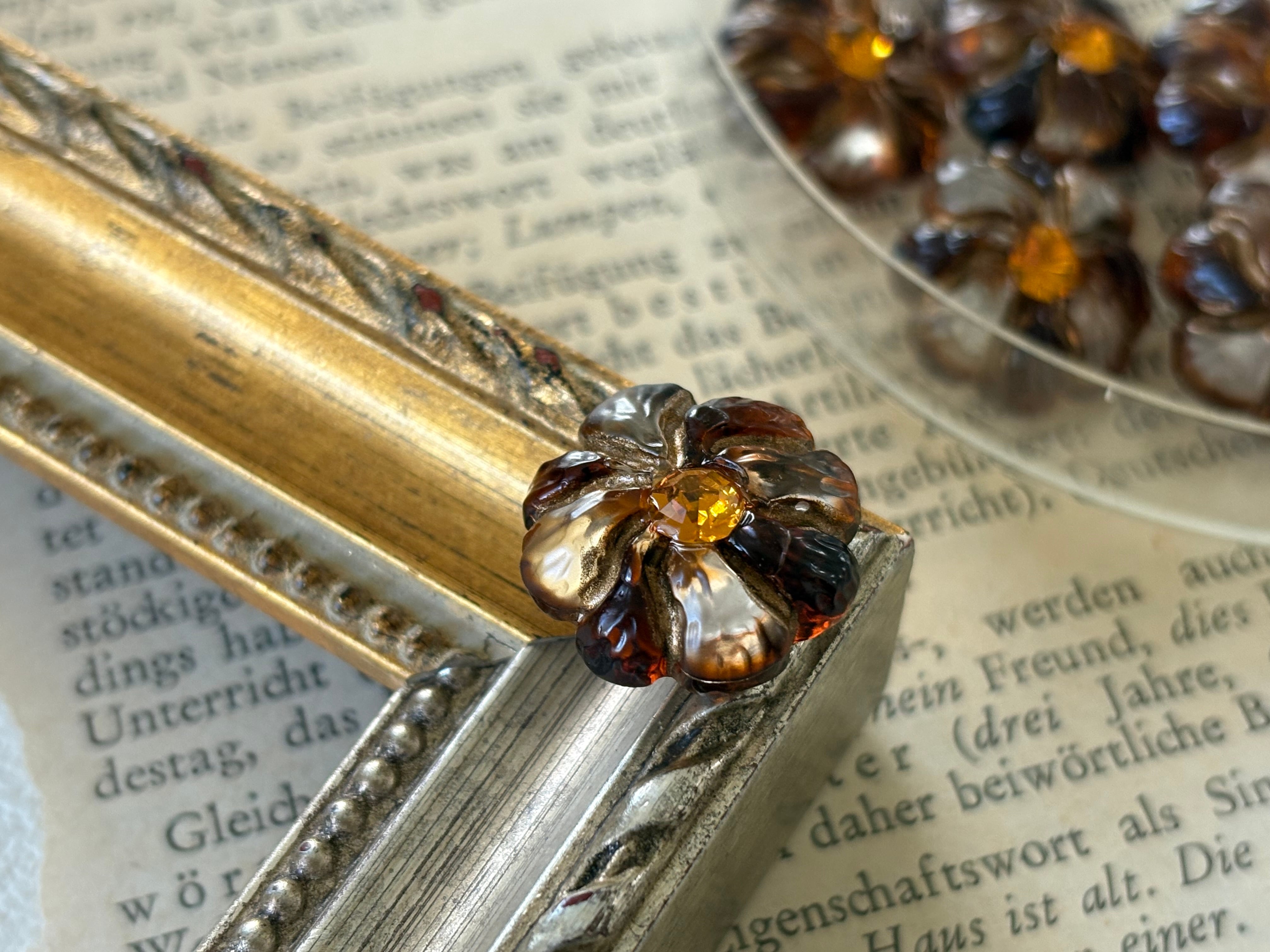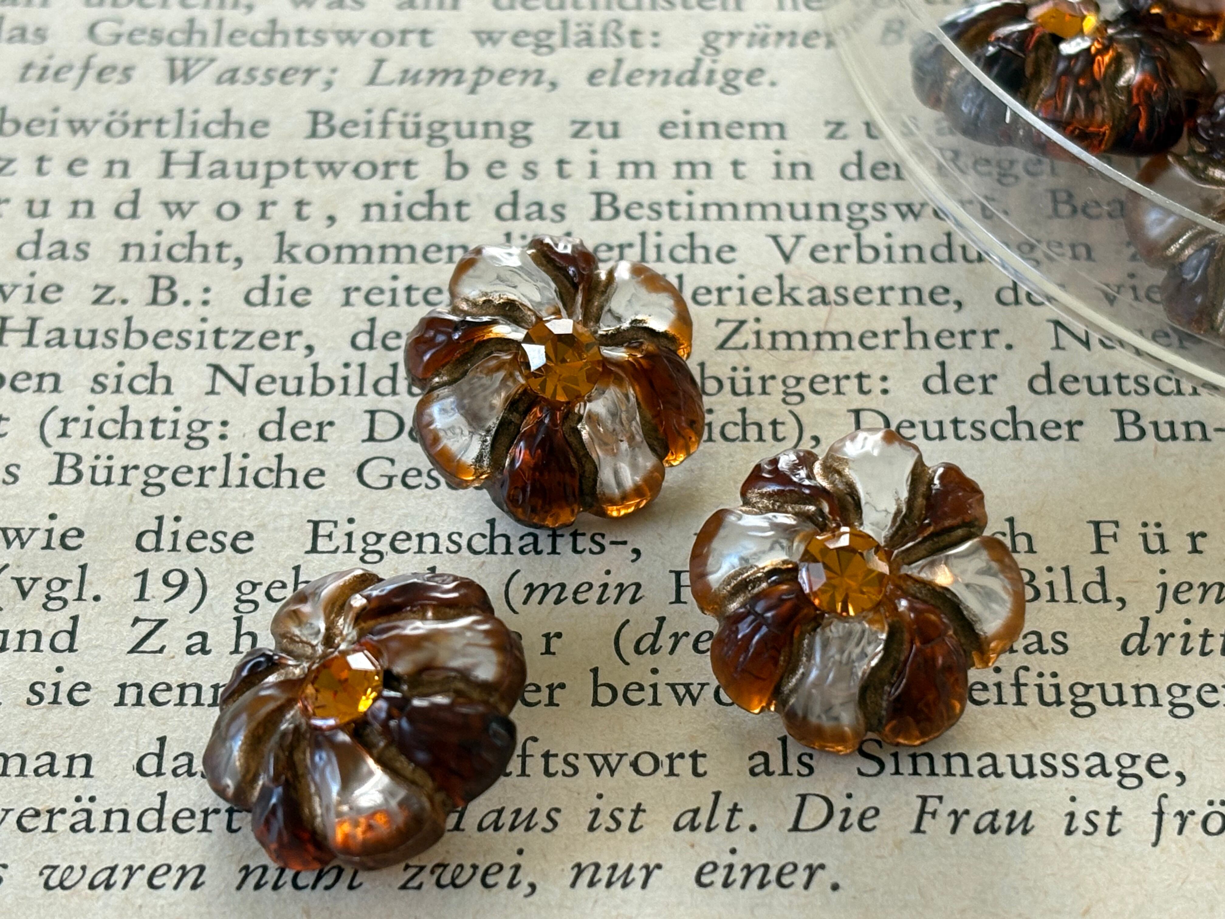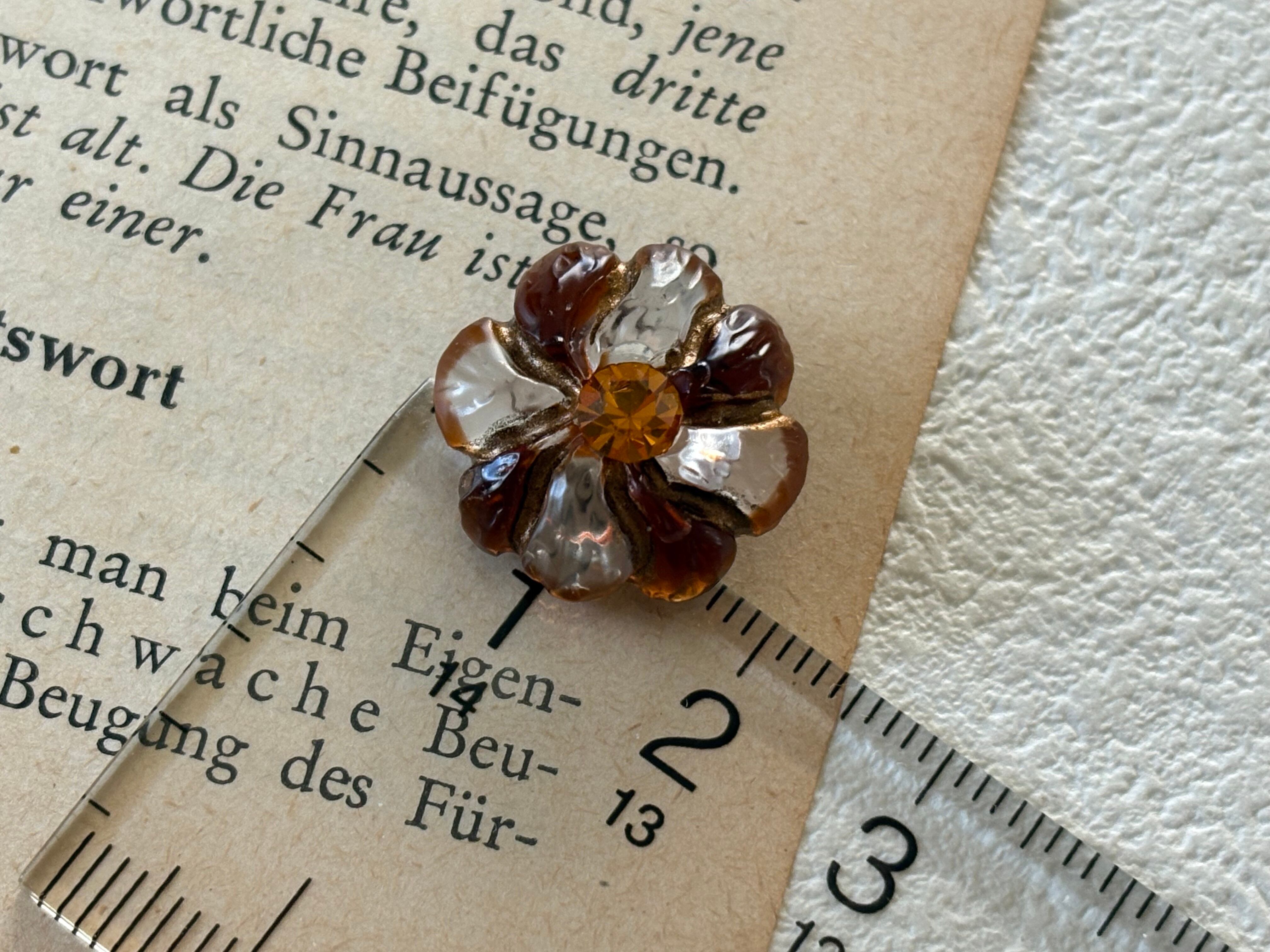 18mm Japanese ヴィンテージボタン フラワー ブラウン×クリア ストーン アクセサリーパーツ 装飾材 カルトナージュ