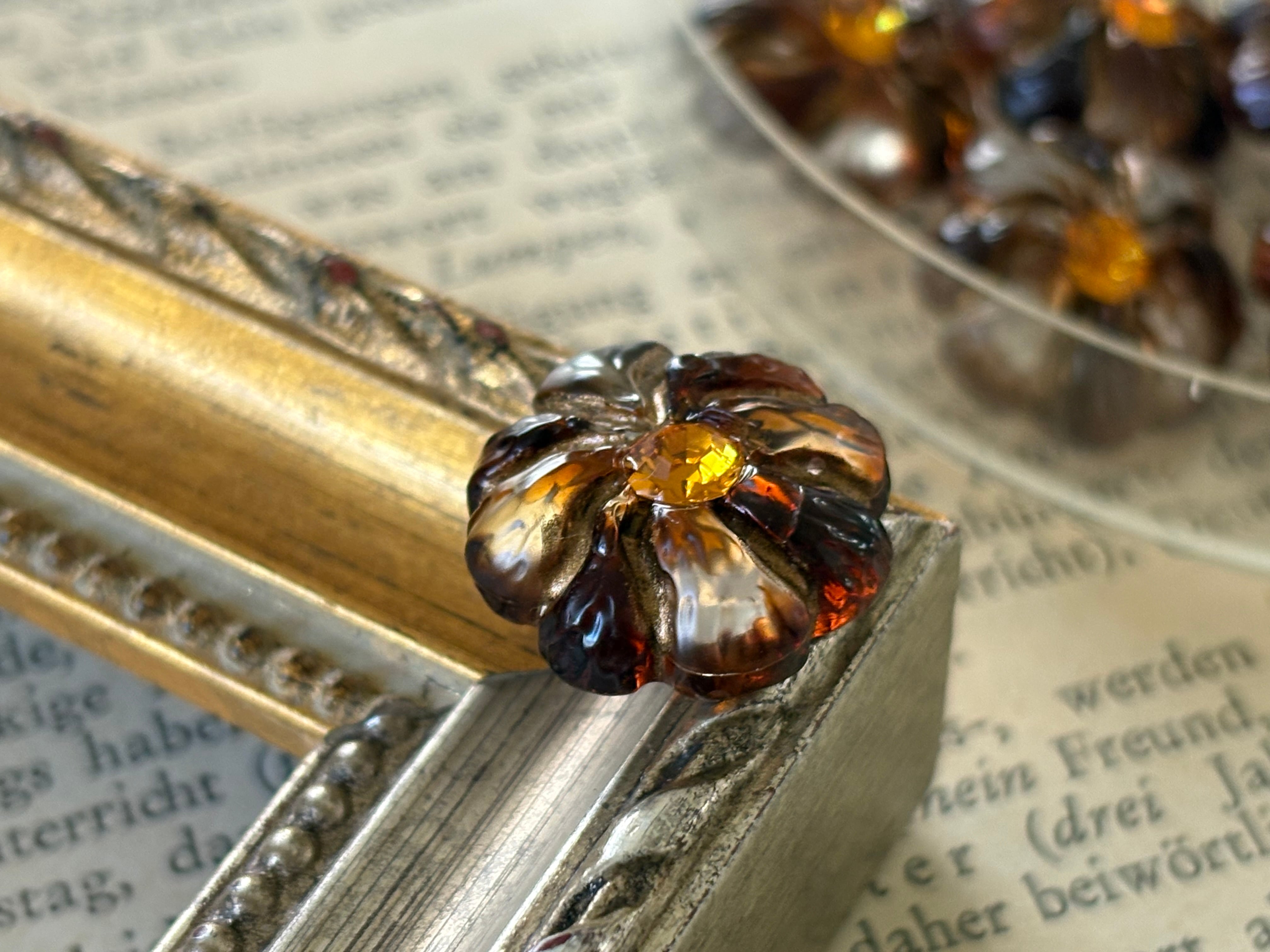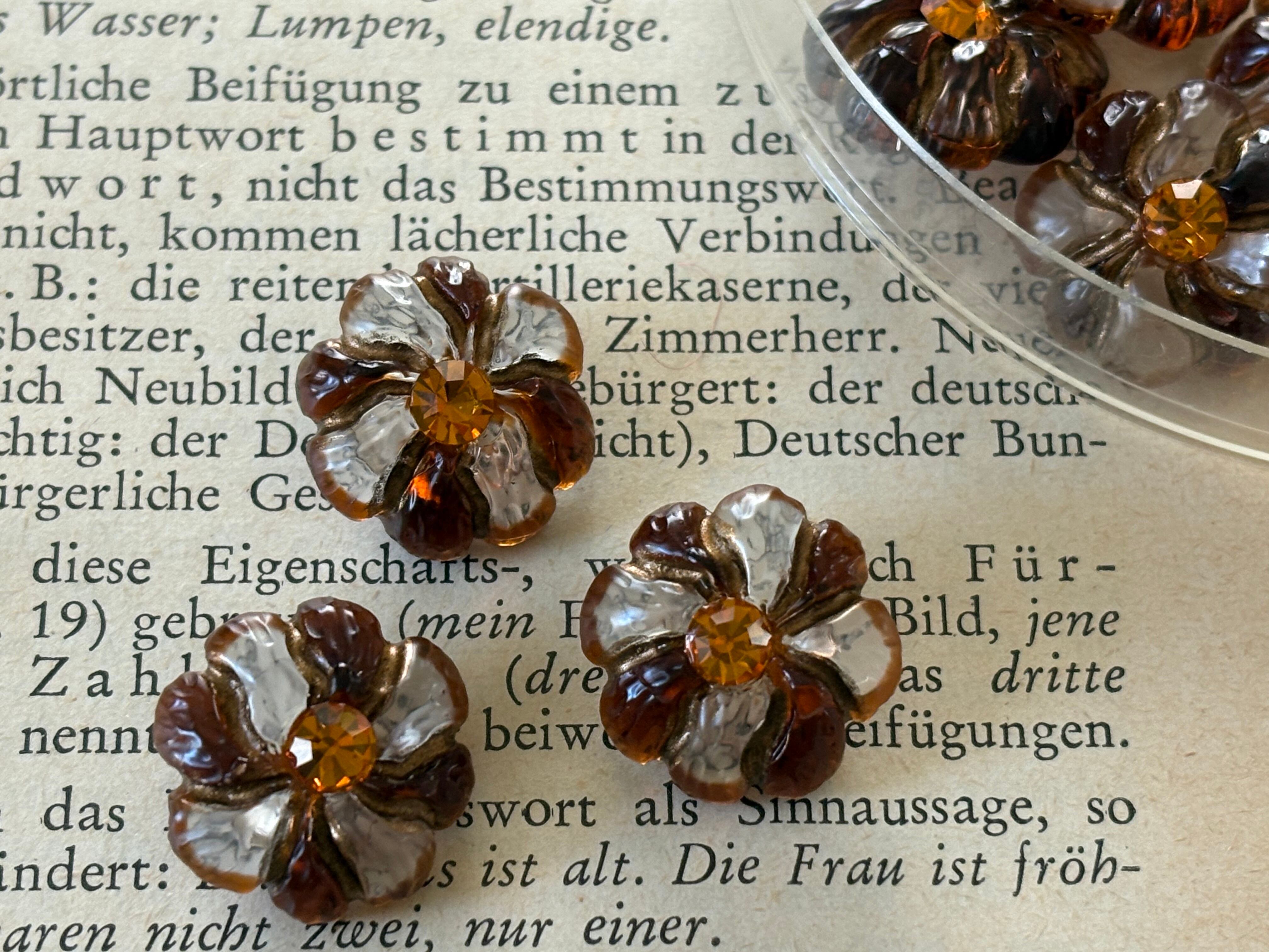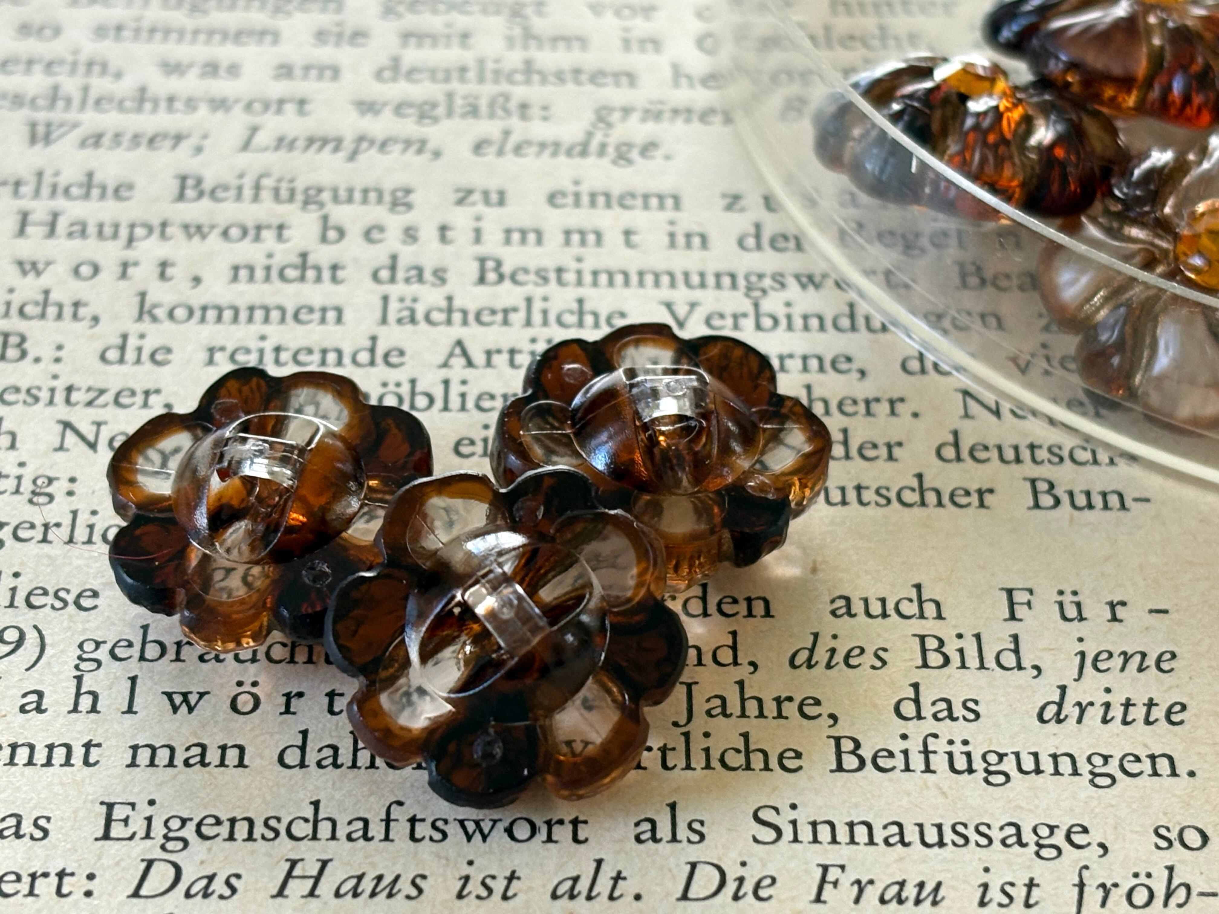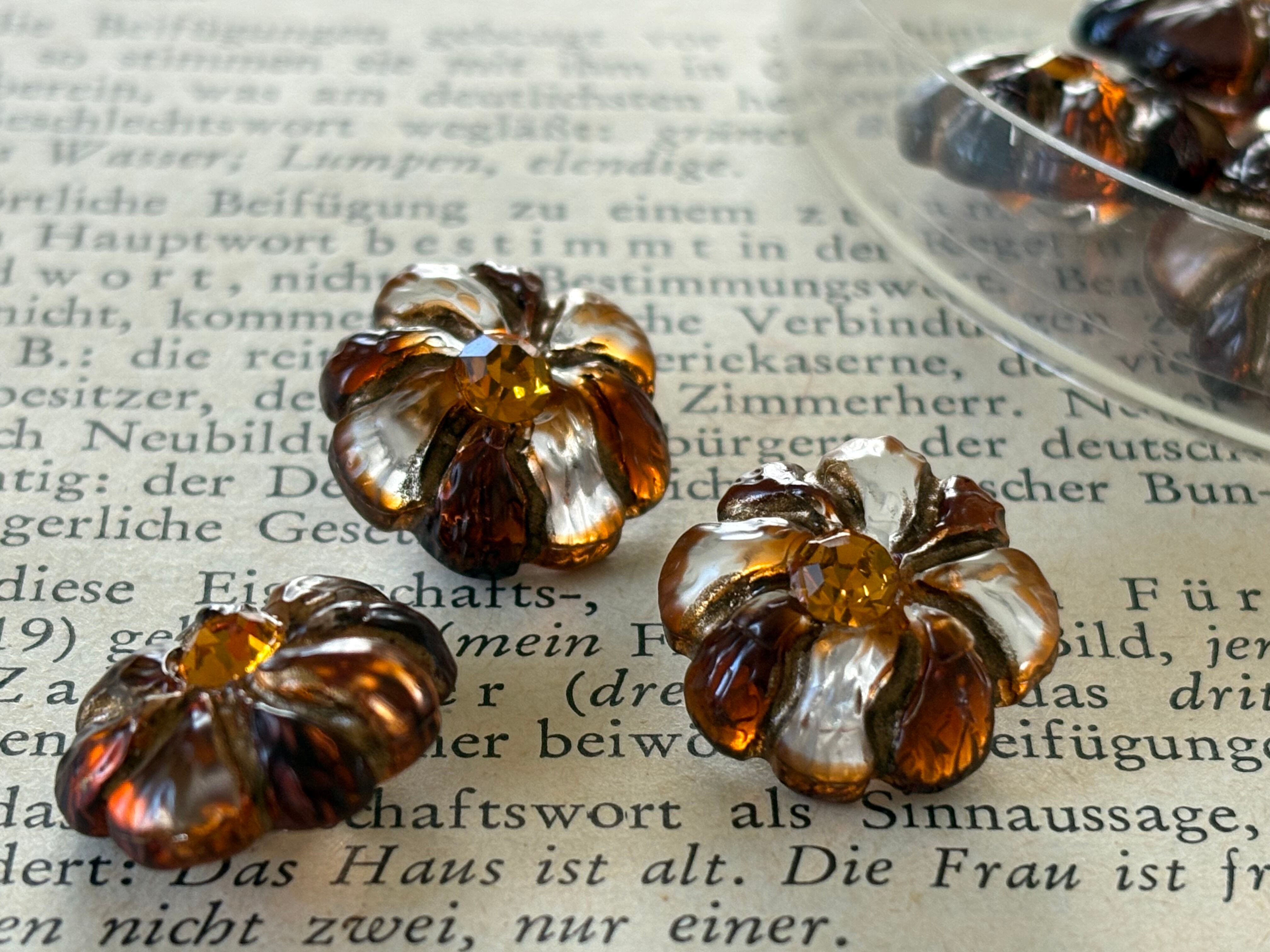 18mm Japanese ヴィンテージボタン フラワー ブラウン×クリア ストーン アクセサリーパーツ 装飾材 カルトナージュ
