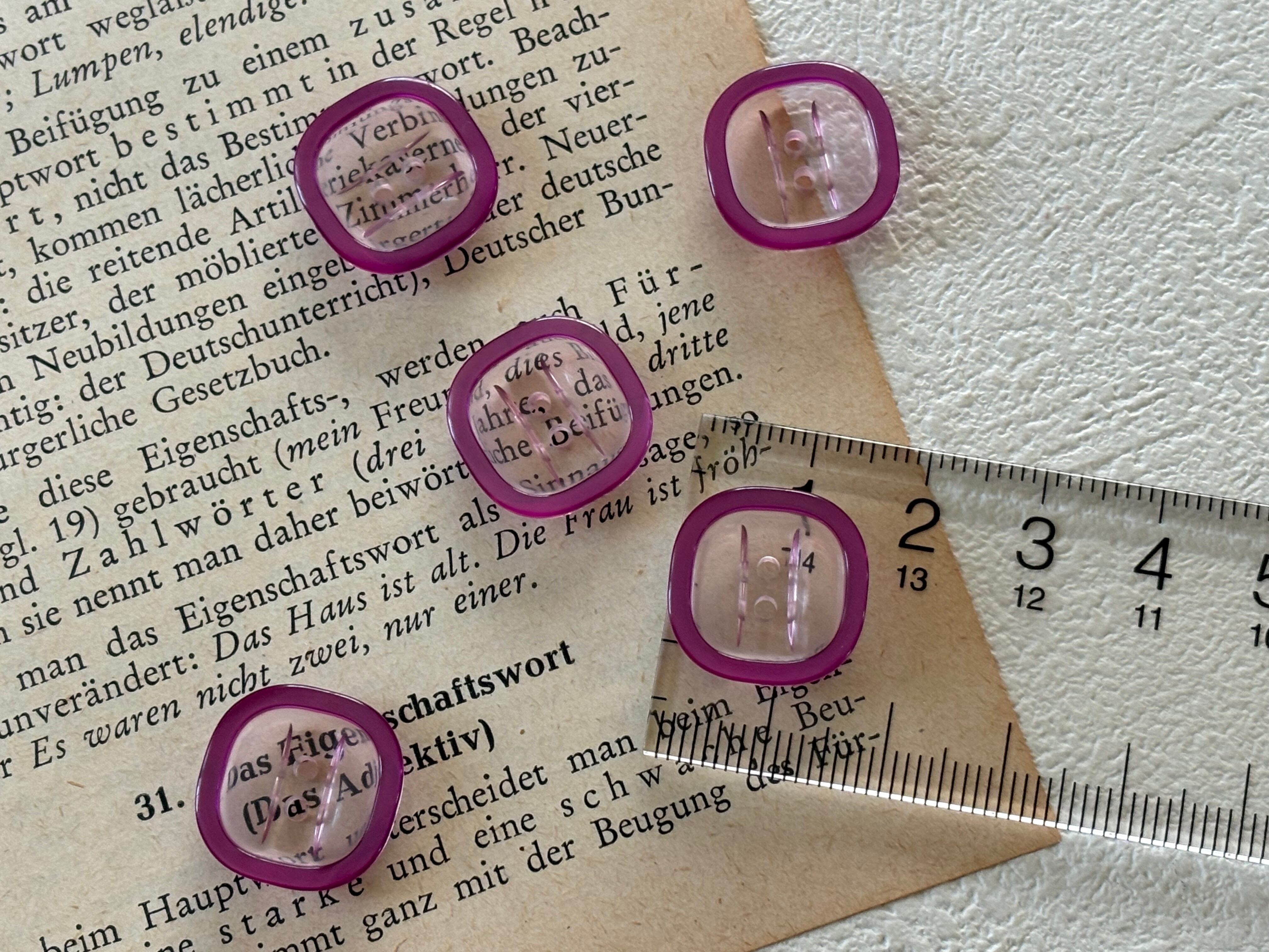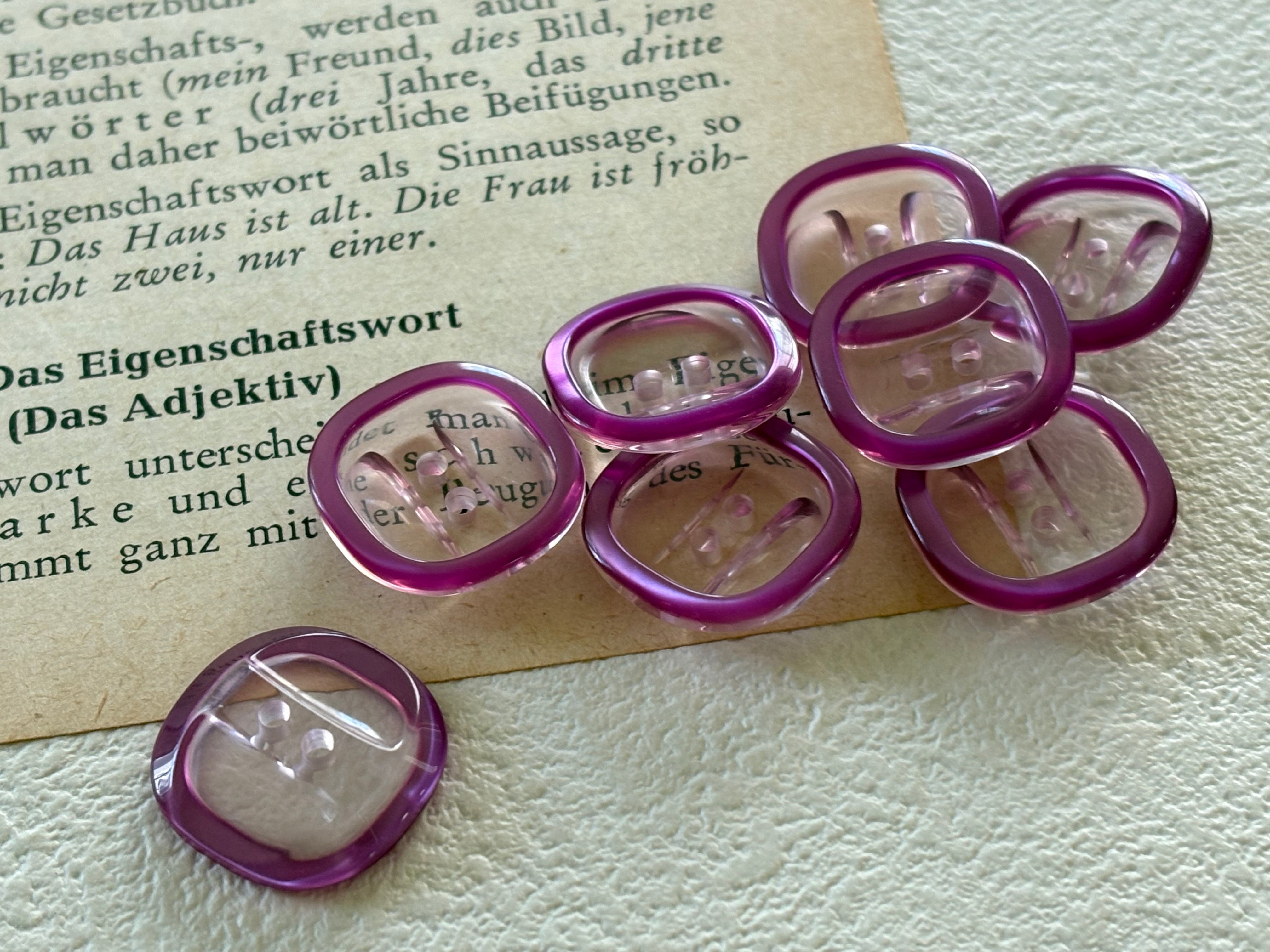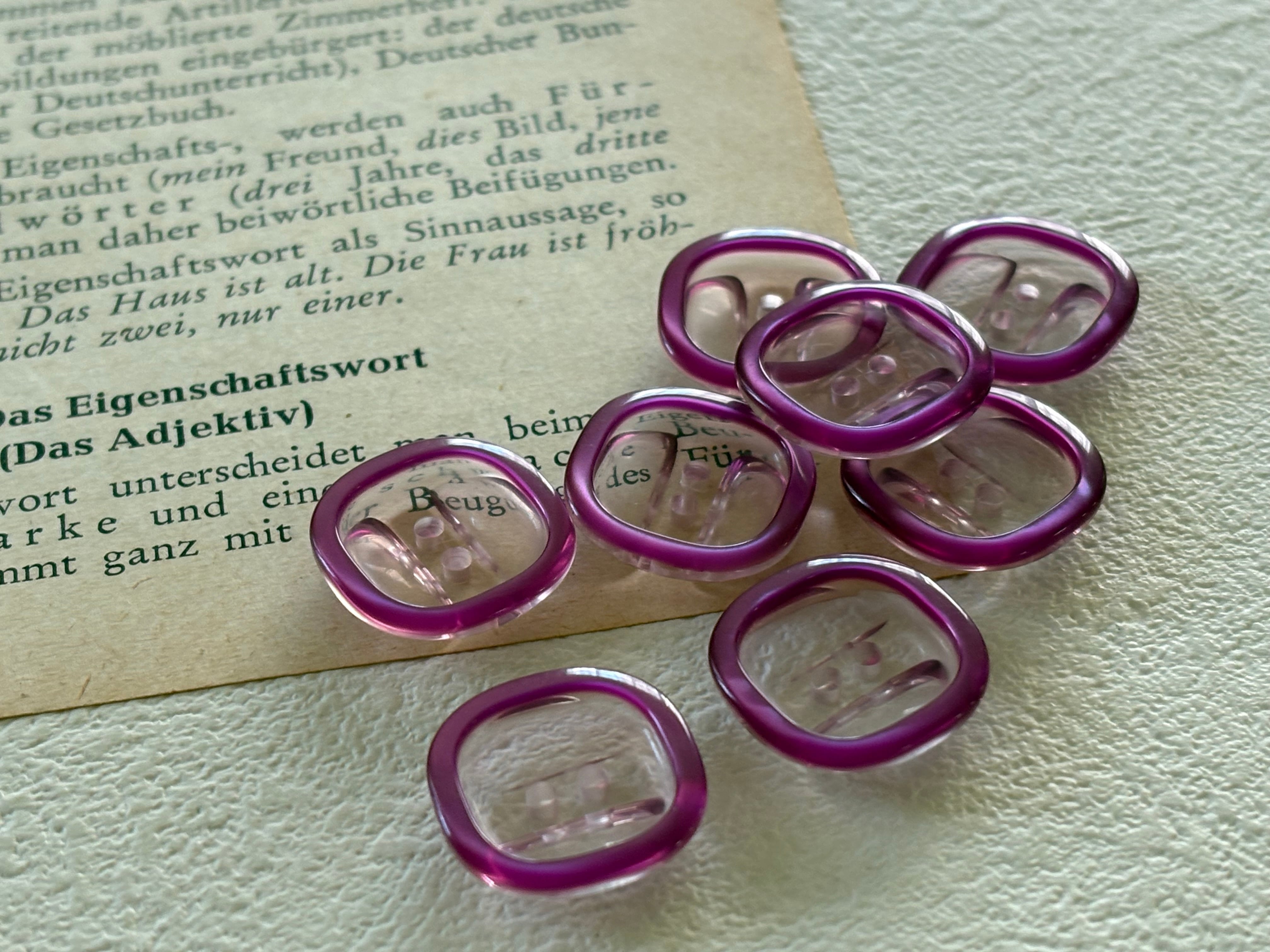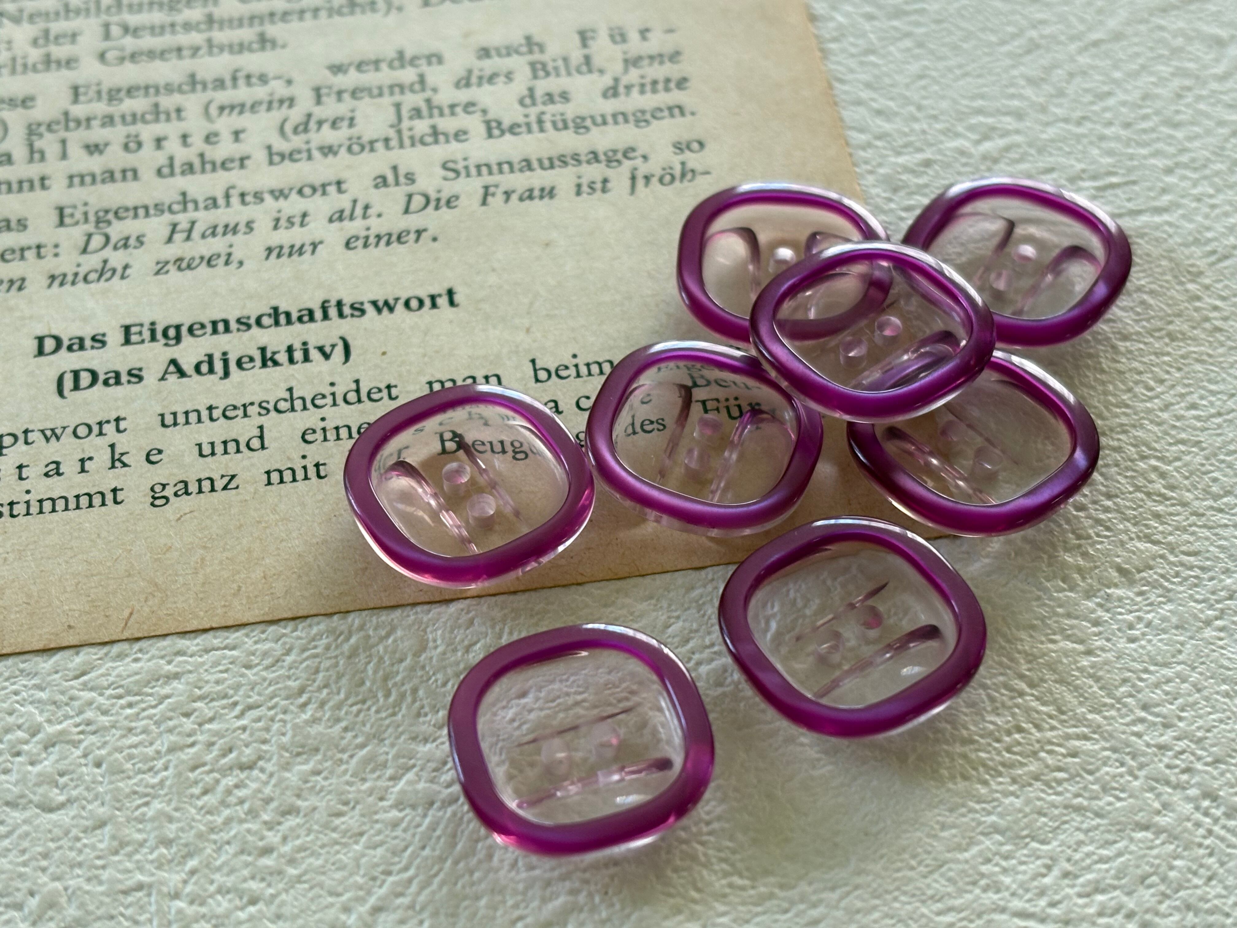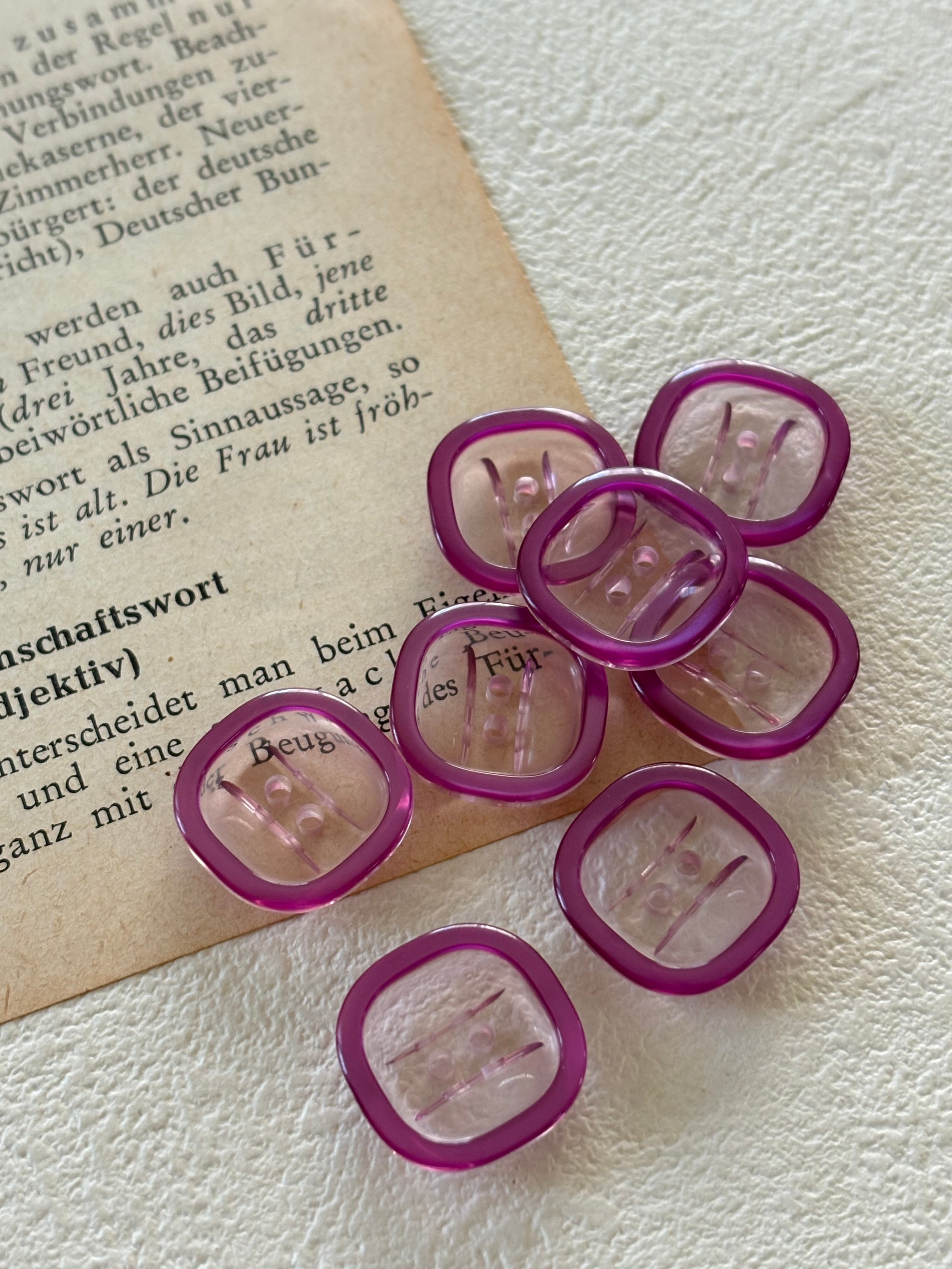 16mm Japanese ヴィンテージボタン 角なしスクウェア ボウル型 ピンク×クリア レトロ アクセサリーパーツ 装飾材