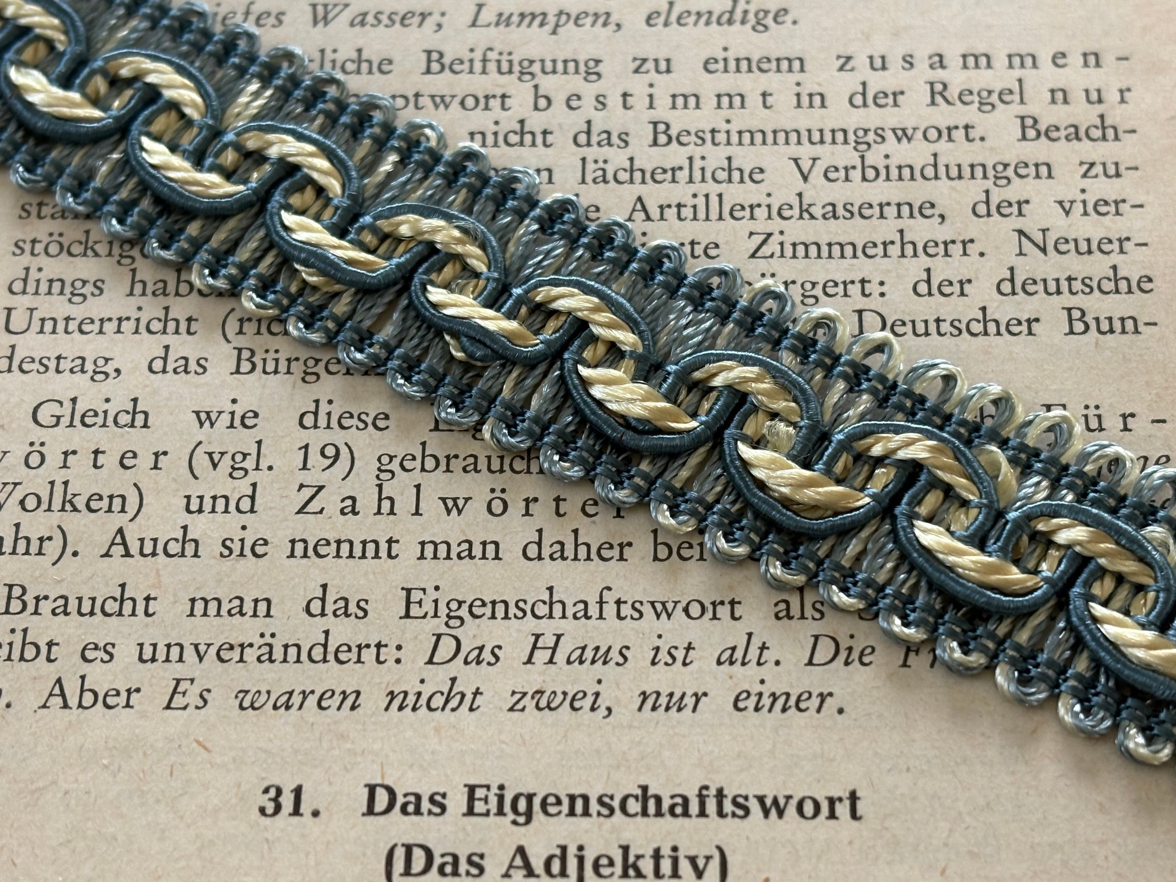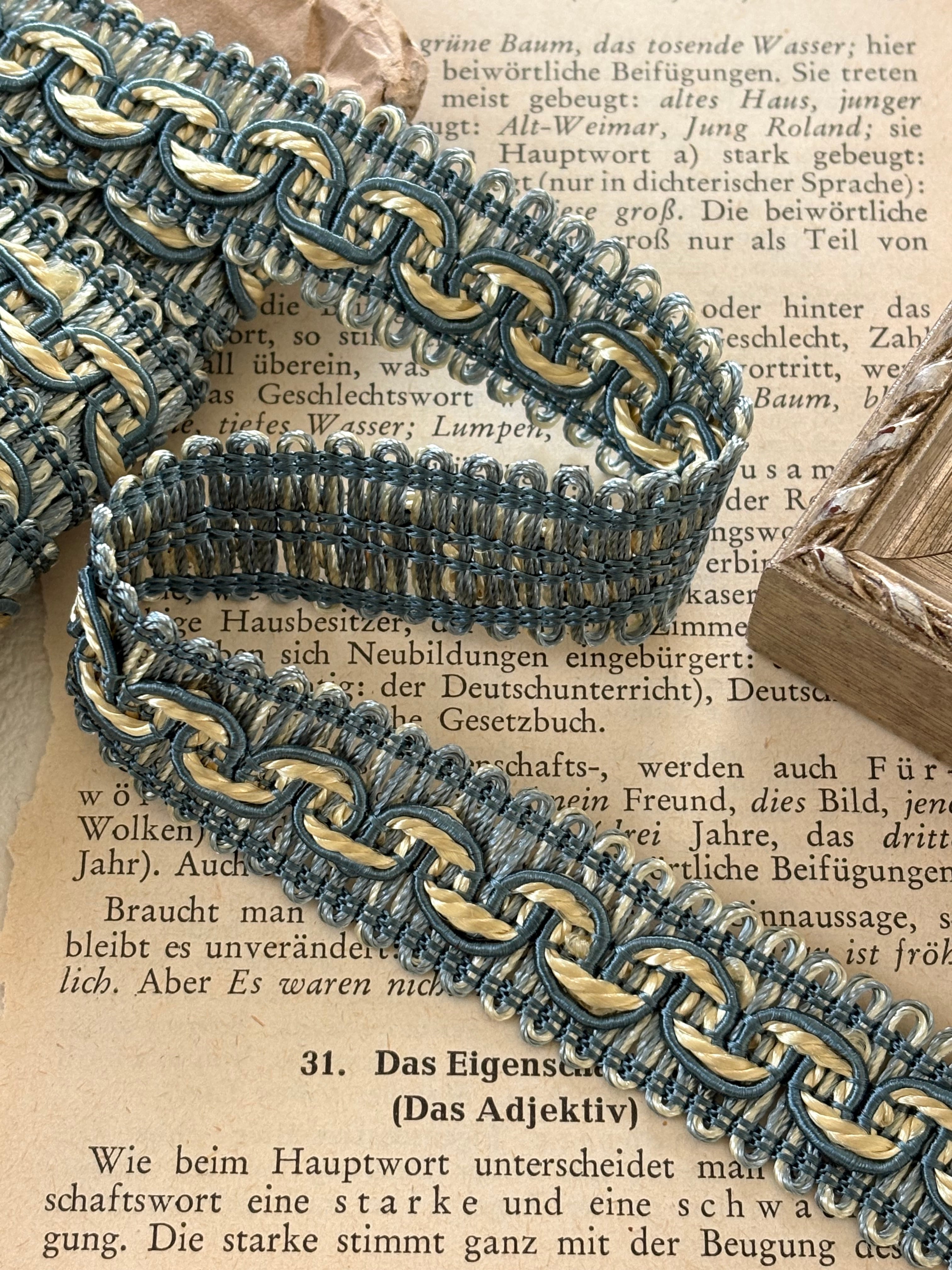輸入デザインブレードライトブルー×アイボリー 20mm 100cm /カット カルトナージュ デコレーション材 スツール