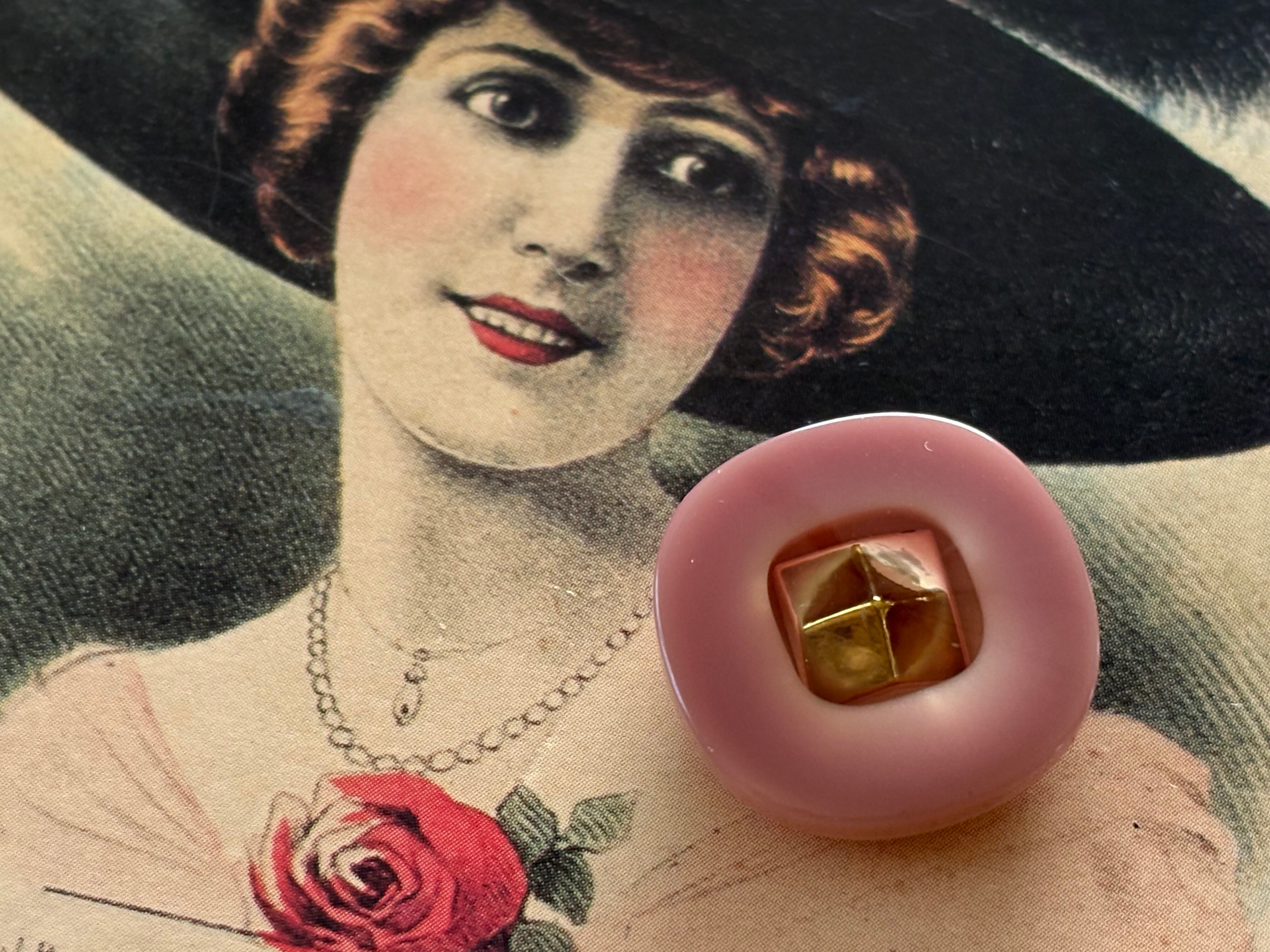 21mm Japanese ヴィンテージボタン ピンクベージュ×ゴールド 角なしスクウェア 樹脂ボタン アクセサリーパーツ 装飾材