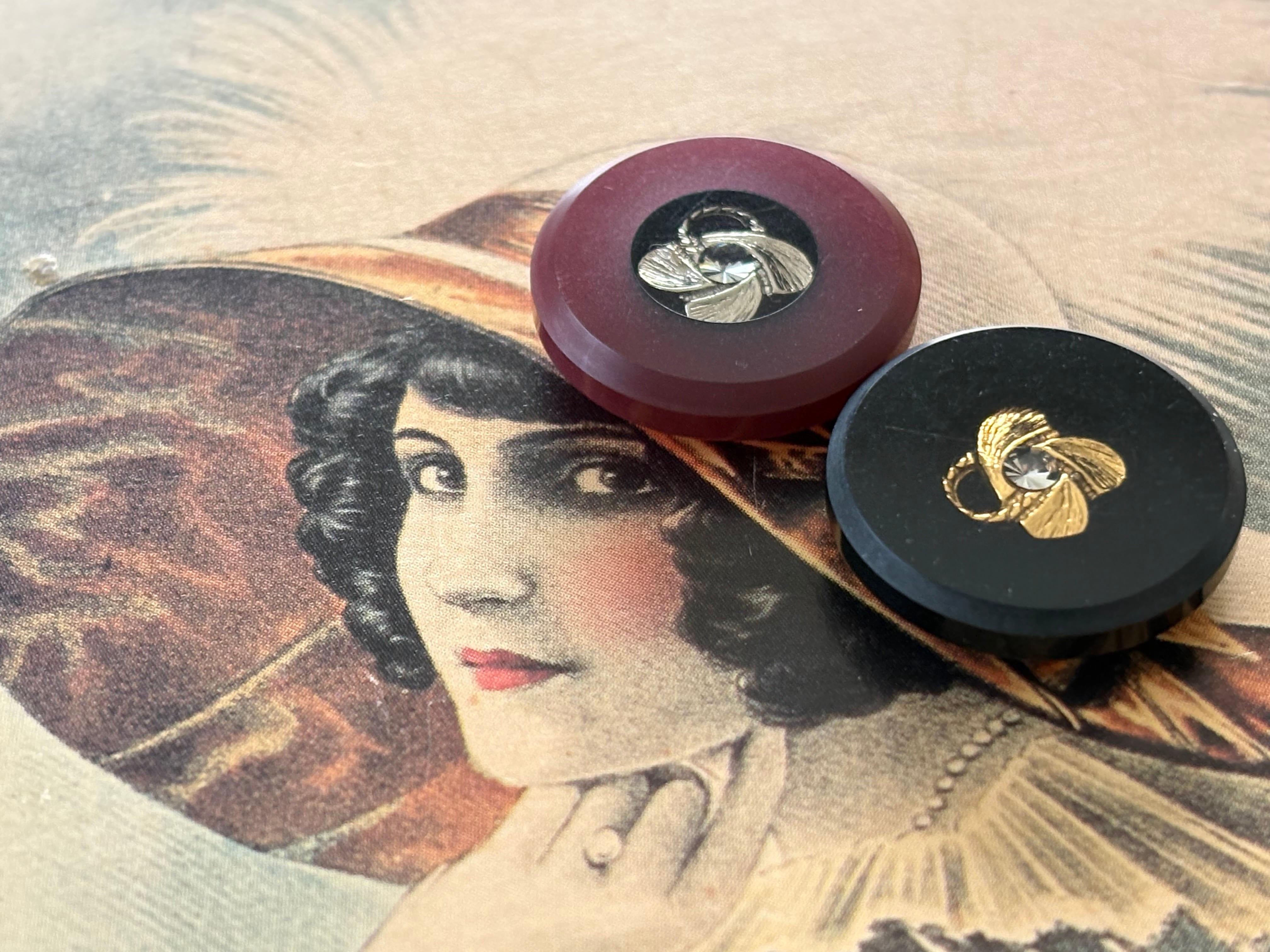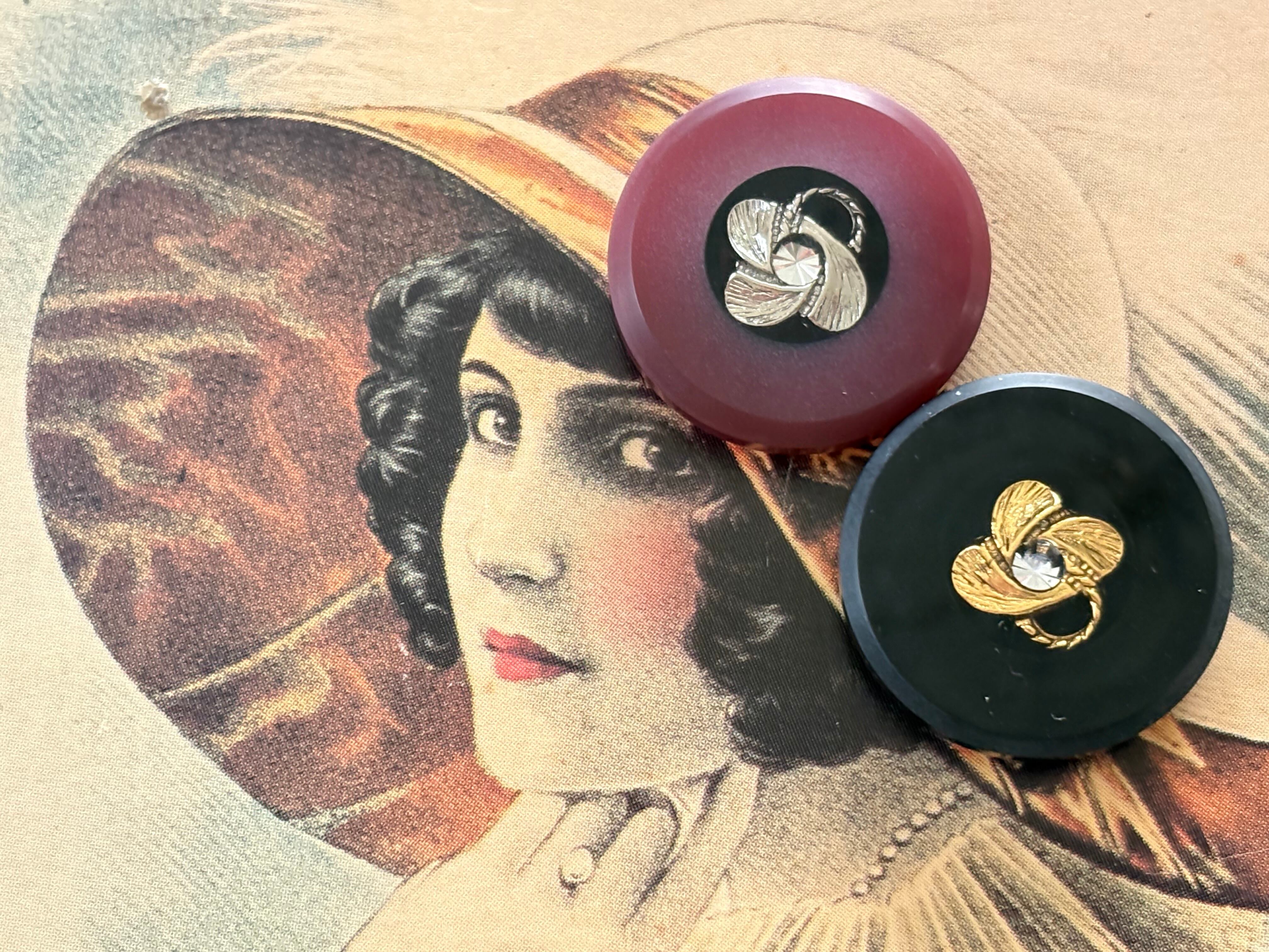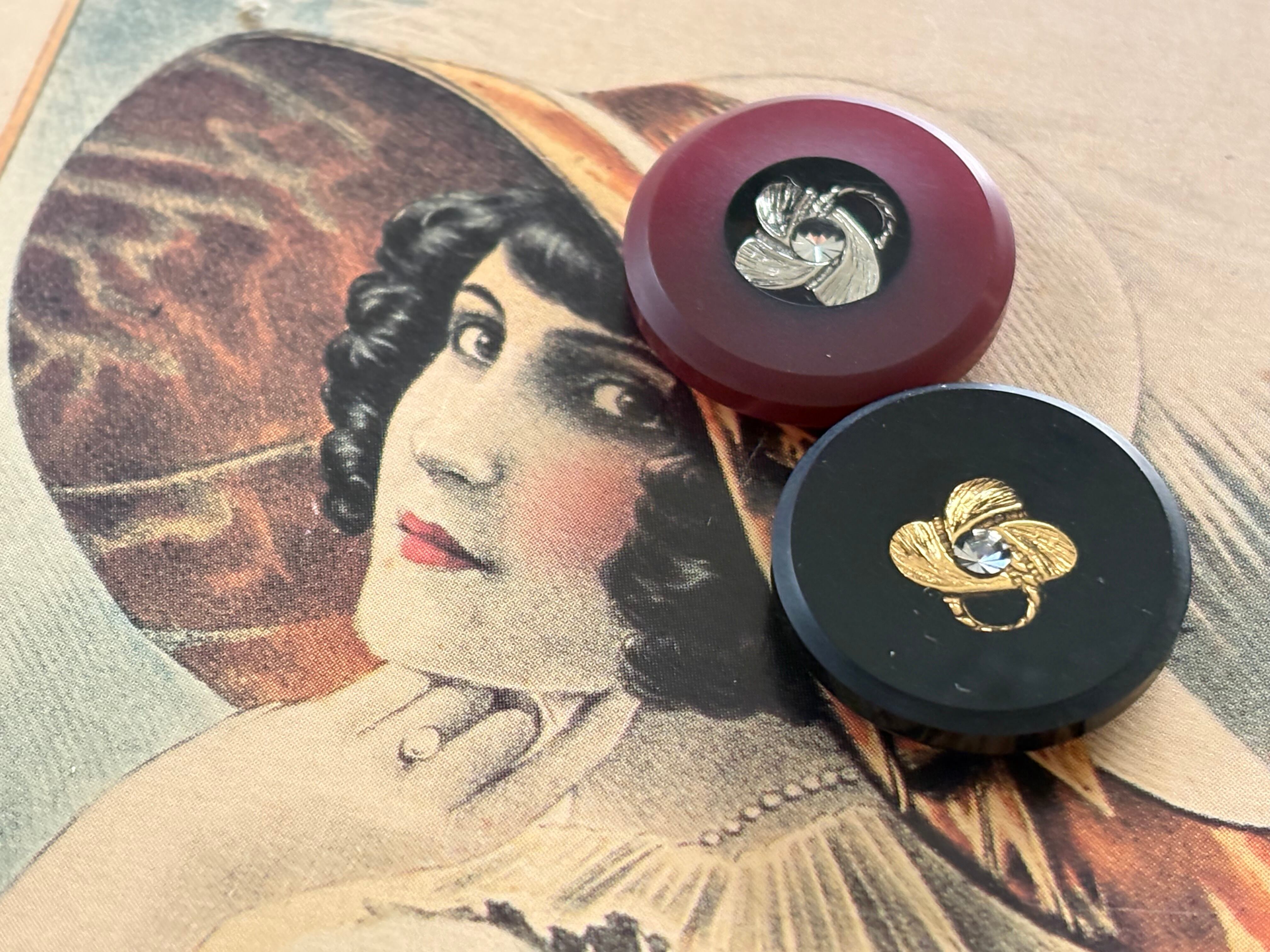 20mm Japanese ヴィンテージボタン ブラック/ワインレッド ストーン レトロ アクセサリーパーツ 装飾材 カルトナージュ
