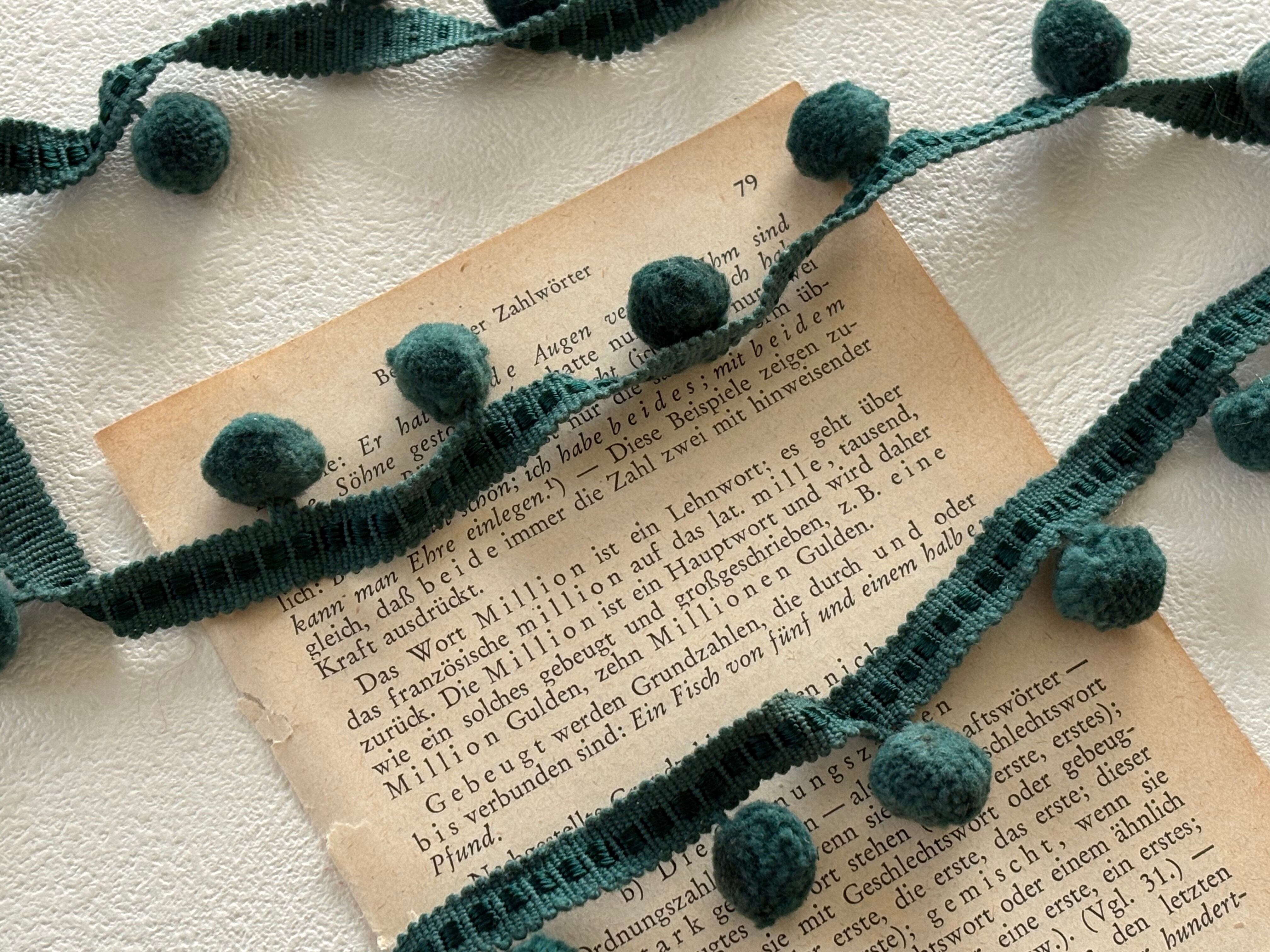 フランスVintage ヴィンテージ ポンポンブレード カットブレード 110cm グリーン カルトナージュ デコレーション材