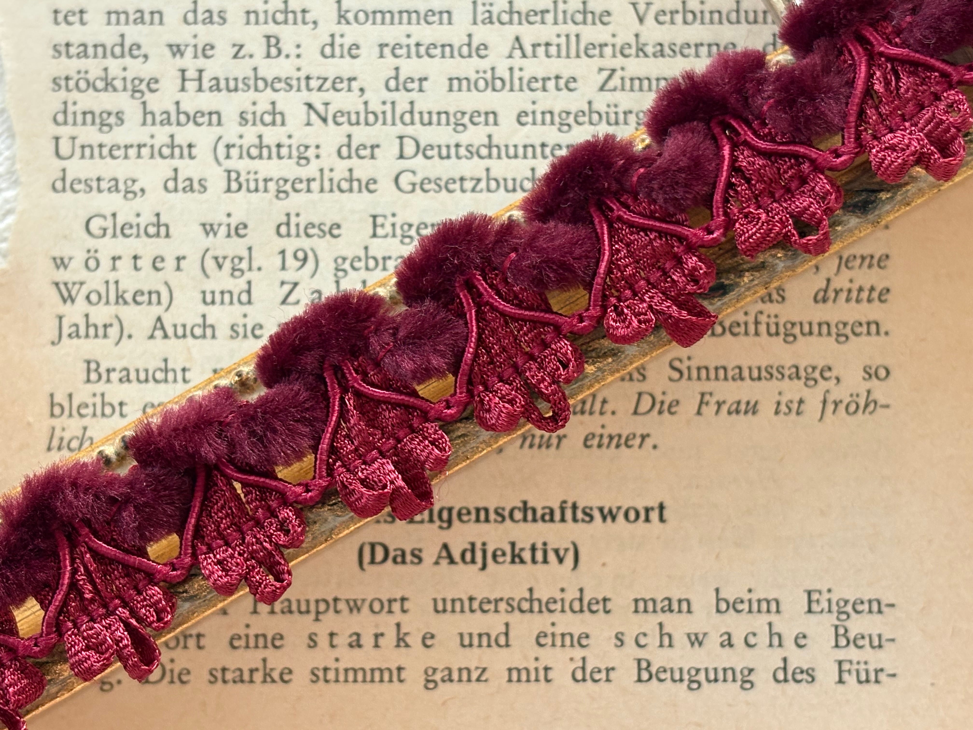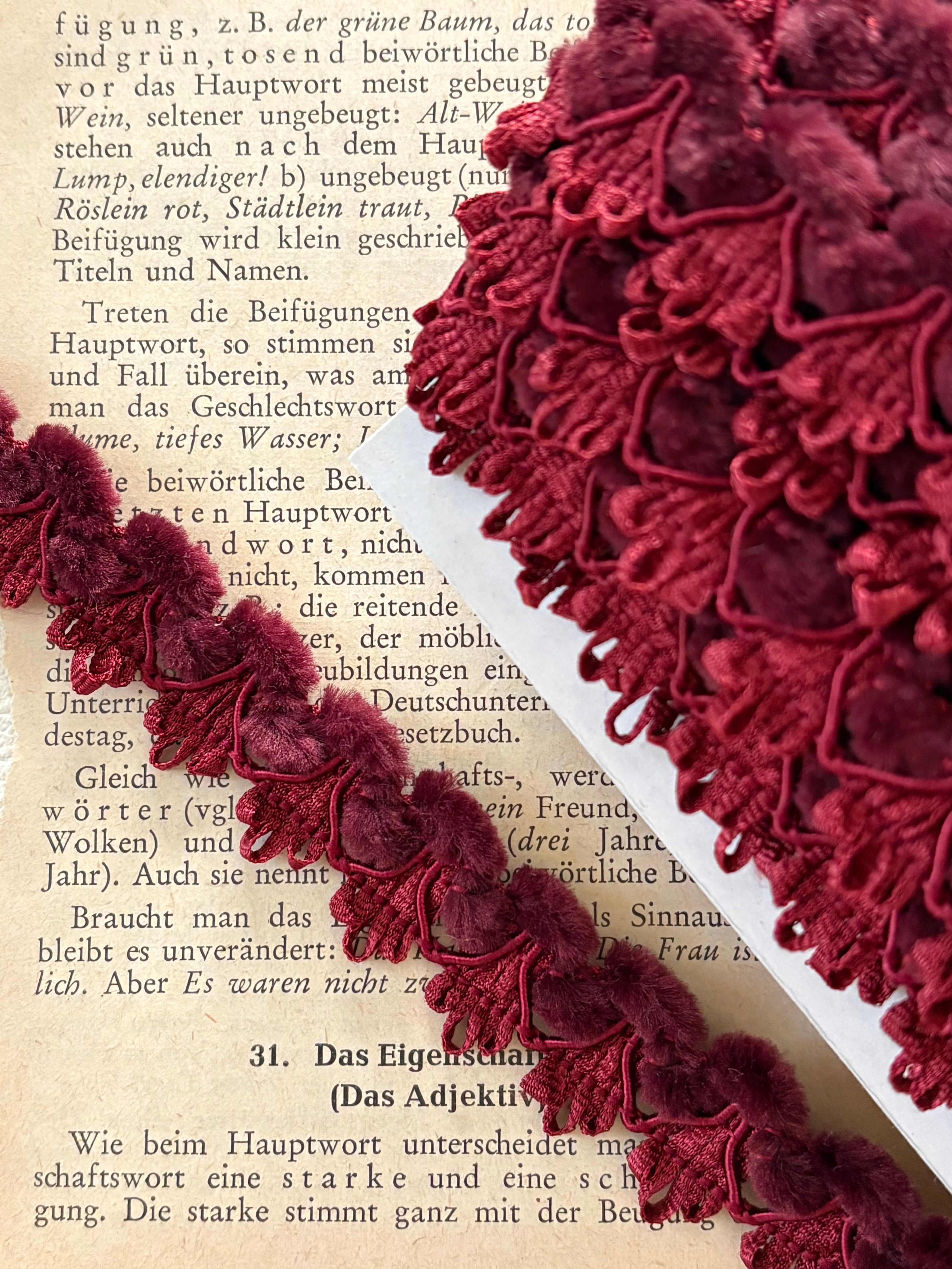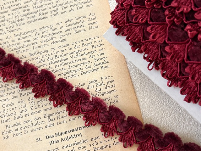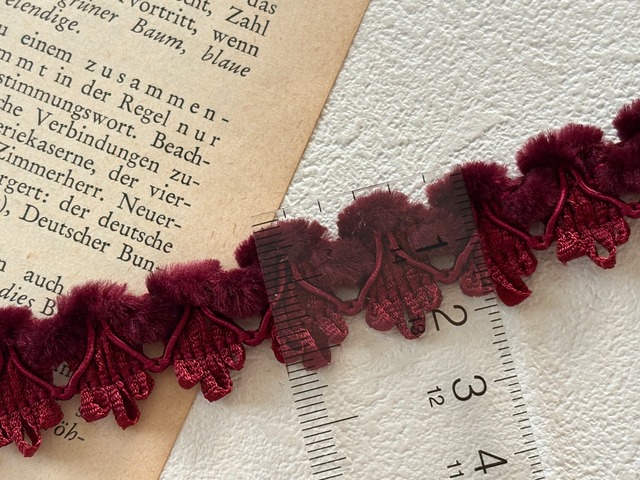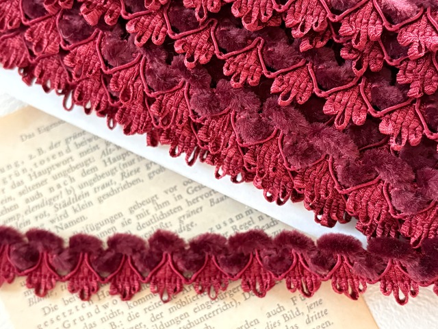 輸入デザインブレード フリンジブレード ワインレッド 50cm /カット 最大幅20mm カルトナージュ スツール 装飾材