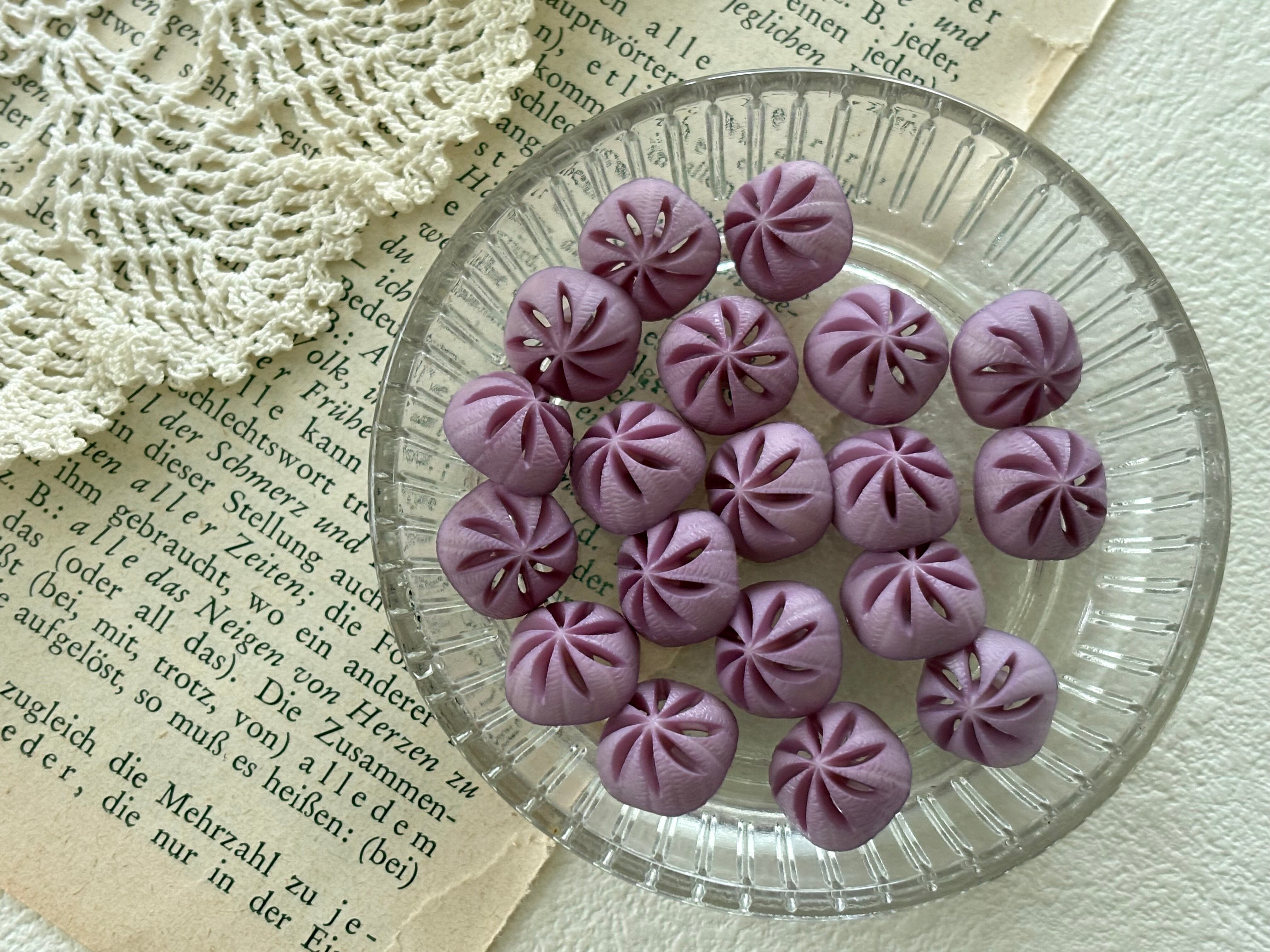お洋服のボタンの付け替えには勿論のことアクセサリーパーツとして、カルトナージュのデコレーション材になど様々な用途でお役立て下さいませ。