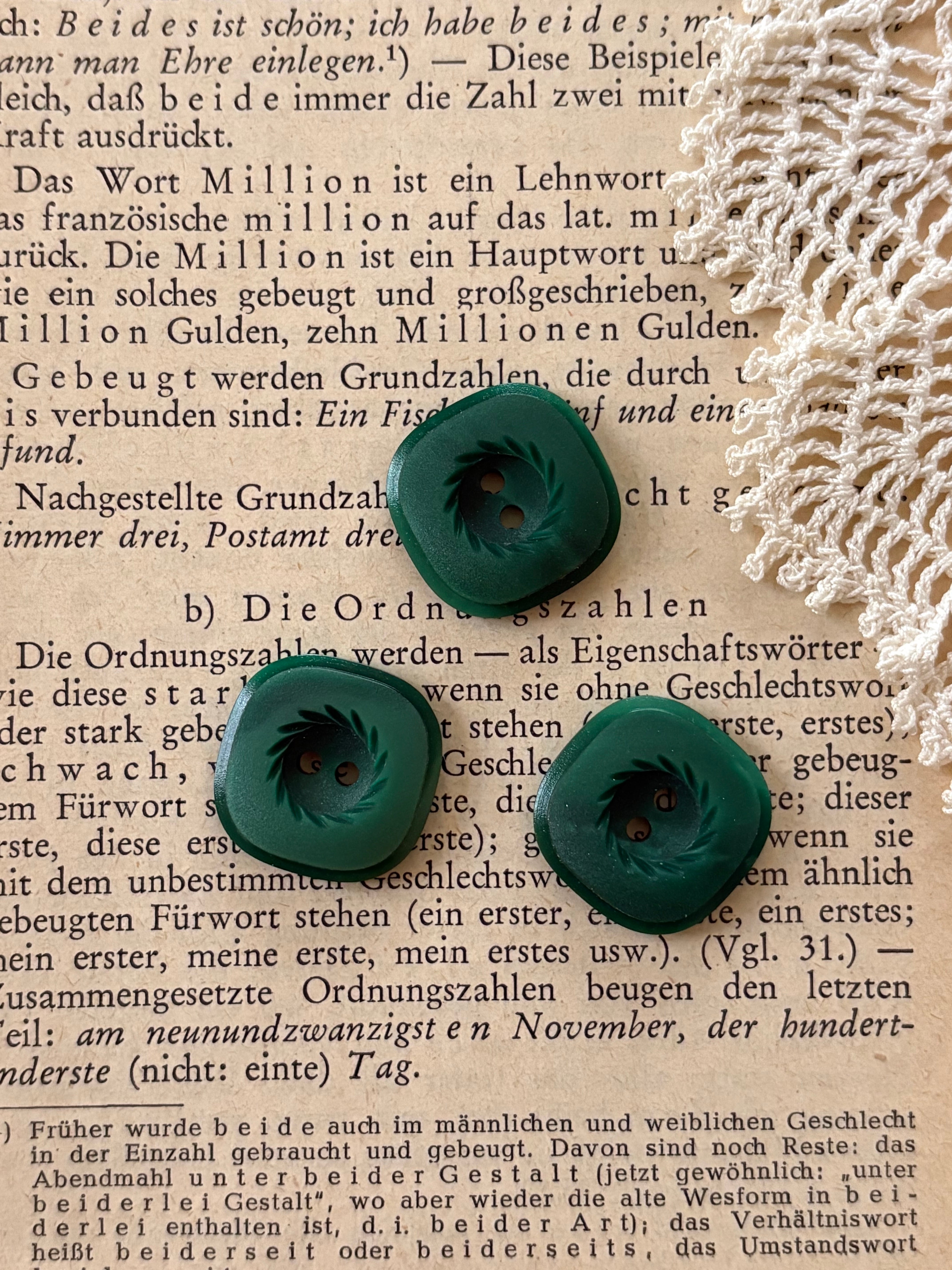 19mm フランスVintage ヴィンテージボタン スクウェア グリーン プラスチック アクセサリーパーツ デコレーション材