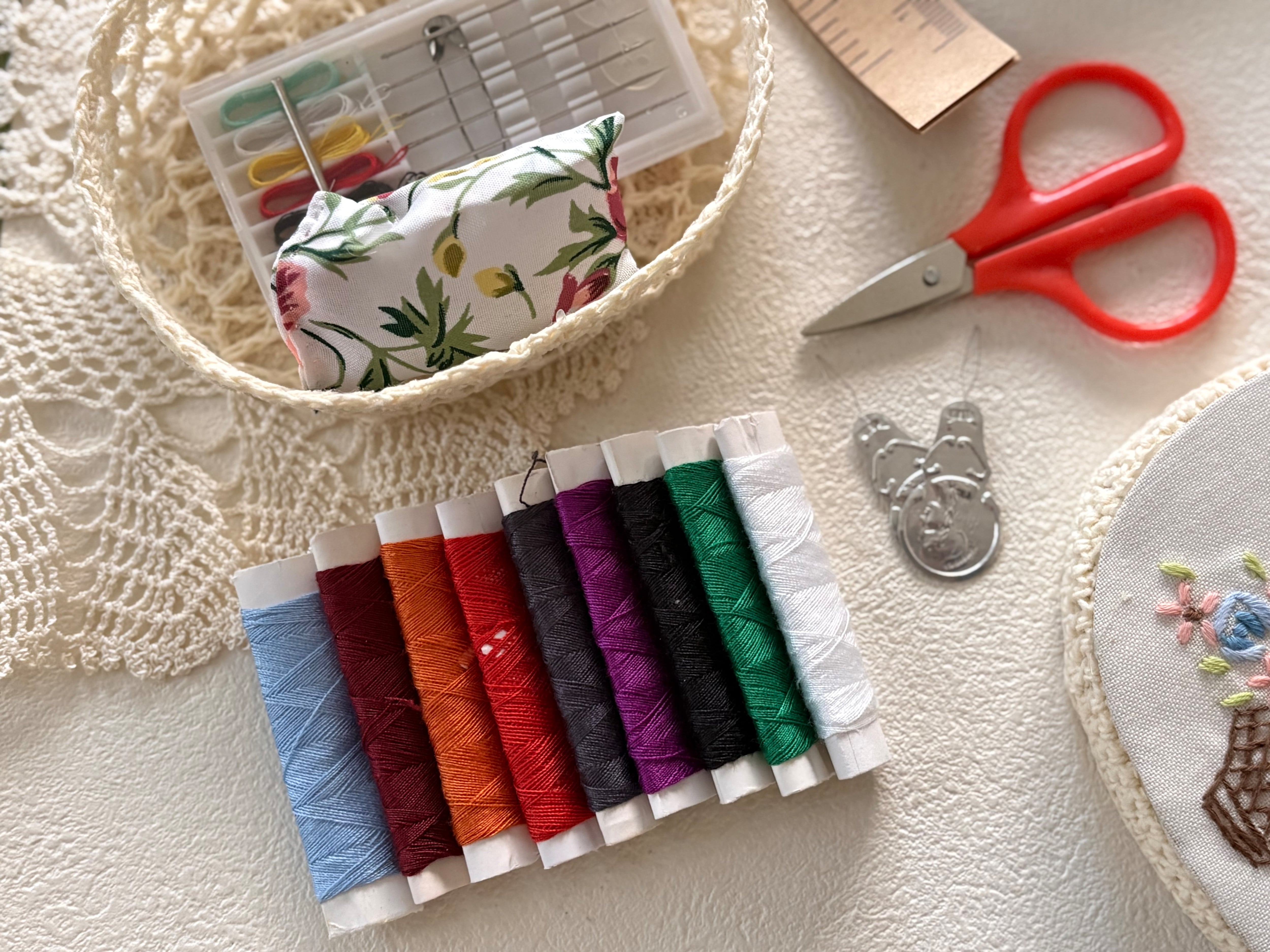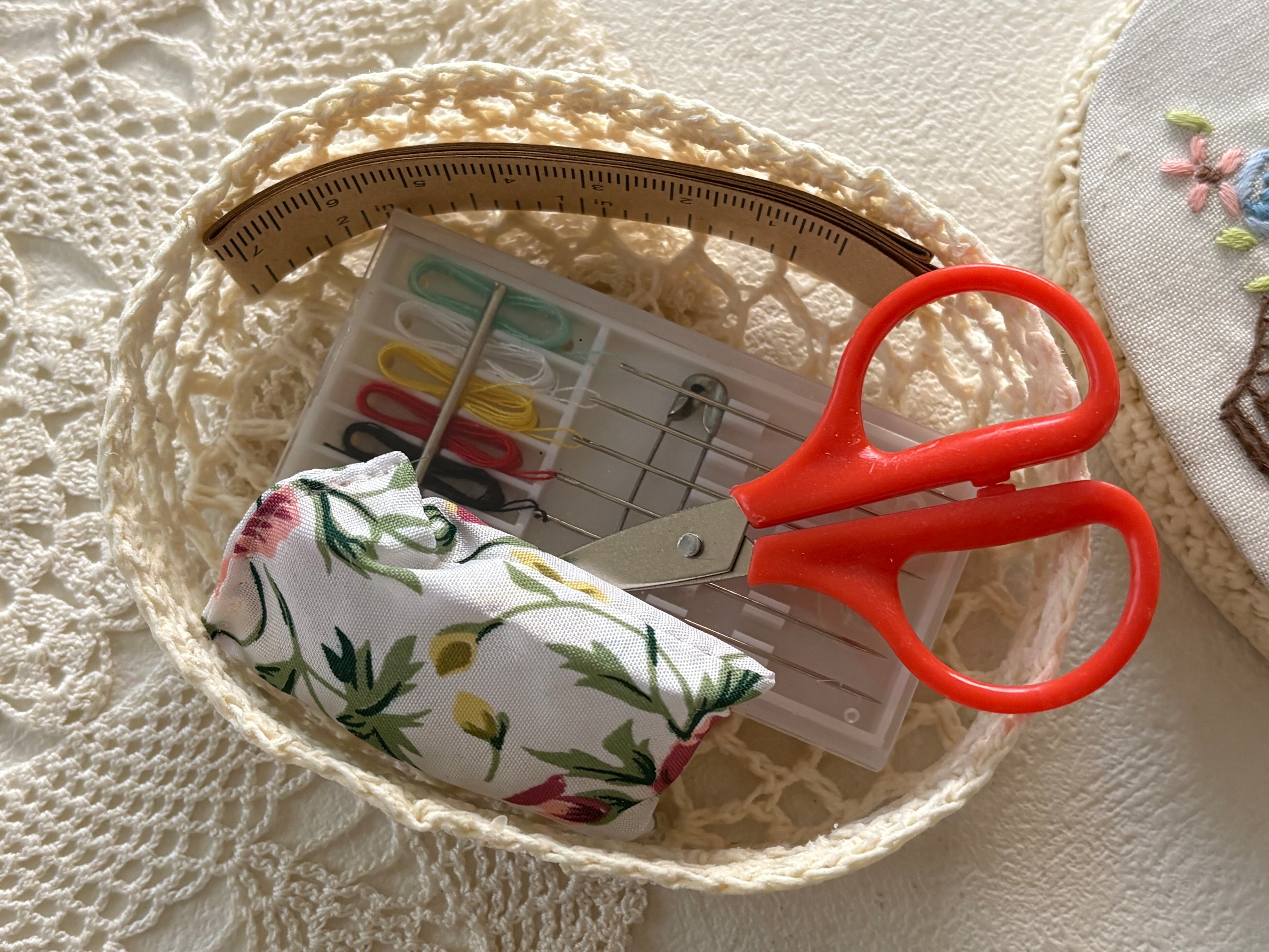 SALE 小さなソーイングセット パンジー 裁縫セット 刺繍柄 撮影小物 インテリア
