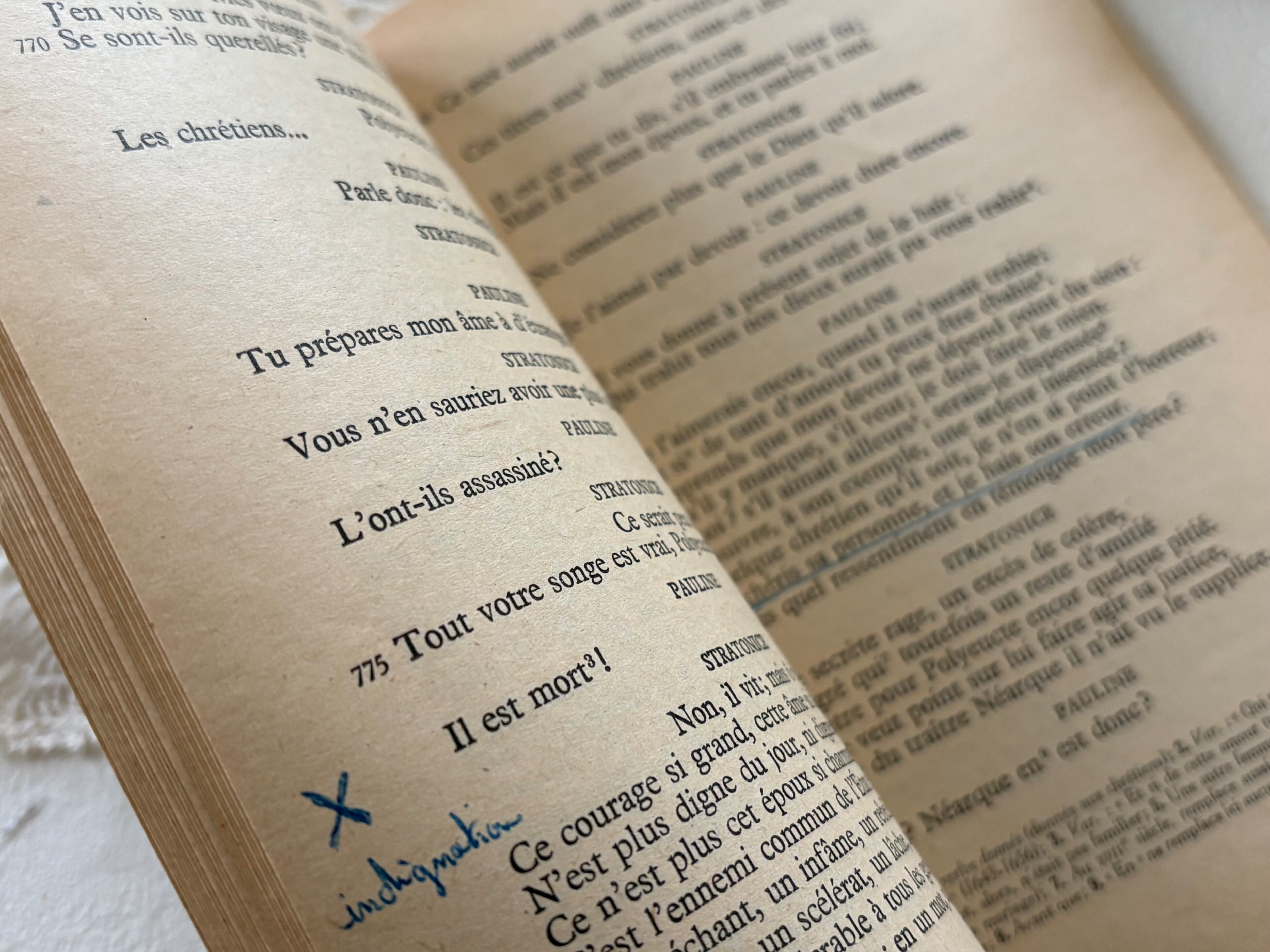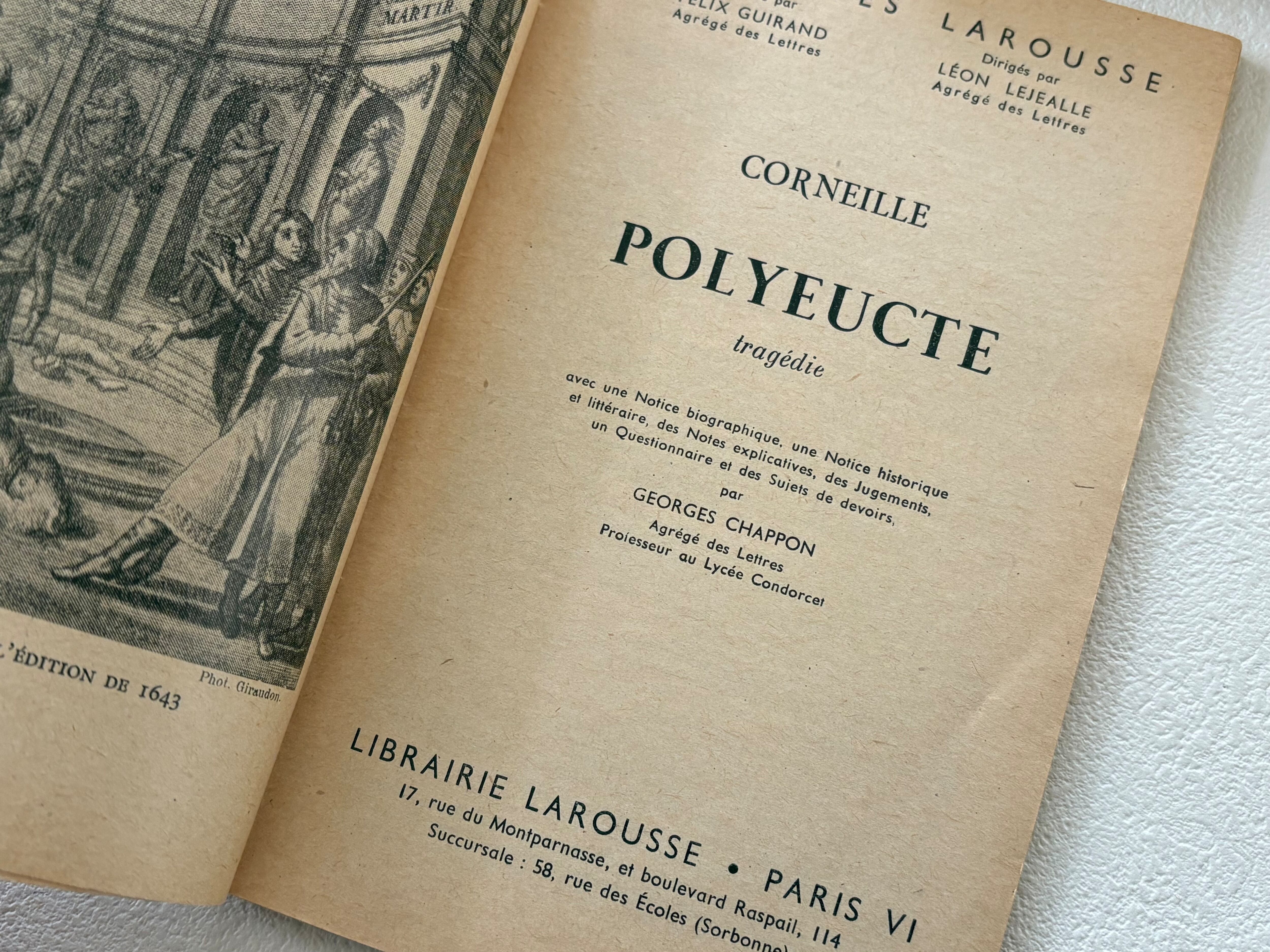 フランスアンティーク Classiques Larousse パープルカラーの本 ラルース社 CORNEILLE POLYEUCTE. インテリア コラージュ