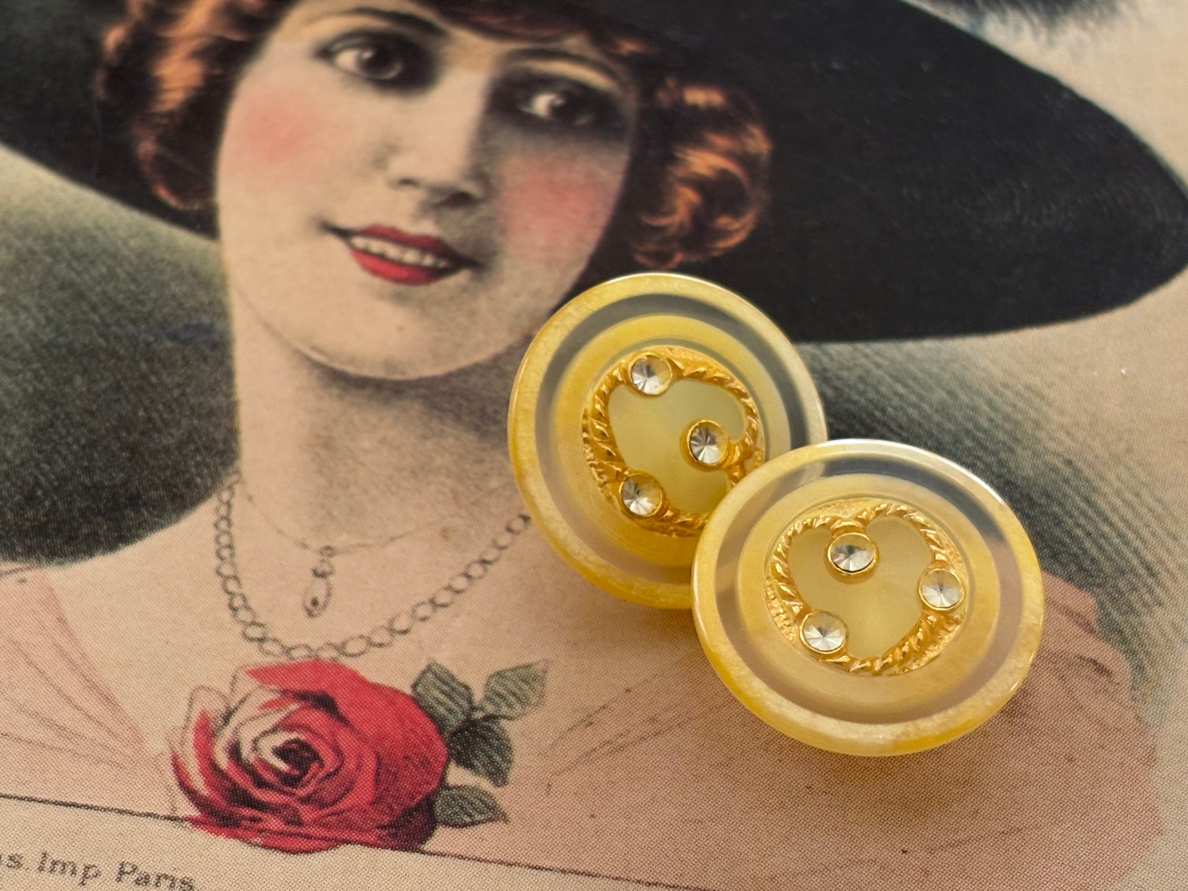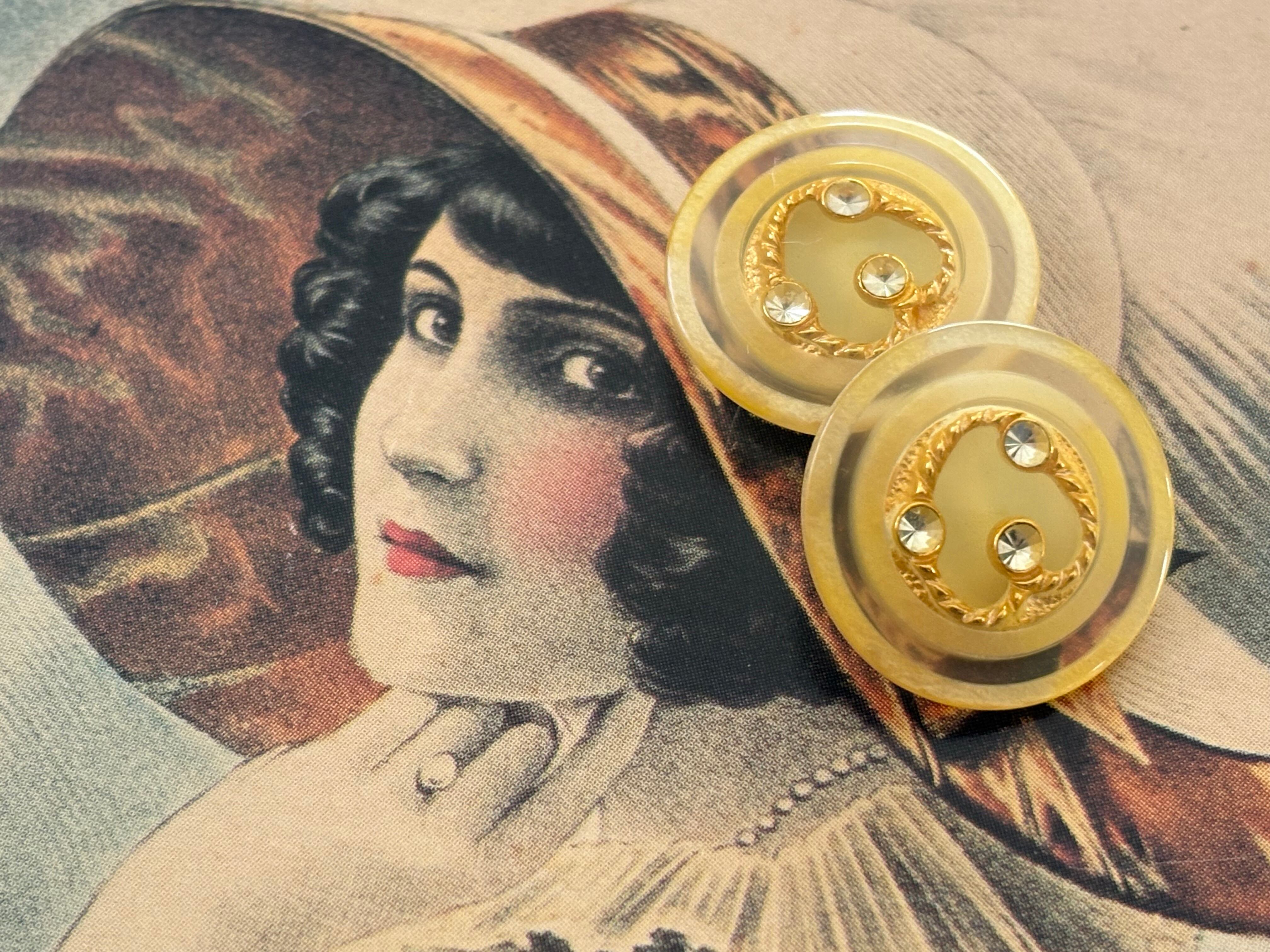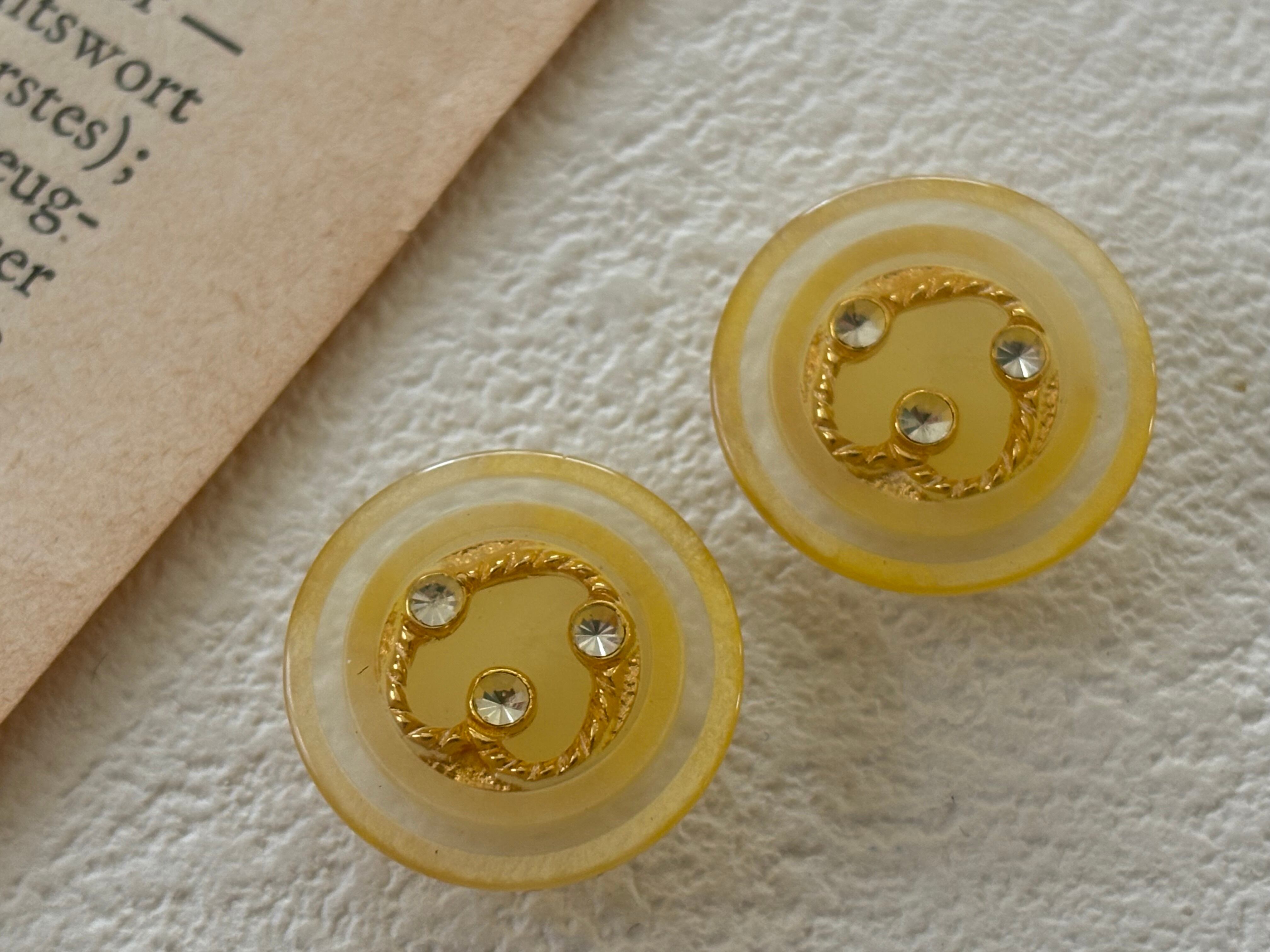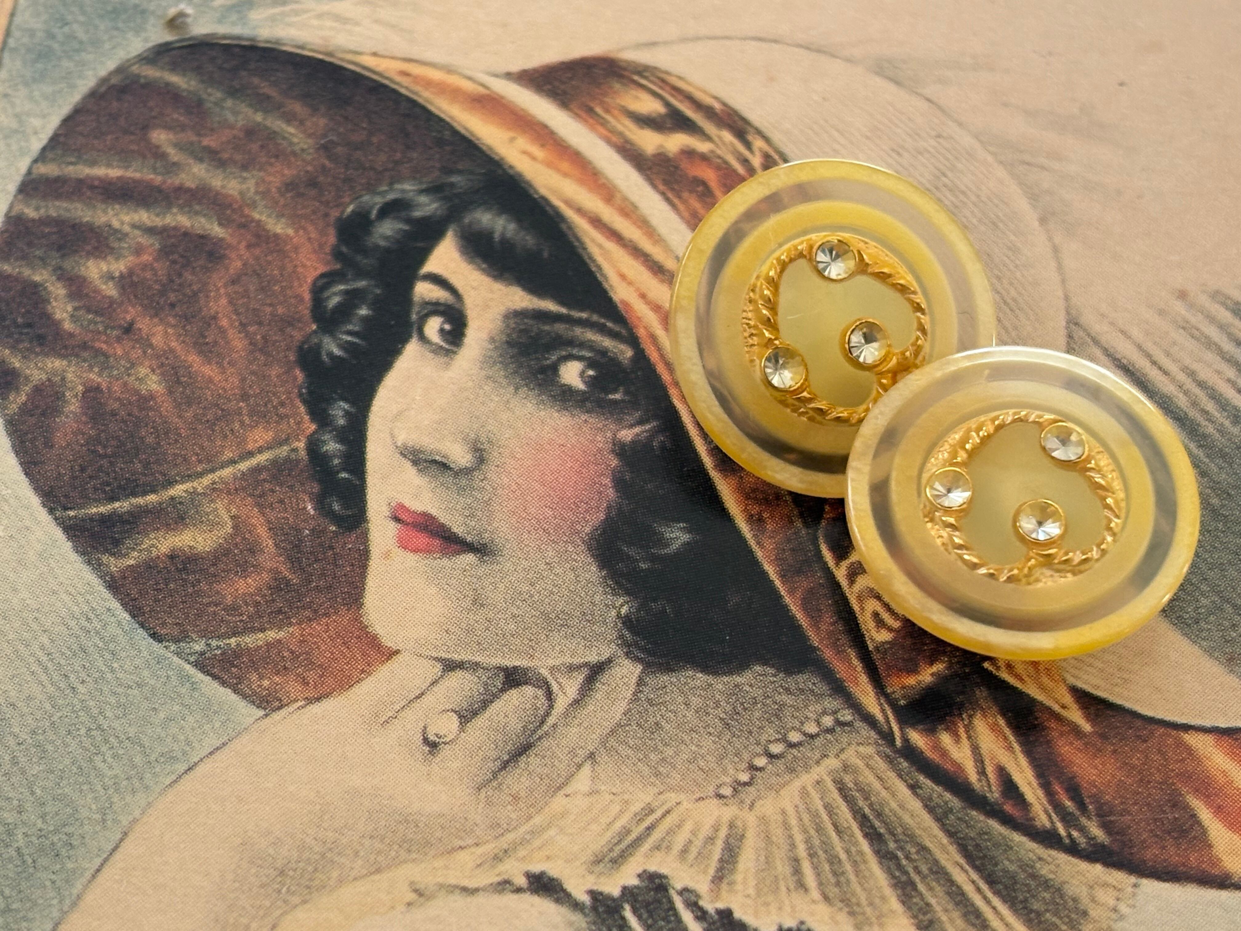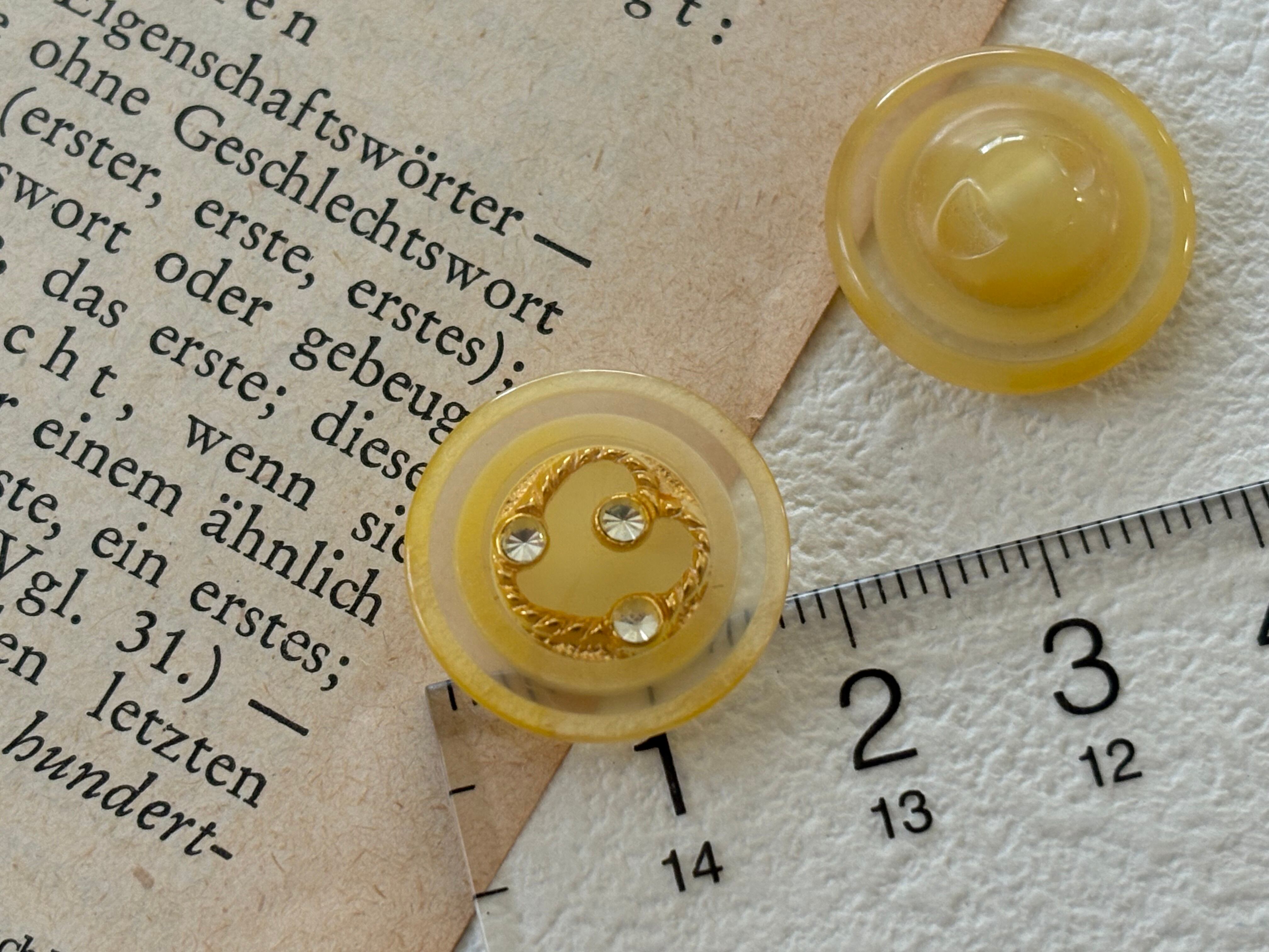 18mm Japanese ヴィンテージボタン イエローベージュ ゴールド ストーン クリア レトロ アクセサリーパーツ 装飾材 カルトナージュ